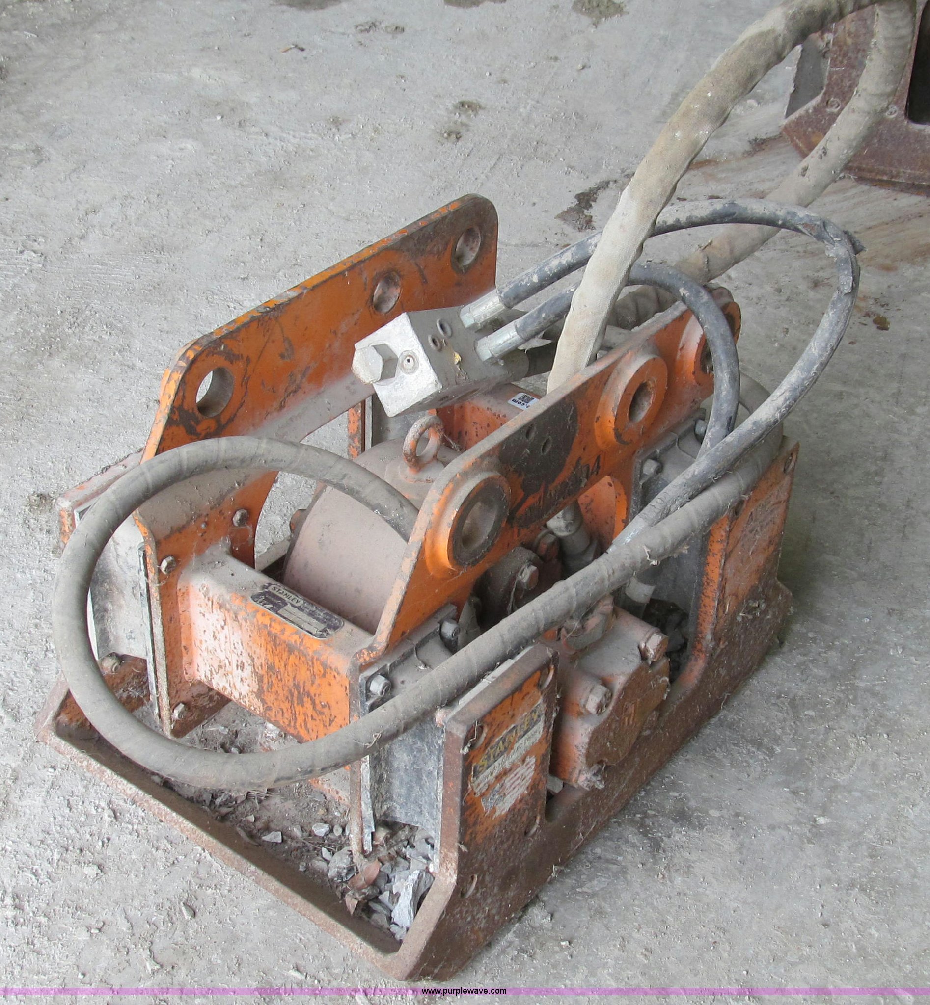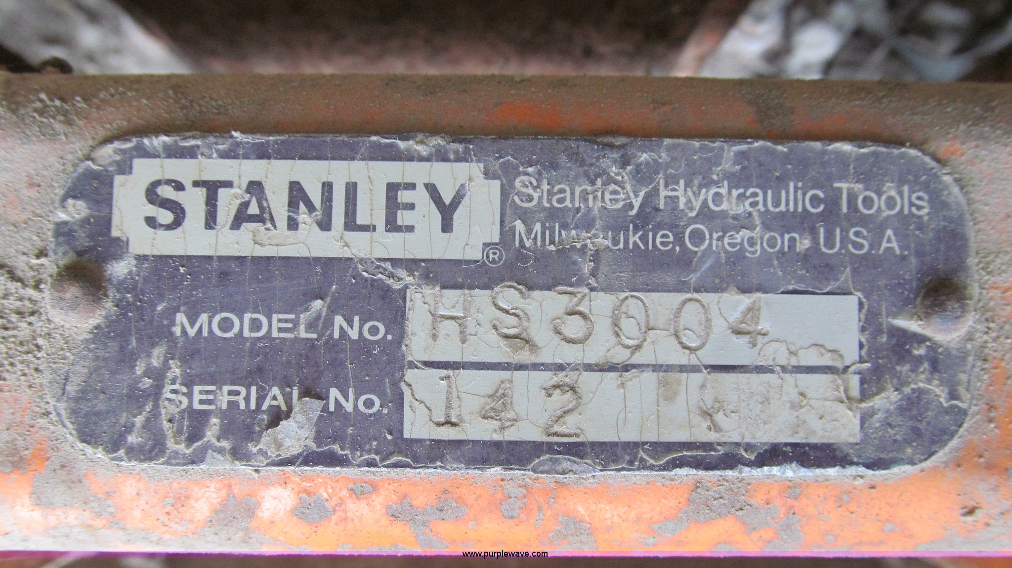 Purple Wave is selling a used Backhoe Attach. in Missouri. This item is a Stanley hydraulic dirt tamper backhoe attachment with the following: Model H53004, 18" x 24" pad, Serial 142