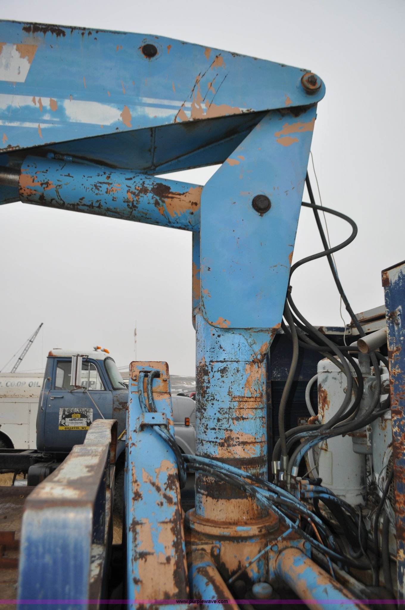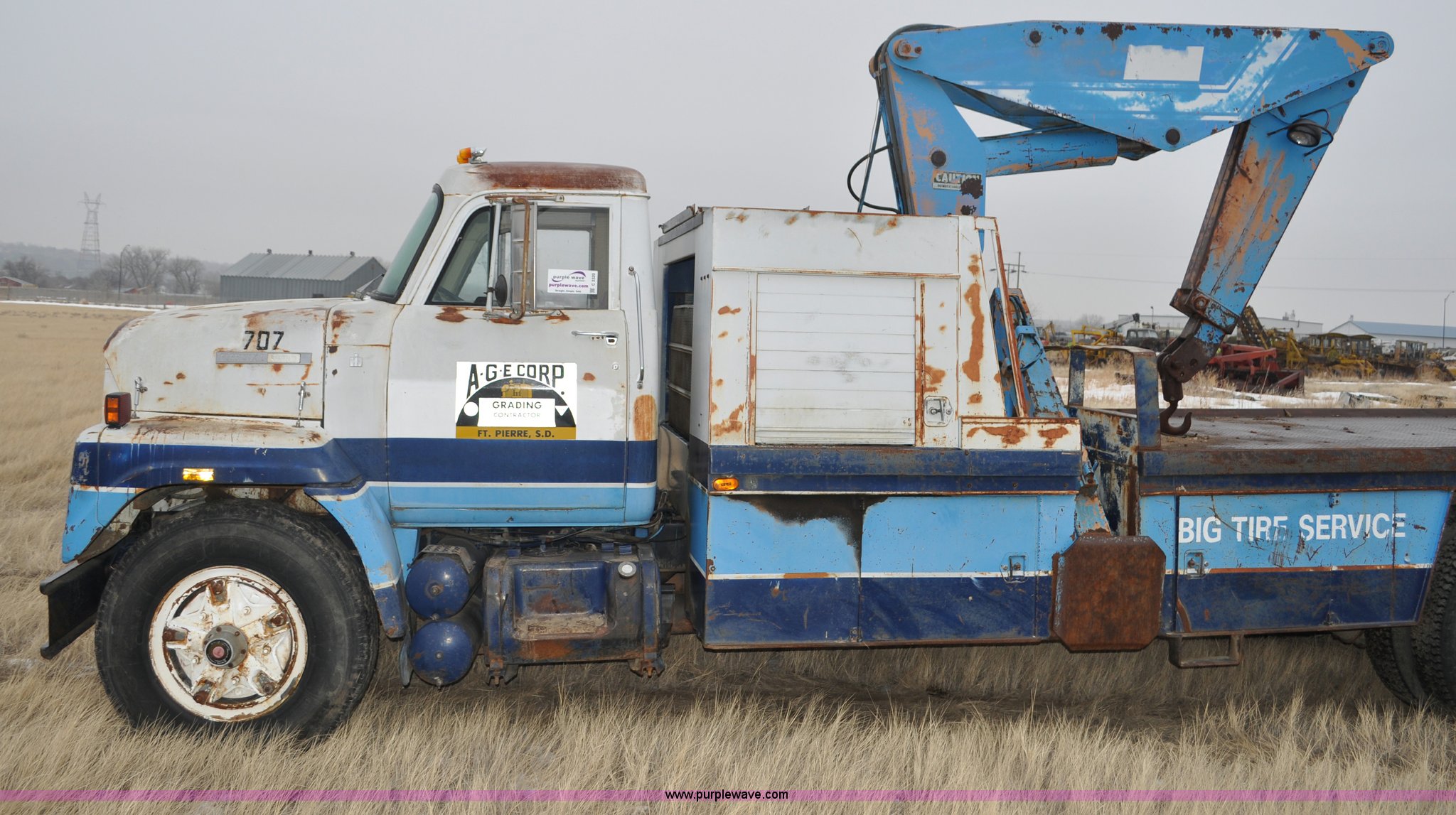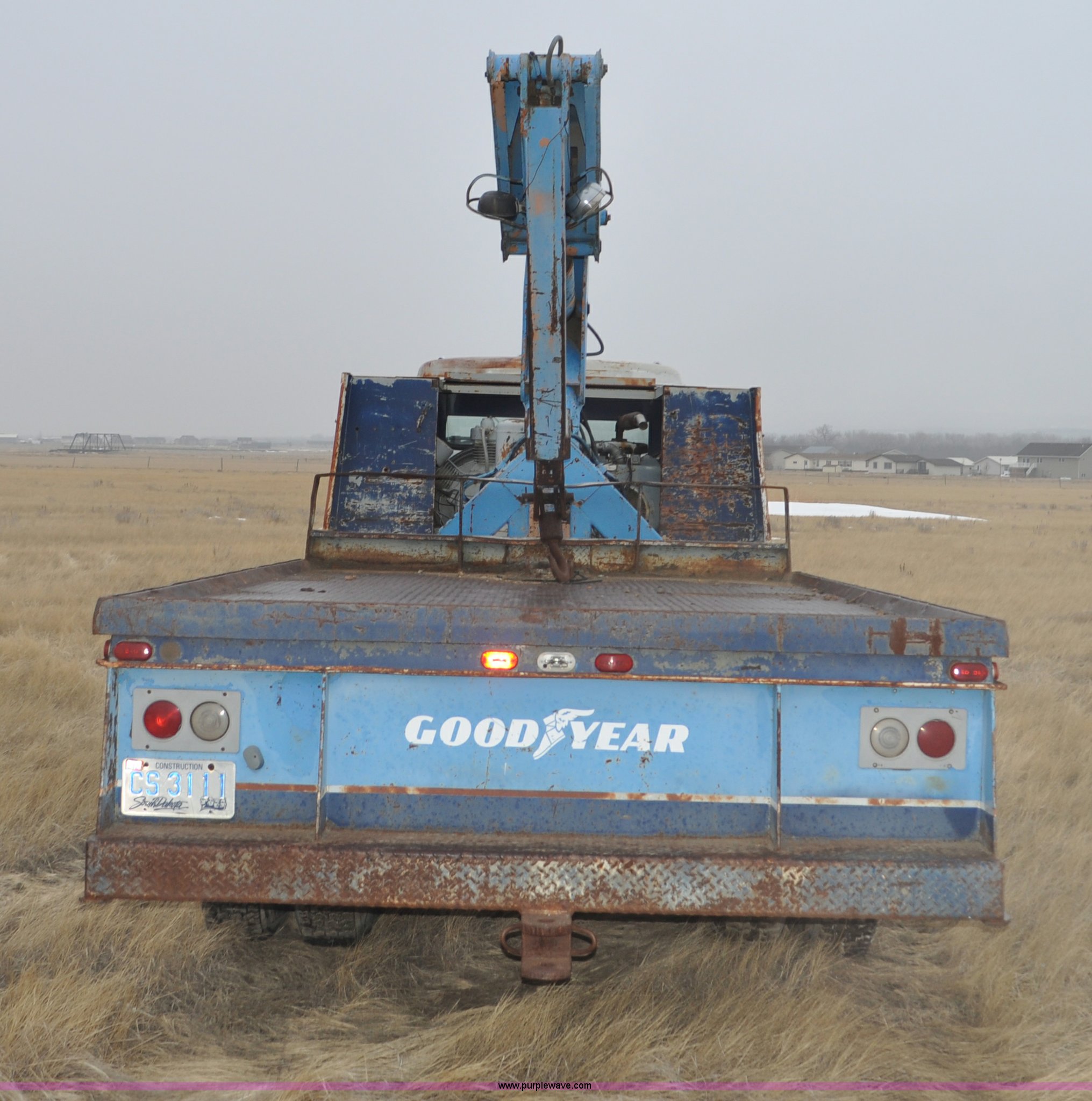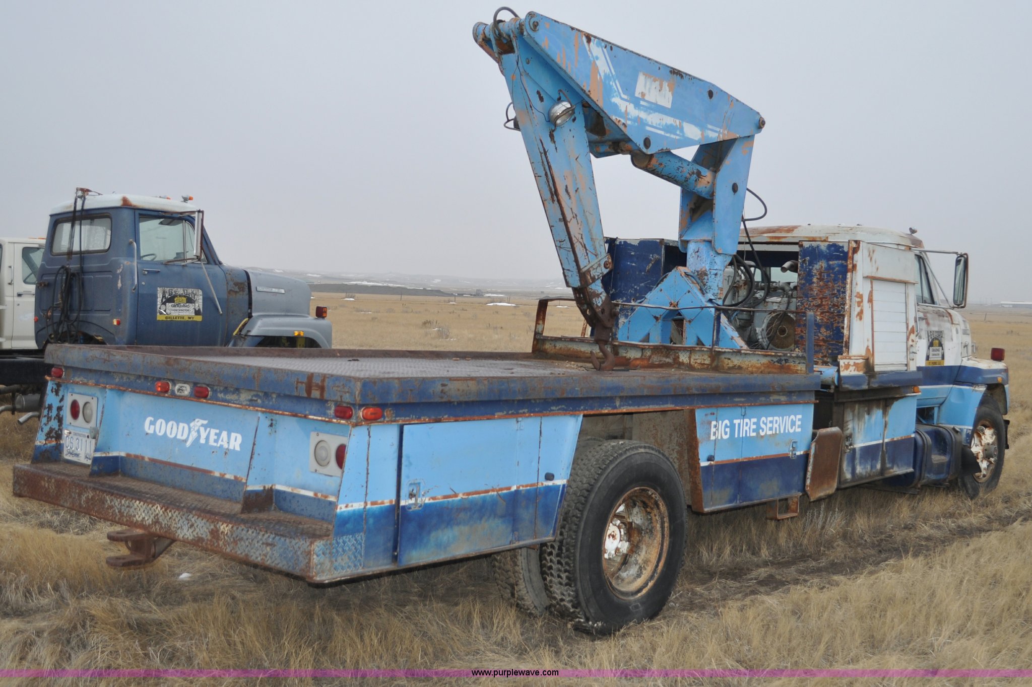 1976 International Fleetstar 2010A Fleet Corp tire truck. 120,472 miles on odometer, IHC 478 gas engine, Five speed manual transmission Two speed rear end, Heat, P&H MFG. Co. FEC crane Hydraulic outriggers, PTO driven hydraulics, Dual side controls, Serial 3000-145, Dressor air compressor Series 700, Wisconsin VH4D gas engine, Engine is stuck, Serial 457X4461, Air hose reel, 13'L steel bed Six tool compartments, Pin hitch, Dual fuel tanks, PTO, Spring suspension, Air brakes, 220" wheel base, 10.00-20 tires, No fuel , Dead battery, Running when parked, Unit# 707. D1222FGB17750. Shipping quotes available. A-G-E Corporation. 704 W Highway 14 and 34. Ft. Pierre, SD 57532