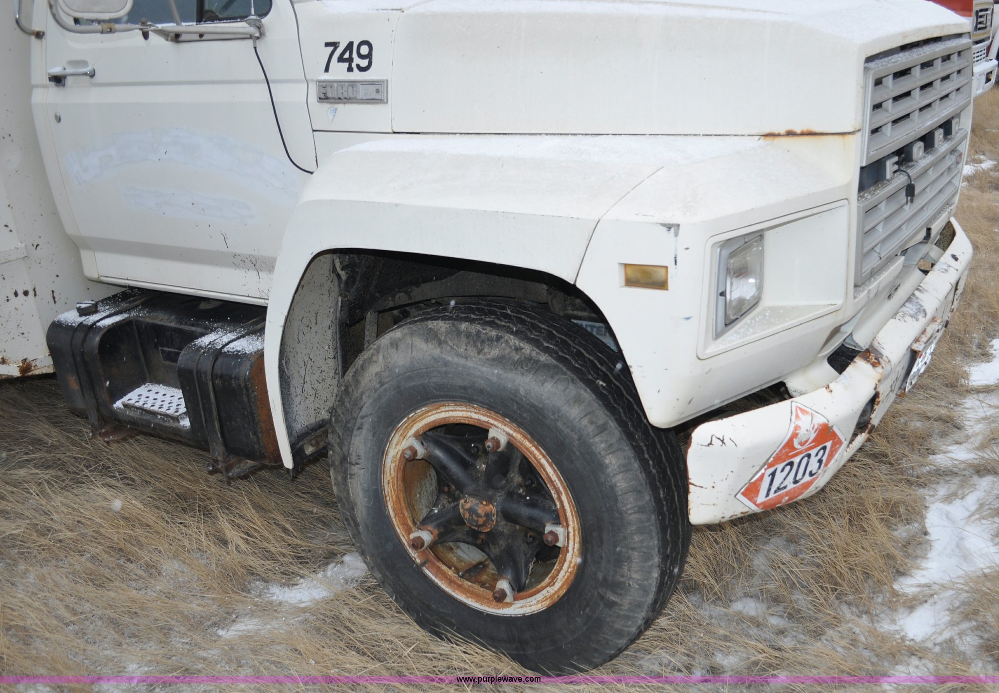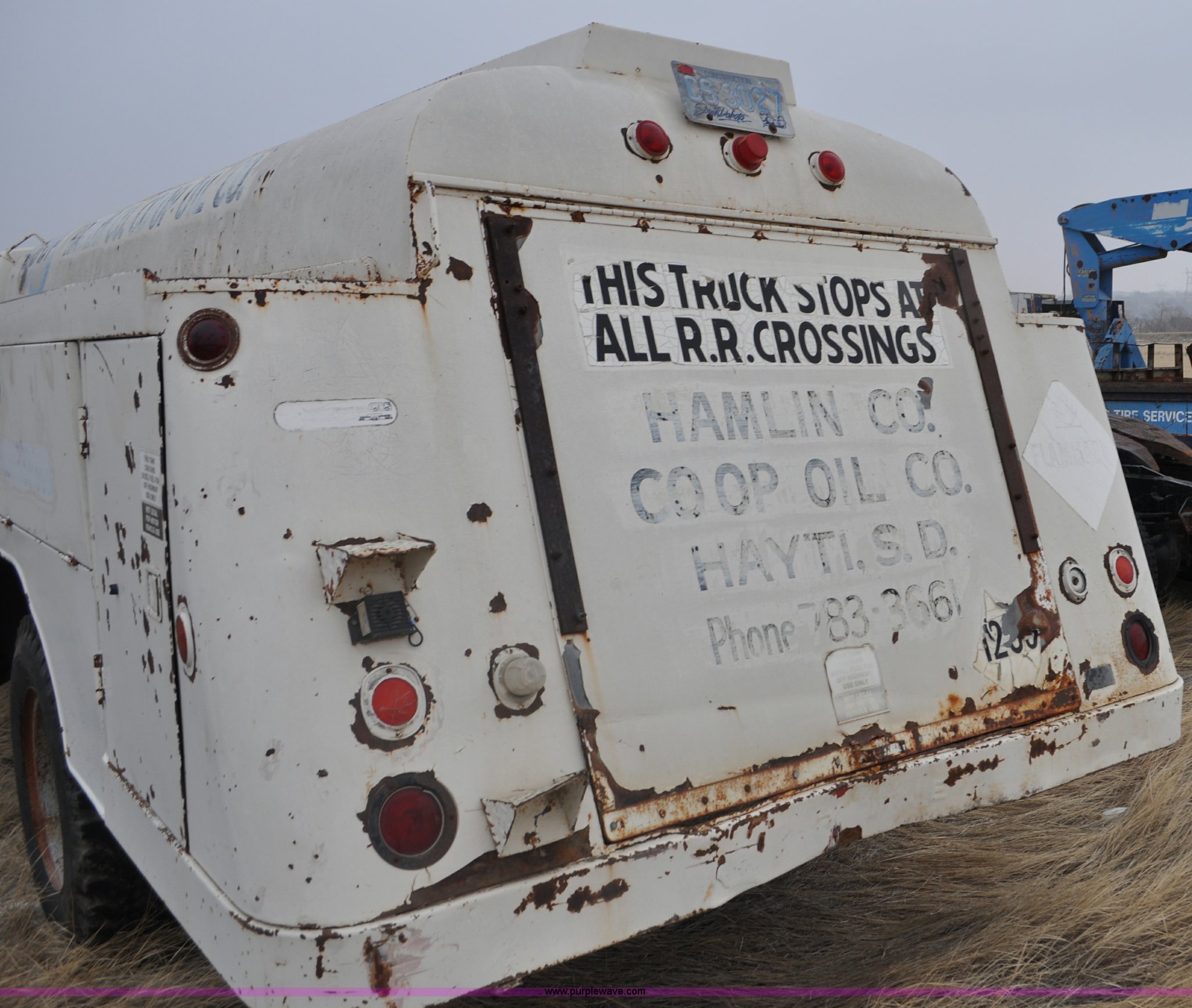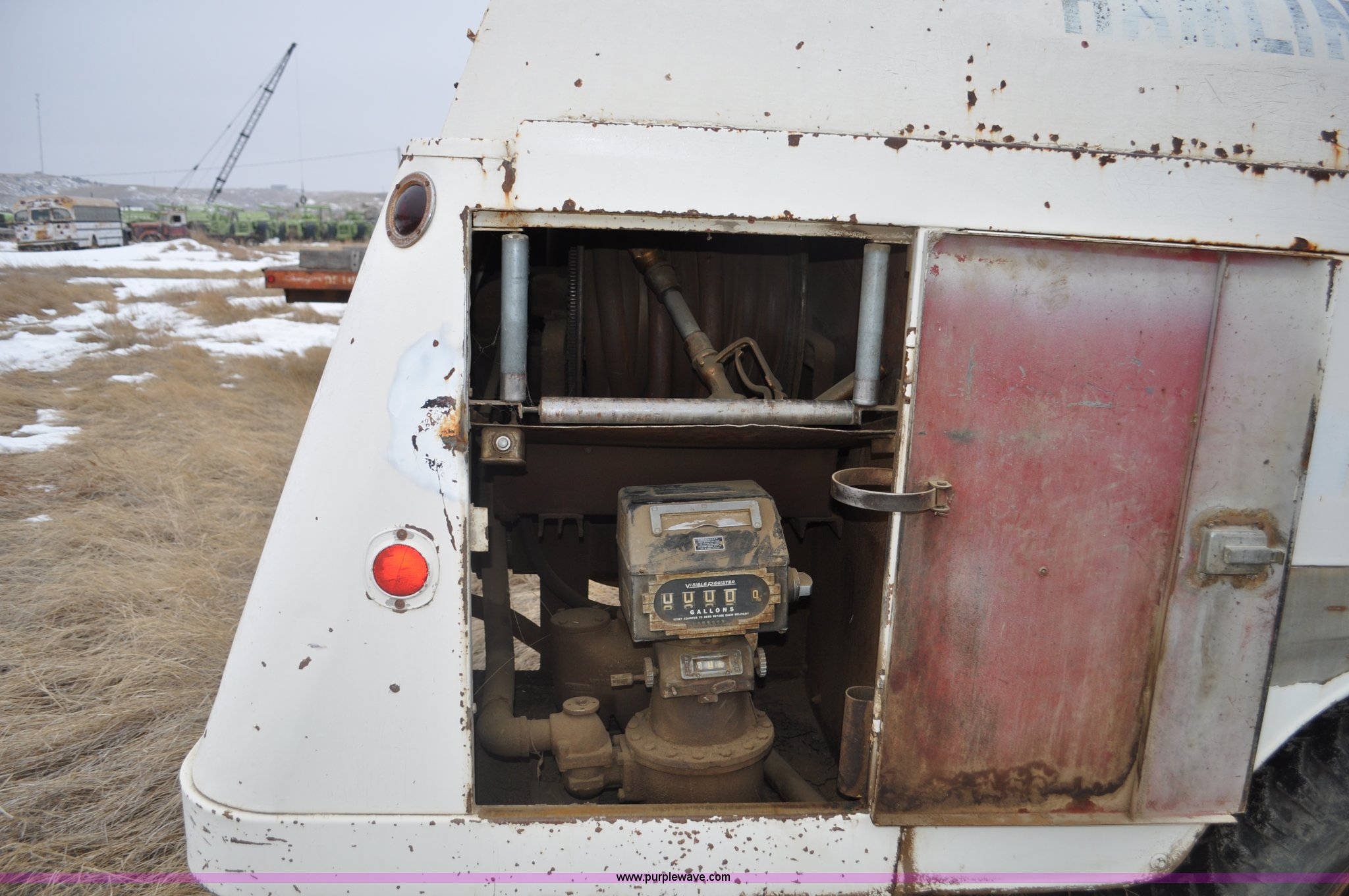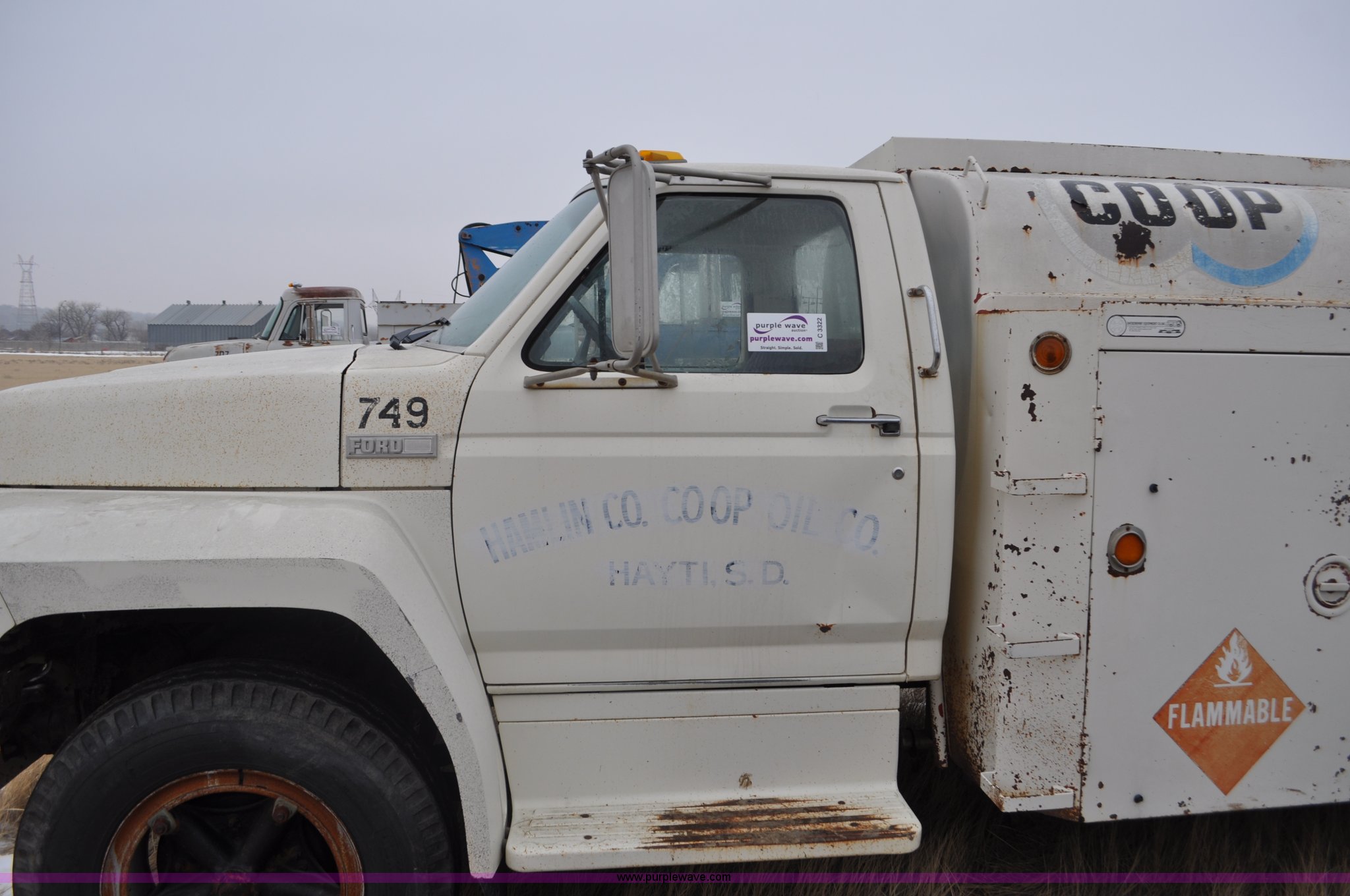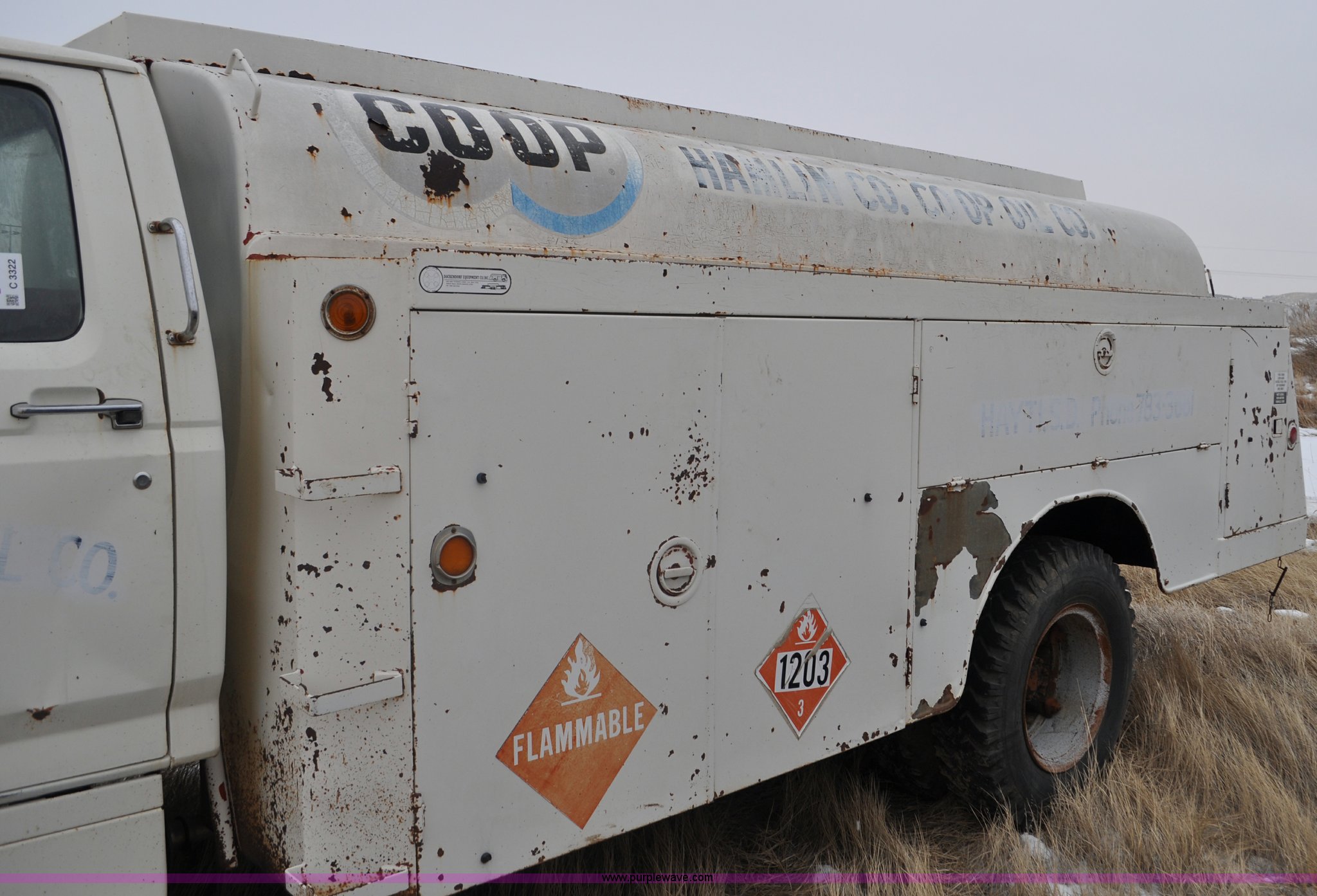 Purple Wave is selling a used Fuel Truck in South Dakota. This item is a 1980 Ford F700 fuel truck with the following: 94,470 miles on odometer, Lima 470 CID 4V gas engine, Four speed manual transmission, Two speed rear end, Brown fuel body, Five compartments, Smith fuel meters, Retractable hose reels, One hose in compartment, Four tool compartments, Single fuel tank, PTO, Spring suspension, Hydraulic brakes, 177" wheel base, 10.00-20 tires, GVWR 23,100 lbs, No fuel, Dead battery, Running when parked, Unit# 749