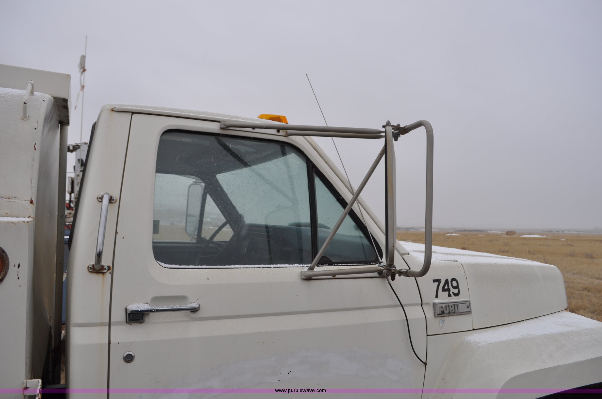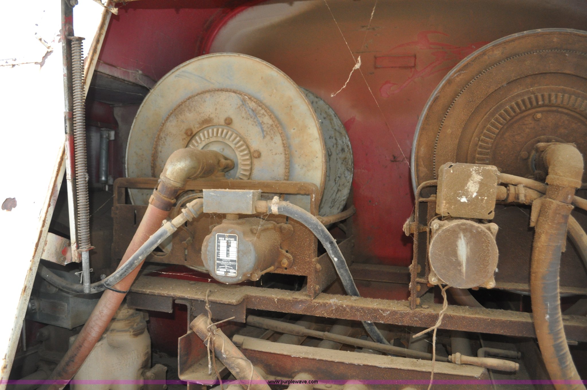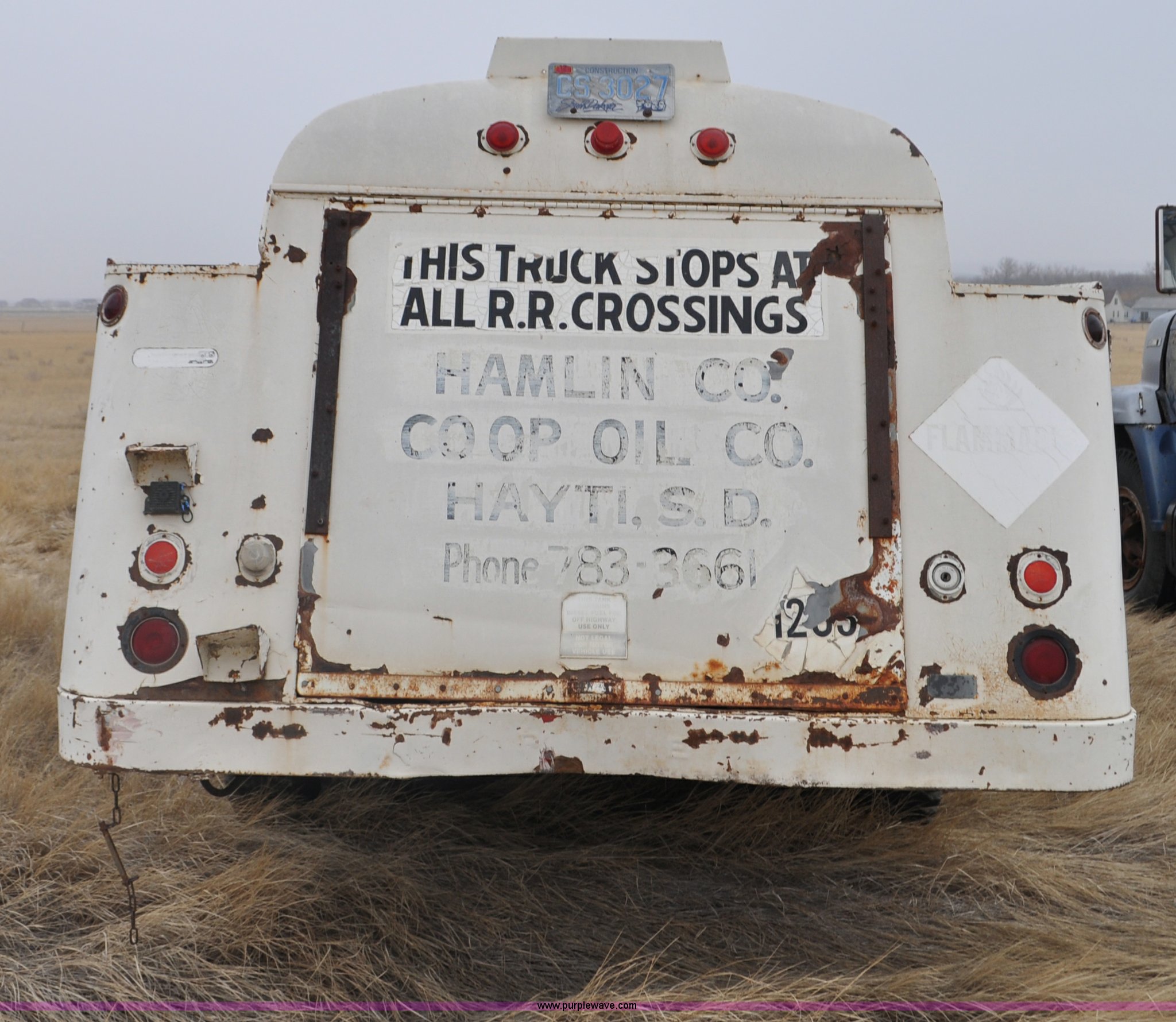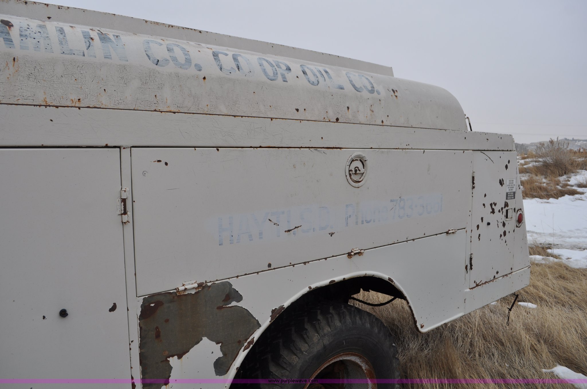 Purple Wave is selling a used Fuel Truck in South Dakota. This item is a 1980 Ford F700 fuel truck with the following: 94,470 miles on odometer, Lima 470 CID 4V gas engine, Four speed manual transmission, Two speed rear end, Brown fuel body, Five compartments, Smith fuel meters, Retractable hose reels, One hose in compartment, Four tool compartments, Single fuel tank, PTO, Spring suspension, Hydraulic brakes, 177" wheel base, 10.00-20 tires, GVWR 23,100 lbs, No fuel, Dead battery, Running when parked, Unit# 749