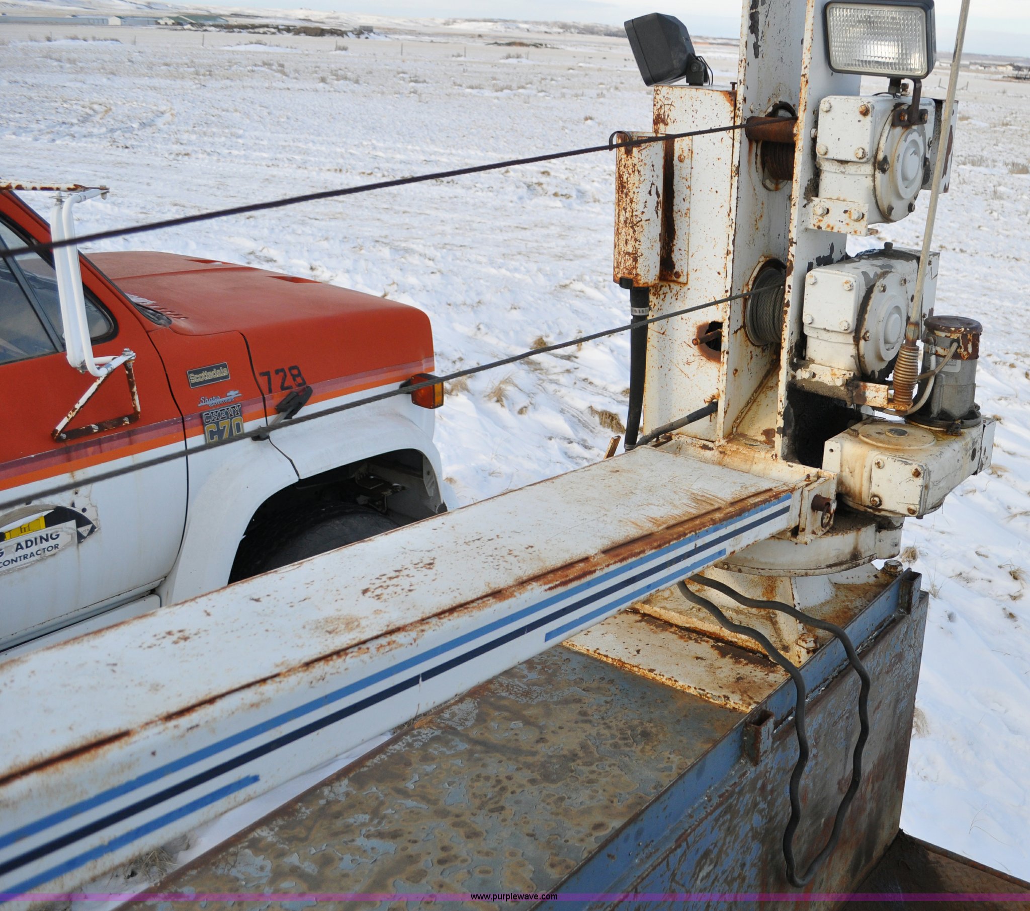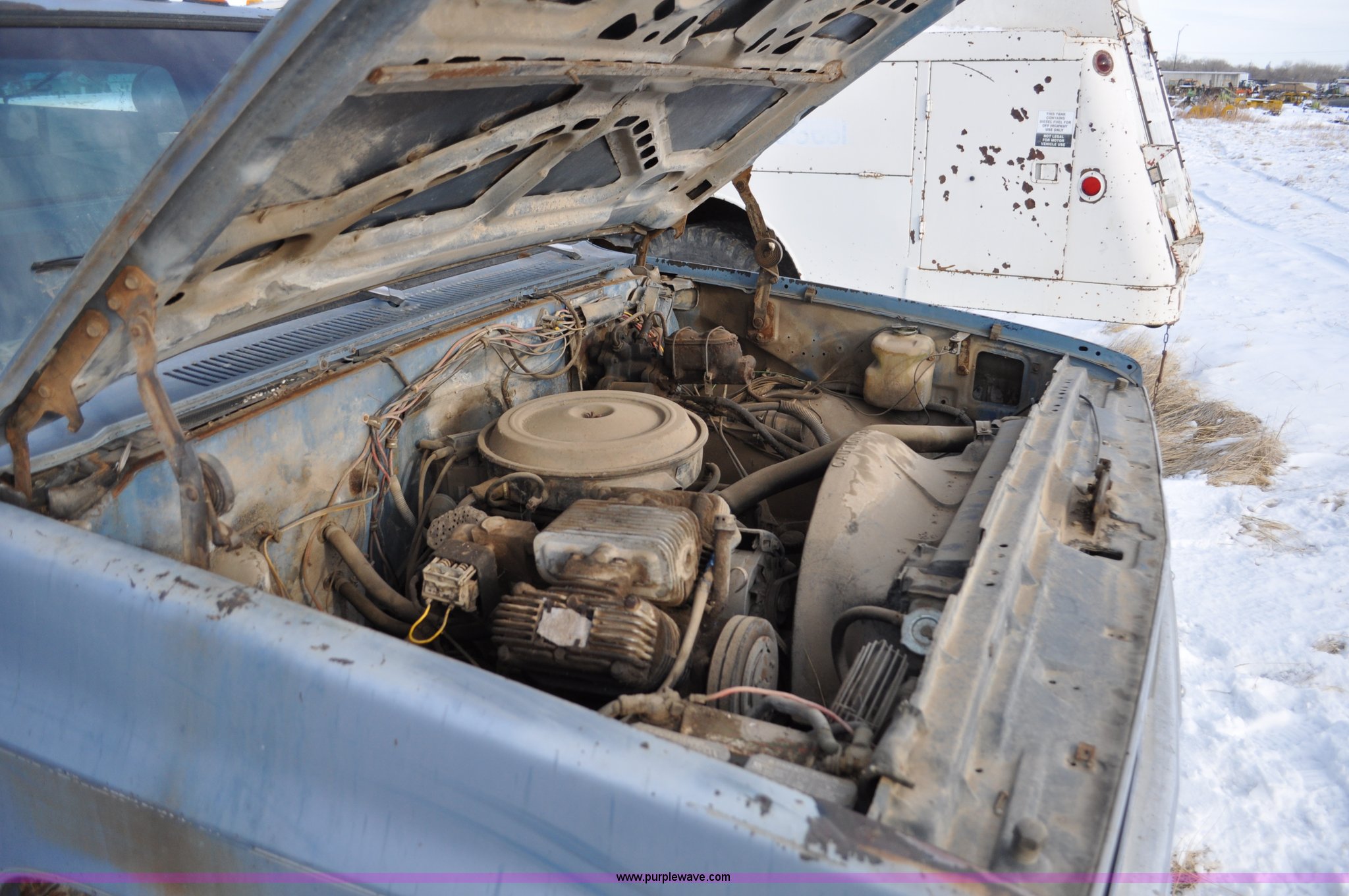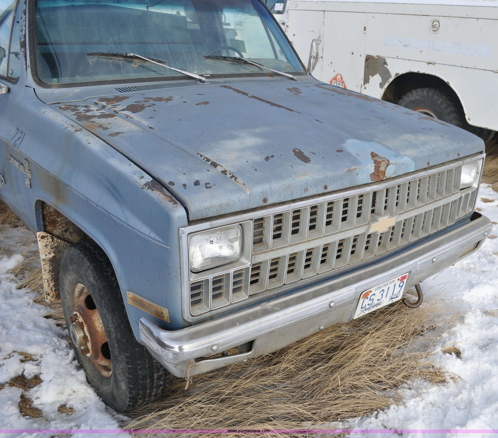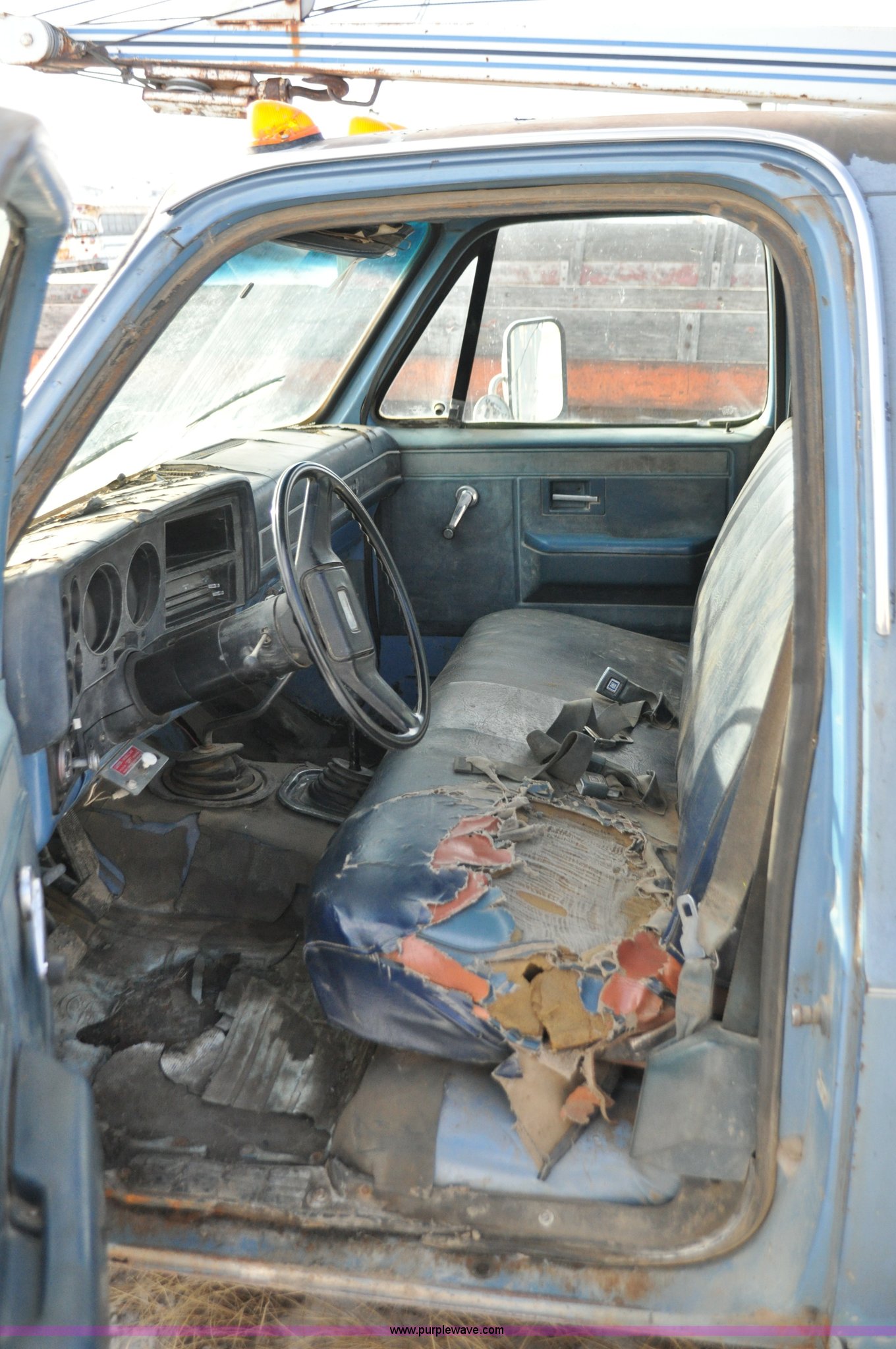 Purple Wave is selling a used Passenger Vehicle in South Dakota. This item is a 1982 Chevrolet C30 Custom Deluxe utility bed truck with the following: 51,850 miles on odometer, Gas engine, Four speed manual transmission, Four wheel drive, Heat, Manual windows and locks, Vinyl interior, Auto crane, 14' boom, Remote control, Air compressor, Rear vise, Six storage compartments, Rear stabilizers, 235/85R16 tires, No fuel, Dead battery, Running when parked, Unit# 721