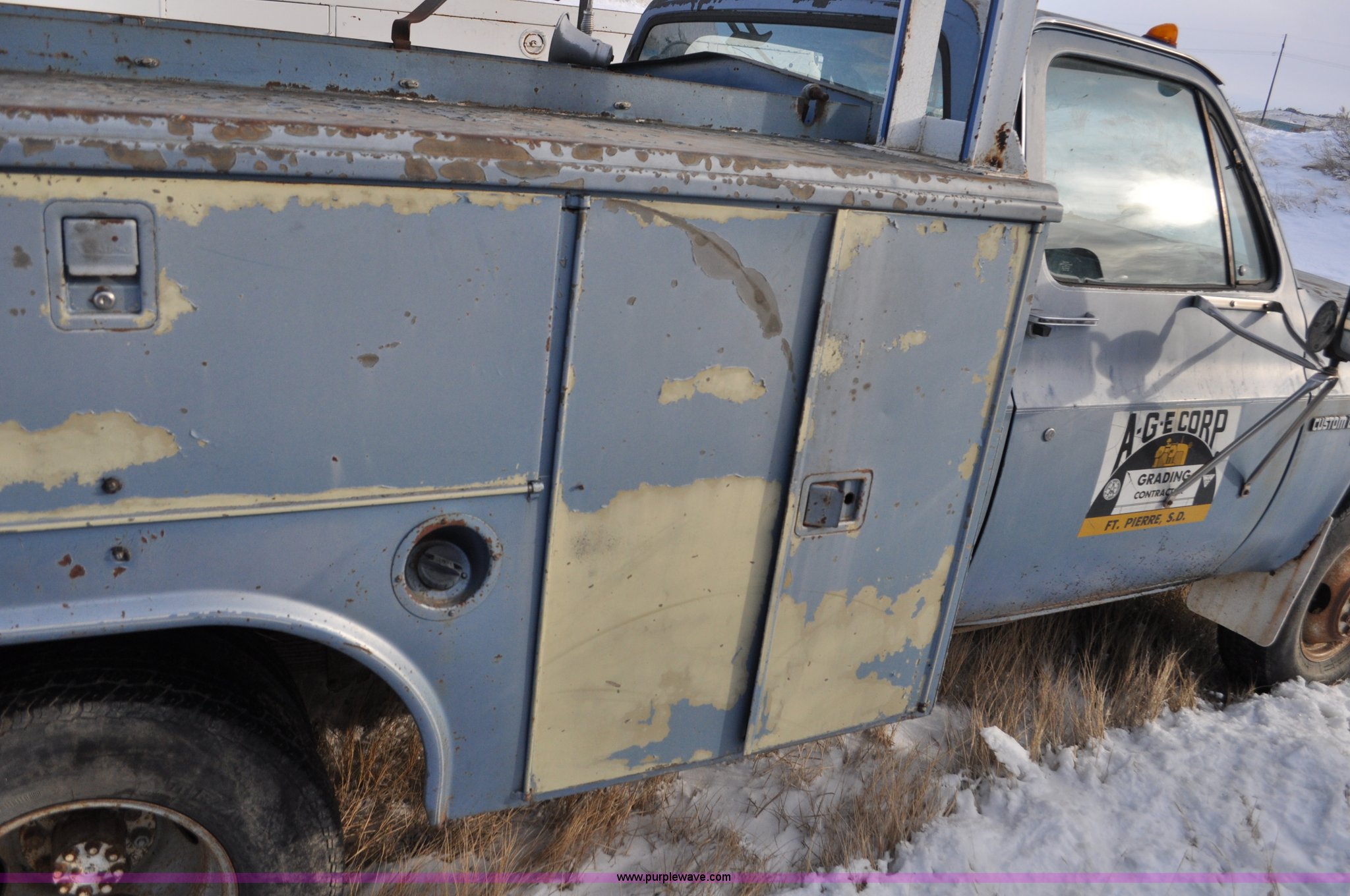 1982 Chevrolet C30 Custom Deluxe utility bed truck. 51,850 miles on odometer, Gas engine, Four speed manual transmission, Four wheel drive, Heat, Manual windows and locks, Vinyl interior, Auto crane 14' boom, Remote control, Air compressor, Rear vise, Six storage compartments, Rear stabilizers, 235/85R16 tires, No fuel , Dead battery, Running when parked, Unit# 721. 2GBHK34M7C1182093. Shipping quotes available. A-G-E Corporation. 704 W Highway 14 and 34. Ft. Pierre, SD 57532