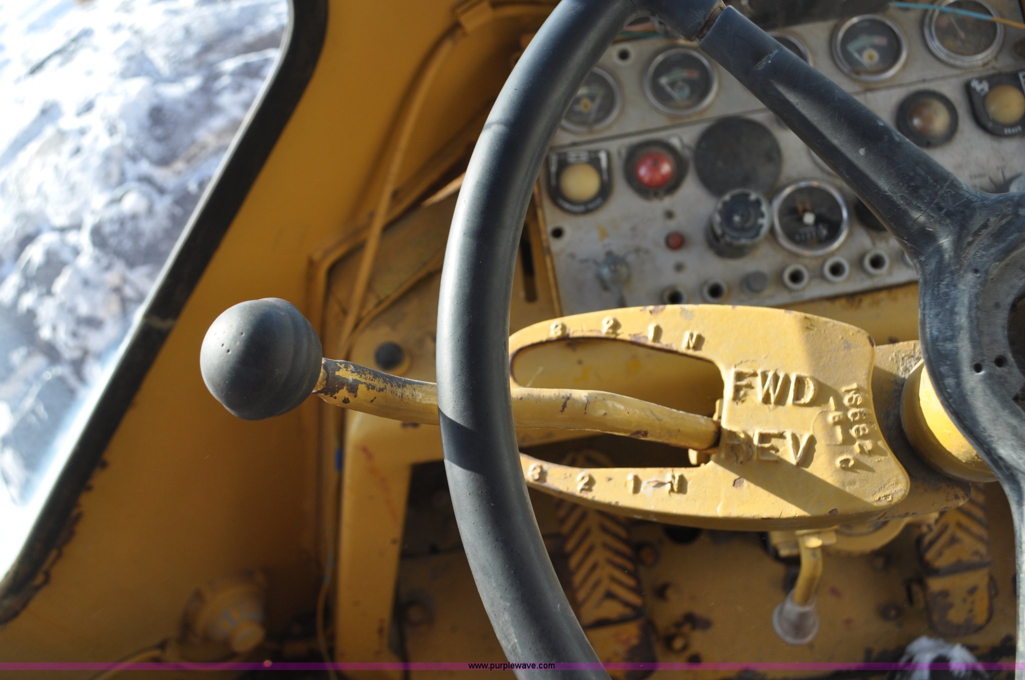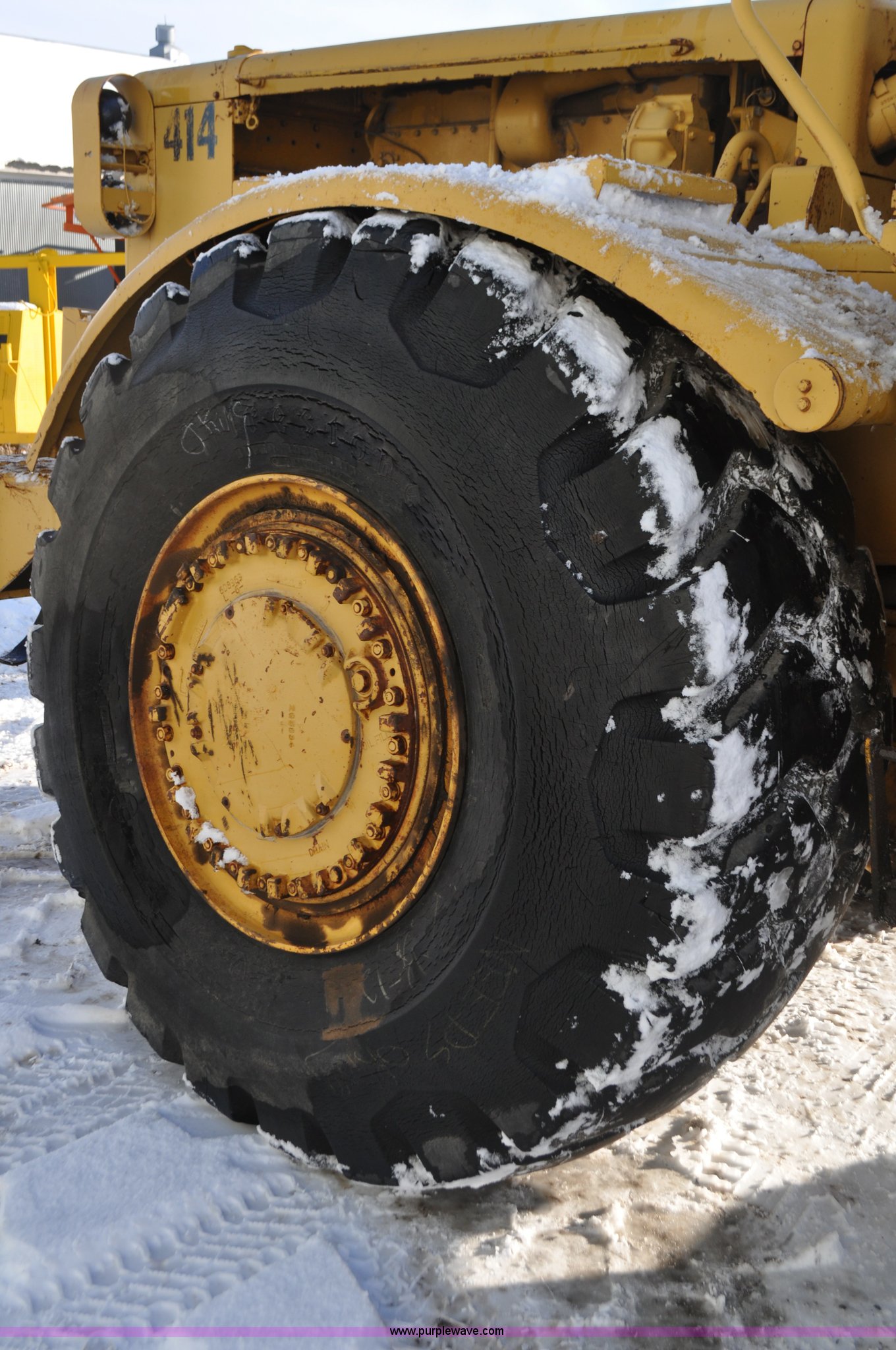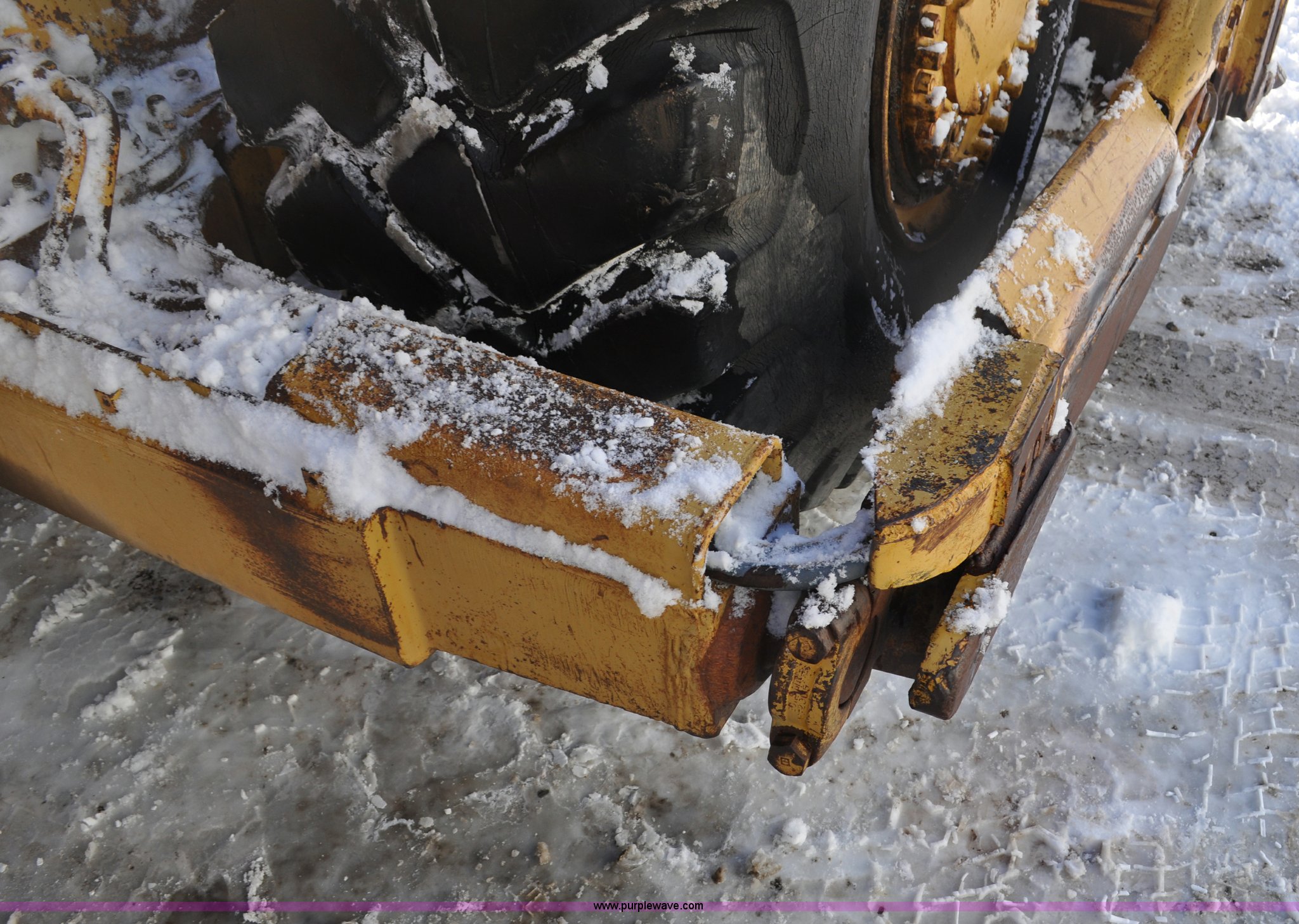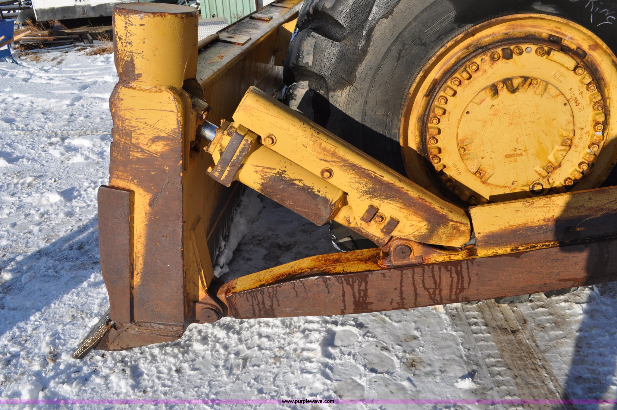Purple Wave is selling a used Wheel Loader in South Dakota. This item is a 1975 Caterpillar 824B articulated wheel dozer with the following: 4,853 hours on meter, Caterpillar D343 six cylinder turbo diesel engine, Powershift transmission, 3F-3R gears, Enclosed cab, ROPS, Suspension seat, Front and rear work lights, Front windshield wipers, 13'W S-dozer blade, Twin tilt, Rear draw bar, Front weights, 29.5-29 tires, 64,581 lbs. base operating weight, Front and rear windows cracked, Serial 36H1369