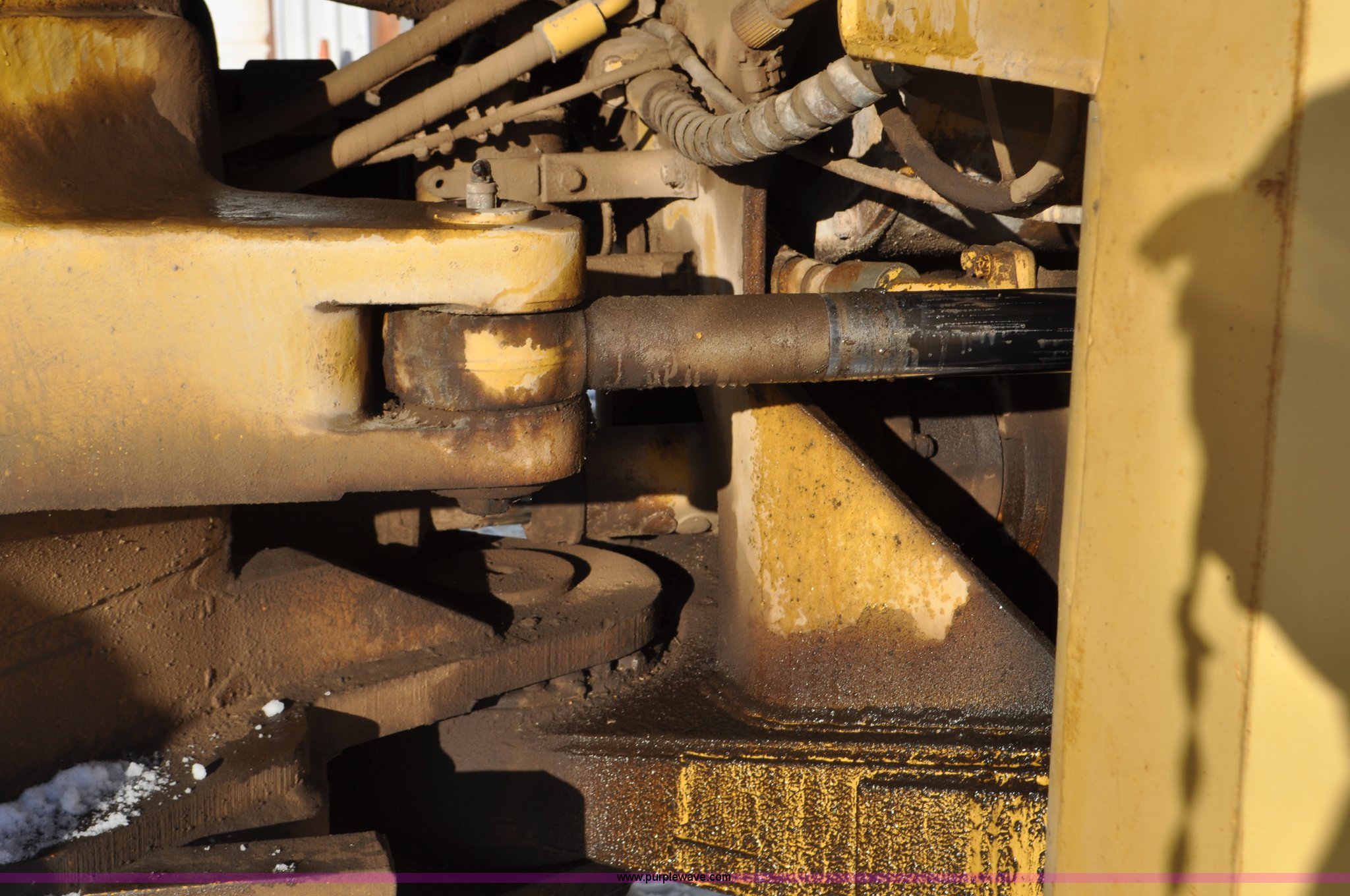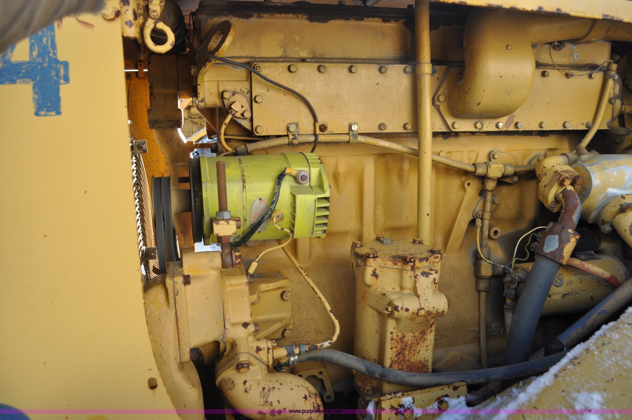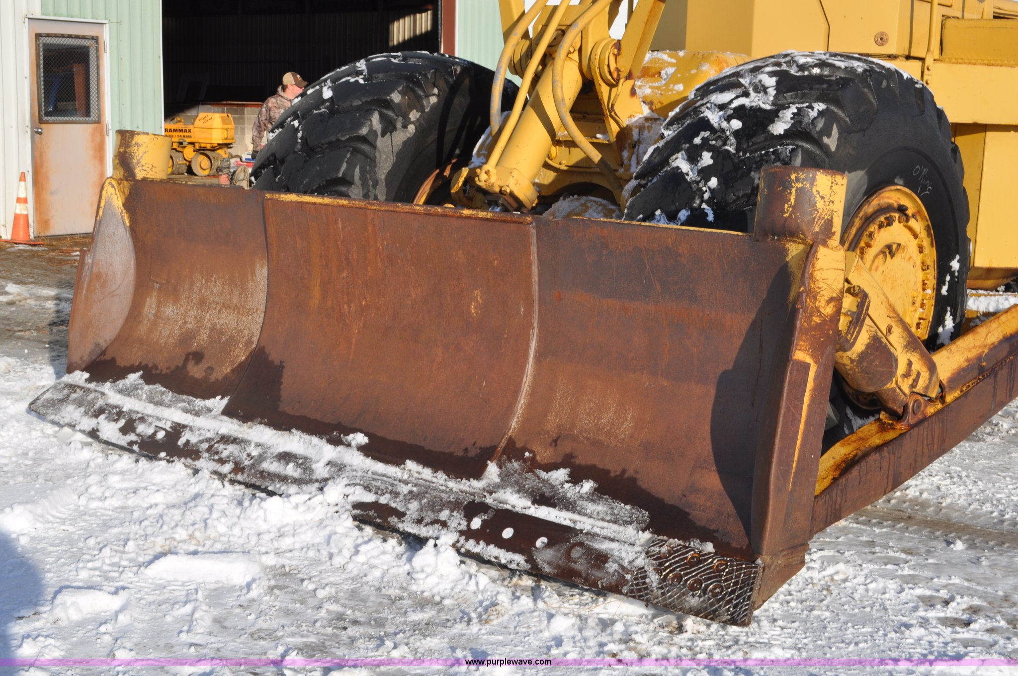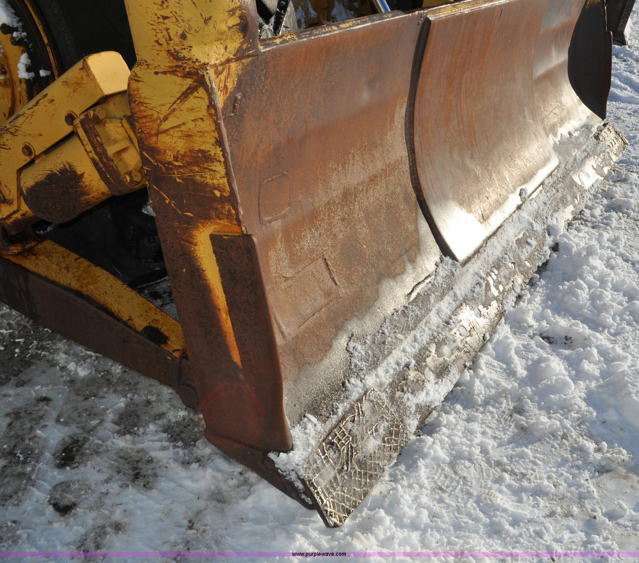 Purple Wave is selling a used Wheel Loader in South Dakota. This item is a 1975 Caterpillar 824B articulated wheel dozer with the following: 4,853 hours on meter, Caterpillar D343 six cylinder turbo diesel engine, Powershift transmission, 3F-3R gears, Enclosed cab, ROPS, Suspension seat, Front and rear work lights, Front windshield wipers, 13'W S-dozer blade, Twin tilt, Rear draw bar, Front weights, 29.5-29 tires, 64,581 lbs. base operating weight, Front and rear windows cracked, Serial 36H1369