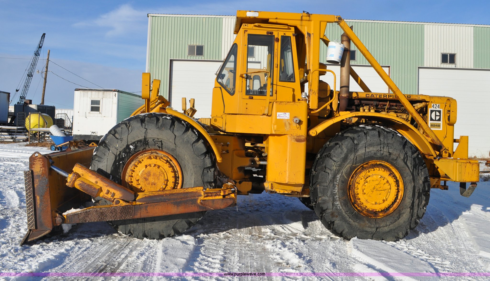 Purple Wave is selling a used Crawler Dozer in South Dakota. This item is a 1970 Caterpillar 824B articulated wheel dozer with the following: 4,329 hours on meter, Caterpillar D343 six cylinder turbo diesel engine, Powershift transmission, ROPS over soft cab, Suspension seat, Front and rear work lights, Front windshield wipers, 13'W S-dozer blade, Twin tilt, Rear draw bar, 29.5-29 tires, 64,581 lbs. base operating weight, Serial 36H867