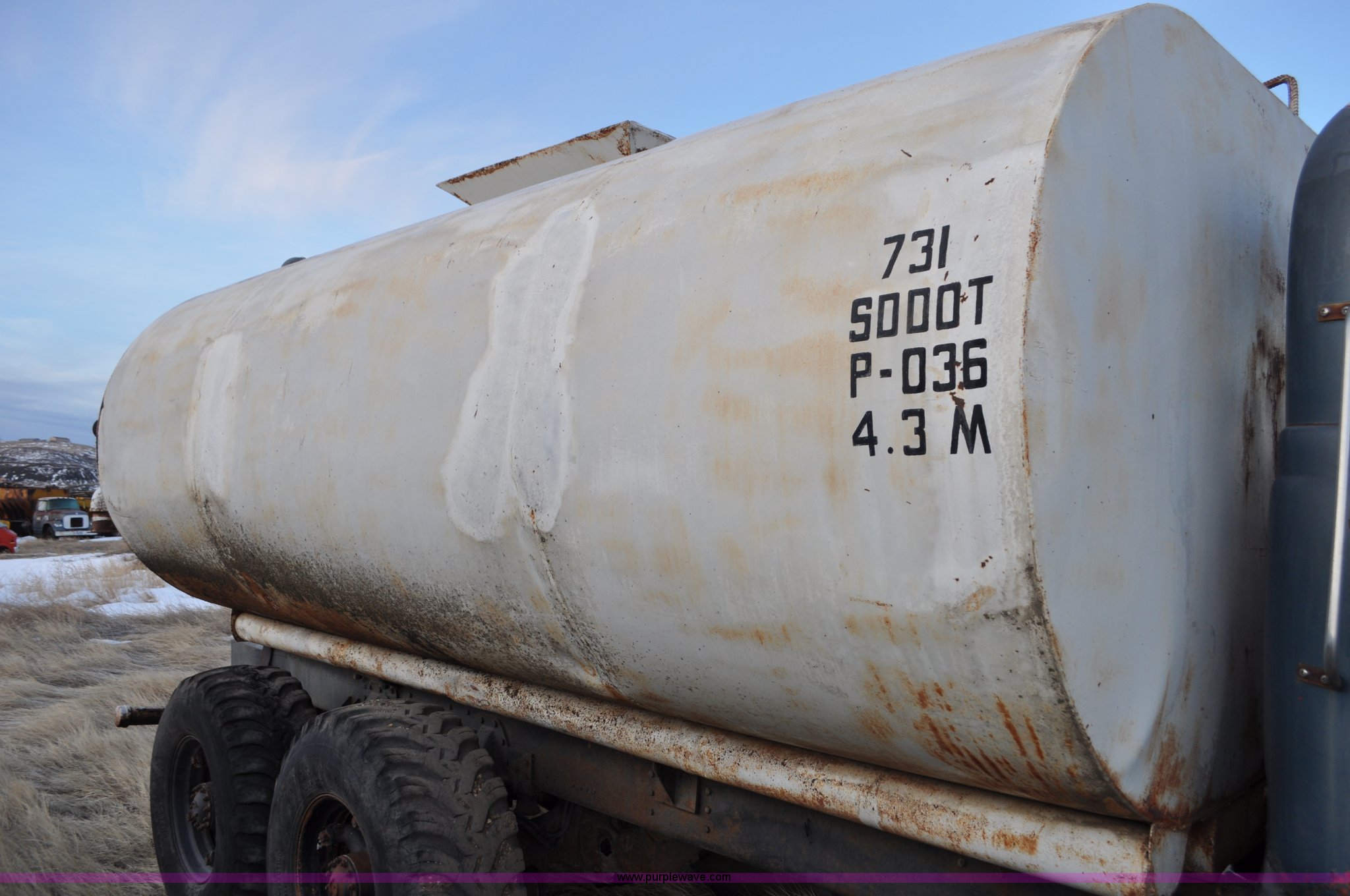 Purple Wave is selling a used Tank Truck or Water Truck in South Dakota. This item is a 1965 IHC M 623CBE water truck with the following: 31,413 miles on odometer, IHC 549 six cylinder gas engine, Allison MT40 six speed transmission, Transmission can be used in a Terex TS14 scraper with the addition of a drop box, Twin screw, Heat, Berkley 6" PTO water pump, Dual fuel tanks, PTO, Power divider, 187" wheel base, 18-22.5 tires, GVWR 54,000 lbs, No fuel, Dead battery, Running when parked