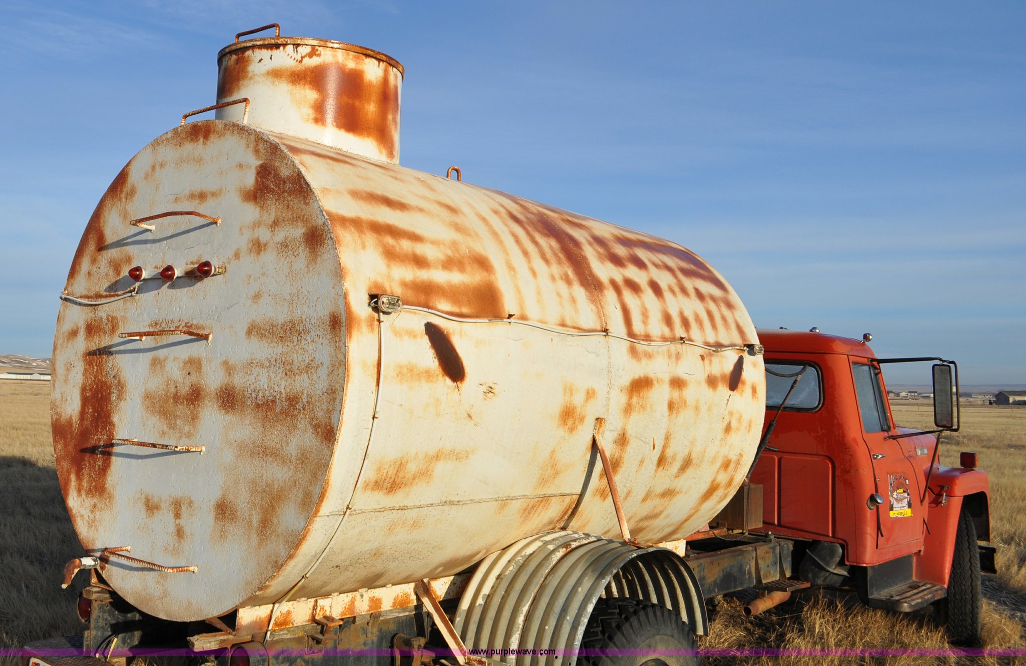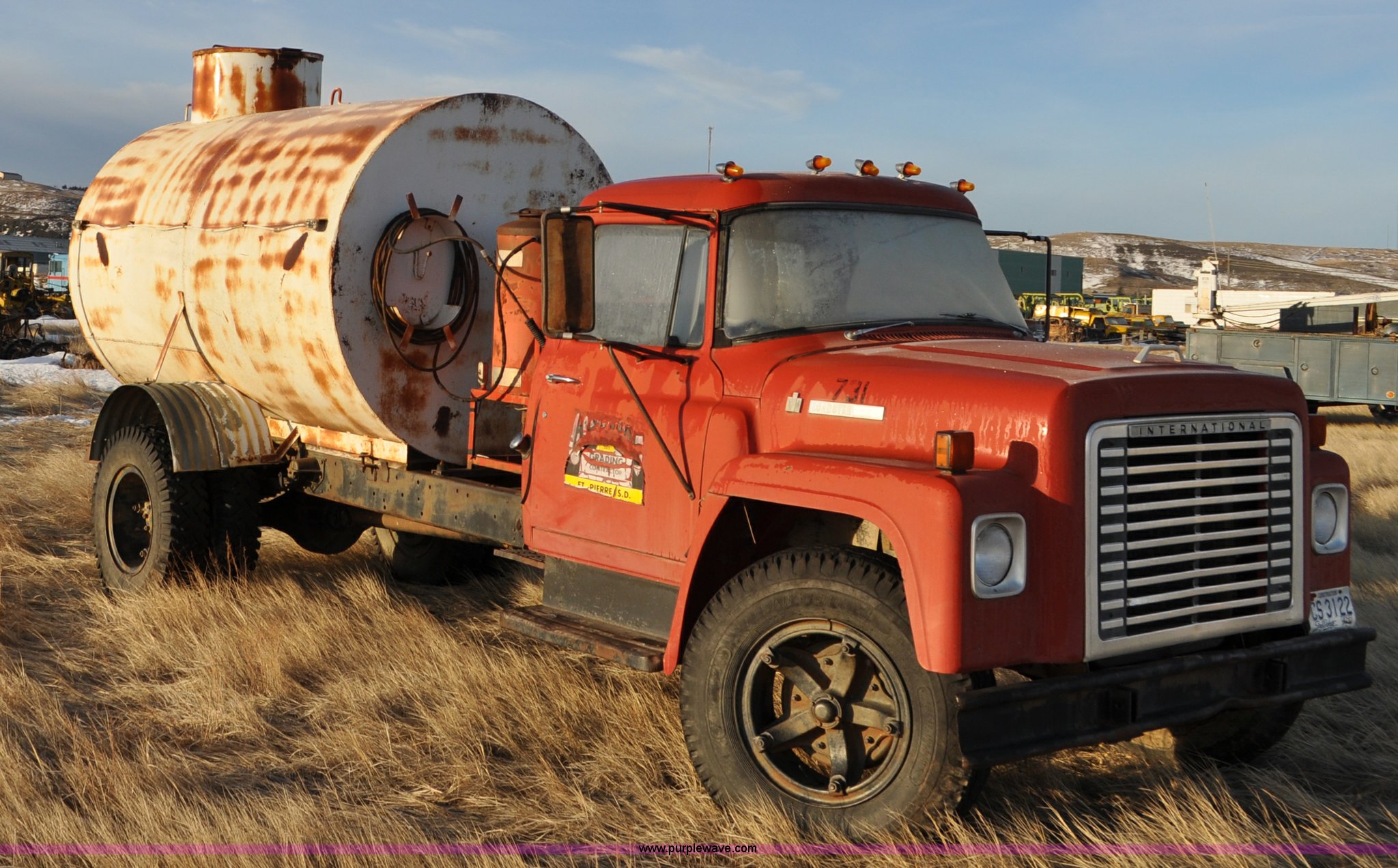 Purple Wave is selling a used Tank Truck or Water Truck in South Dakota. This item is a 1975 International 16010 Loadstar washer truck with the following: 27,257 miles on odometer, Eight cylinder gas engine, Five speed manual transmission, Two speed rear end, Heat, Manual windows and locks, Vinyl interior, Hotsy pressure washer, Propane heat, Pump turns, Missing engine, Water tank, 187" wheel base, 9.00-20 tires, GVWR 23,660 lbs, No fuel, Dead battery, Running when parked, Unit# 731