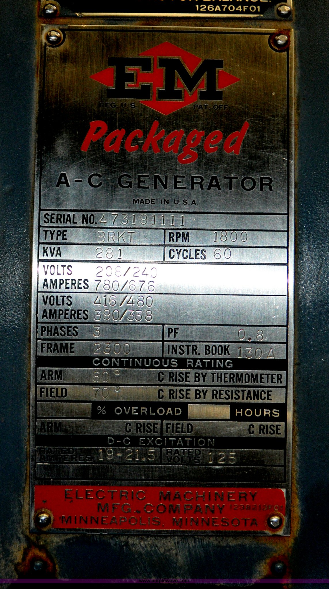 Take a look at this used Electric Machinery A-C generator being sold on March 13th, 2013 in the SOLD! March 13 Upper Midwest Construction Equipment Auction. Take a look at all of the item information below or take a look at similar auctions for Generators and Light Plants.
