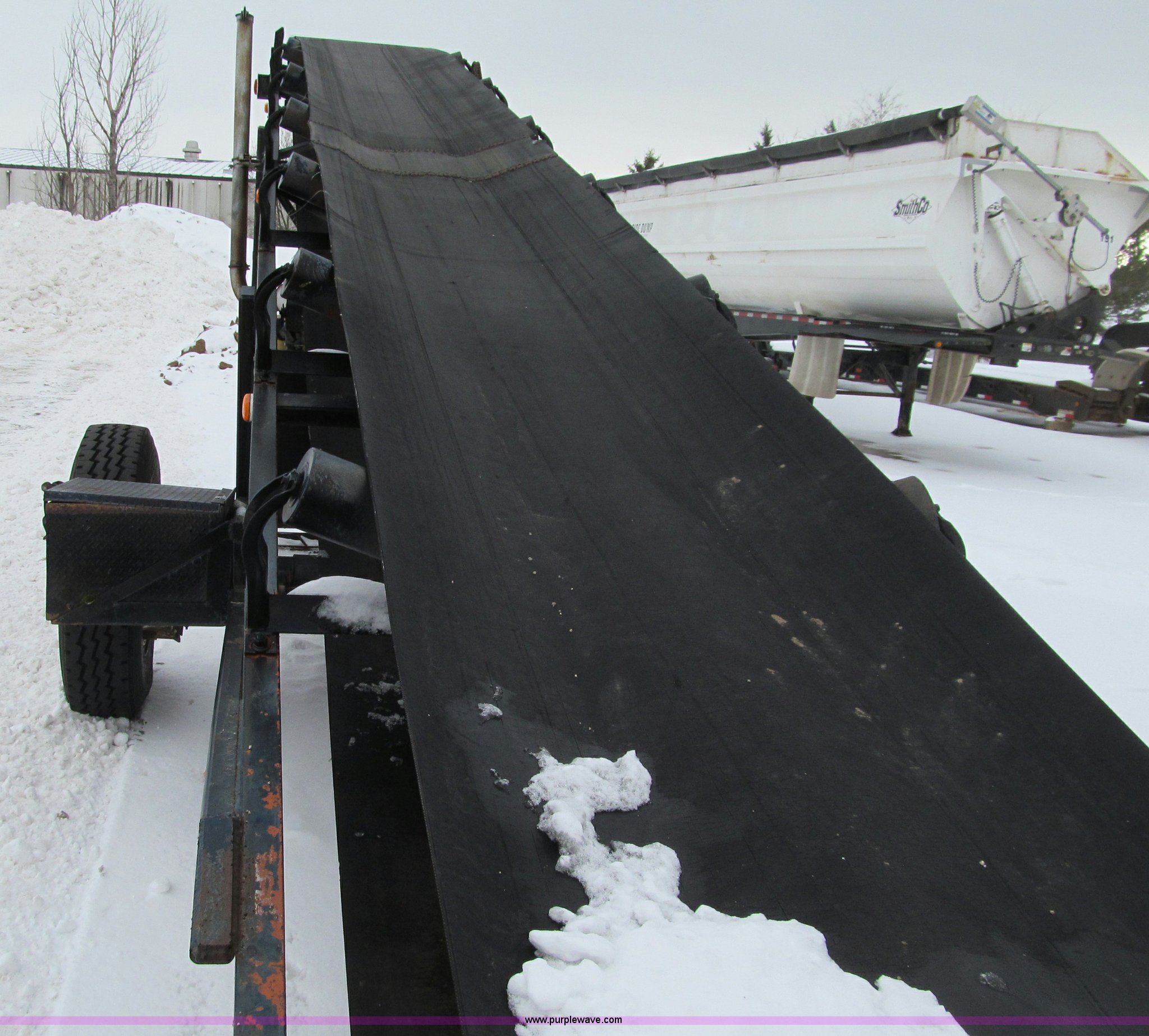 Purple Wave is selling a used Auger or Conveyor in Minnesota. This item is a Shop built loading conveyor with the following: GM diesel engine, Unknown operating condition, 7,020 hours on meter, 30' conveyor, 10' 6" load hopper, 45' overall length, Portable, Pintle hitch, (17) rollers, 36"W belt