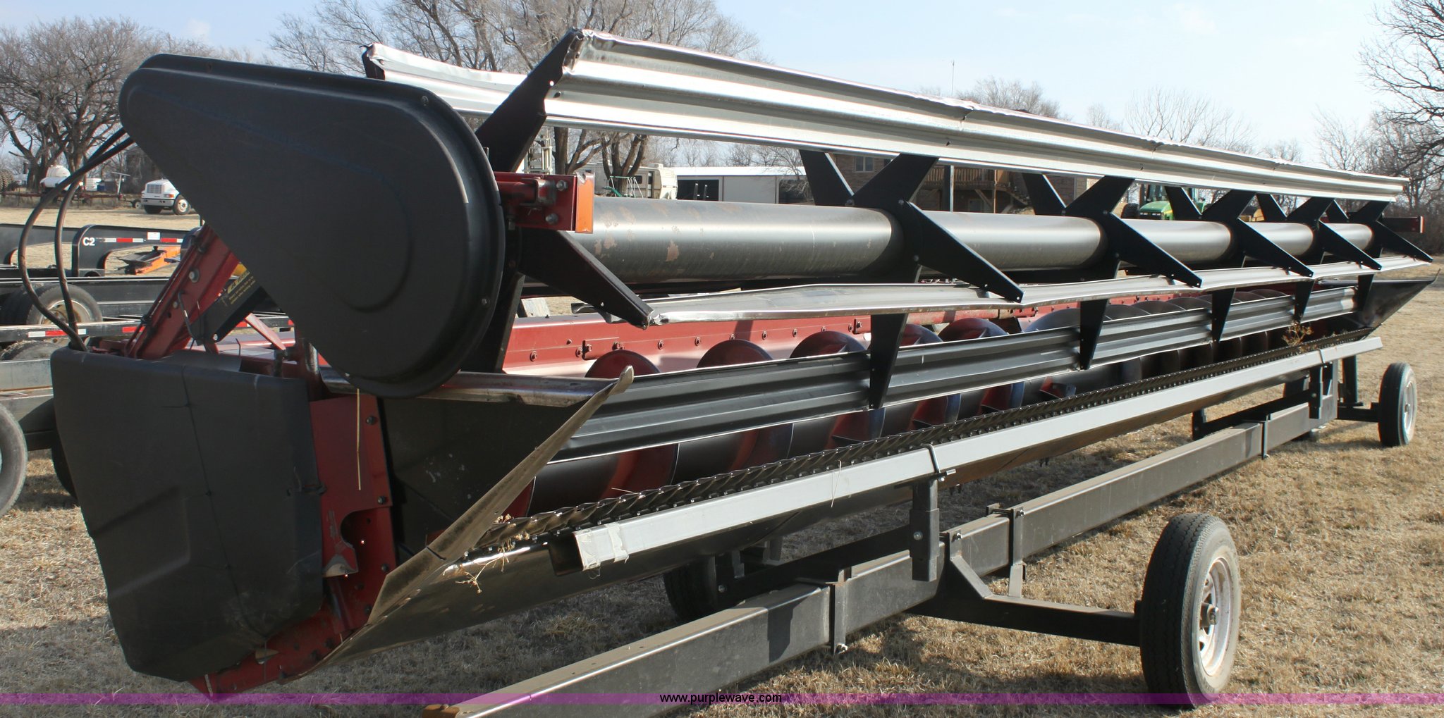 Purple Wave is selling a used Platform or Stripper Head in Kansas. This item is a Case 1010 30' rigid head with the following: 30C07DG, Fore and aft, Hydraulic reel raise and lower, Shedded, Serial JJC0129204