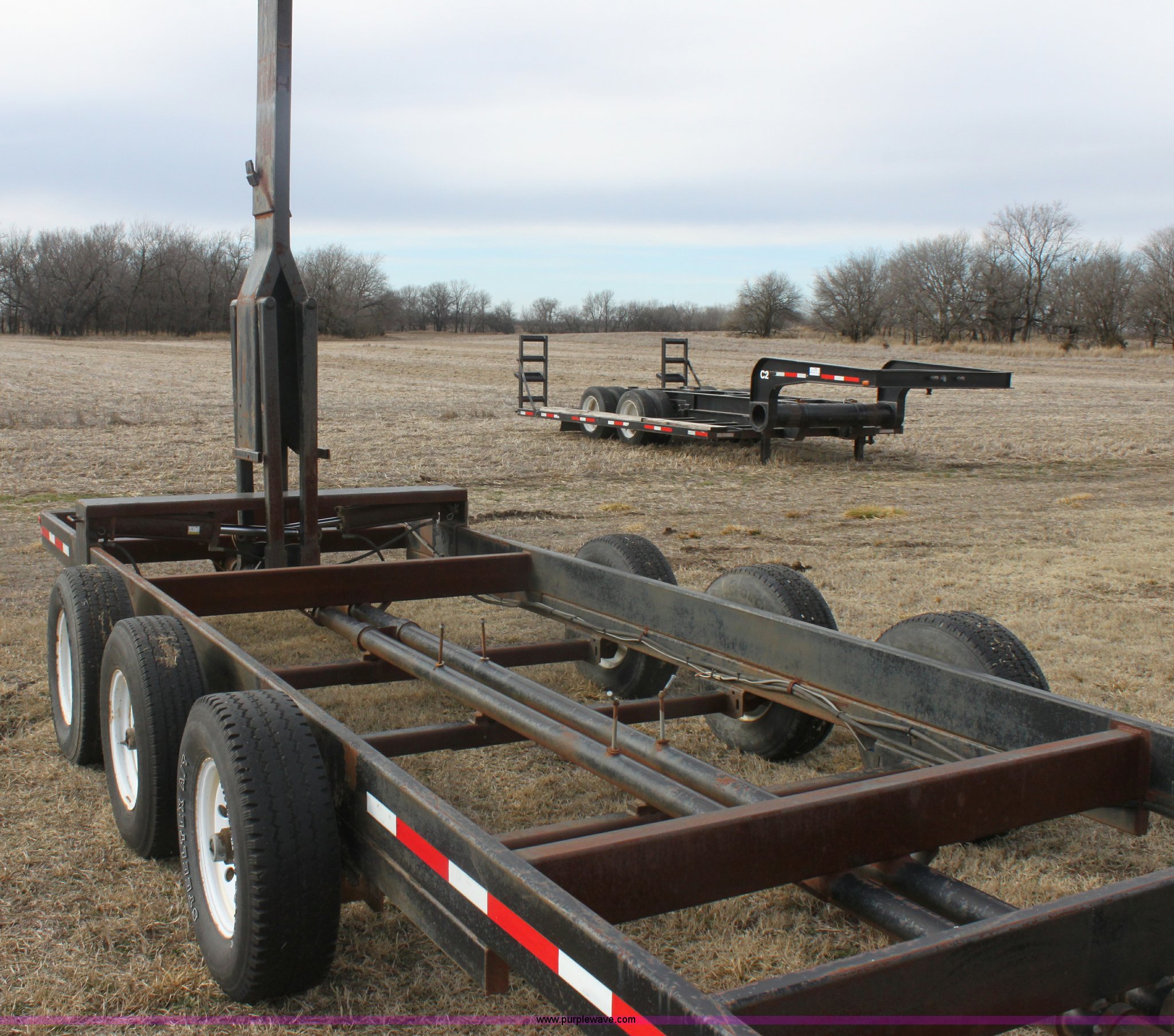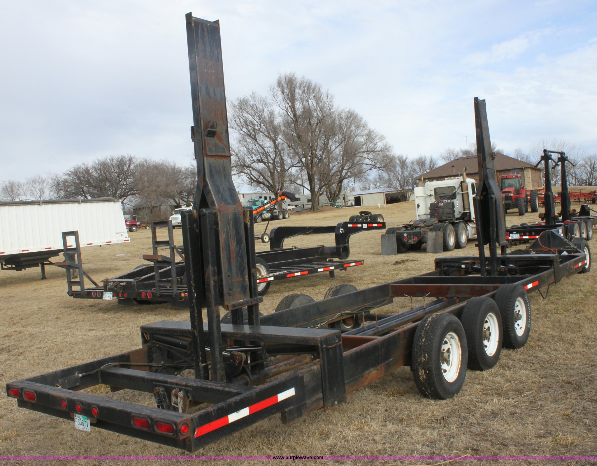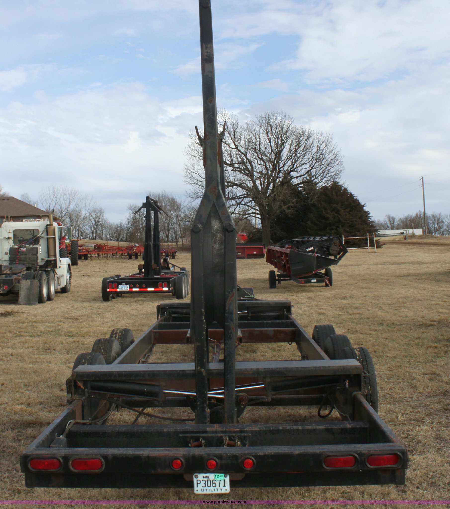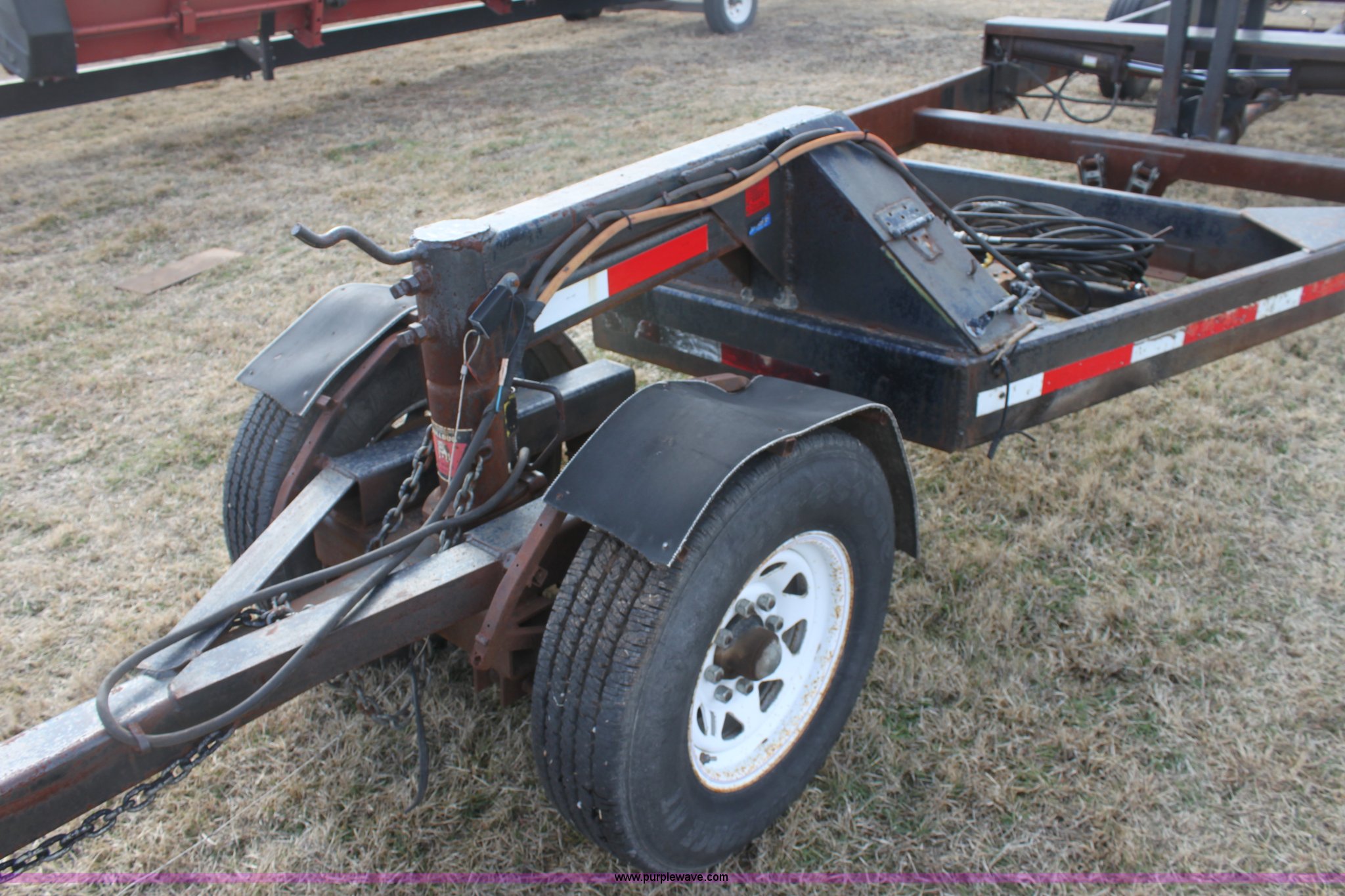 Purple Wave is selling a used Ag Equip. or Header Trailer in Kansas. This item is a 2003 shop built triple axle double header trailer with the following: Self contained hydraulic system, Electric over hydraulic pump, Constructed to handle up to 30' headers, Electric brakes, Pintle hitch, Bull Dog jack, 7,000 lbs axles, 16" 10 ply tires
