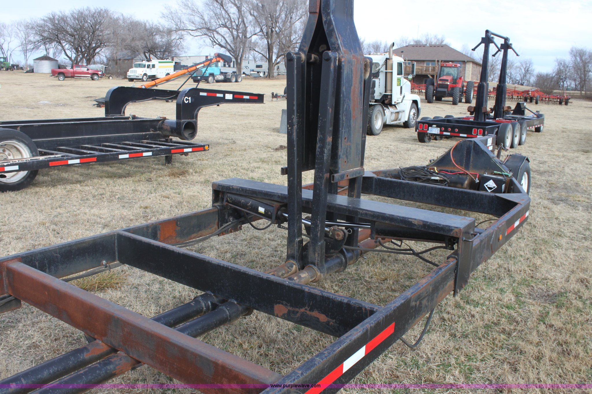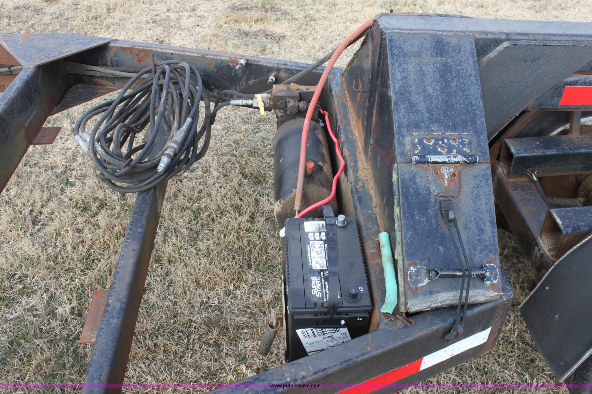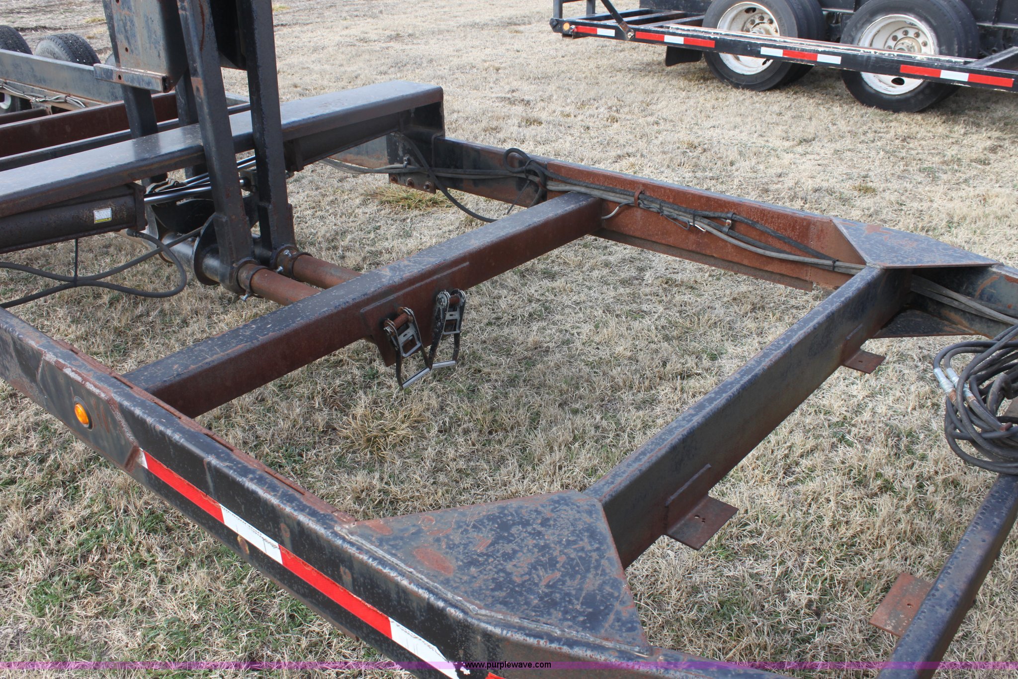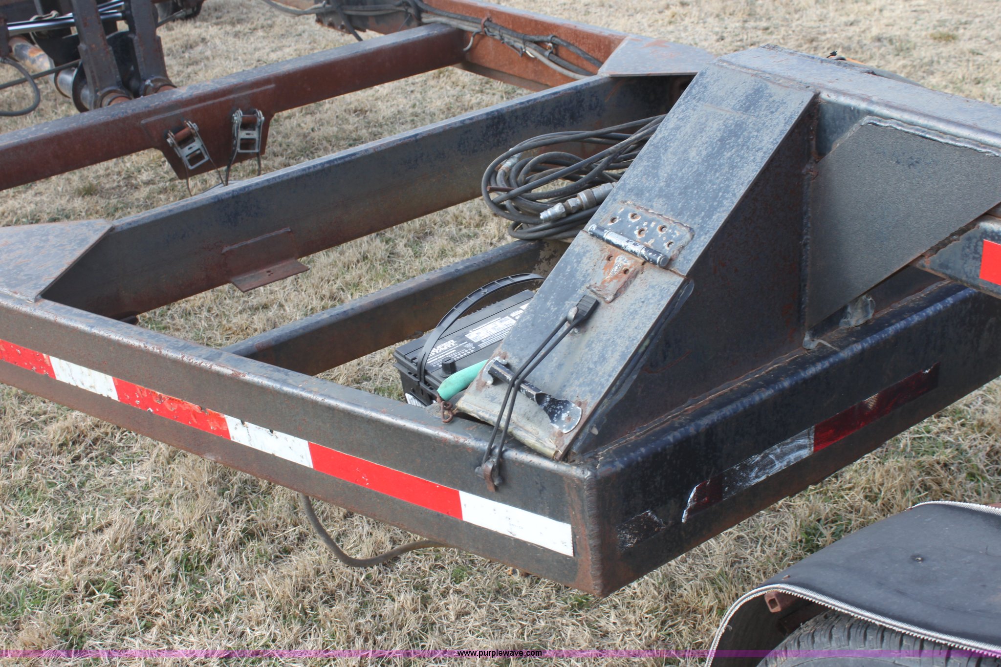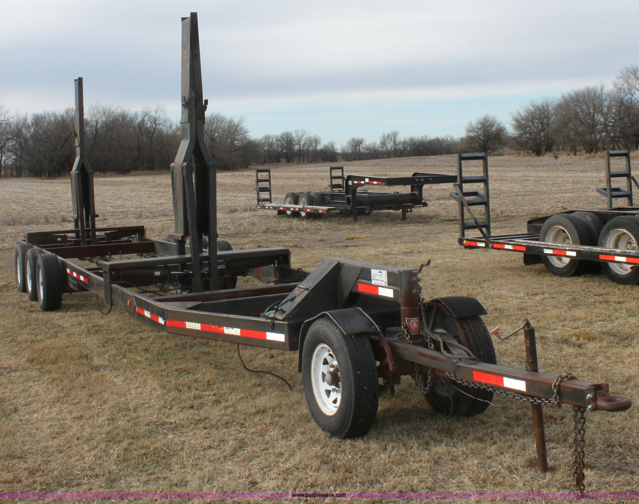 Purple Wave is selling a used Ag Equip. or Header Trailer in Kansas. This item is a 2003 shop built triple axle double header trailer with the following: Self contained hydraulic system, Electric over hydraulic pump, Constructed to handle up to 30' headers, Electric brakes, Pintle hitch, Bull Dog jack, 7,000 lbs axles, 16" 10 ply tires