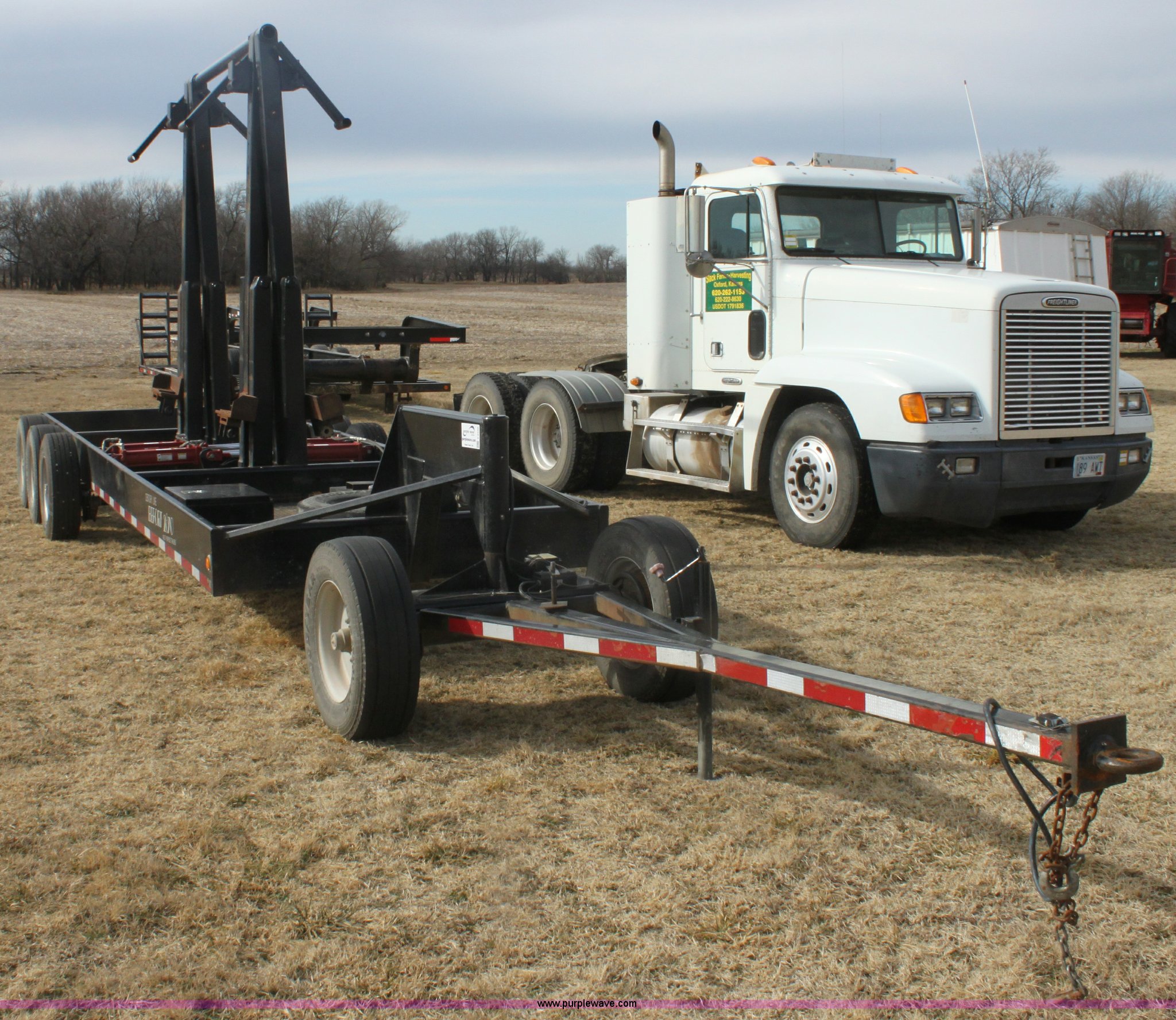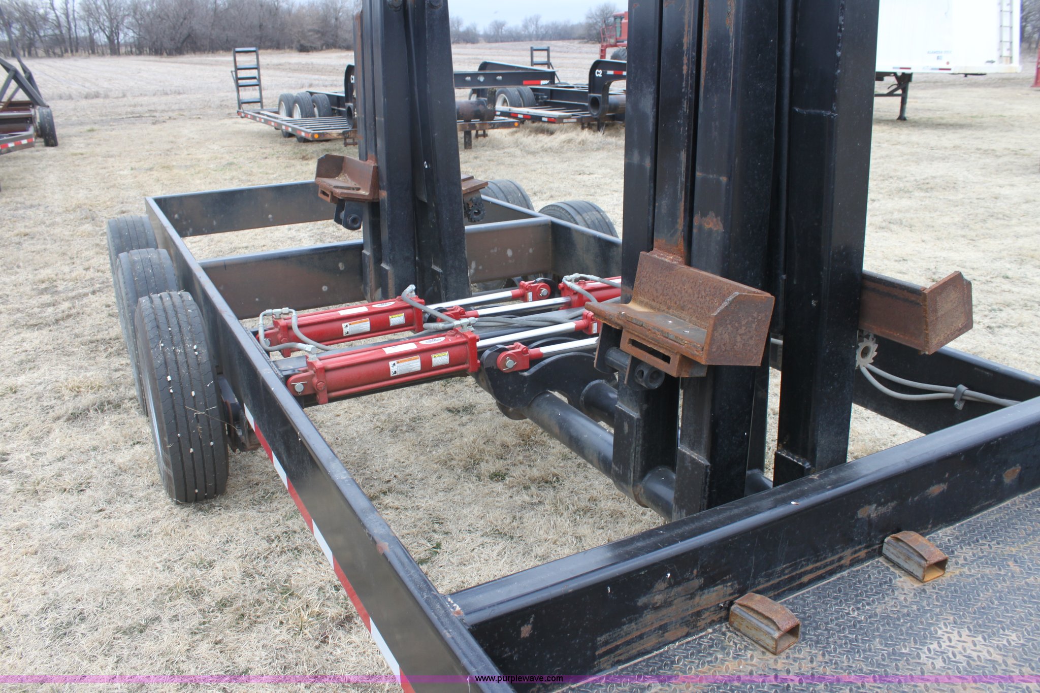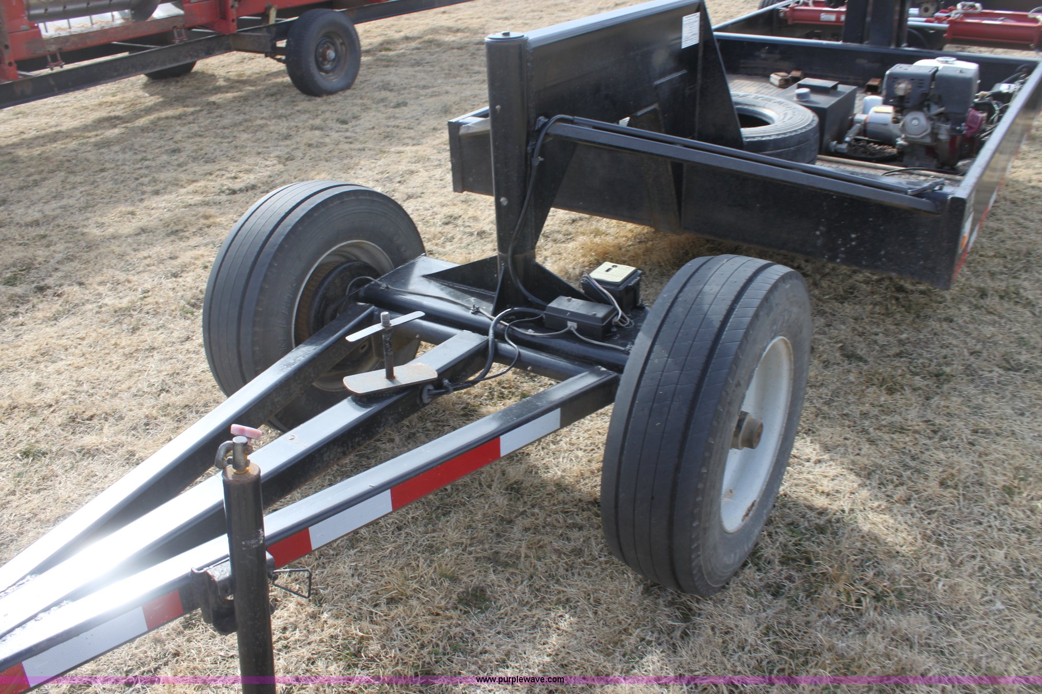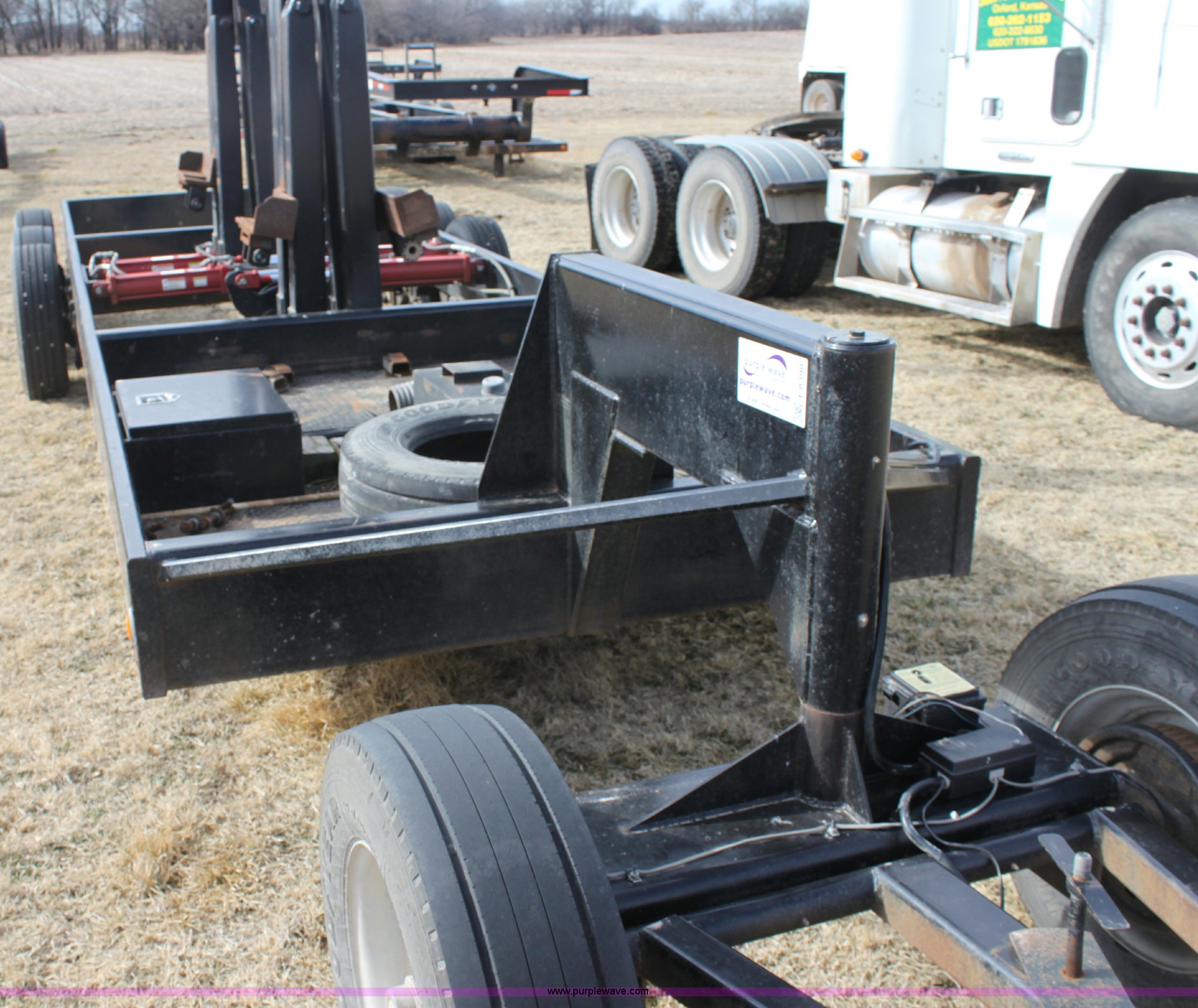 Purple Wave is selling a used Ag Equip. or Header Trailer in Kansas. This item is a 2008 Century Line Befort 2870 triple axle multi purpose header trailer with the following: Self contained hydraulic system, Honda GX390 gas engine, Electric start, Toolbox, Setup to handle up to 40' draper or rigid head, Tie down straps, Pintle hitch, 17.5 tires, Goodyear Marathon 245/70R17.5 spare tire, GVWR 26,000 lbs