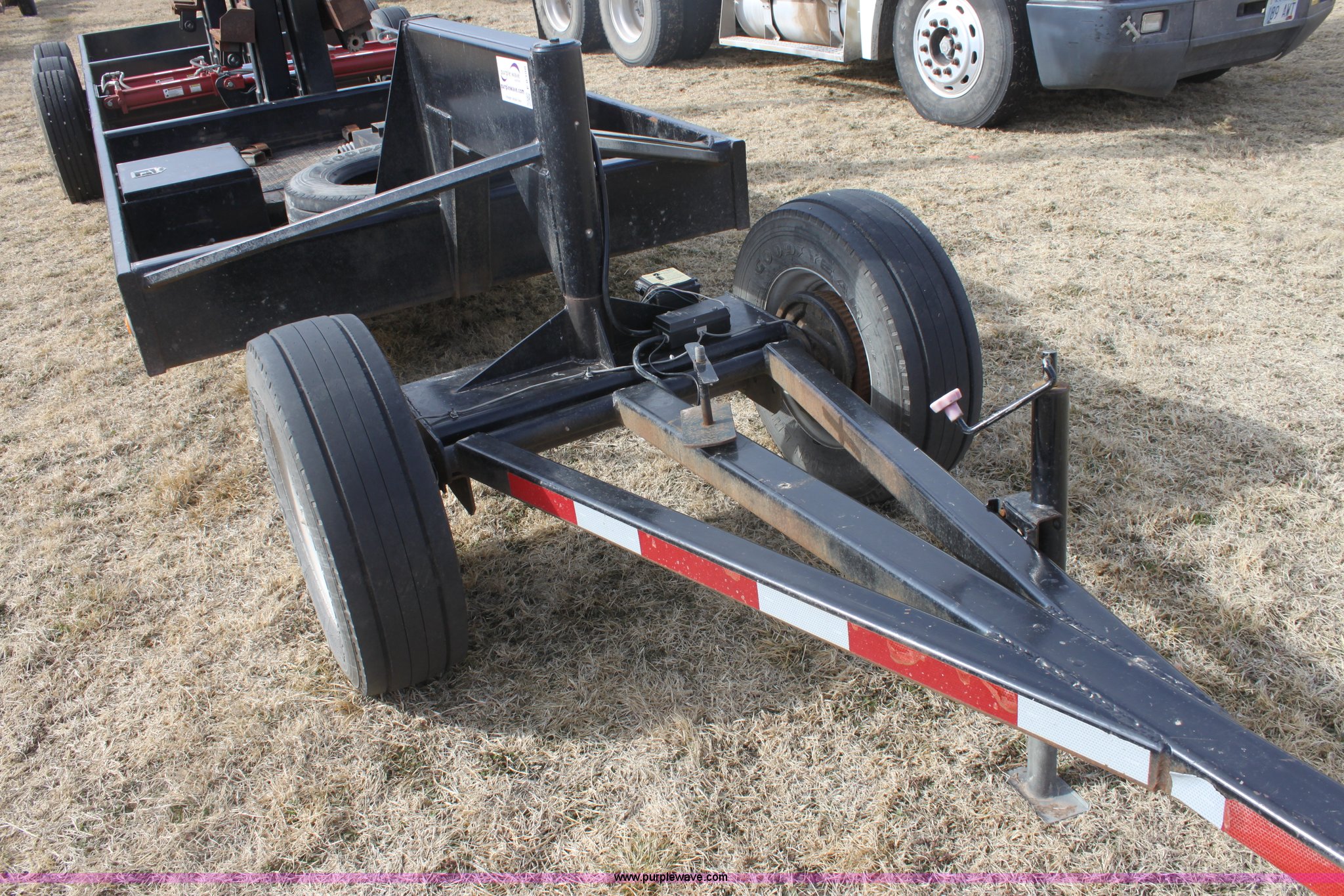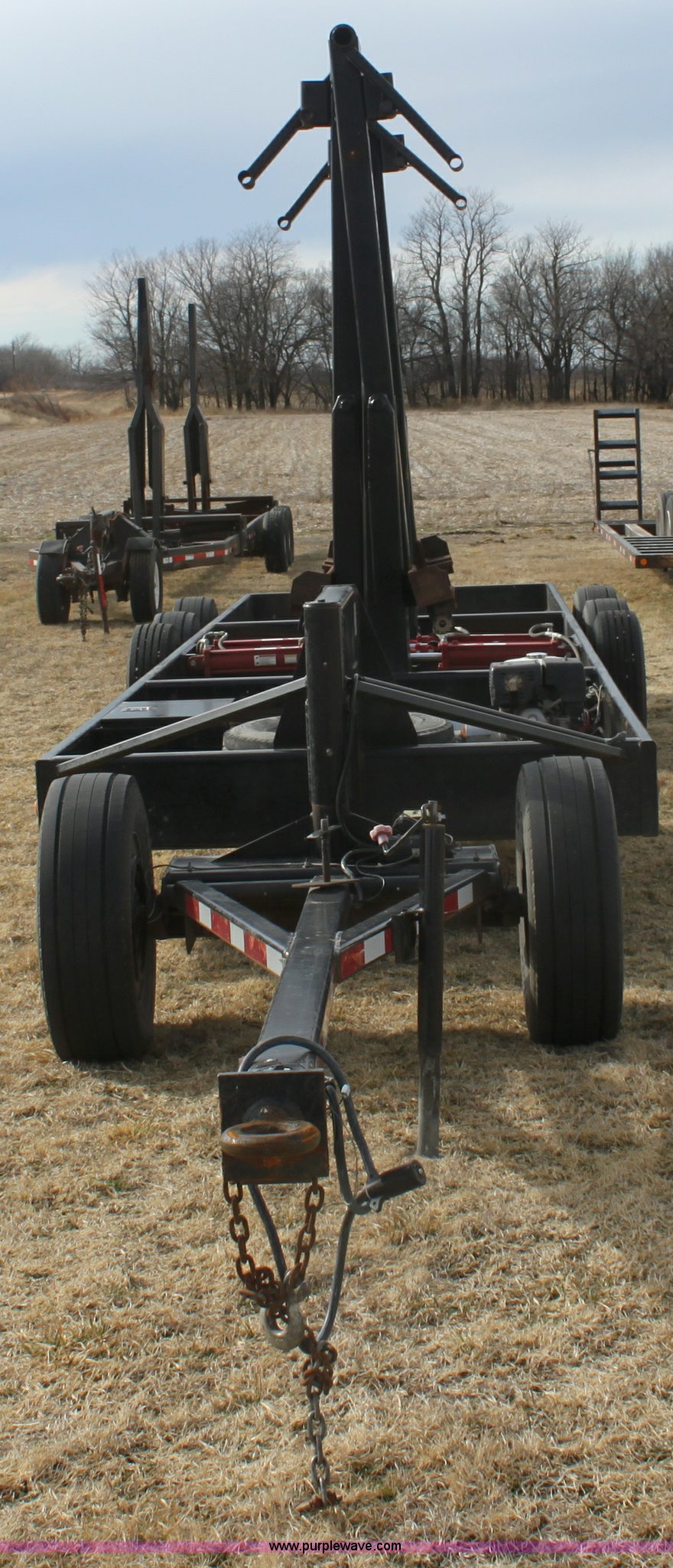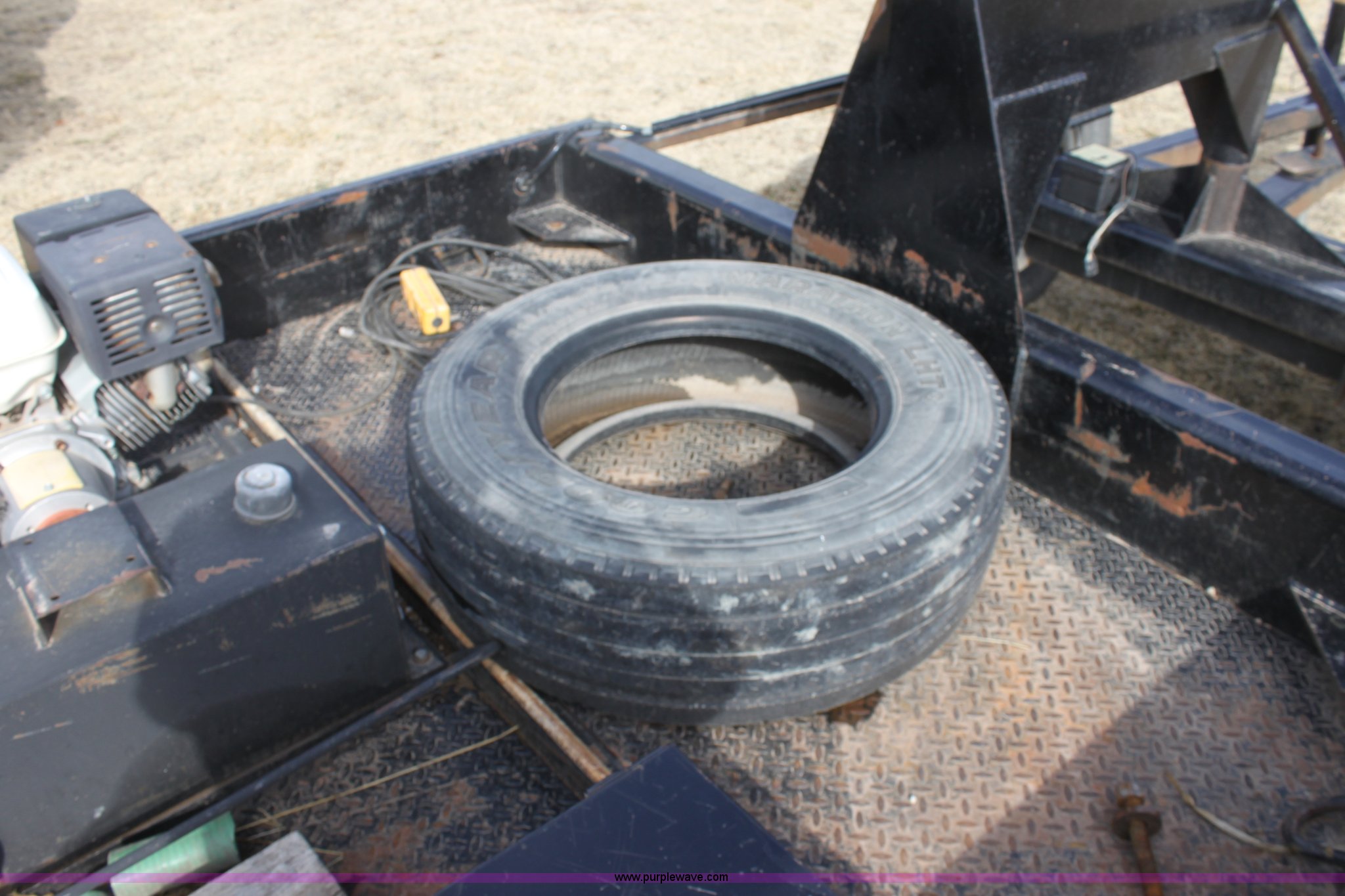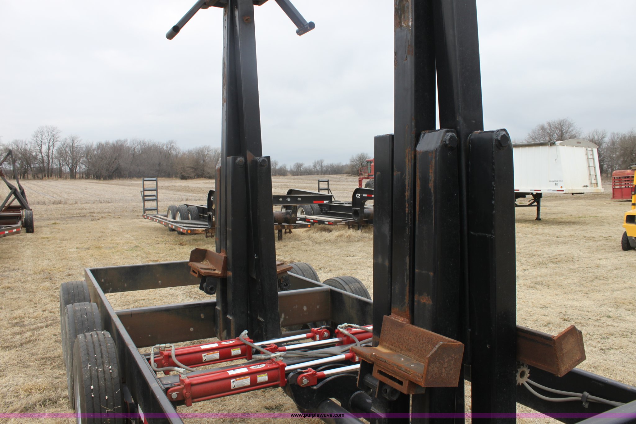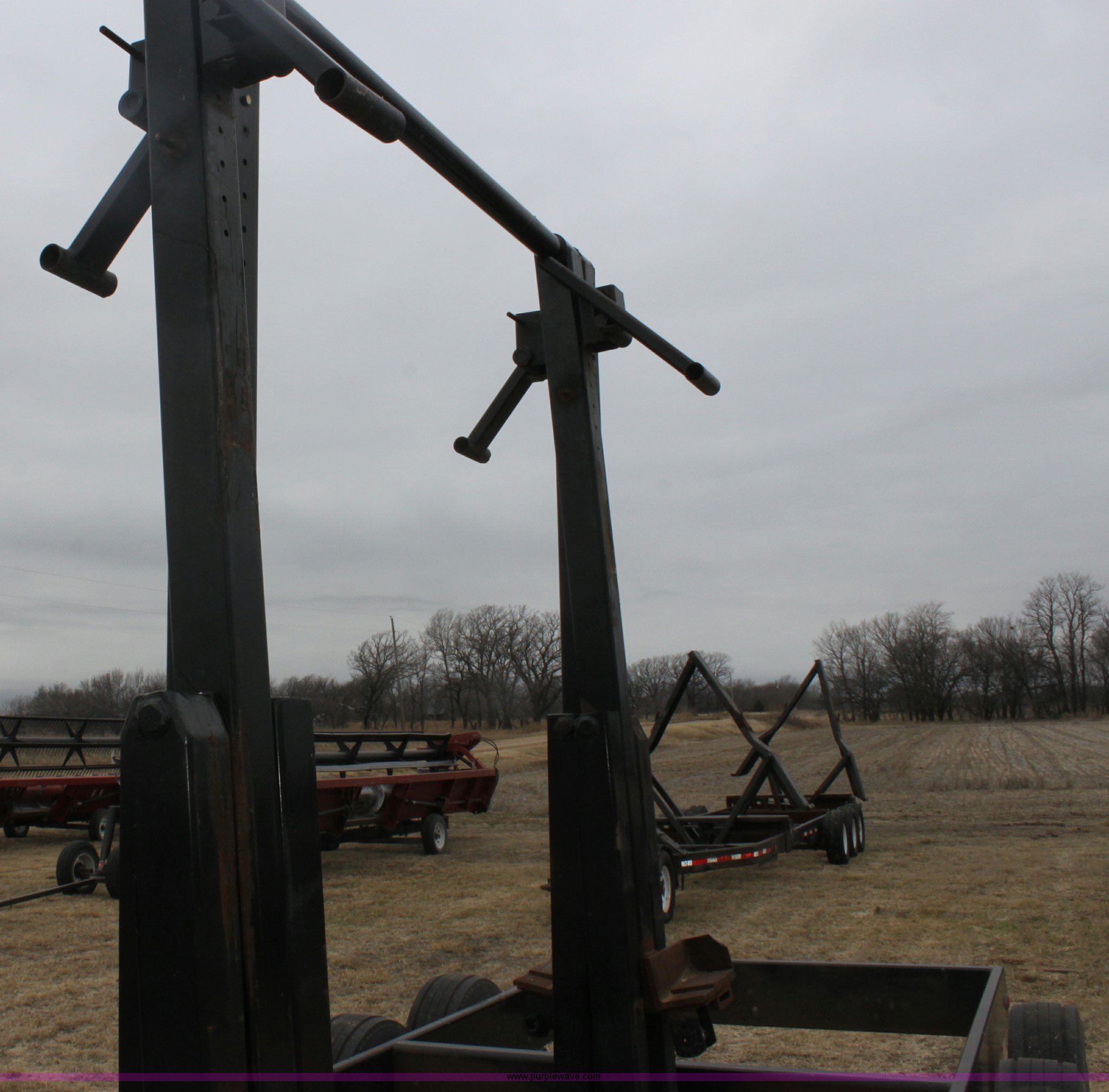 Purple Wave is selling a used Ag Equip. or Header Trailer in Kansas. This item is a 2008 Century Line Befort 2870 triple axle multi purpose header trailer with the following: Self contained hydraulic system, Honda GX390 gas engine, Electric start, Toolbox, Setup to handle up to 40' draper or rigid head, Tie down straps, Pintle hitch, 17.5 tires, Goodyear Marathon 245/70R17.5 spare tire, GVWR 26,000 lbs