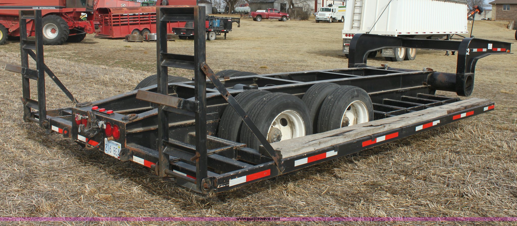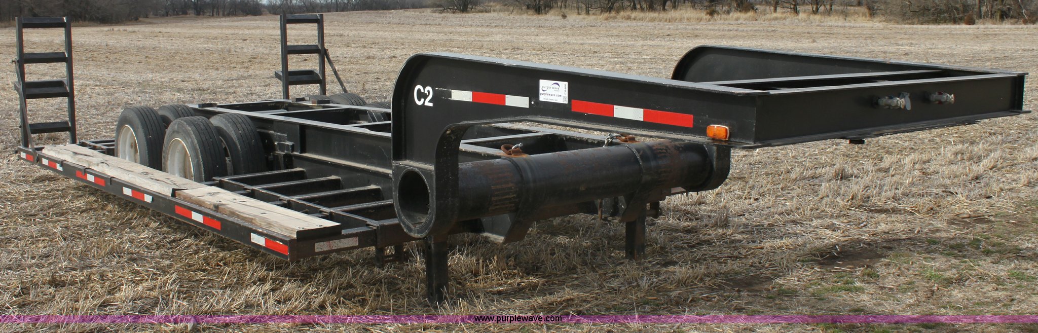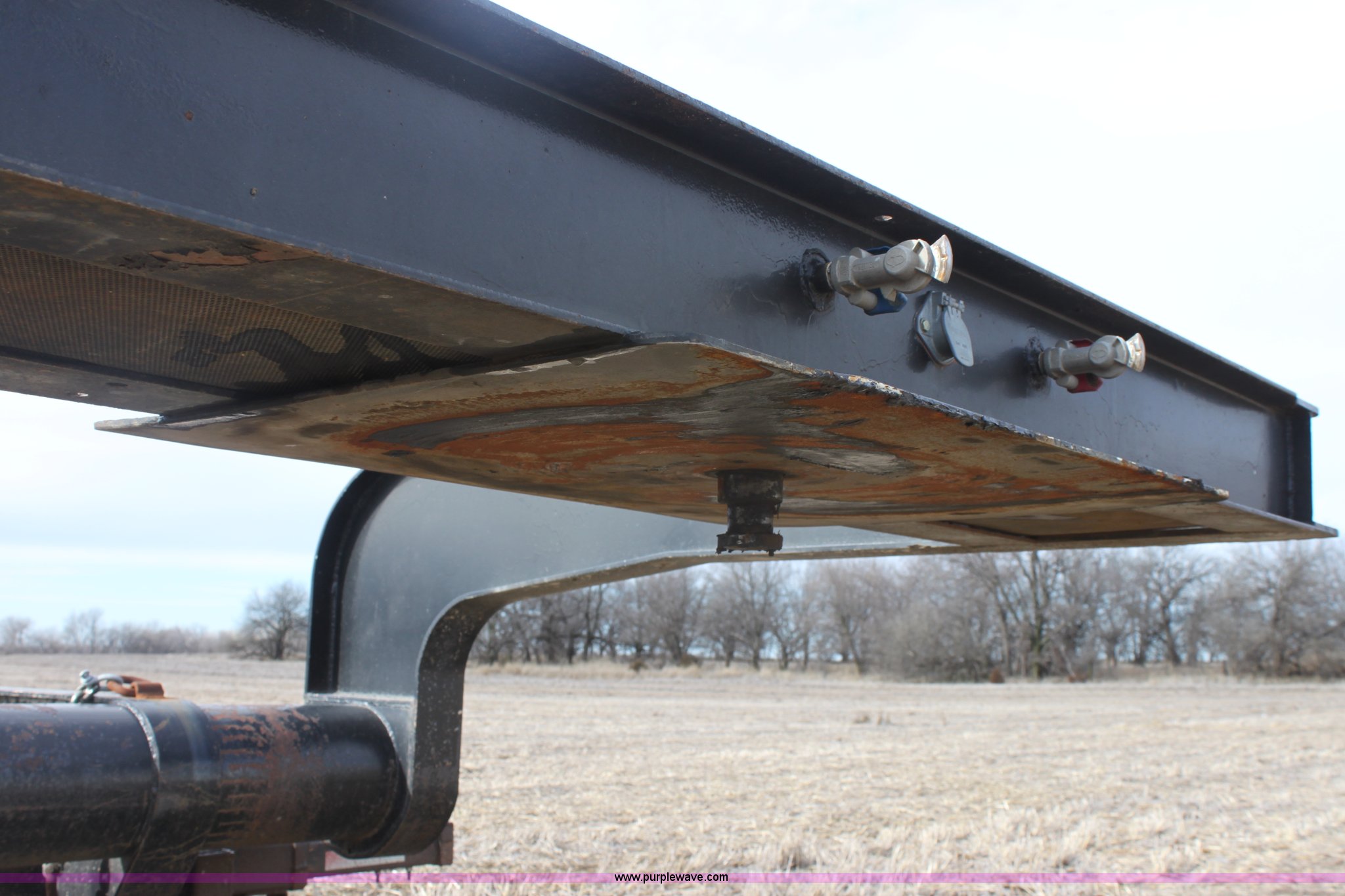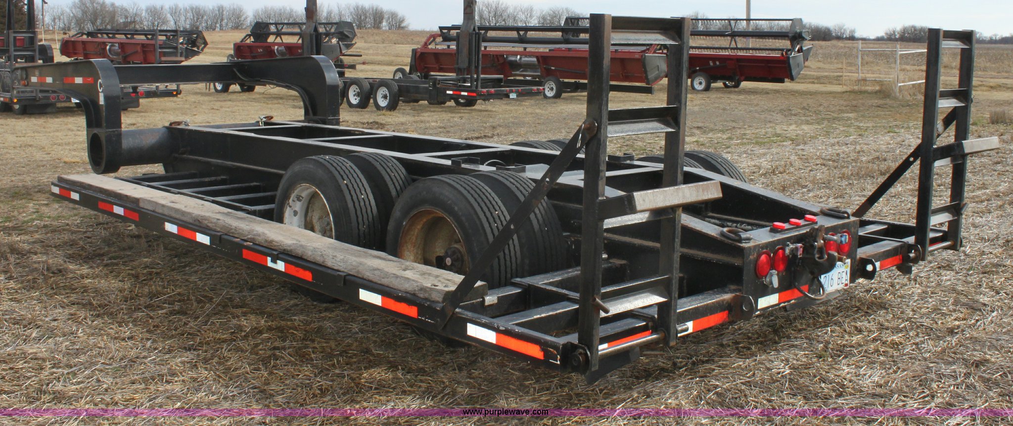 Purple Wave is selling a used Ag Equip. or Header Trailer in Kansas. This item is a 1997 combine/sprayer trailer with the following: Wide neck, Dual tandem axle, Folding ramps, Expandable deck, Spring suspension, (4) D-ring tie downs, Rear pintle hitch, Rear air hook ups, Rear light hook ups, 225/70R22.5 tires