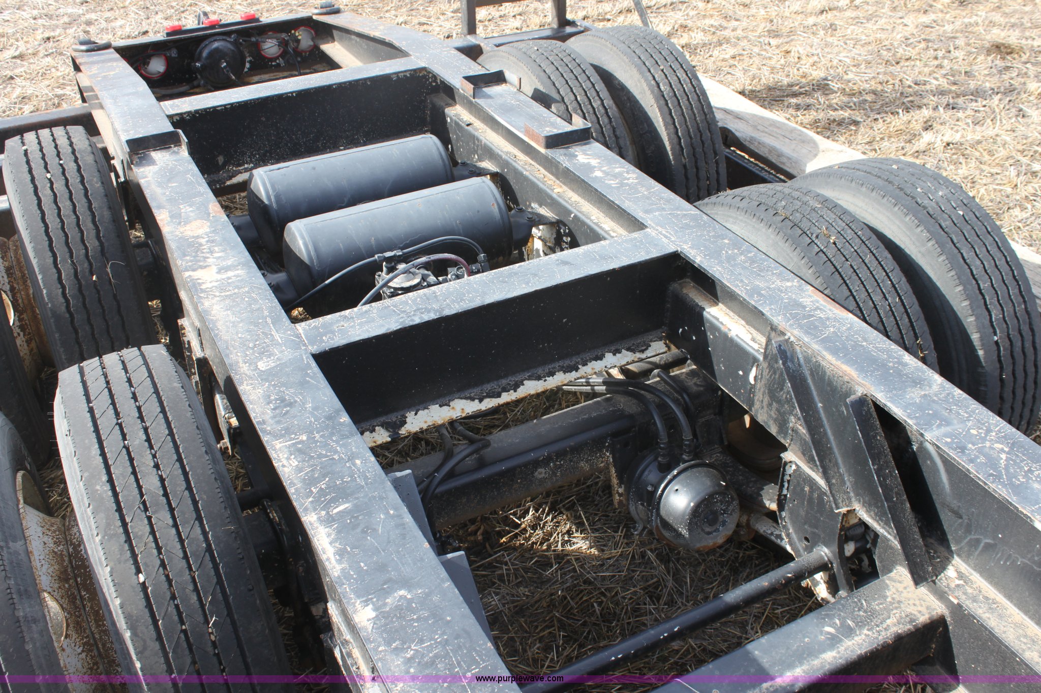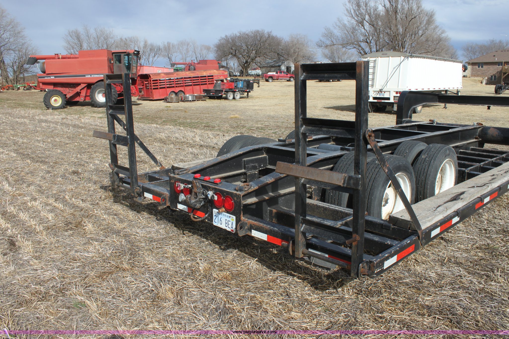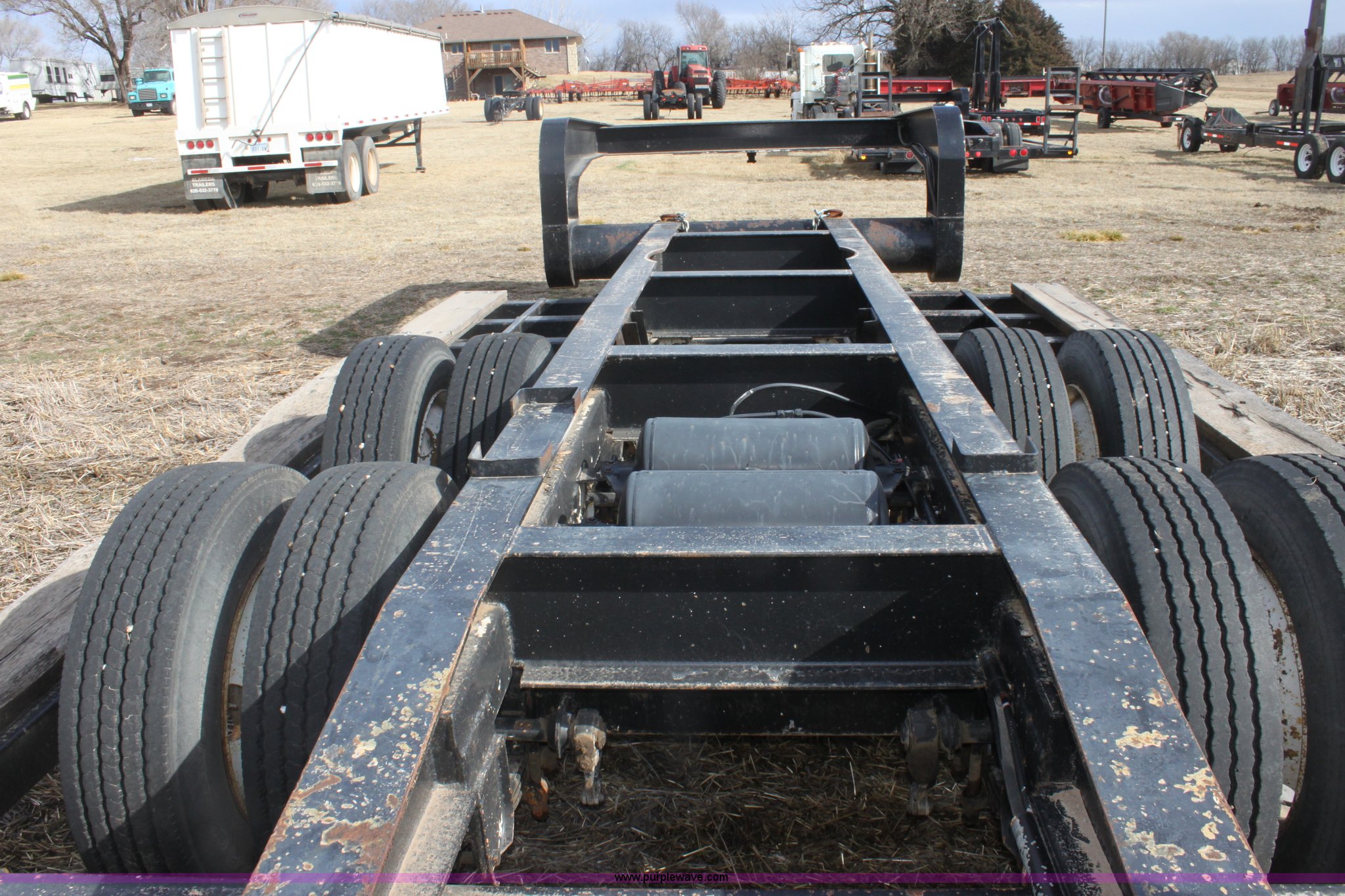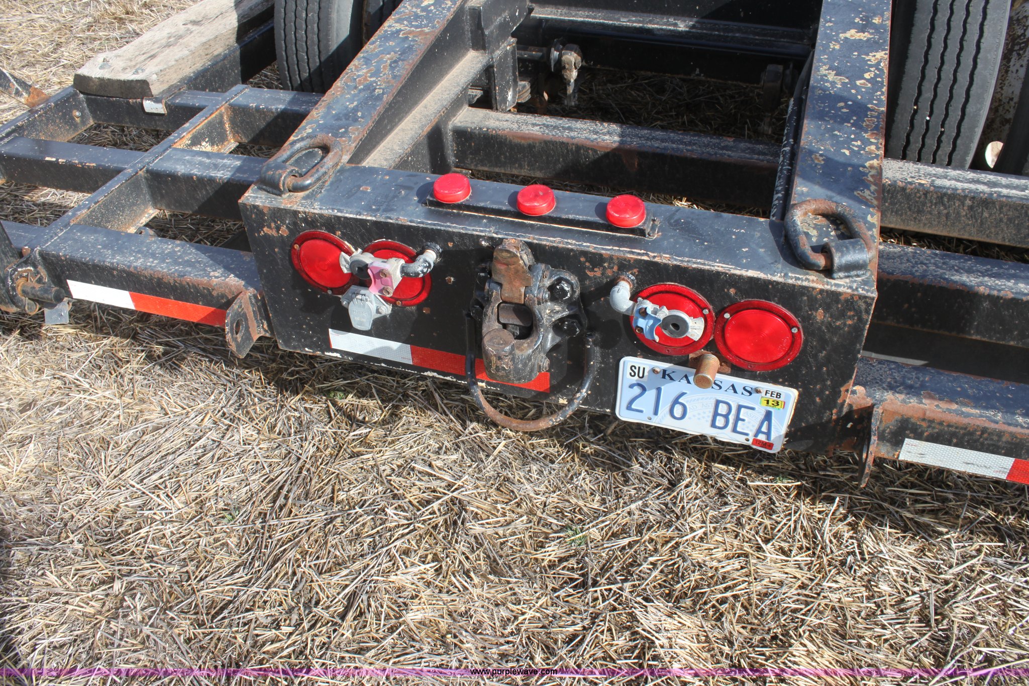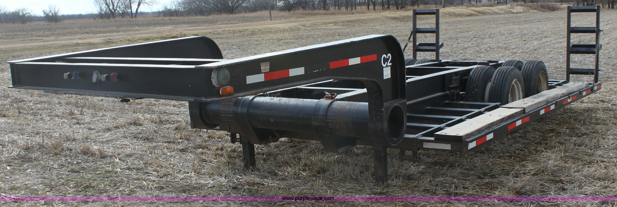 Purple Wave is selling a used Ag Equip. or Header Trailer in Kansas. This item is a 1997 combine/sprayer trailer with the following: Wide neck, Dual tandem axle, Folding ramps, Expandable deck, Spring suspension, (4) D-ring tie downs, Rear pintle hitch, Rear air hook ups, Rear light hook ups, 225/70R22.5 tires