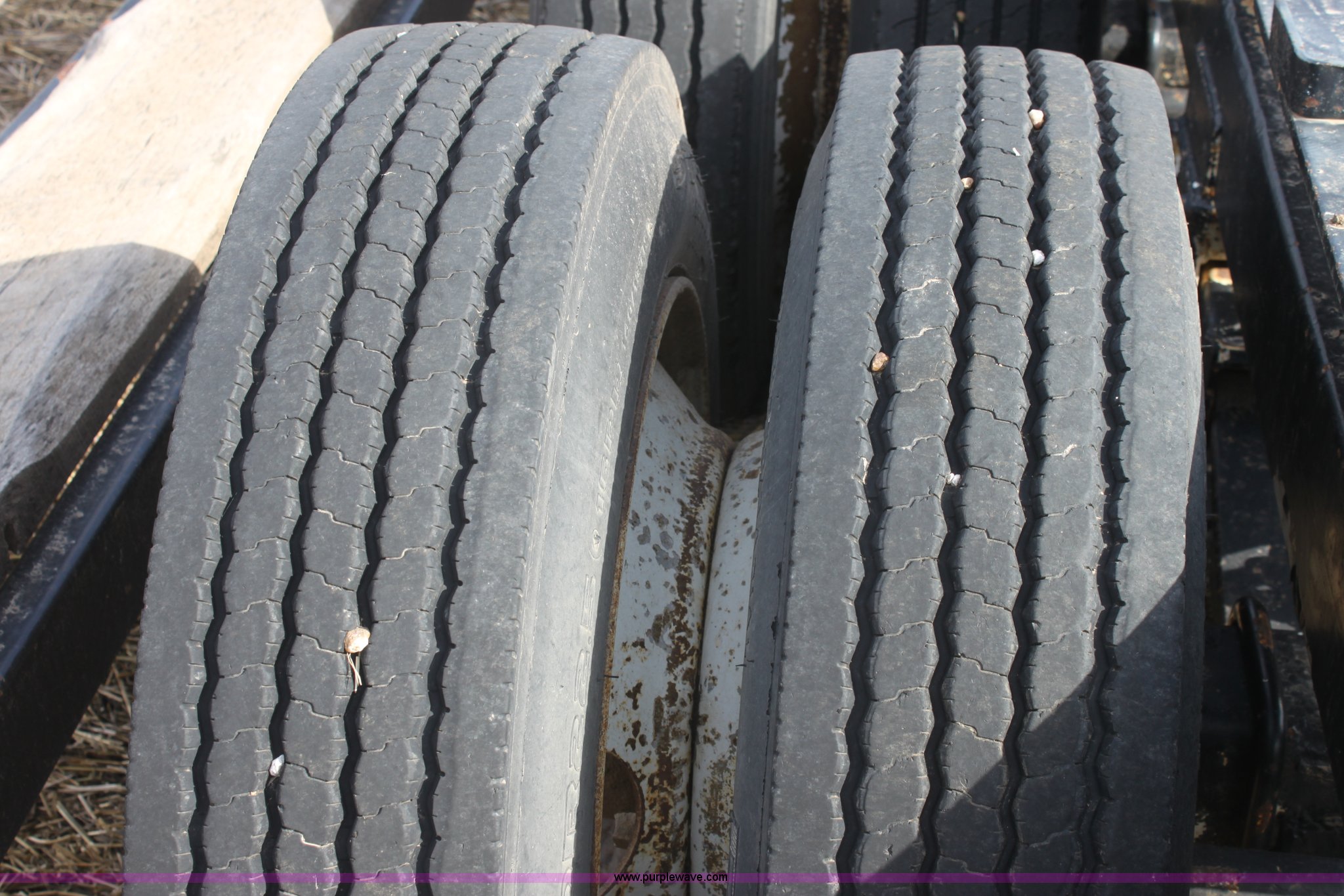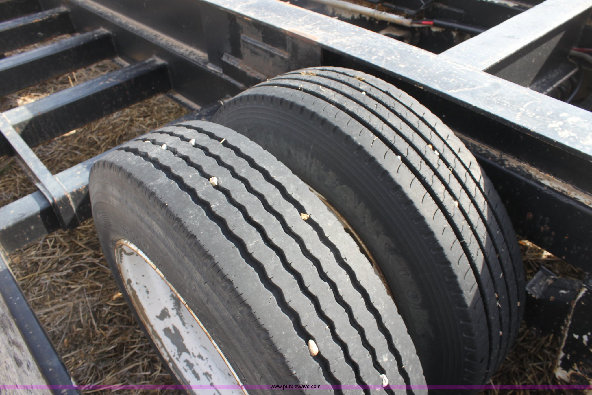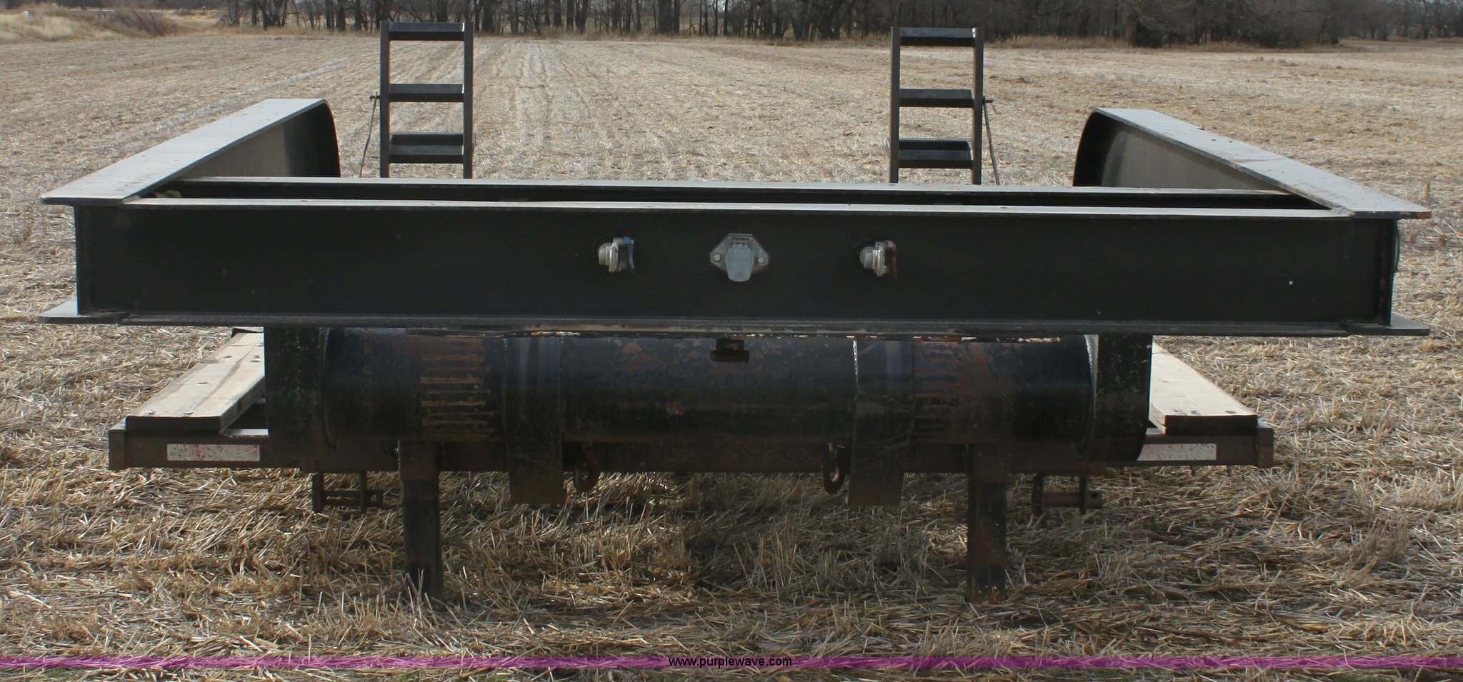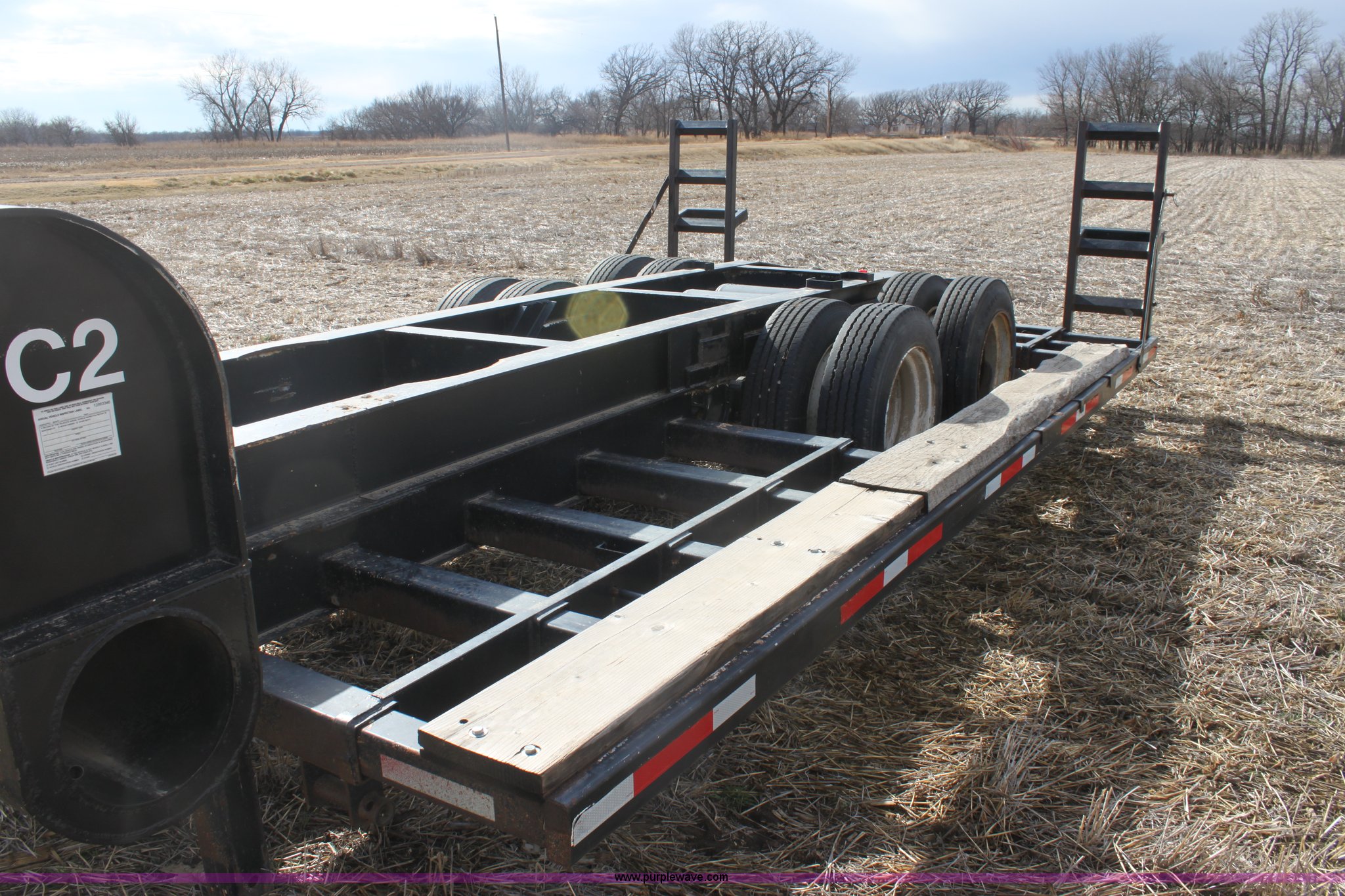 Purple Wave is selling a used Ag Equip. or Header Trailer in Kansas. This item is a 1997 combine/sprayer trailer with the following: Wide neck, Dual tandem axle, Folding ramps, Expandable deck, Spring suspension, (4) D-ring tie downs, Rear pintle hitch, Rear air hook ups, Rear light hook ups, 225/70R22.5 tires