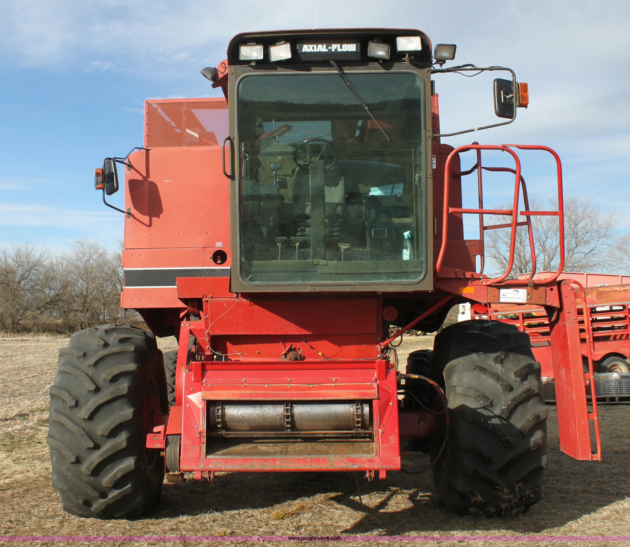 Purple Wave is selling a used Combine in Kansas. This item is a 1992 Case IH 1680 Axial-Flow 222BC RWA combine with the following: 3,880 engine hours on meter, Cummins 8.3L turbo diesel engine, Engine is new, Two speed transmission, Rear wheel assist, AM/FM, AC, Shaft speed monitor, Auto header height control, Fore/aft reel control, Reel speed control, In cab rotor and fan controls, AFS yield monitor, AFS moisture watch, Vittitoe chaff spreader, 30.5L-32 front tires, 18.4R26 rear tires, (2) sets of concaves, Large and small wire, (2) sets of grates, Bar and slotted, Always shedded, One owner, Kenwood two-way radio not included, Serial JJJC0118212