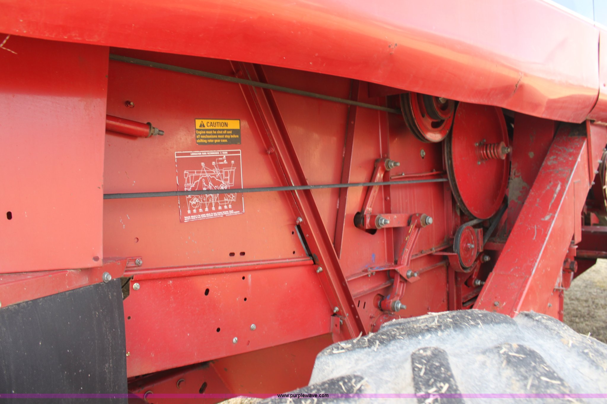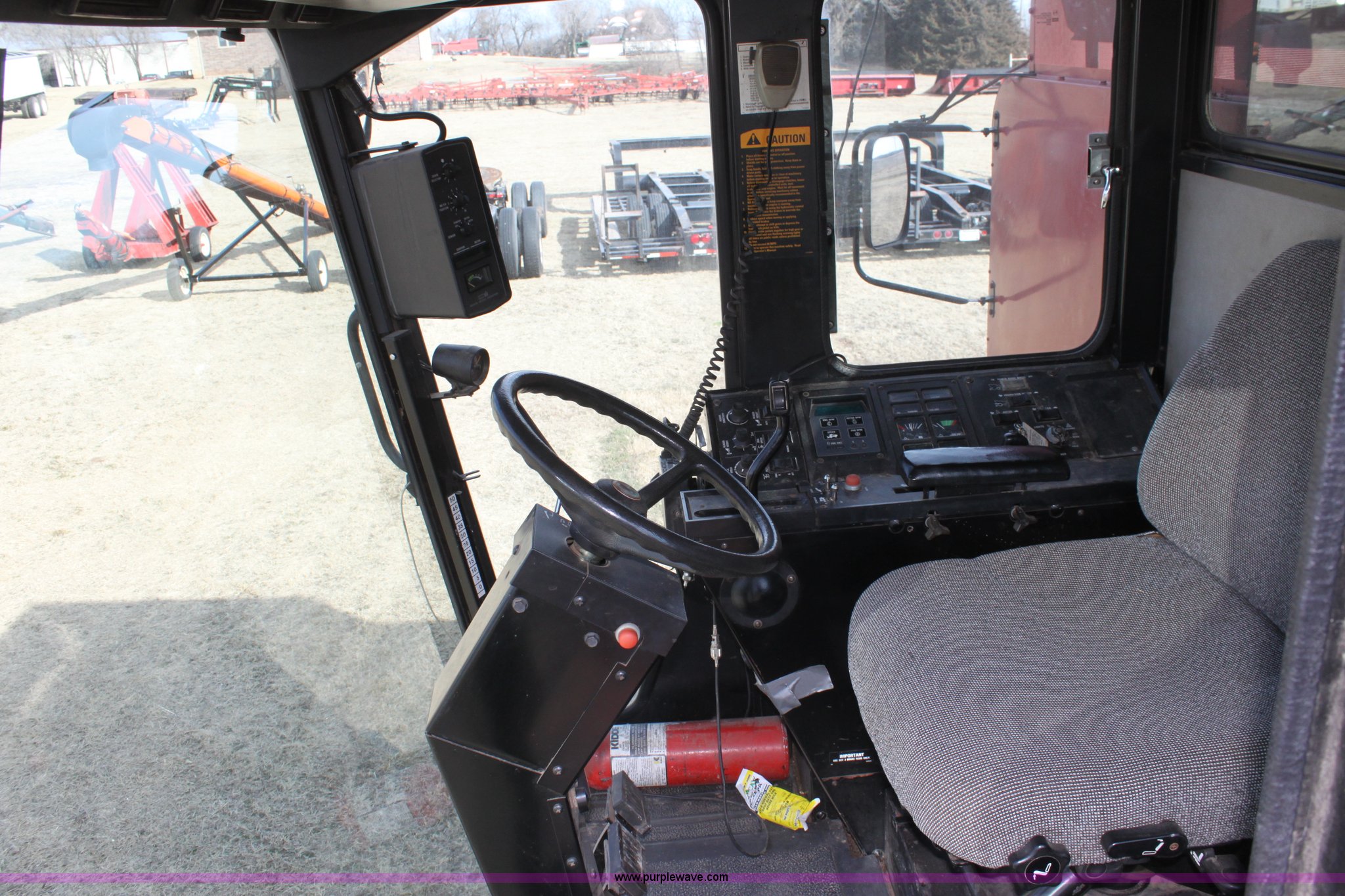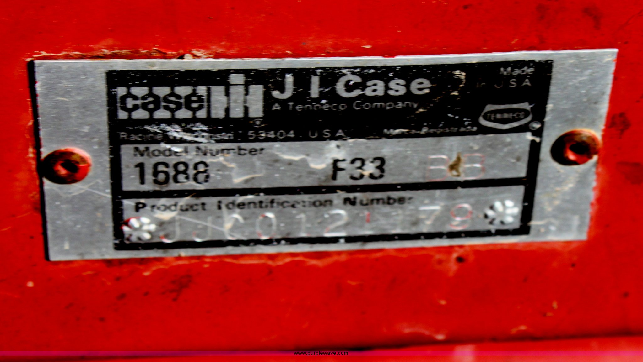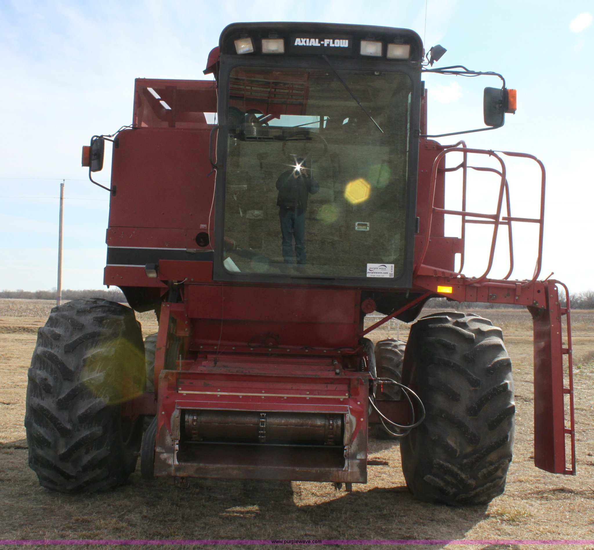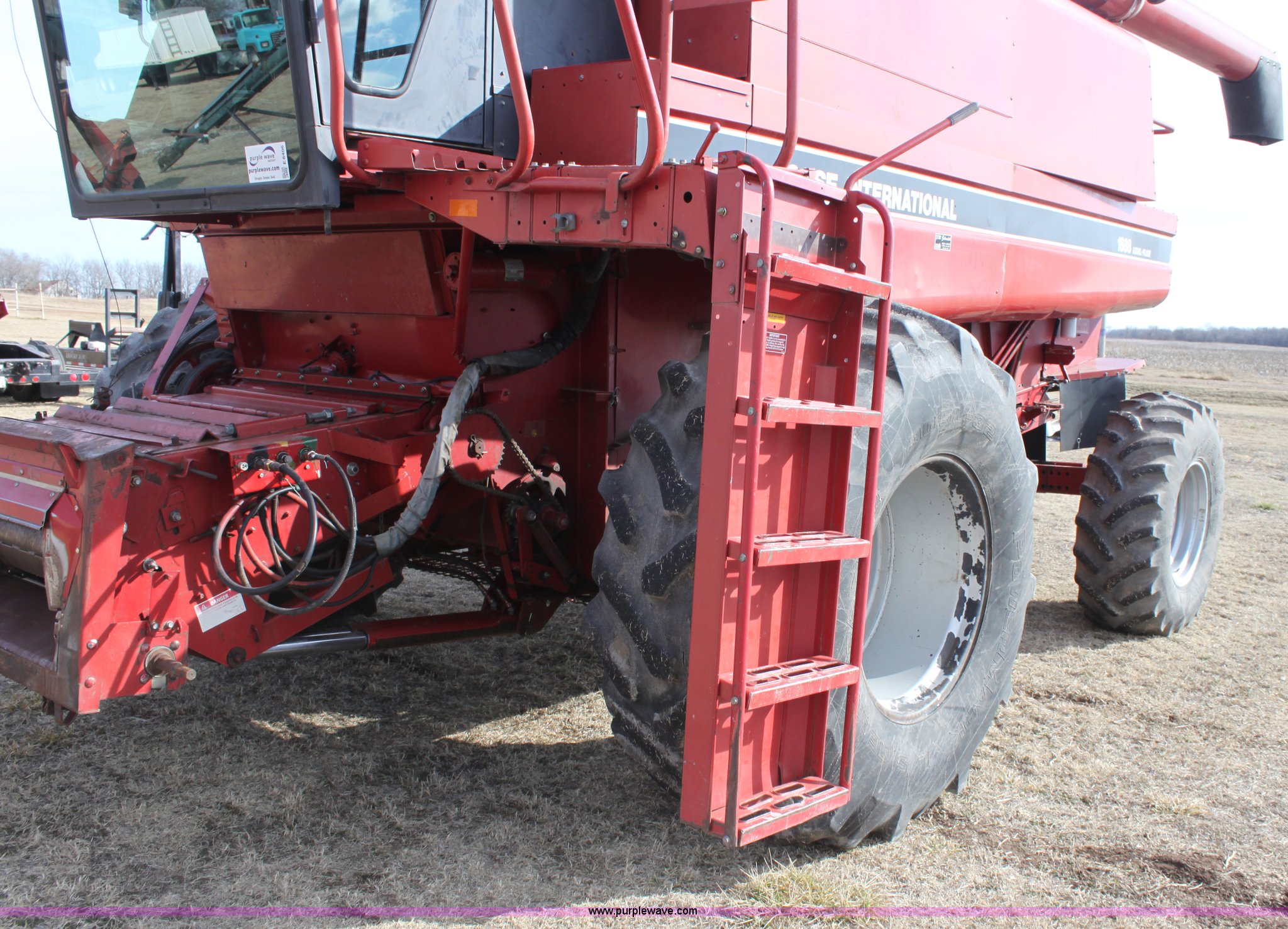 Purple Wave is selling a used Combine in Kansas. This item is a 1994 Case IH 1688 Axial-Flow F33 combine with the following: 4,512 engine hours on meter, Cummins 8.3L turbo diesel engine, Two speed transmission, AM/FM, AC, Shaft speed monitor, Auto header height control, Reel speed control, In cab rotor and fan controls, Case Grain Scan monitor, Model 24536003, Serial 0946-13603, (2) sets of concaves, Large and small wire, (2) sets of grates, Bar and slotted, Recently replaced feeder house chain, Fewer than 30 hours use, Rotor cage, vines, Elephant ears, feeder house bottom, clean grain auger, and return auger replaced approximately 1,000 hours ago, 30.5L-32 front tires, 18.4-26 rear tires, Kenwood two-way radio is not included, Serial JJC0121179