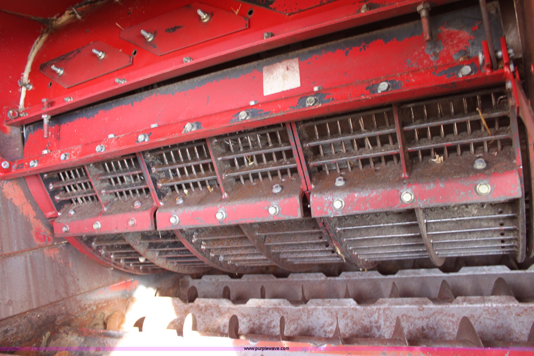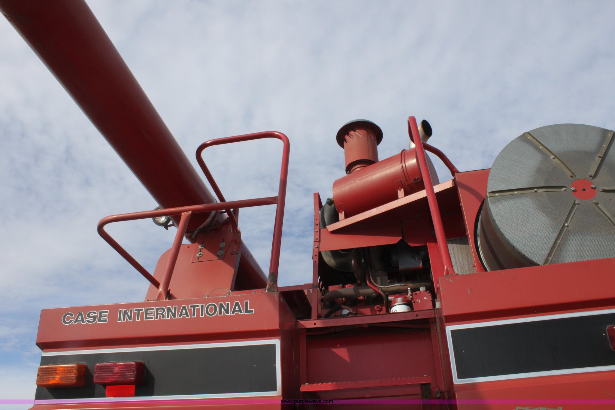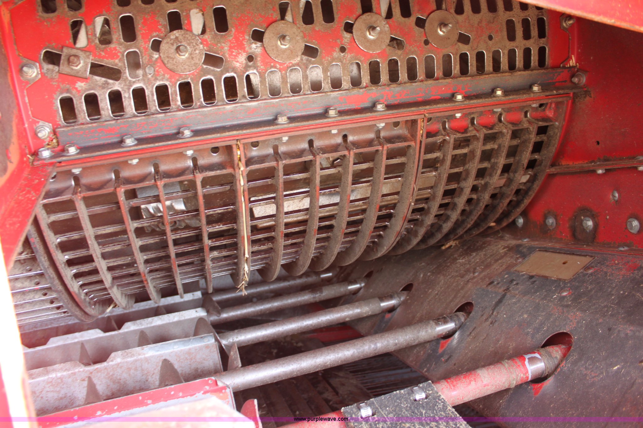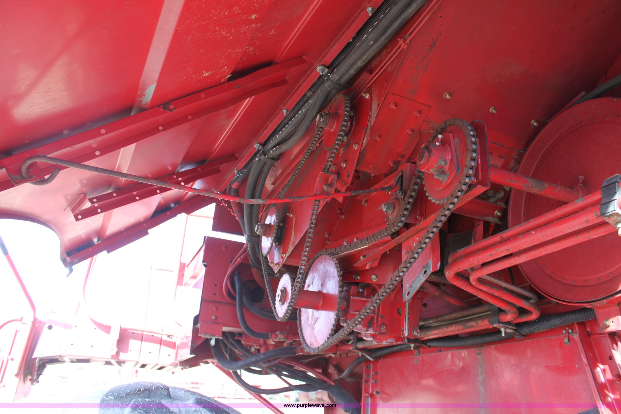 Purple Wave is selling a used Combine in Kansas. This item is a 1994 Case IH 1688 Axial-Flow F33 combine with the following: 4,512 engine hours on meter, Cummins 8.3L turbo diesel engine, Two speed transmission, AM/FM, AC, Shaft speed monitor, Auto header height control, Reel speed control, In cab rotor and fan controls, Case Grain Scan monitor, Model 24536003, Serial 0946-13603, (2) sets of concaves, Large and small wire, (2) sets of grates, Bar and slotted, Recently replaced feeder house chain, Fewer than 30 hours use, Rotor cage, vines, Elephant ears, feeder house bottom, clean grain auger, and return auger replaced approximately 1,000 hours ago, 30.5L-32 front tires, 18.4-26 rear tires, Kenwood two-way radio is not included, Serial JJC0121179