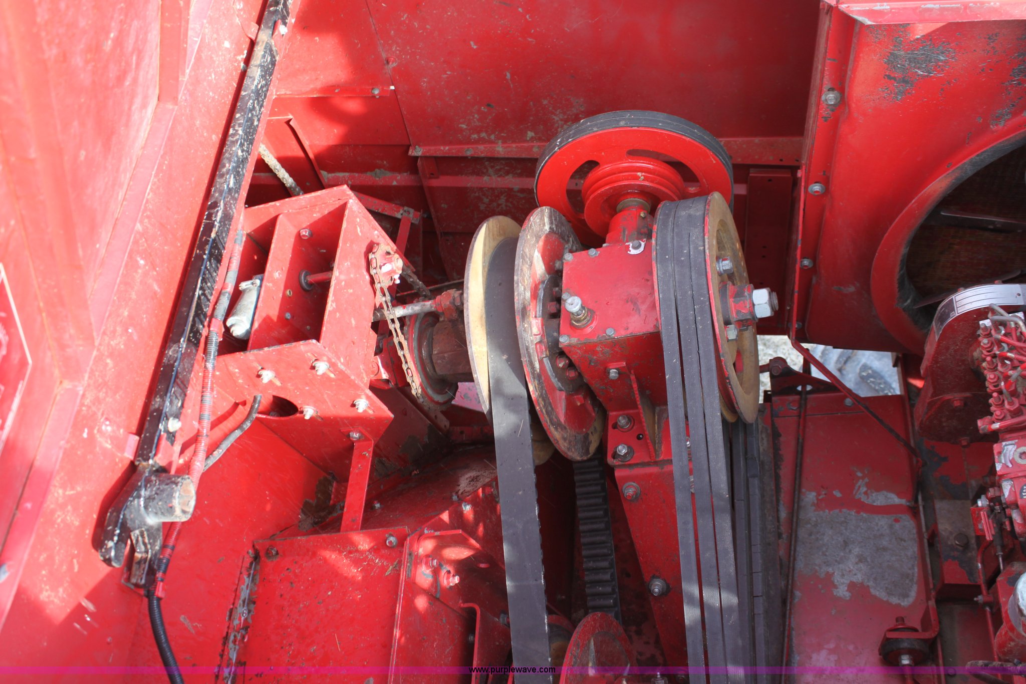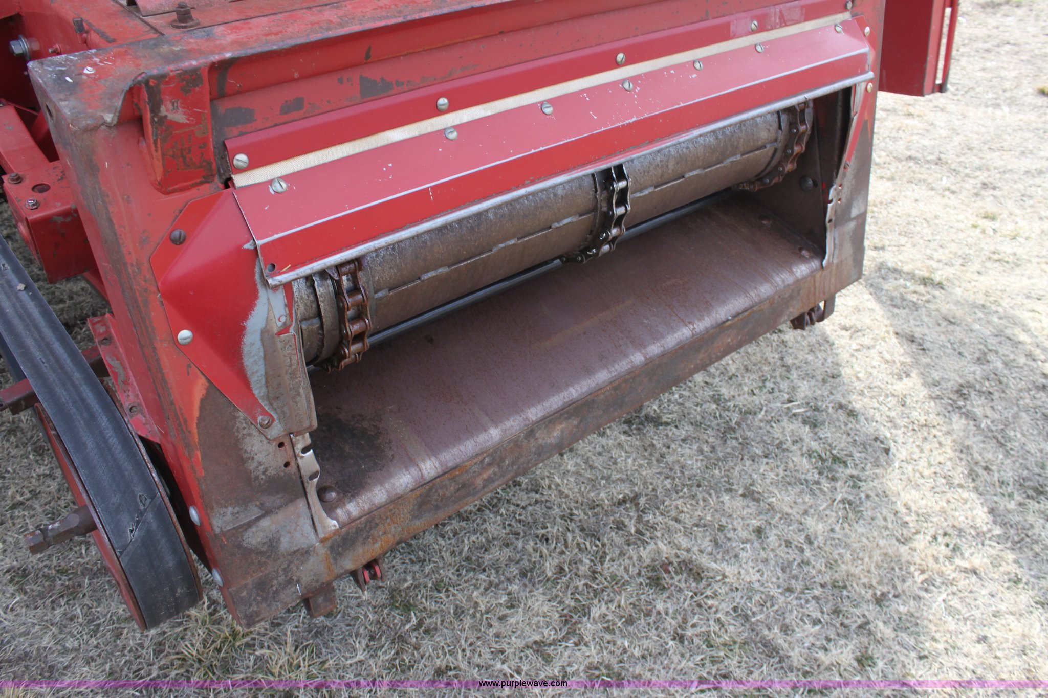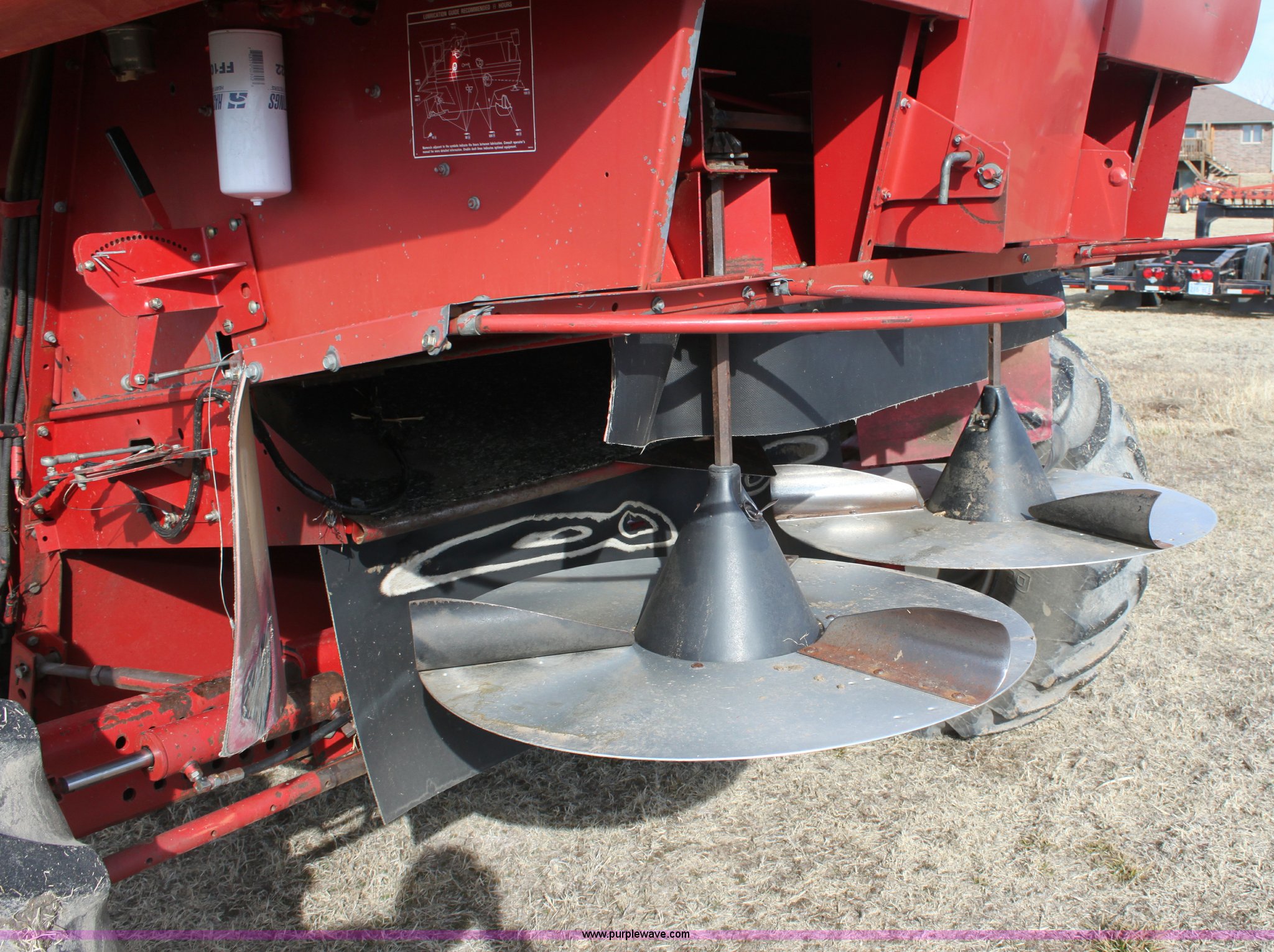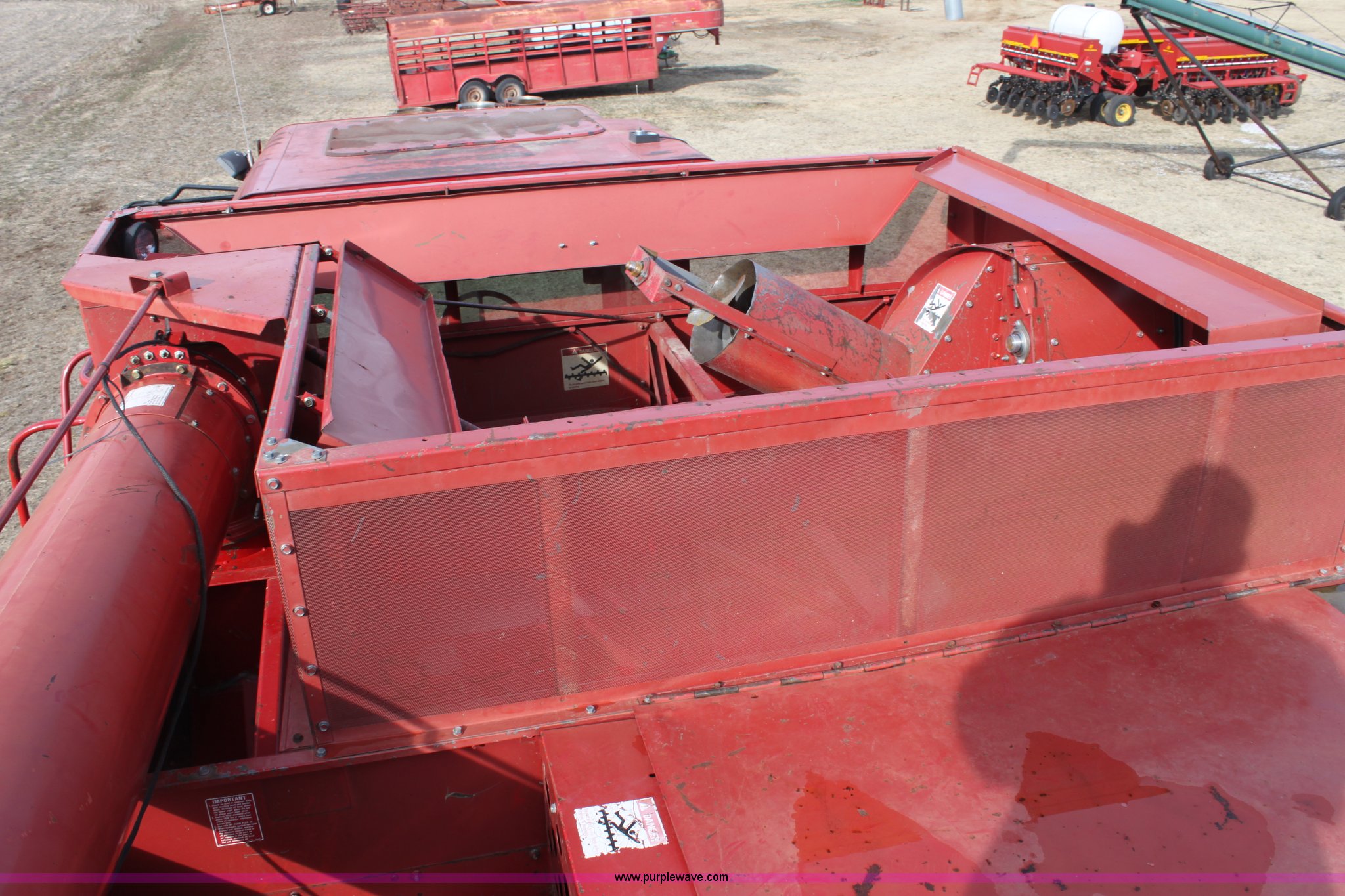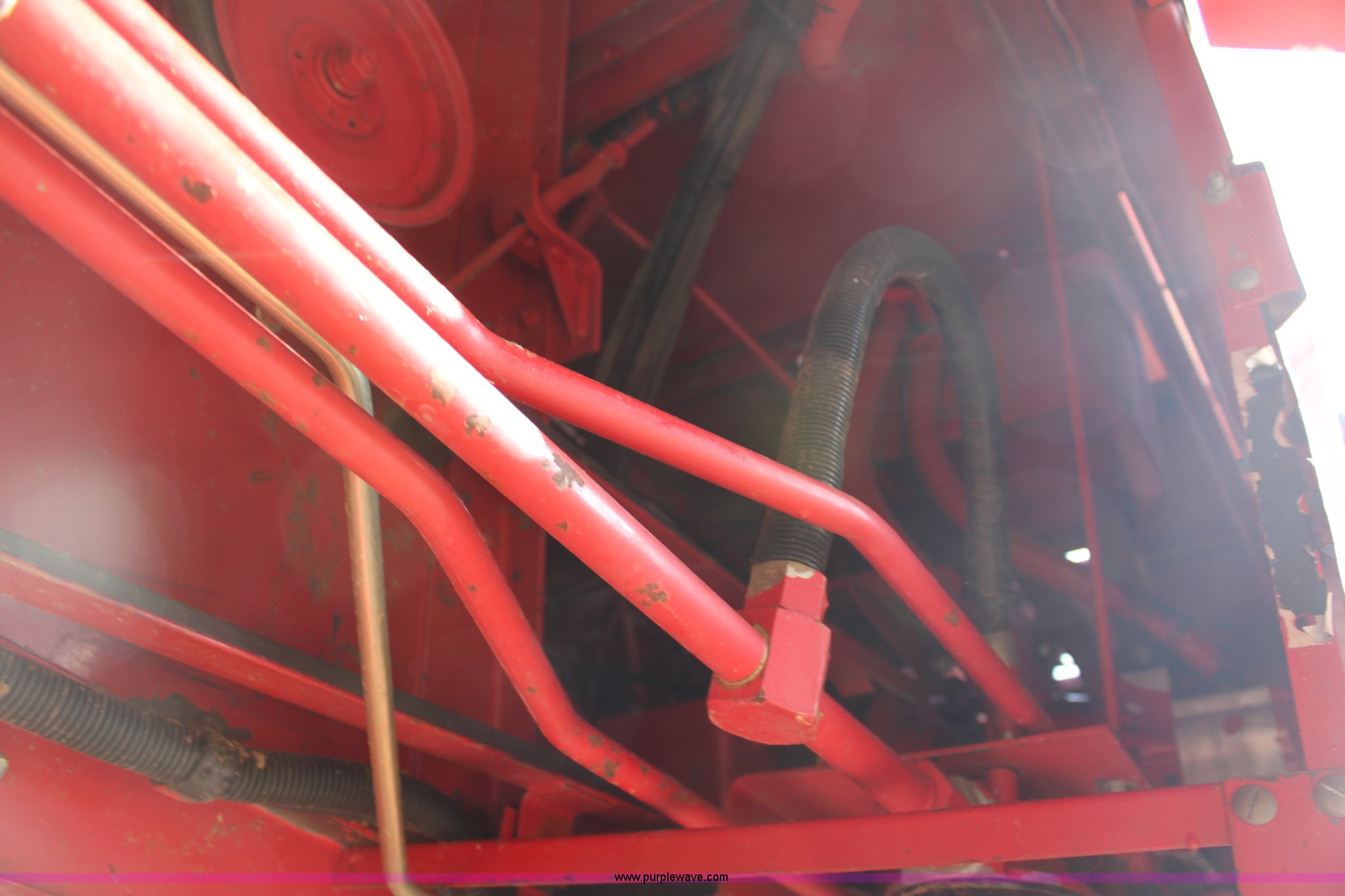 Purple Wave is selling a used Combine in Kansas. This item is a 1994 Case IH 1688 Axial-Flow F33 combine with the following: 4,512 engine hours on meter, Cummins 8.3L turbo diesel engine, Two speed transmission, AM/FM, AC, Shaft speed monitor, Auto header height control, Reel speed control, In cab rotor and fan controls, Case Grain Scan monitor, Model 24536003, Serial 0946-13603, (2) sets of concaves, Large and small wire, (2) sets of grates, Bar and slotted, Recently replaced feeder house chain, Fewer than 30 hours use, Rotor cage, vines, Elephant ears, feeder house bottom, clean grain auger, and return auger replaced approximately 1,000 hours ago, 30.5L-32 front tires, 18.4-26 rear tires, Kenwood two-way radio is not included, Serial JJC0121179