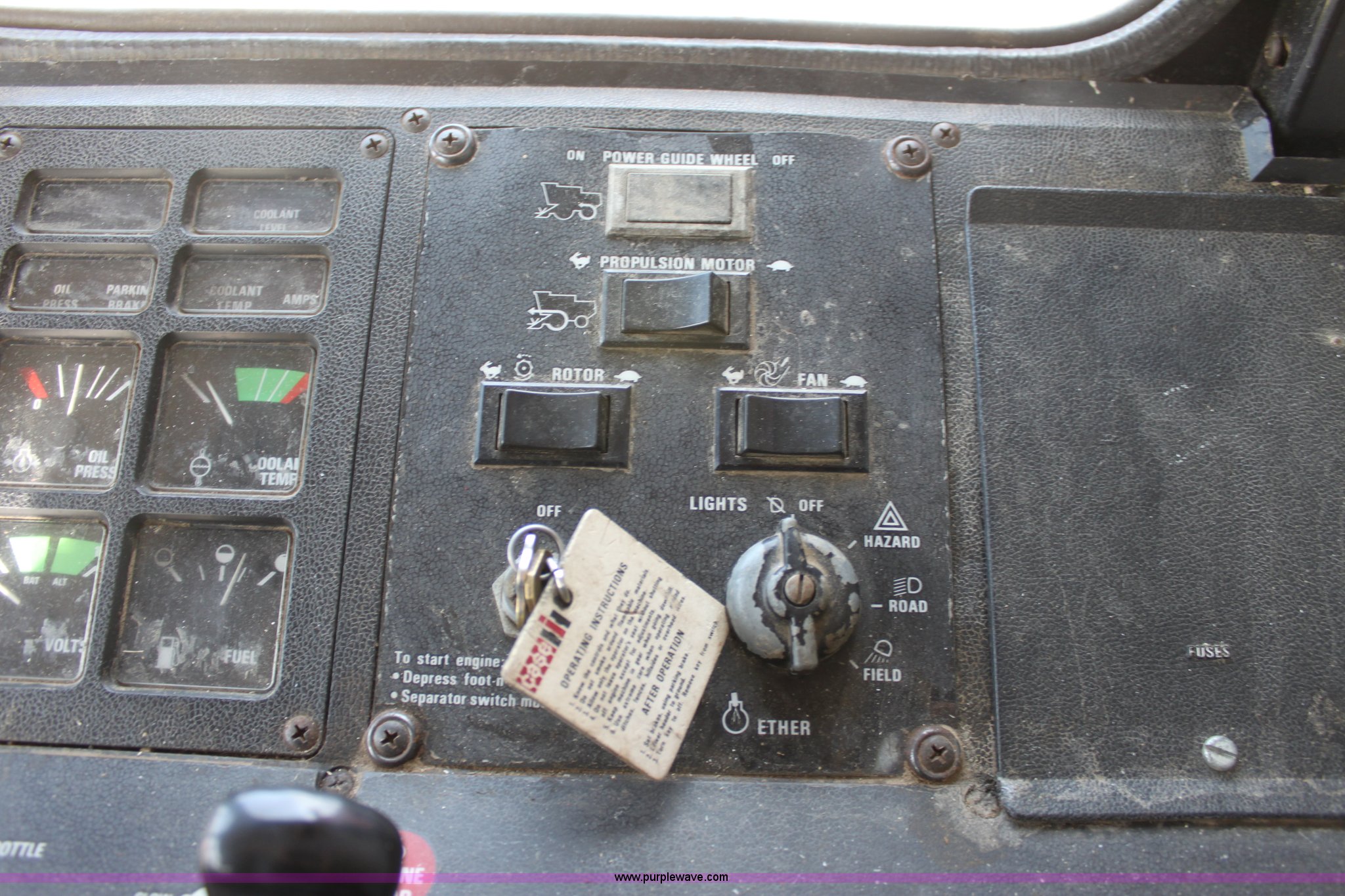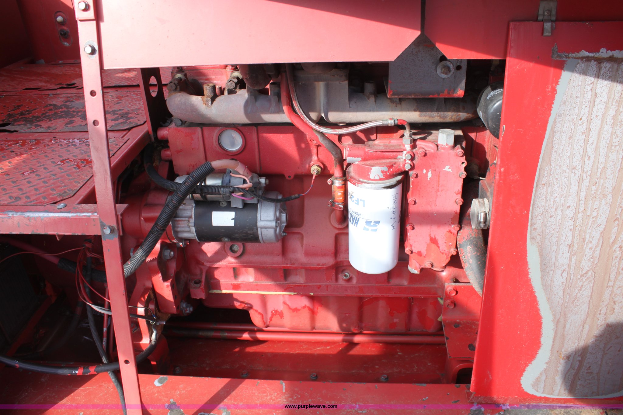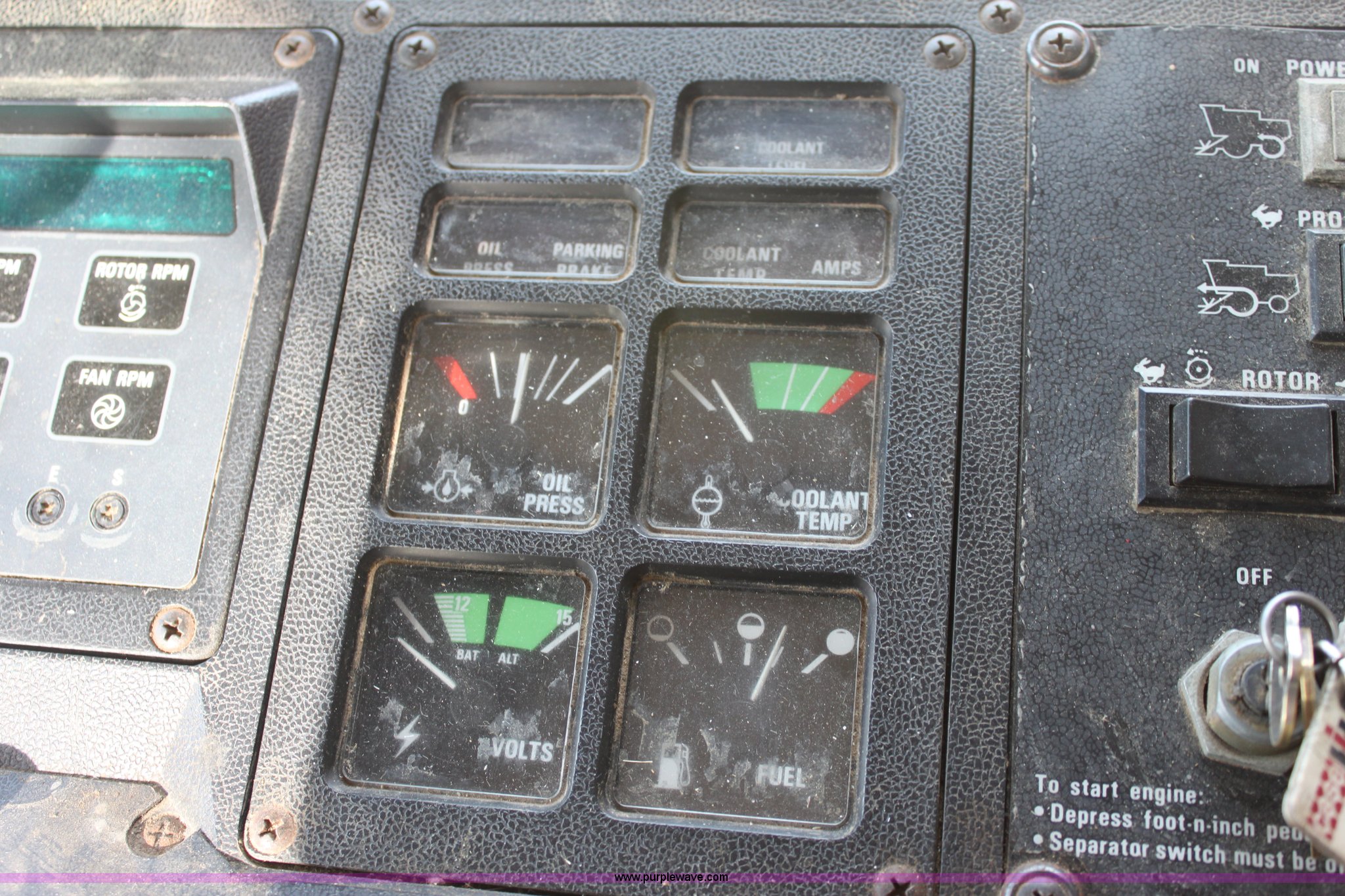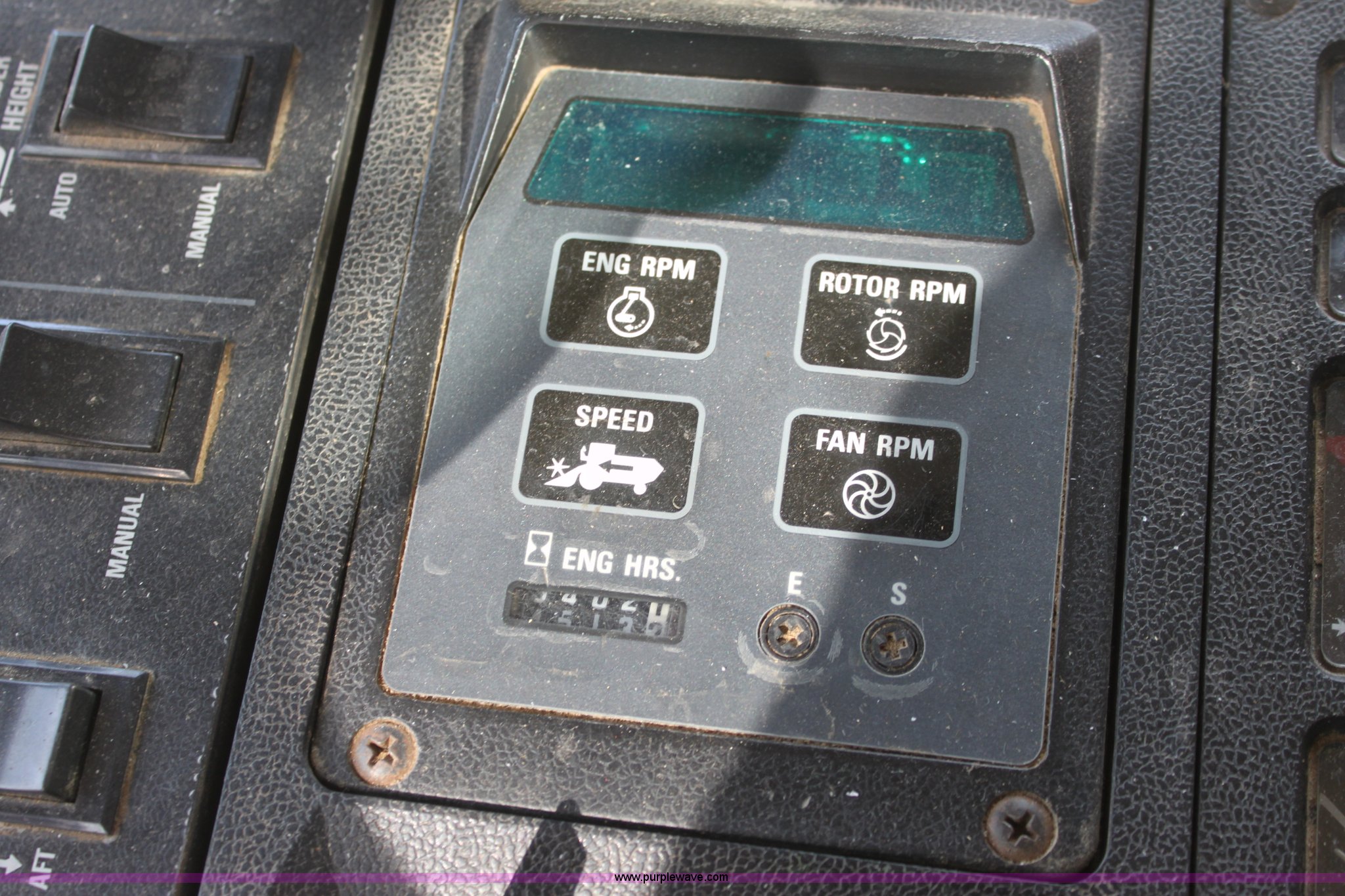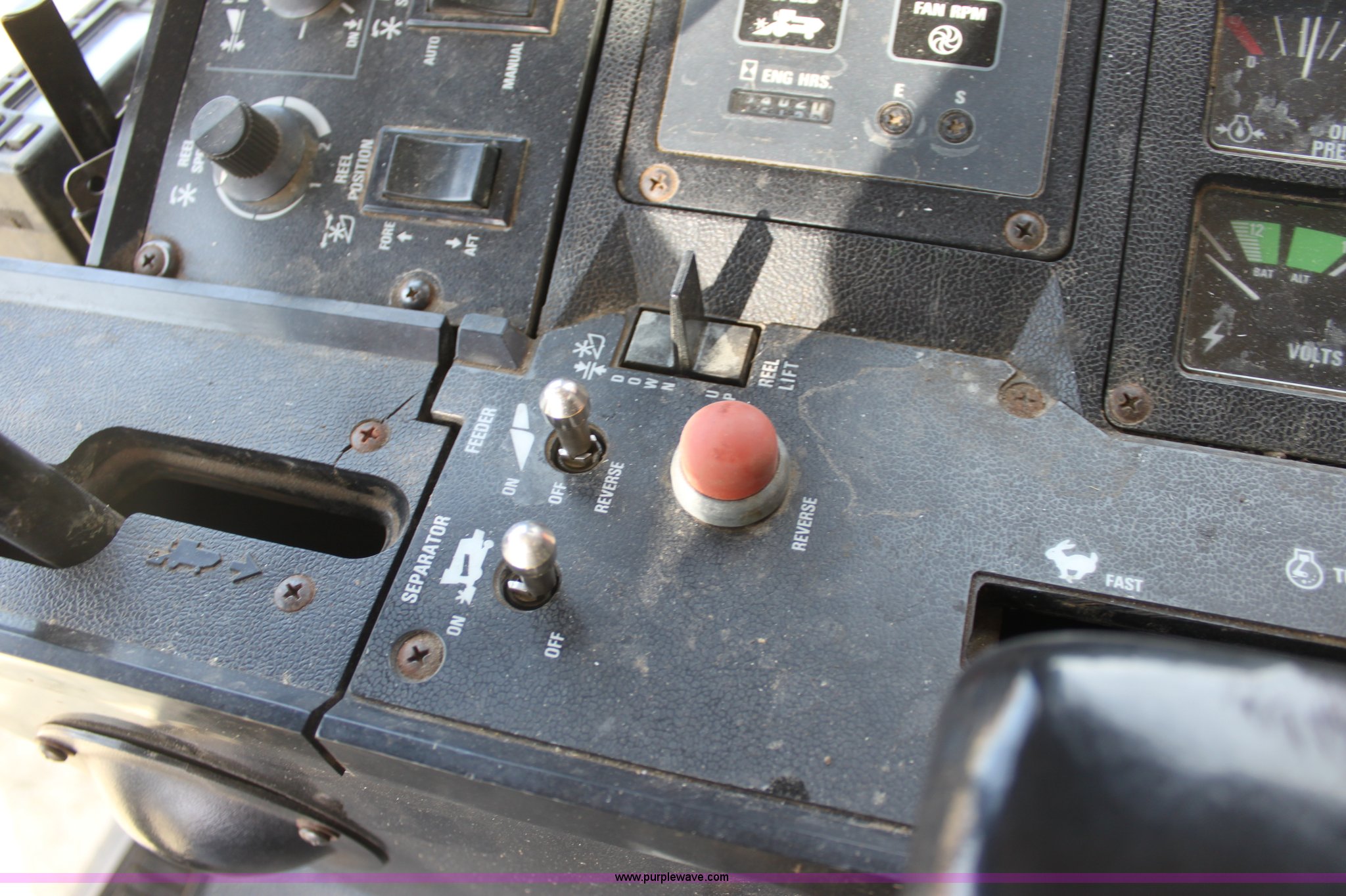 Purple Wave is selling a used Combine in Kansas. This item is a 1994 Case IH 1688 Axial-Flow F33 combine with the following: 4,512 engine hours on meter, Cummins 8.3L turbo diesel engine, Two speed transmission, AM/FM, AC, Shaft speed monitor, Auto header height control, Reel speed control, In cab rotor and fan controls, Case Grain Scan monitor, Model 24536003, Serial 0946-13603, (2) sets of concaves, Large and small wire, (2) sets of grates, Bar and slotted, Recently replaced feeder house chain, Fewer than 30 hours use, Rotor cage, vines, Elephant ears, feeder house bottom, clean grain auger, and return auger replaced approximately 1,000 hours ago, 30.5L-32 front tires, 18.4-26 rear tires, Kenwood two-way radio is not included, Serial JJC0121179