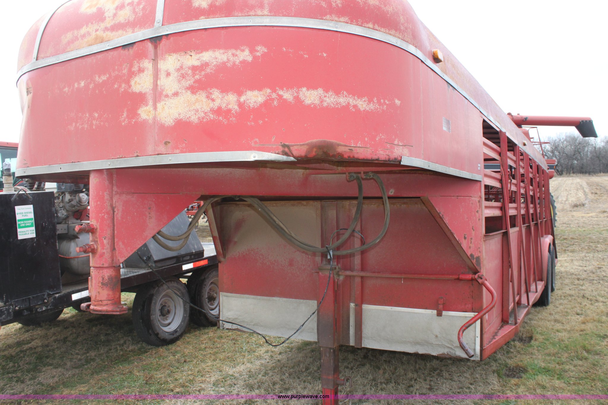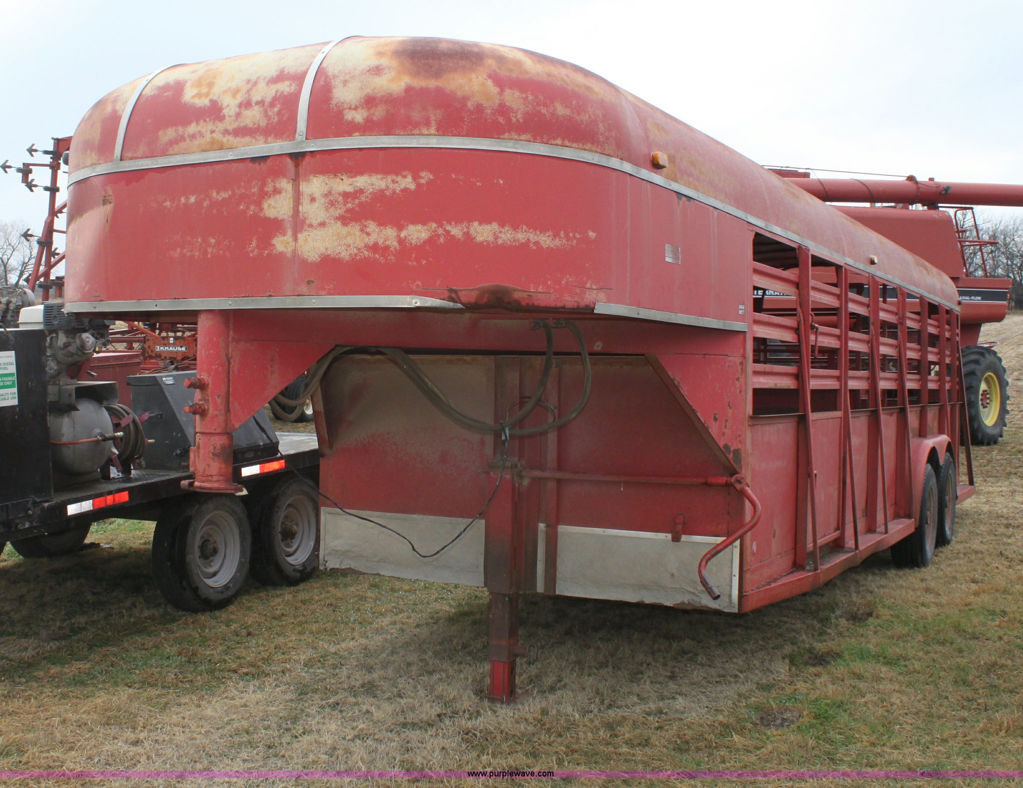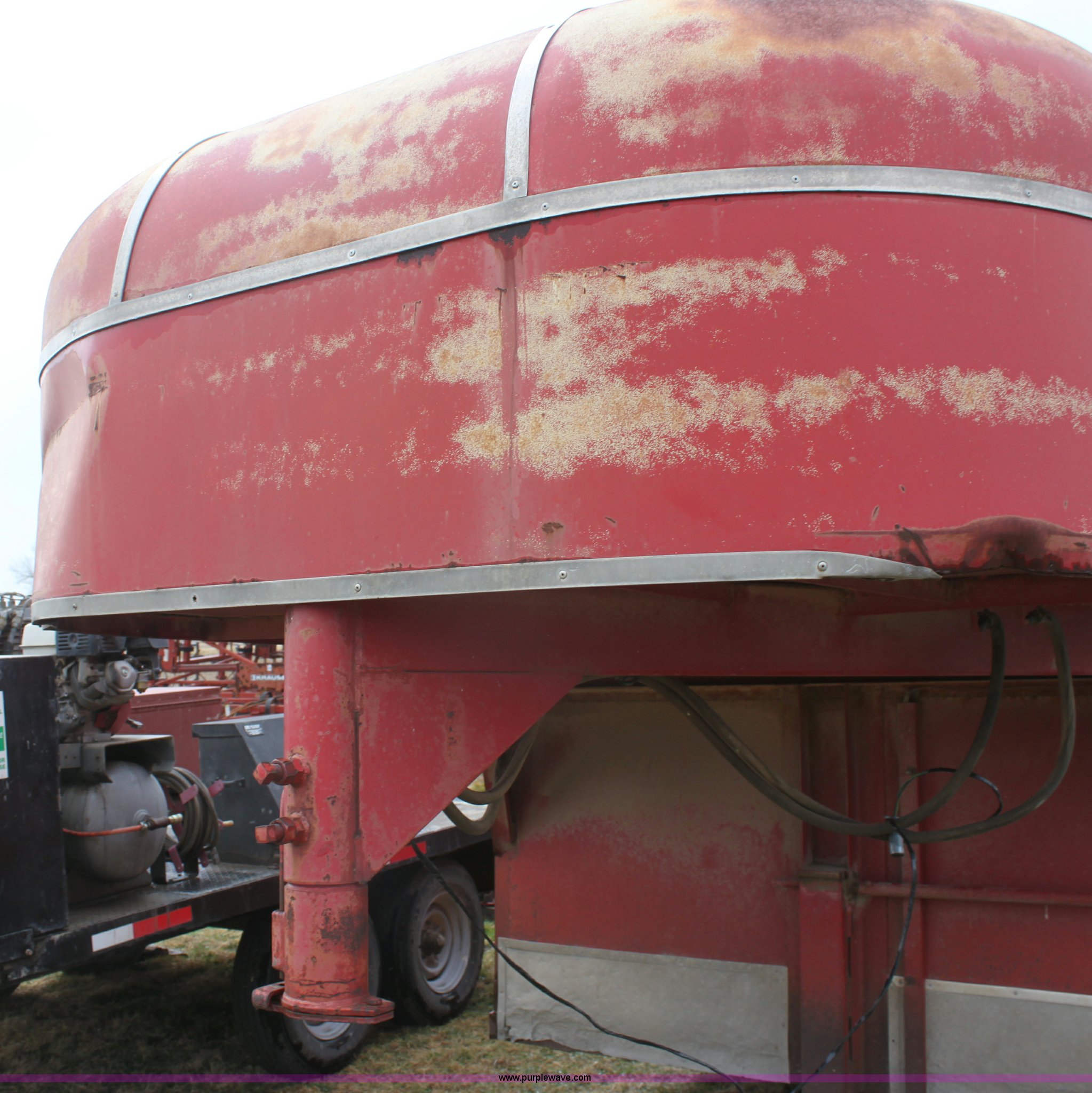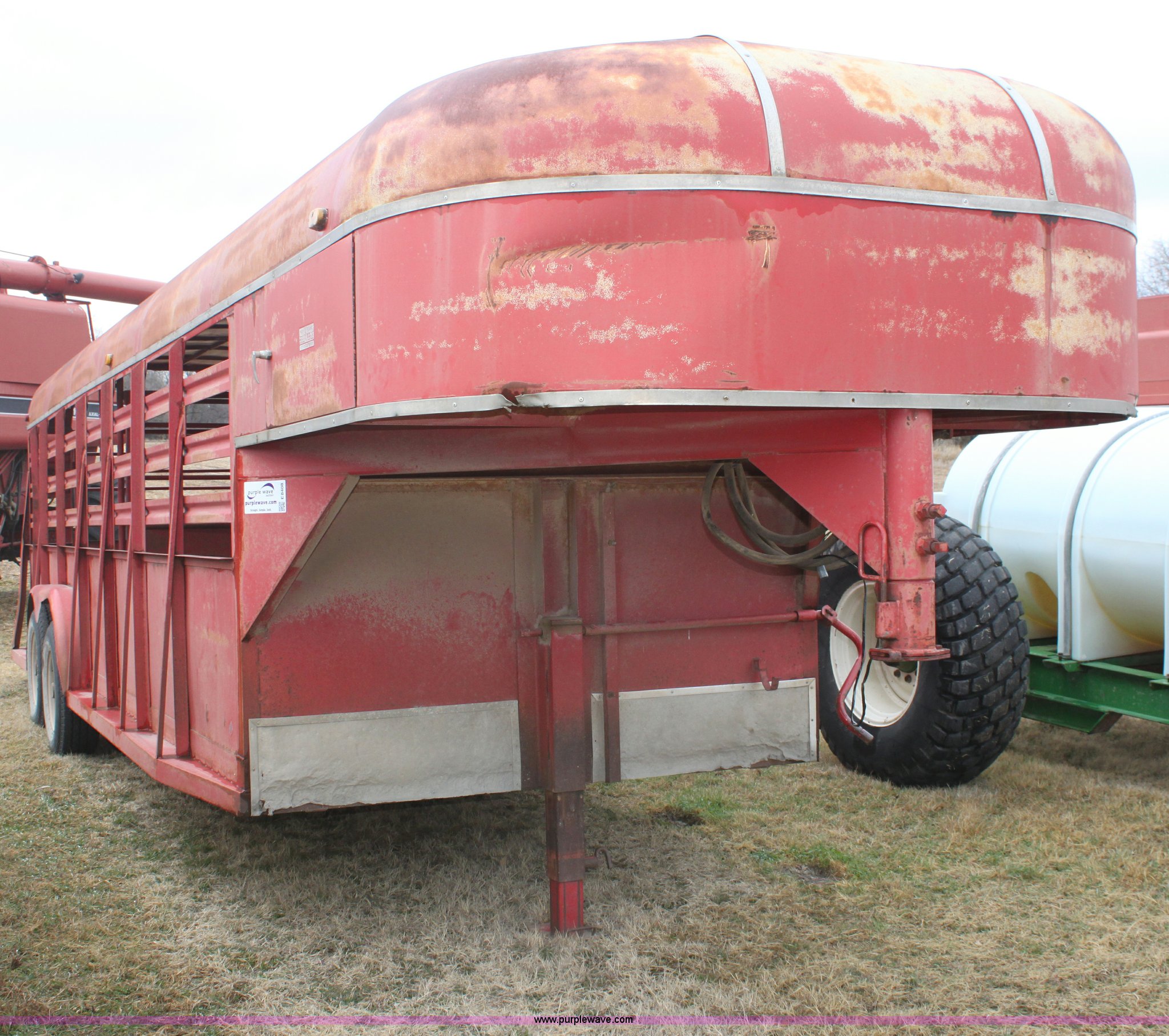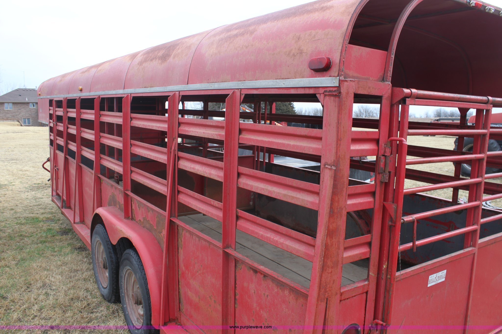 Purple Wave is selling a used Livestock Trailer in Kansas. This item is a 1986 Bull mobile 22' livestock trailer with the following: 7'W, Tandem 7,000 lb axles, Air brakes, Unknown working condition, 9.50R16.5LT tires, One owner