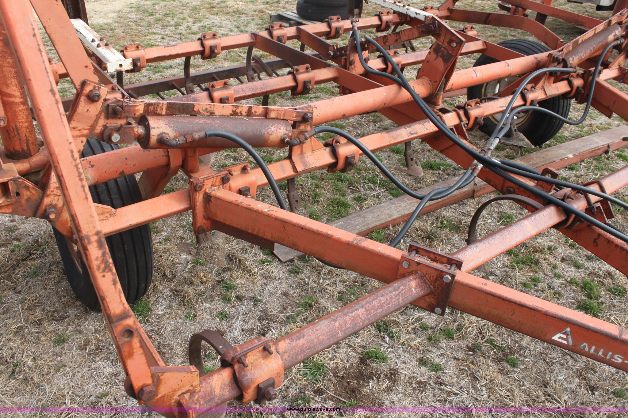 Purple Wave is selling a used Field Cultivator or Sweep Plow in Kansas. This item is a Allis Chalmers 1300 32' folding field cultivator with the following: Uni-mulcher drags, 9.5-15 tires, Needs lift cylinder