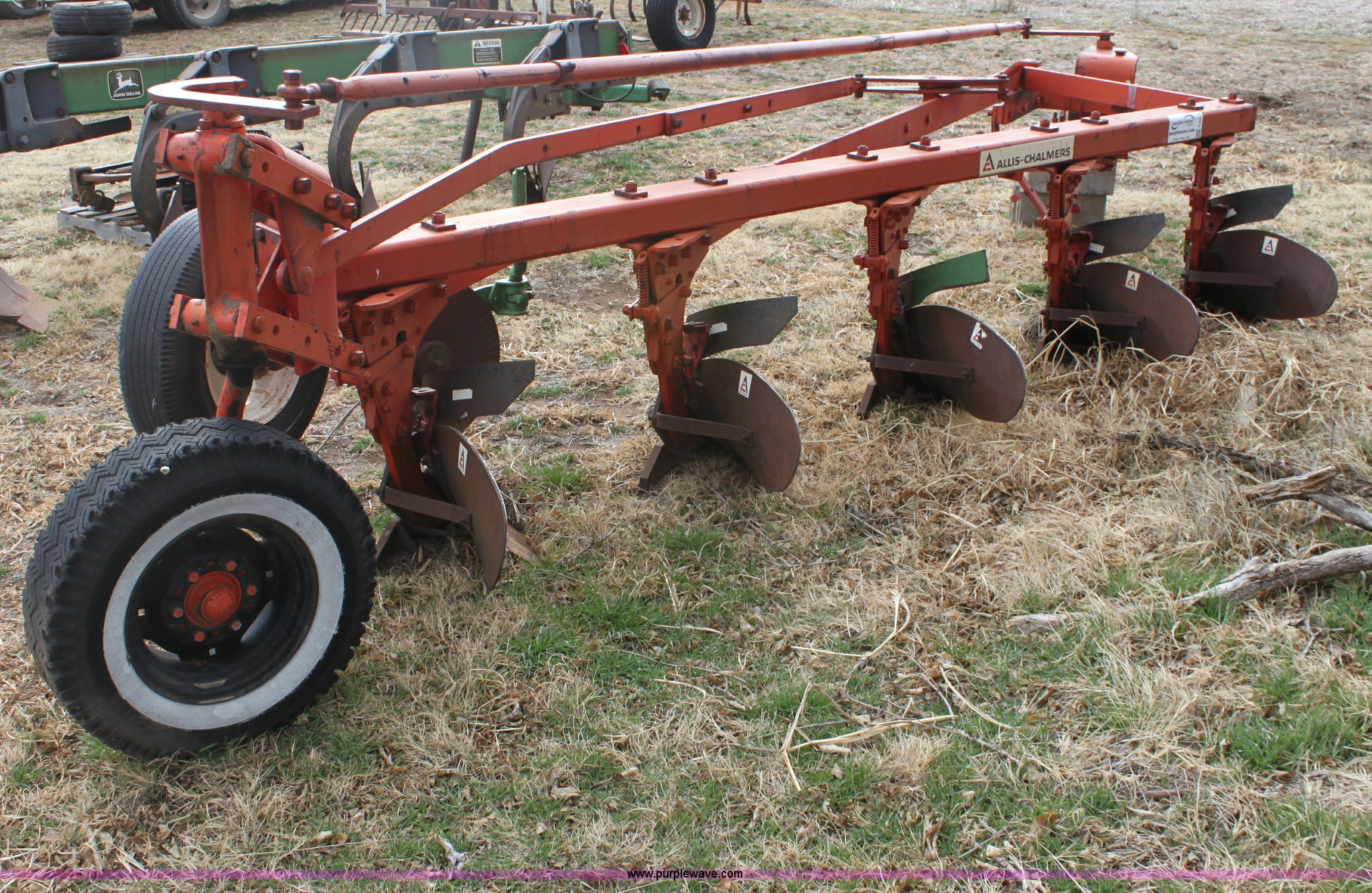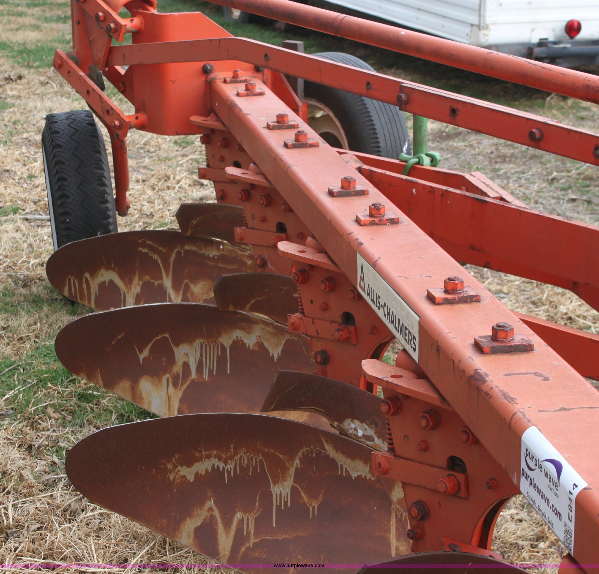 Purple Wave is selling a used Plow in Kansas. This item is a Allis Chalmers five bottom plow with the following: 16" spacing, 14" tires, Semi-mount