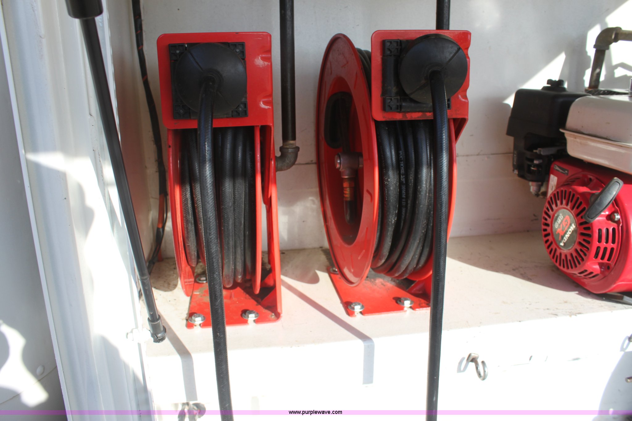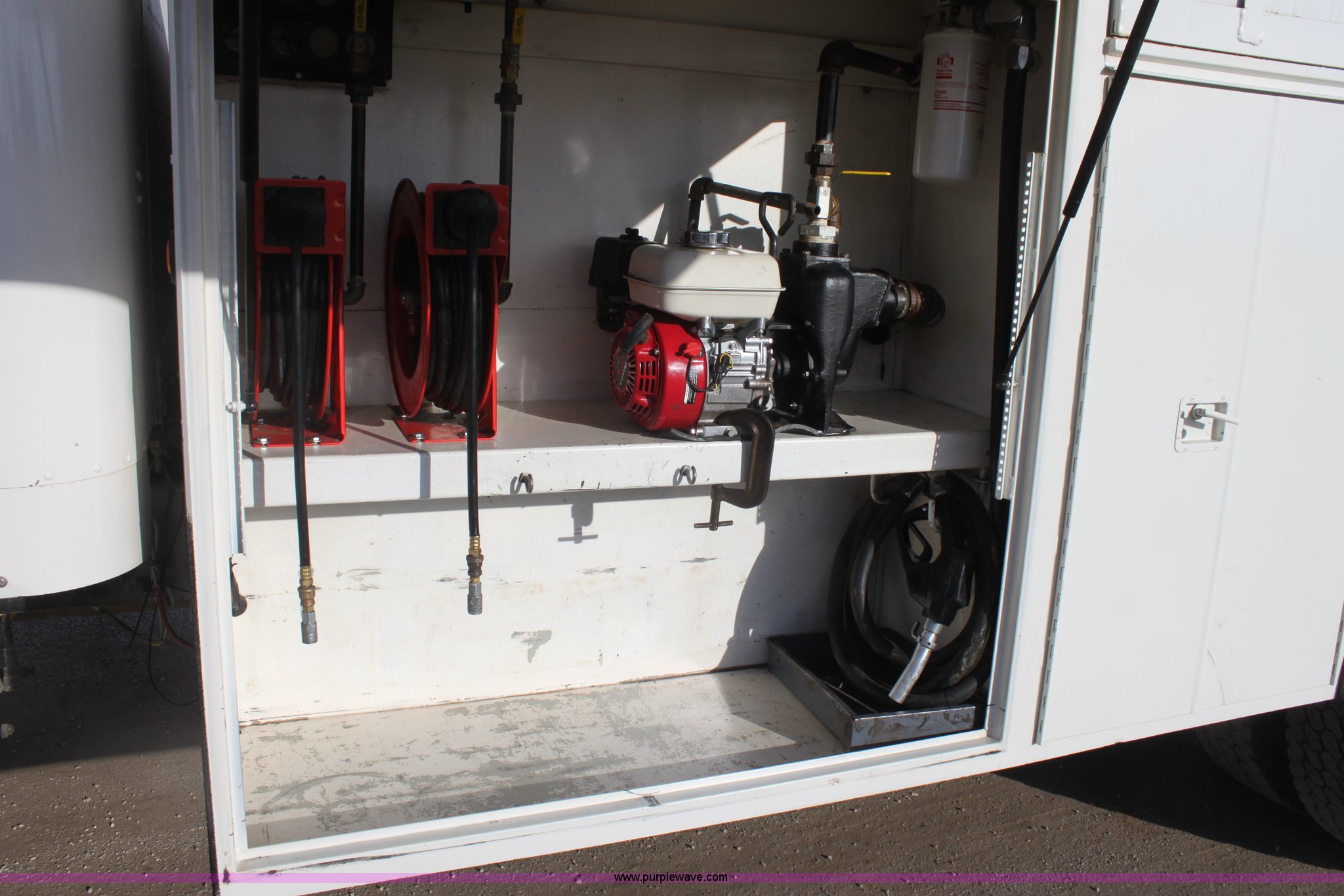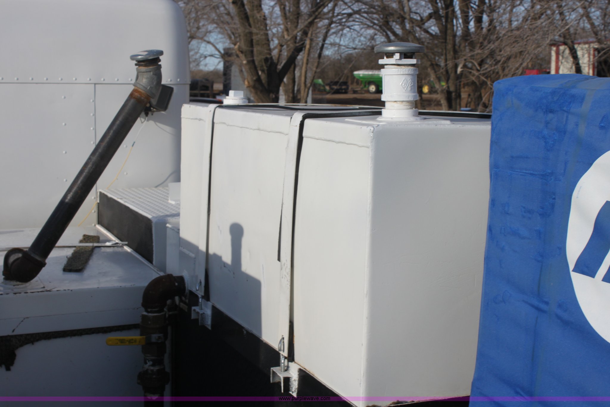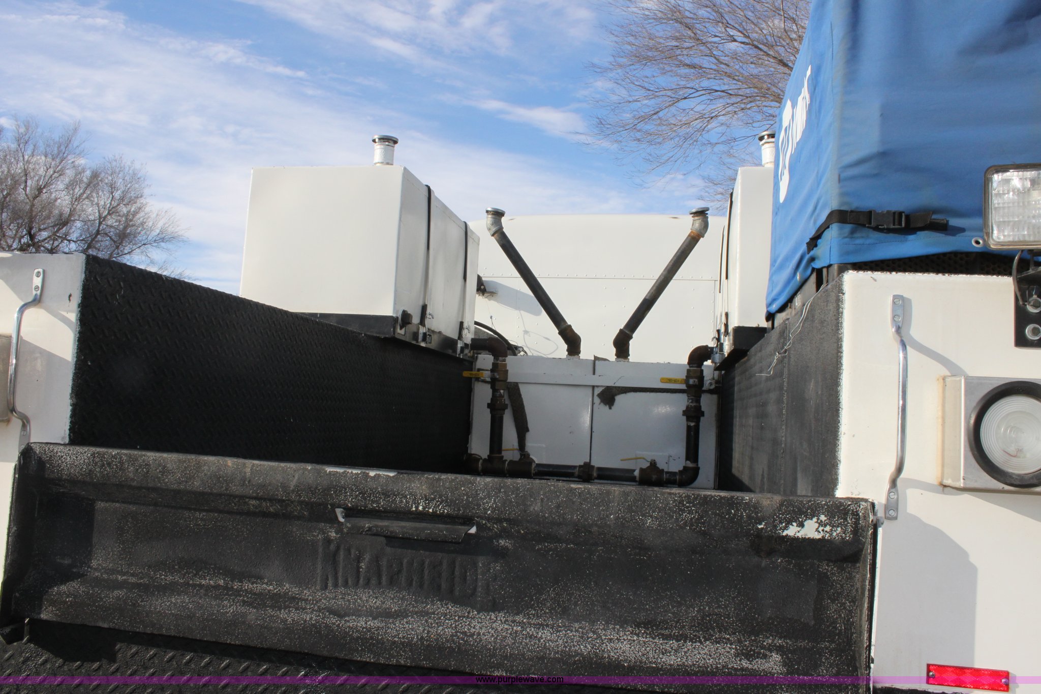 Purple Wave is selling a used Service Truck in Kansas. This item is a 1999 Freightliner FLD semi service truck with the following: 913,478 miles on odometer, Cummins 855 diesel engine, 450 HP, Rockwell 10 speed manual transmission, Pioneer AM/FM/CD, Custom rear bench seat, Air ride cab, Engine brake, Knapheide utility bed, Model 6169VLHB60J, 14'L x 96"W, Spray-in bed liner, 22" heavy duty rear work bench, Style bumper with storage, Serial 20070215-0057655, (4) 119 gallon fuel tanks, Plumbed to meet DOT requirements, Honda GX160 gas powered 2" bulk fuel pump, 1" GPI nozzle and hose, Air suspension, Aluminum 140 gallon under step fuel tank, Air lock pintle hitch, (2) sets of trailer light hook ups, 2.5" receiver hitch, 11R24.5 tires, Retractable air reels, Professionally repainted one year ago, Less than 20,000 miles on new injectors, Miller welder is not included, Contents not included