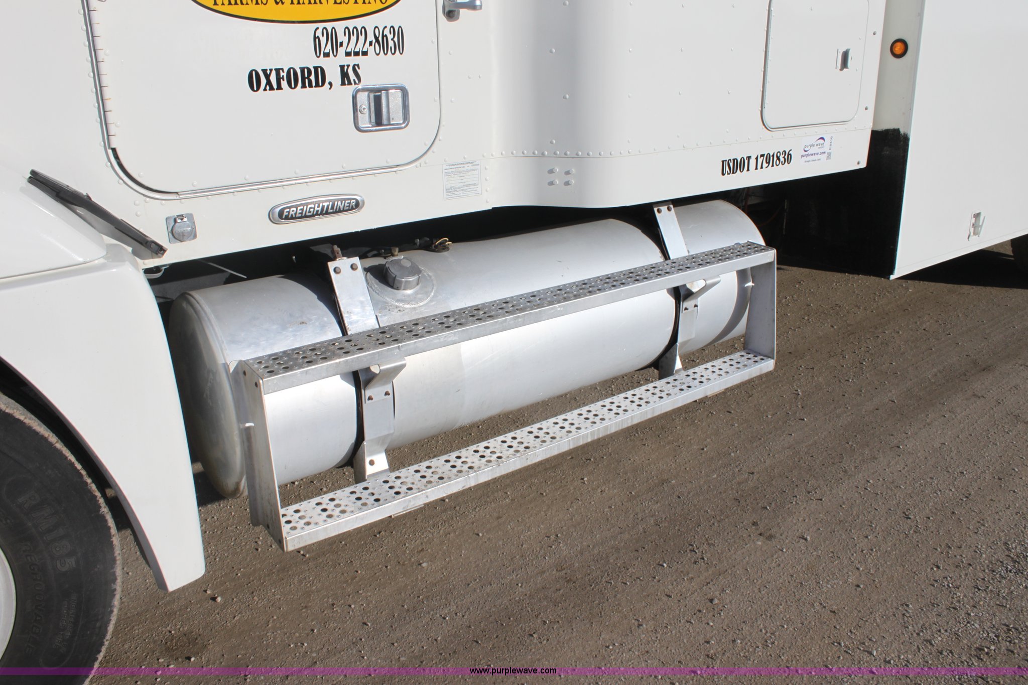 1999 Freightliner FLD semi service truck. 913,478 miles on odometer, Cummins 855 diesel engine 450 HP, Rockwell 10 speed manual transmission, Pioneer AM/FM/CD, Custom rear bench seat, Air ride cab, Engine brake, Knapheide utility bed Model 6169VLHB60J, 14'L x 96"W, Spray-in bed liner, 22" heavy duty rear work bench, Style bumper with storage, Serial 20070215-0057655, (4) 119 gallon fuel tanks Plumbed to meet DOT requirements, Honda GX160 gas powered 2" bulk fuel pump 1" GPI nozzle and hose, Air suspension, Aluminum 140 gallon under step fuel tank, Air lock pintle hitch, (2) sets of trailer light hook ups, 2.5" receiver hitch, 11R24.5 tires, Retractable air reels, Professionally repainted one year ago, Less than 20,000 miles on new injectors, Miller welder is not included, Contents not included. 1FUYDDYB1XPA88381. Bid for Blue program asset. View equipment video. Shipping quotes available. S.L. Cornelsen Farms. Oxford, KS 67119