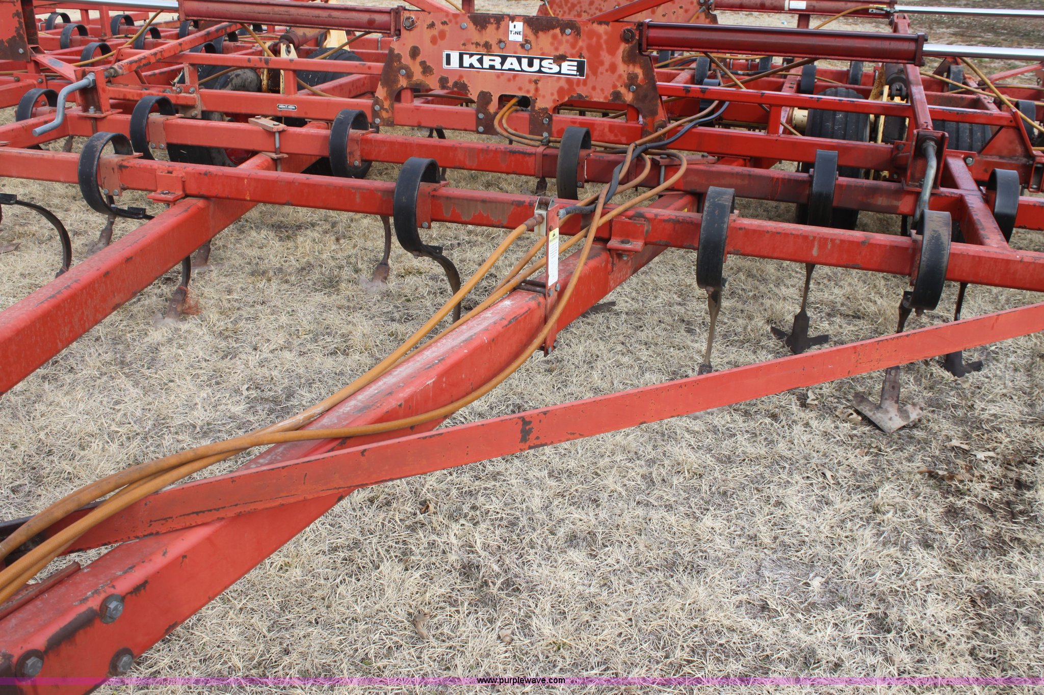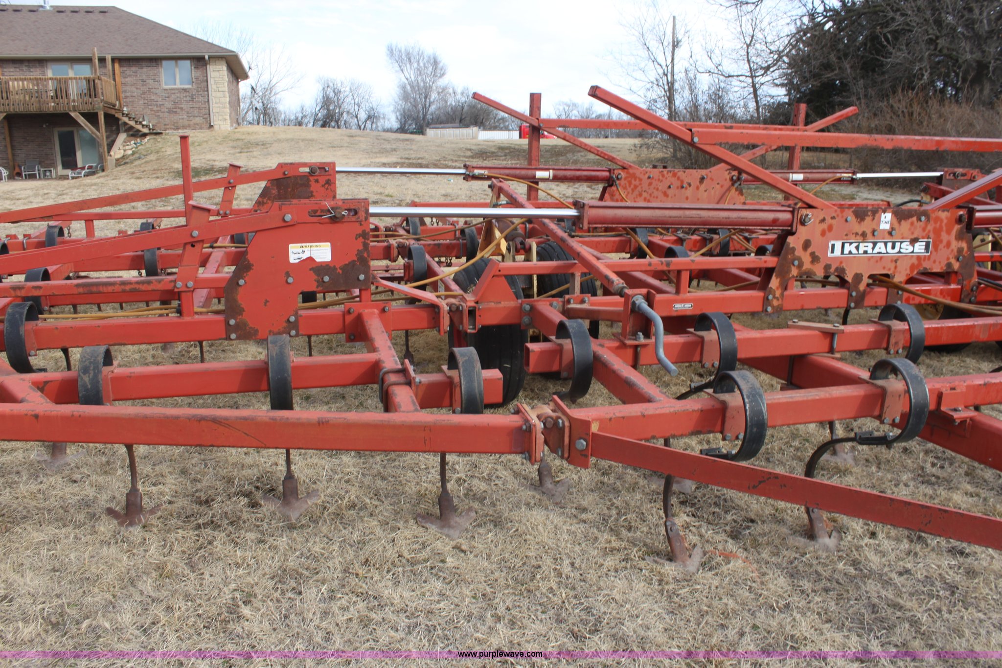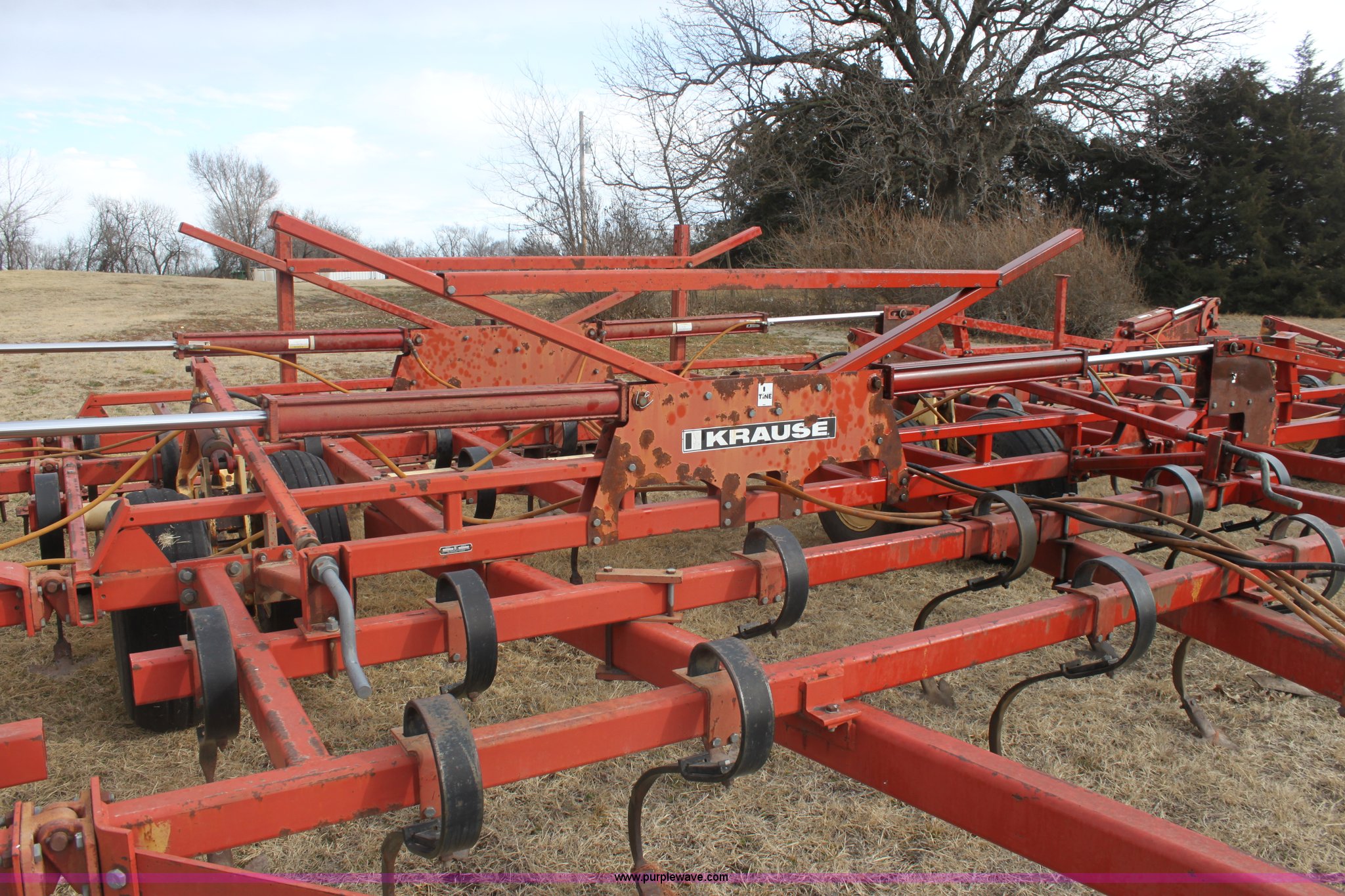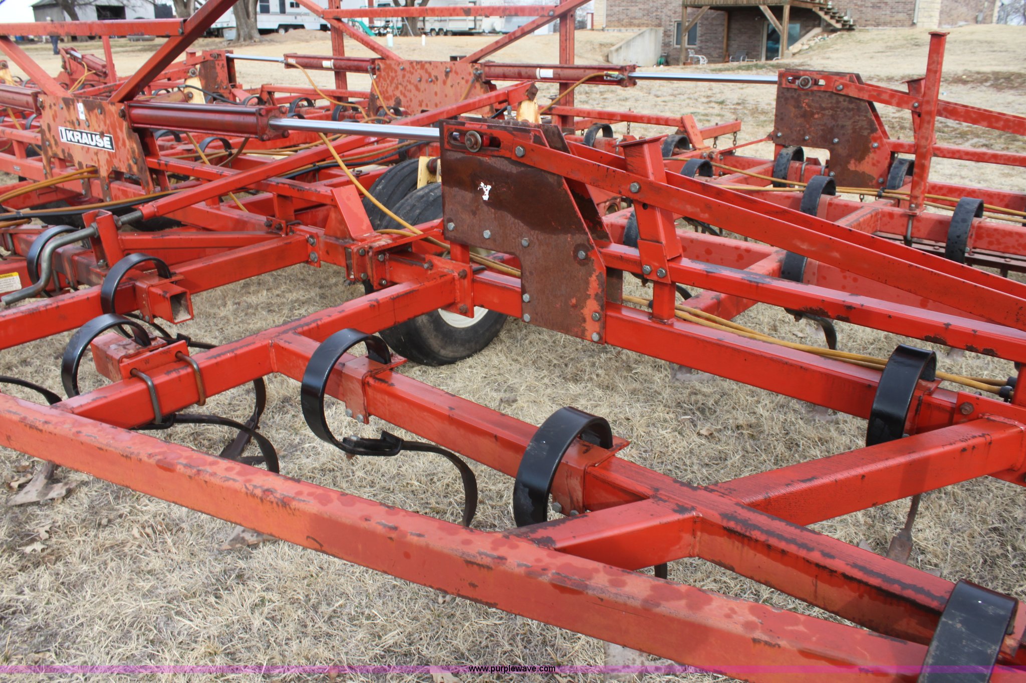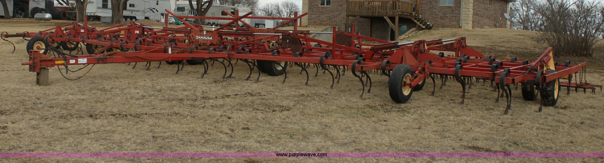 Purple Wave is selling a used Field Cultivator or Sweep Plow in Kansas. This item is a Krause 566 60' field cultivator with the following: S tine shanks, Sweeps, Three bar harrow, 9.5L-15 tires, Several cylinders need seals, Serial 1047