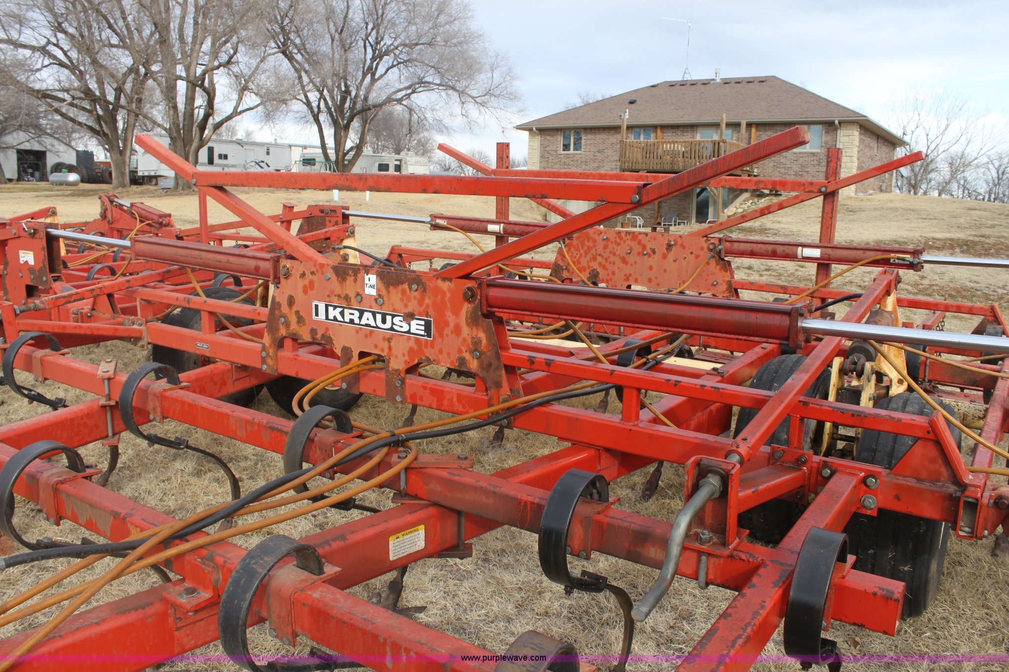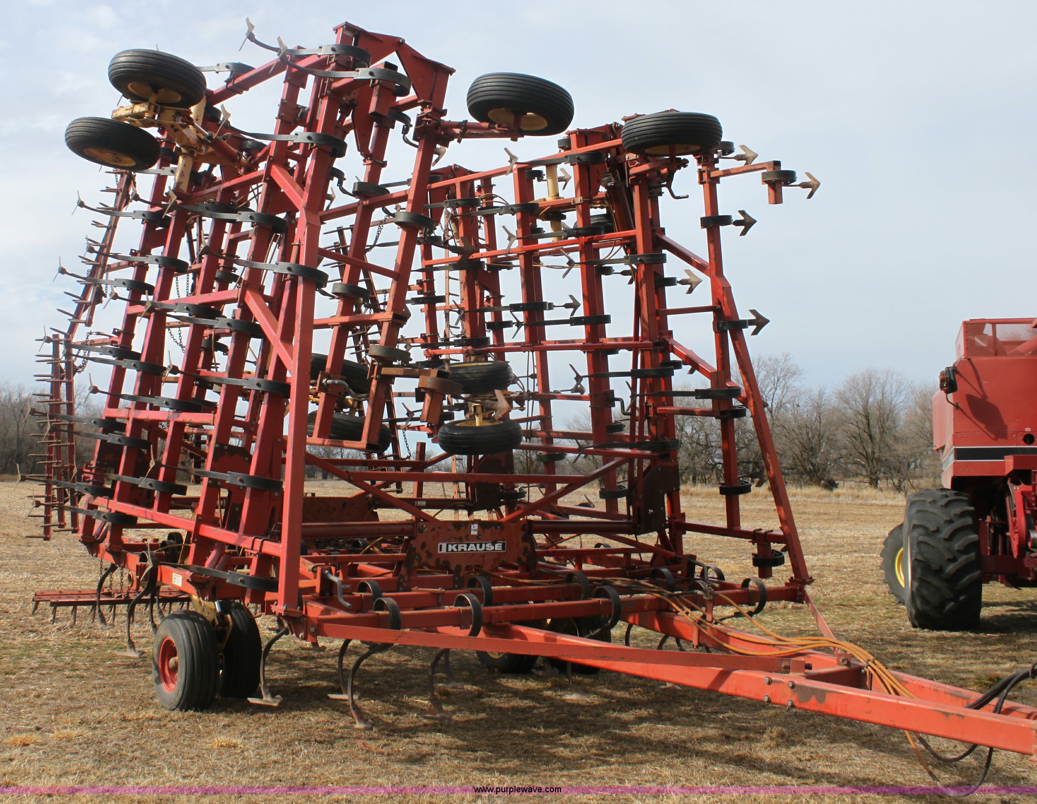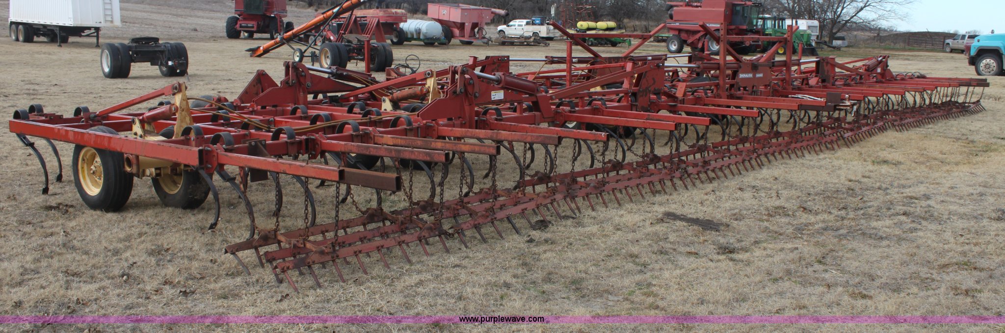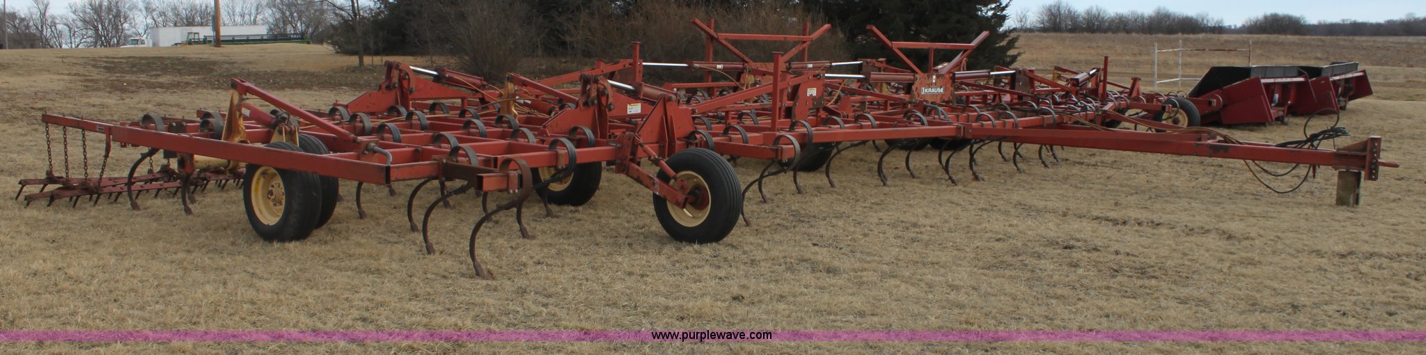 Purple Wave is selling a used Field Cultivator or Sweep Plow in Kansas. This item is a Krause 566 60' field cultivator with the following: S tine shanks, Sweeps, Three bar harrow, 9.5L-15 tires, Several cylinders need seals, Serial 1047
