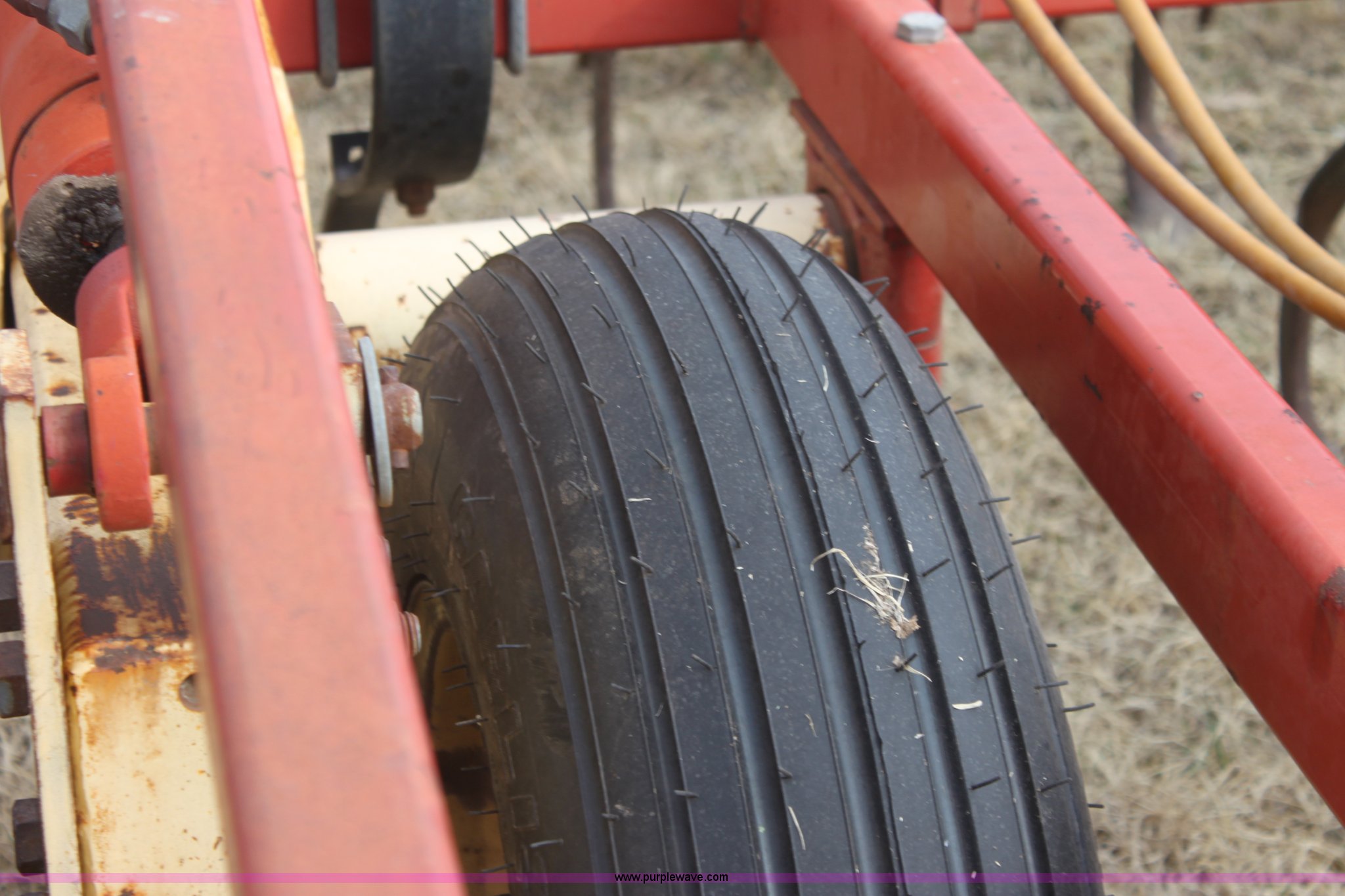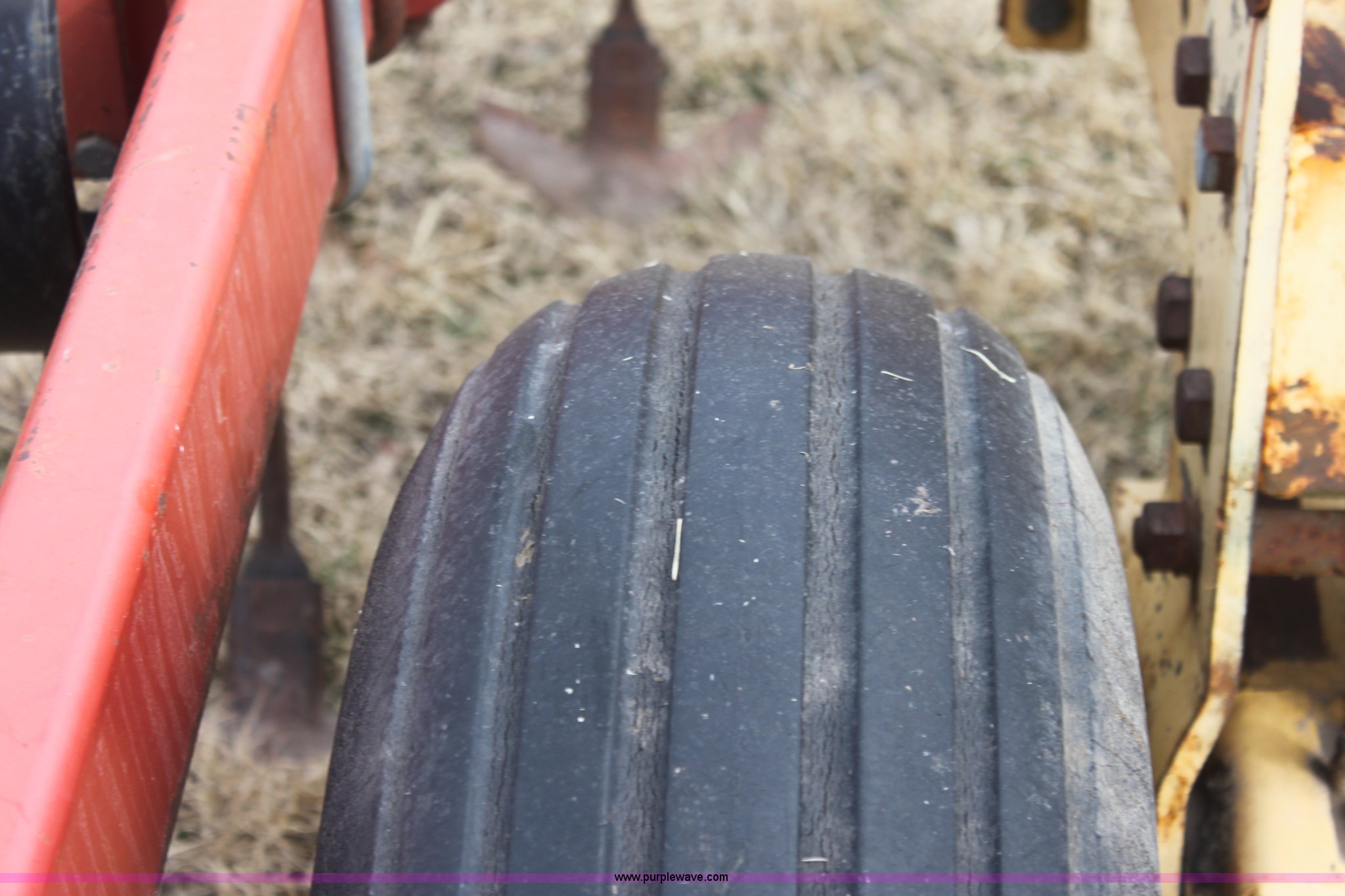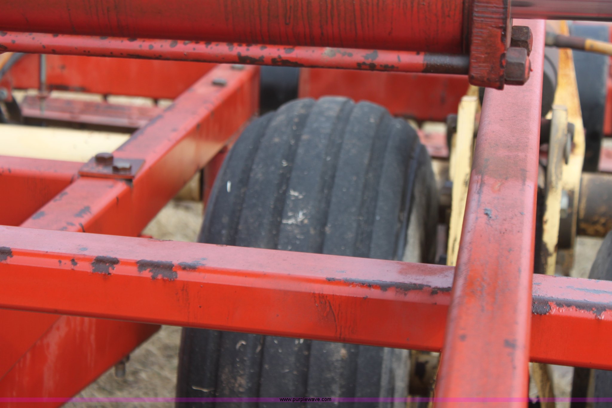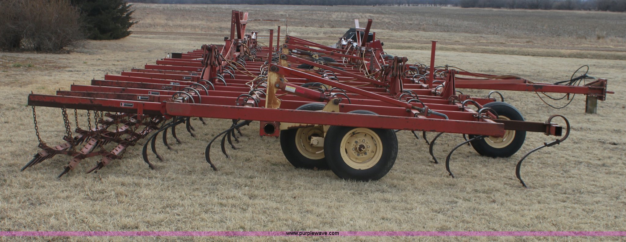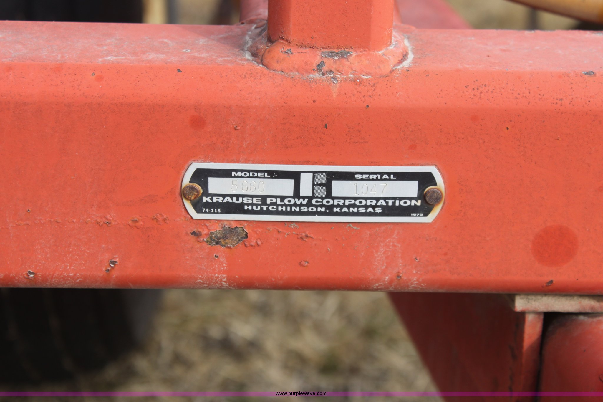 Purple Wave is selling a used Field Cultivator or Sweep Plow in Kansas. This item is a Krause 566 60' field cultivator with the following: S tine shanks, Sweeps, Three bar harrow, 9.5L-15 tires, Several cylinders need seals, Serial 1047