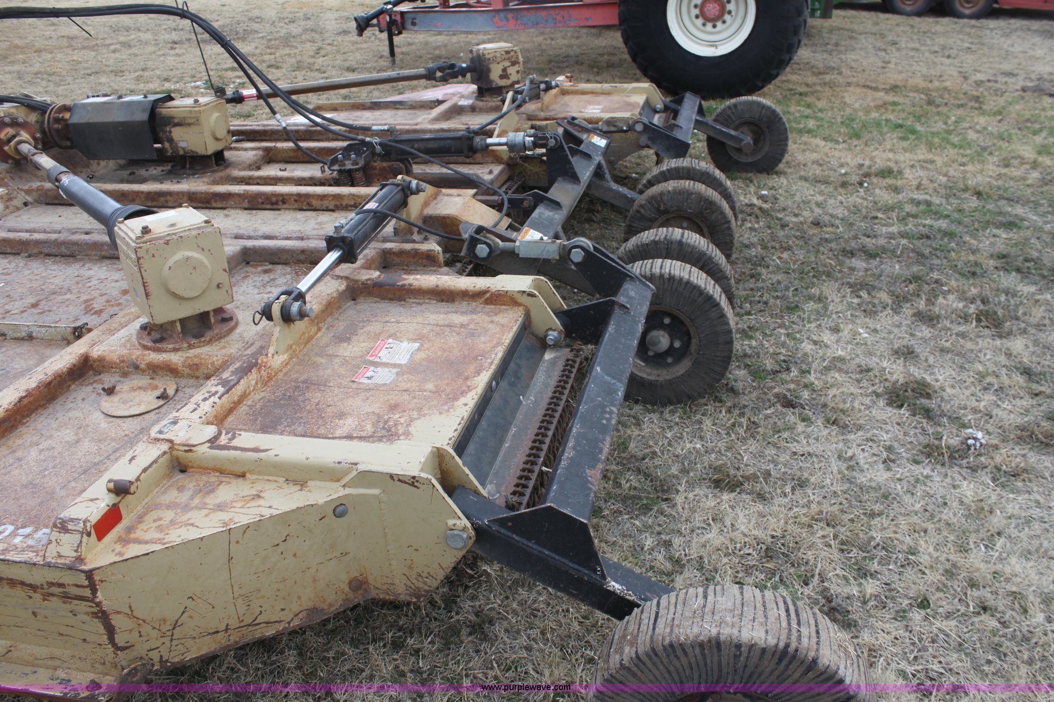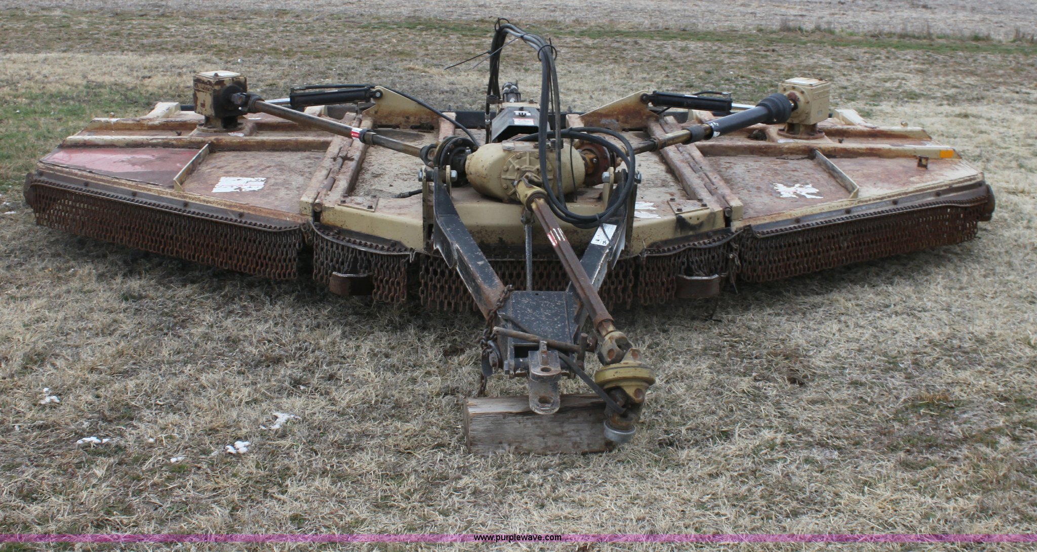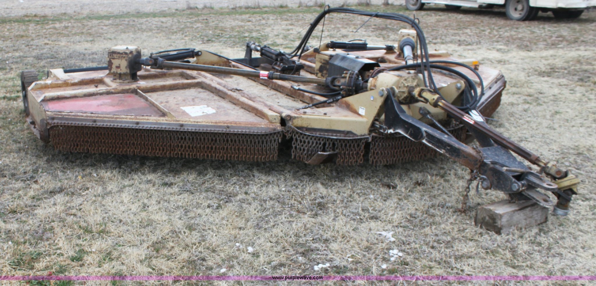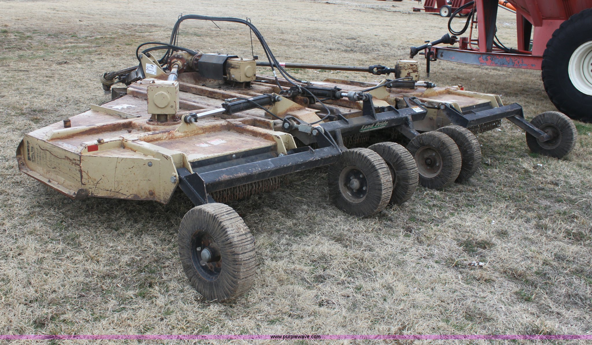 Purple Wave is selling a used Mower, Cutter, Shredder in Kansas. This item is a Land Pride RCM5015 bat wing mower with the following: 1000 PTO, Solid tail wheels, Serial 313223