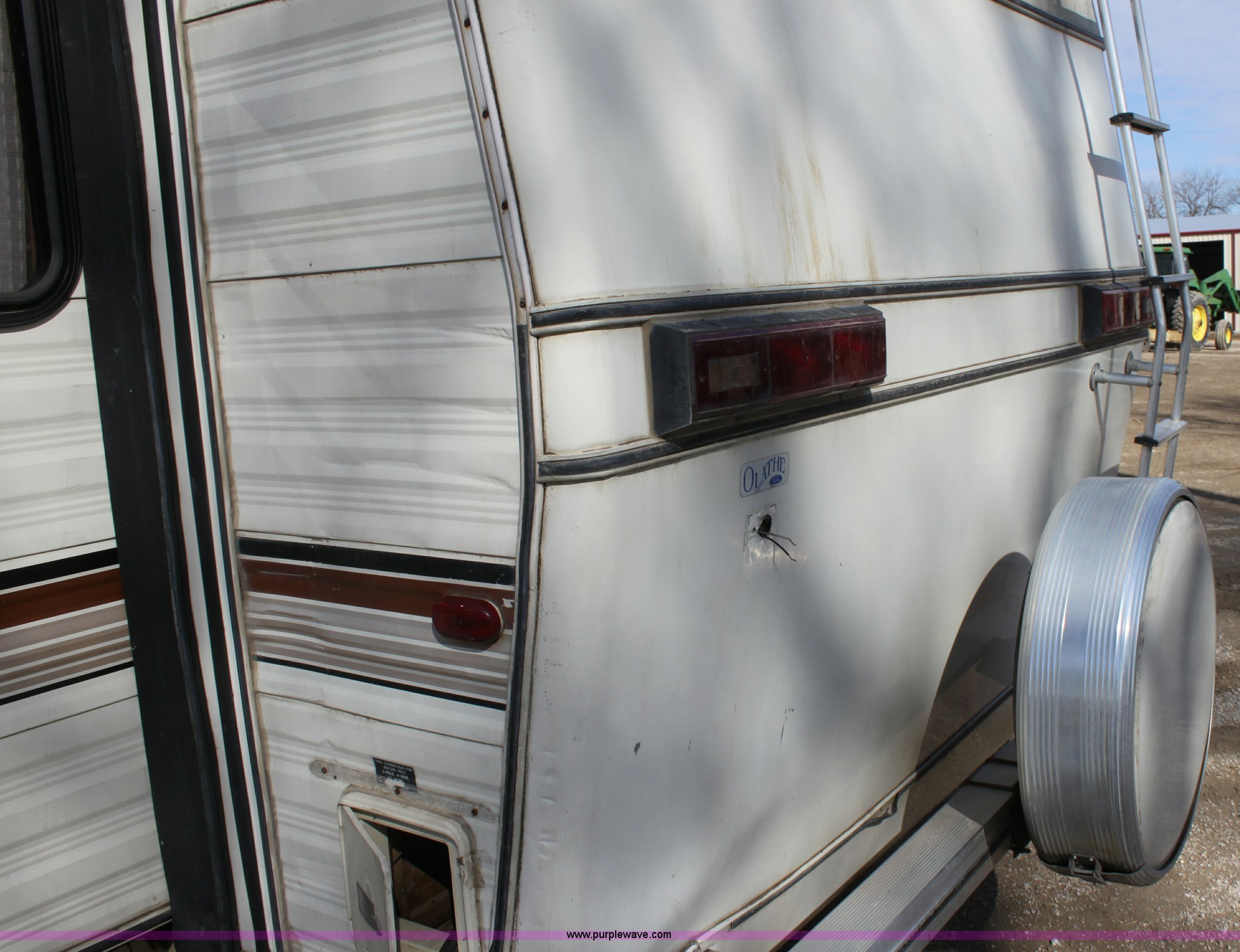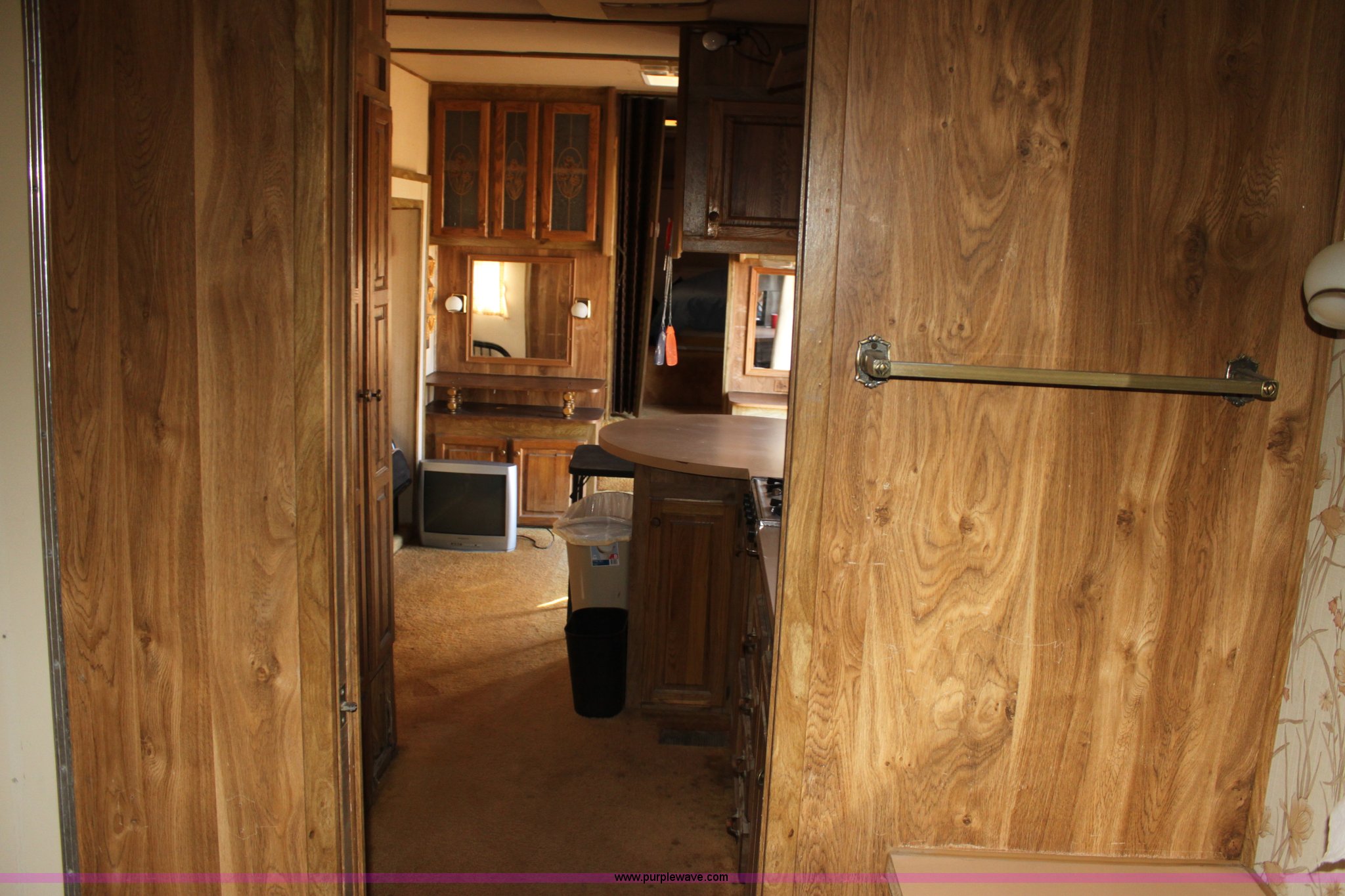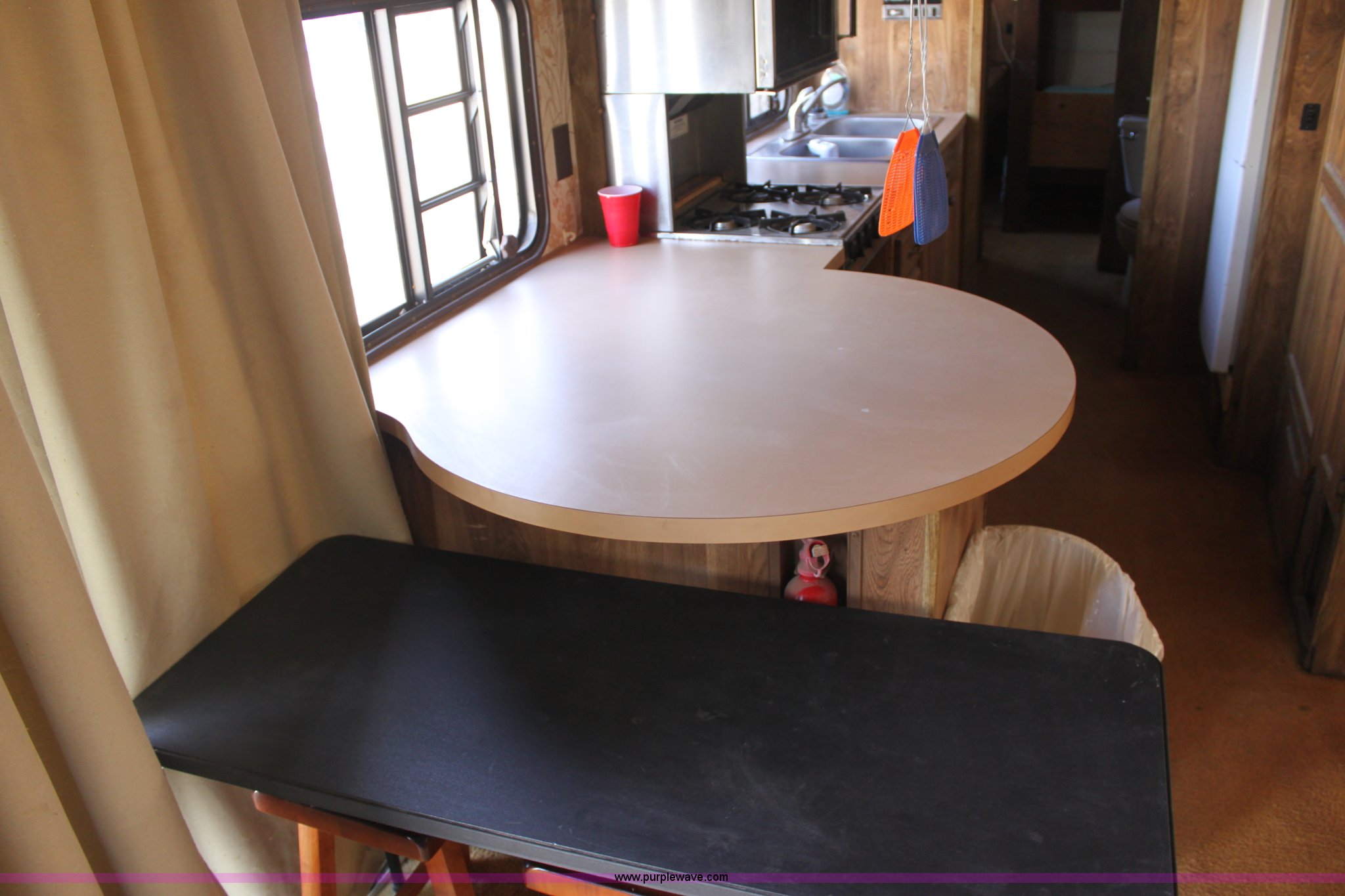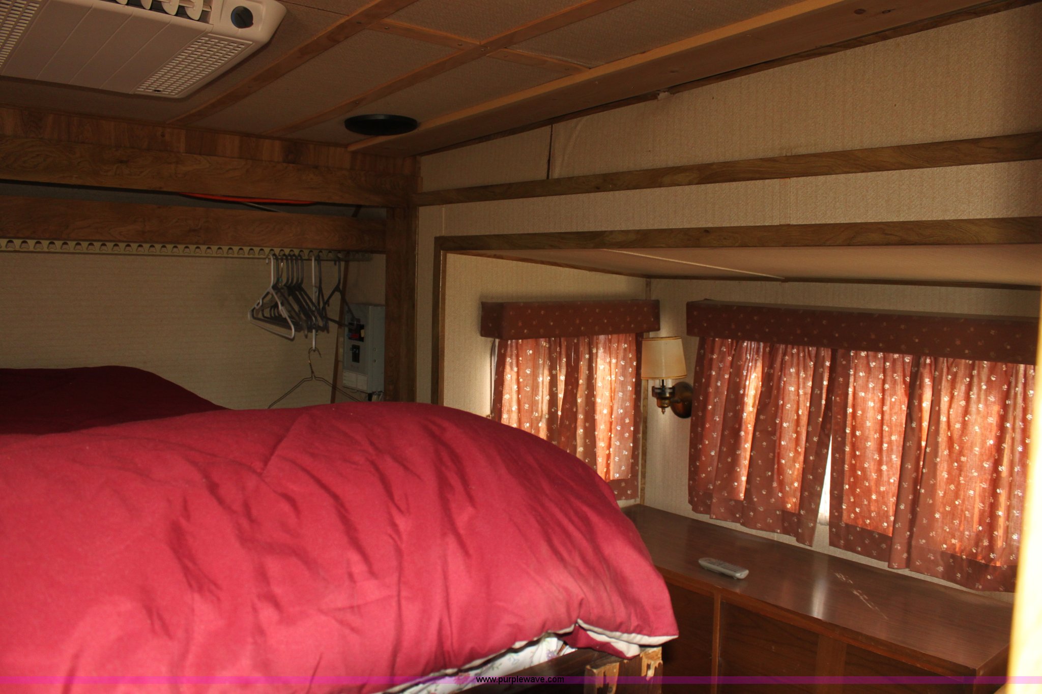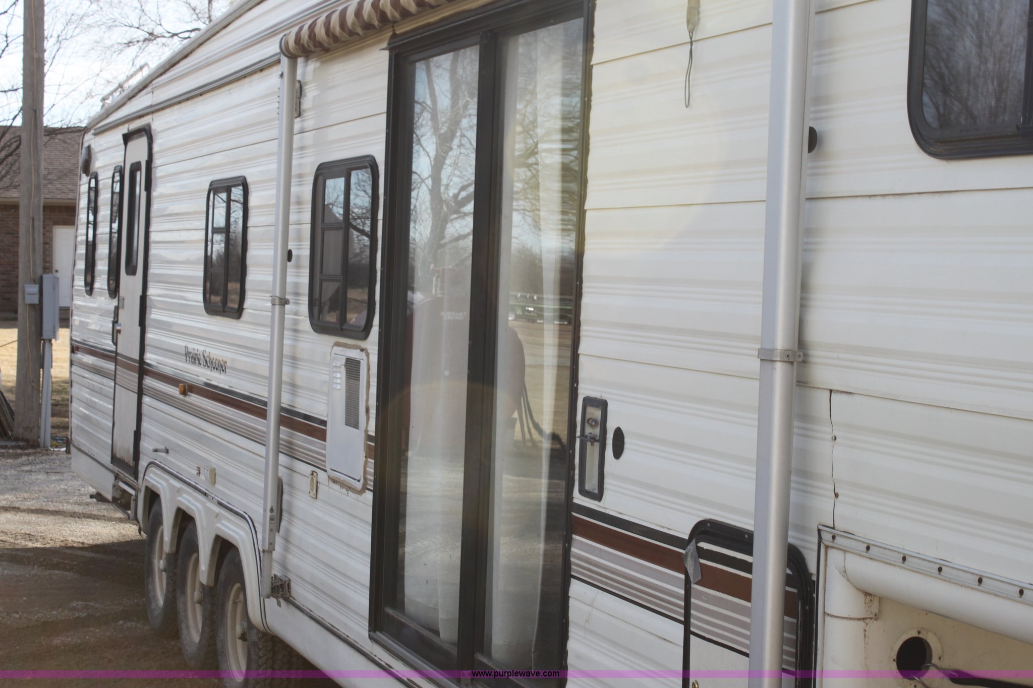 Purple Wave is selling a used RV in Kansas. This item is a 1985 Prairie Schooner camper with the following: Dual slide-outs, 8' and 6', Conservator refrigerator/freezer, System Monitor II, Fresh water, Gray holding tank, (2) rooftop Alas, Duo-therm, Coleman Mach, Roof has been cool sealed, 12' awning, Gooseneck adapter, Triple axle, Wheel bearings packed last year, 235/75R15 tires, 16 gallon water heated replaced last year, Faucets, refrigerator, hot water heater, toilet and one roof top AC have all been replaced