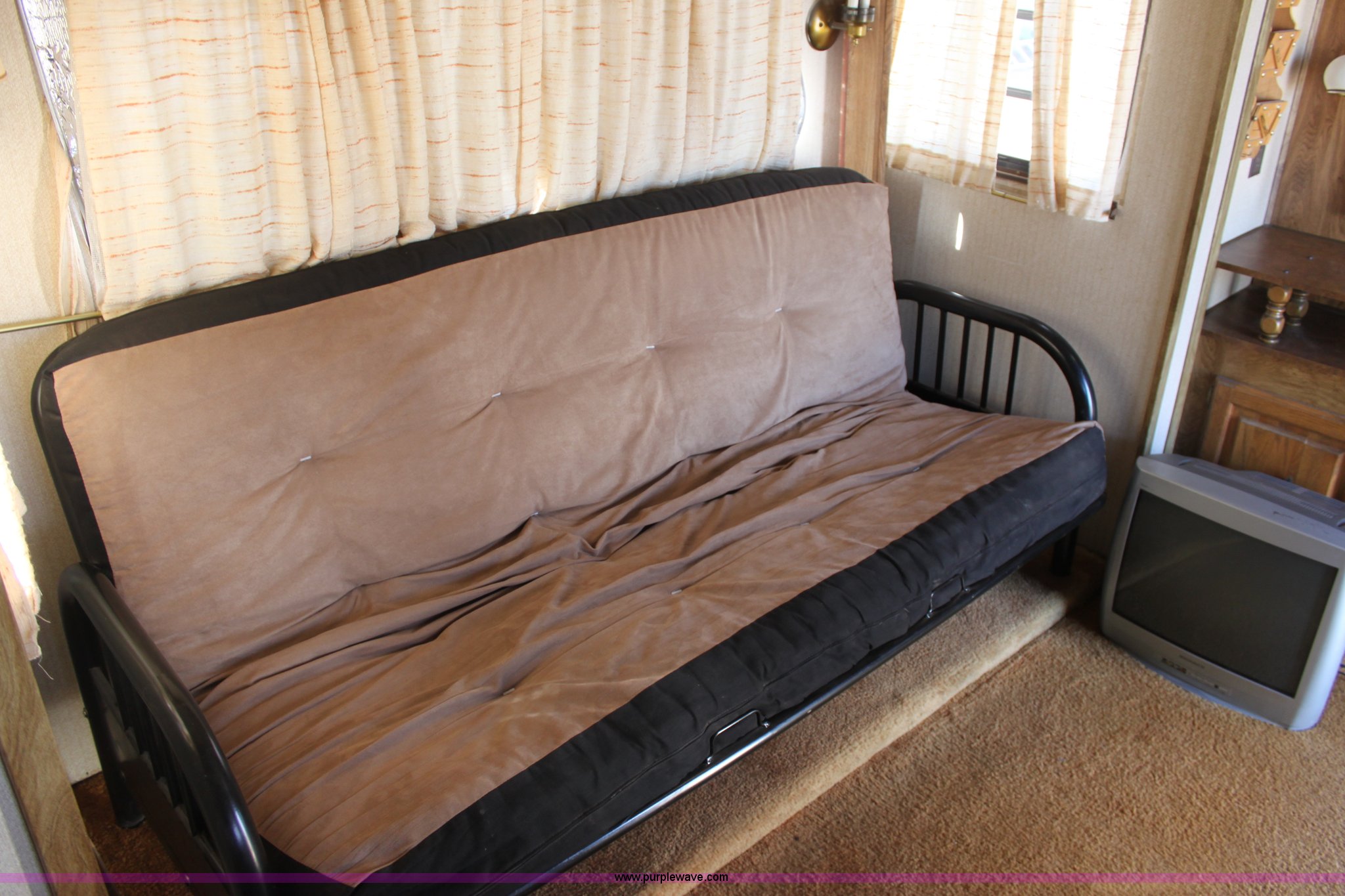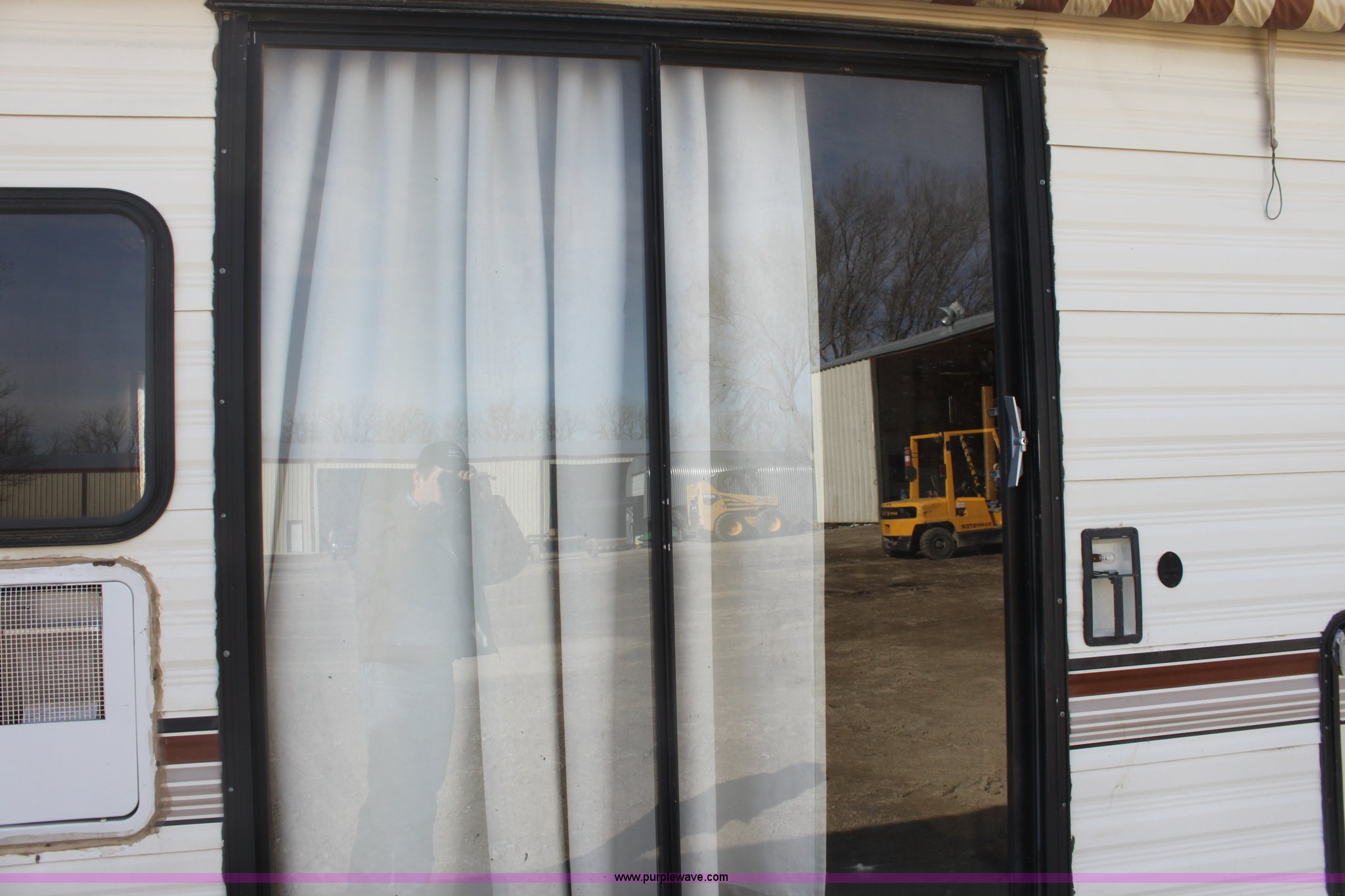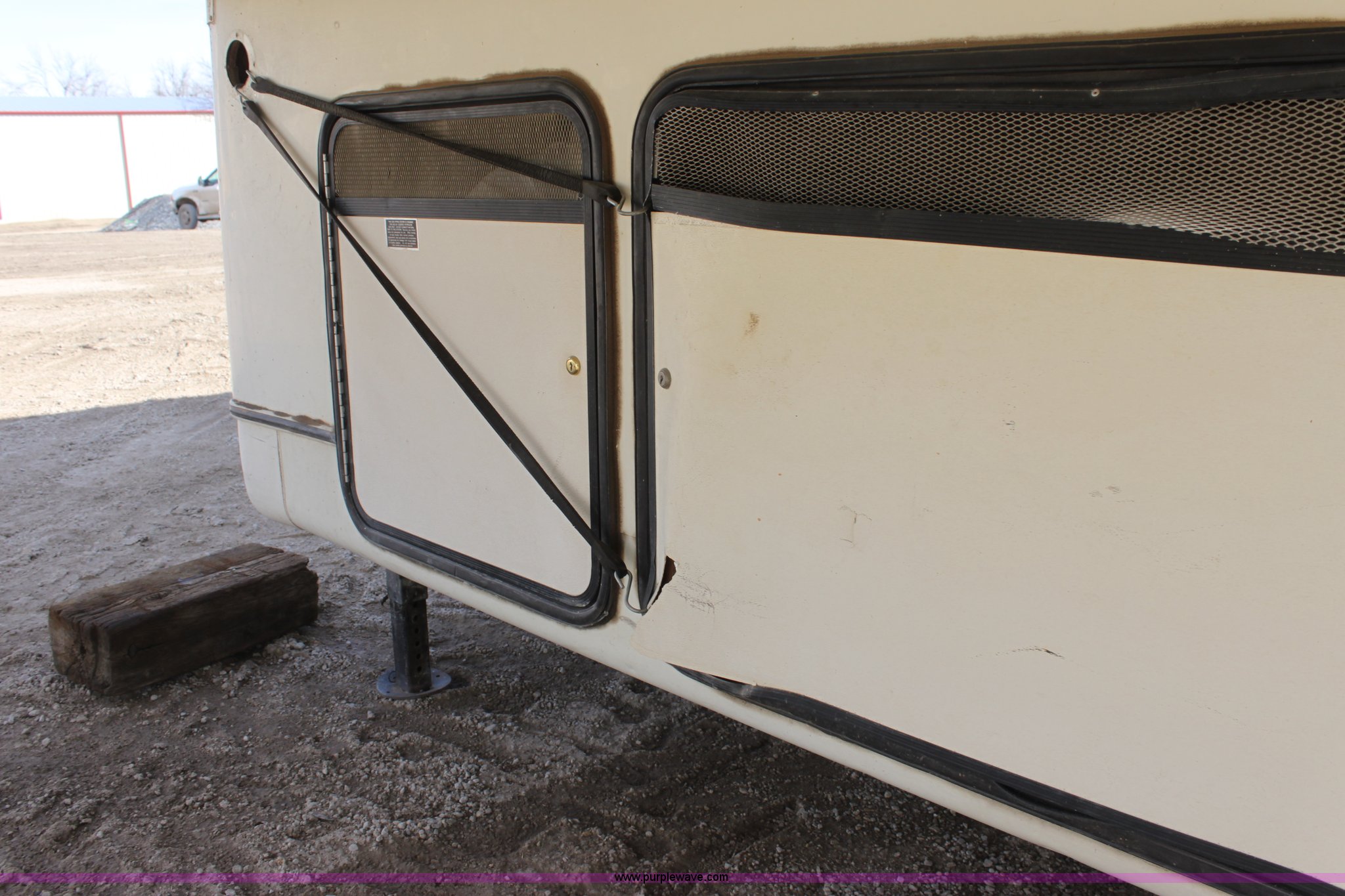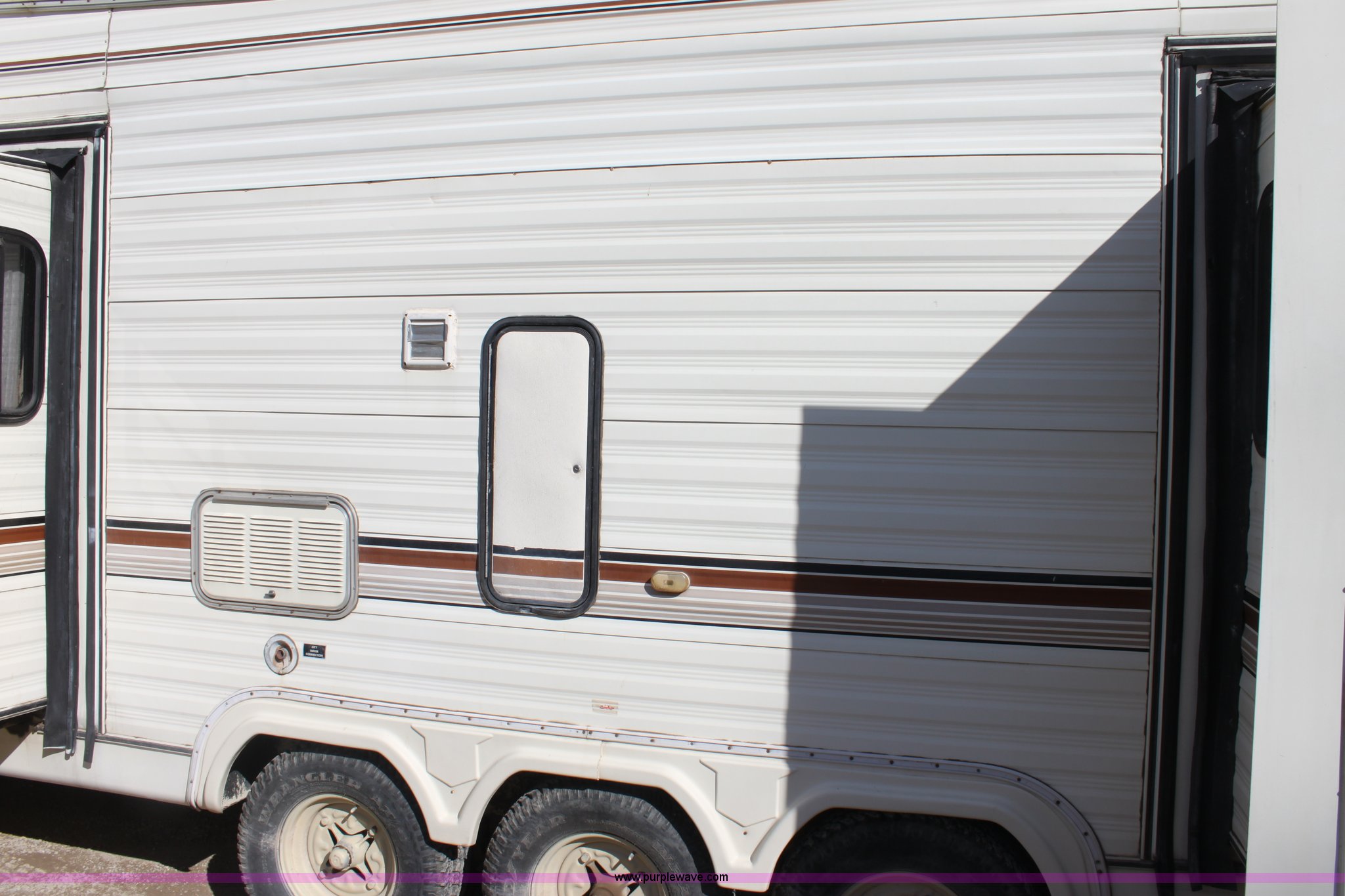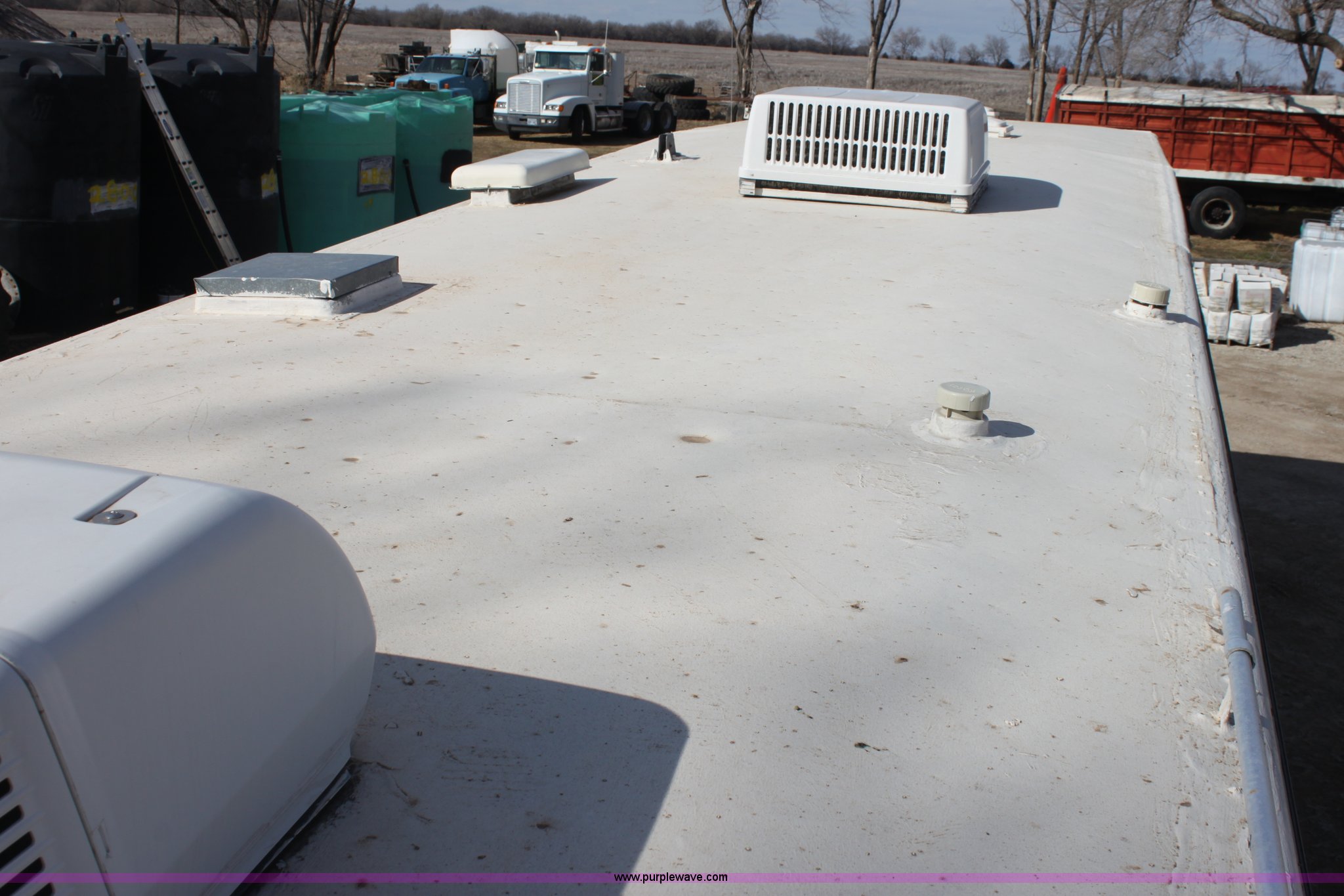 Purple Wave is selling a used RV in Kansas. This item is a 1985 Prairie Schooner camper with the following: Dual slide-outs, 8' and 6', Conservator refrigerator/freezer, System Monitor II, Fresh water, Gray holding tank, (2) rooftop Alas, Duo-therm, Coleman Mach, Roof has been cool sealed, 12' awning, Gooseneck adapter, Triple axle, Wheel bearings packed last year, 235/75R15 tires, 16 gallon water heated replaced last year, Faucets, refrigerator, hot water heater, toilet and one roof top AC have all been replaced