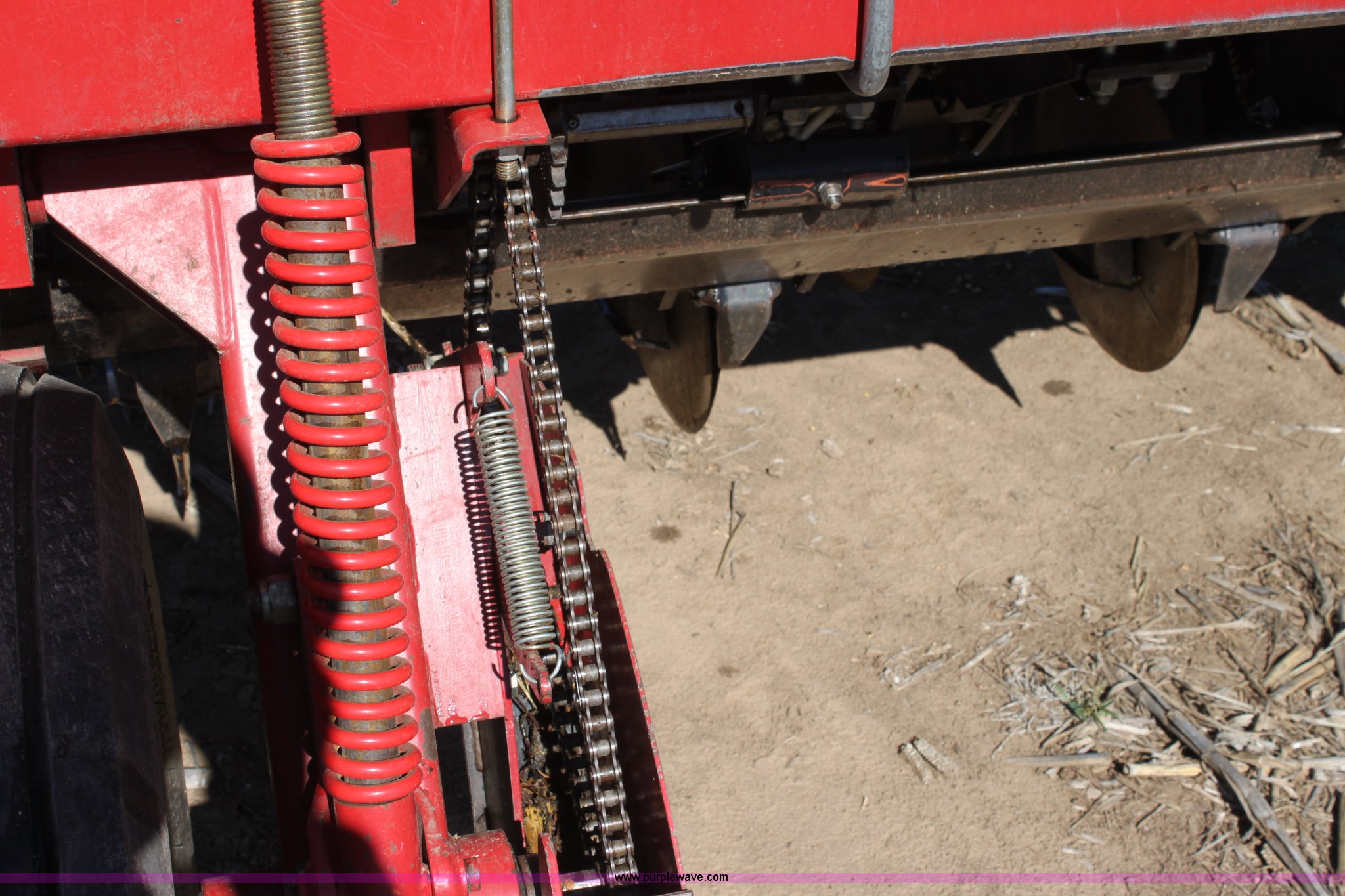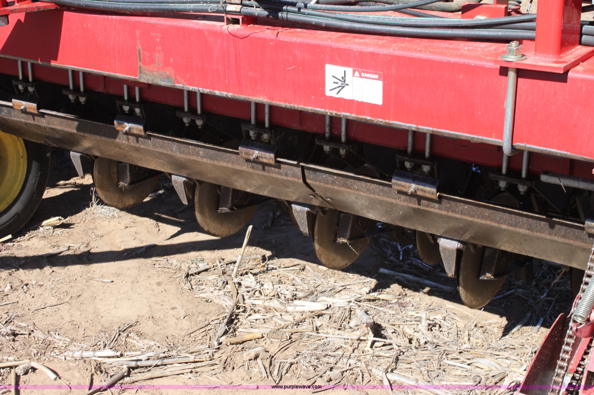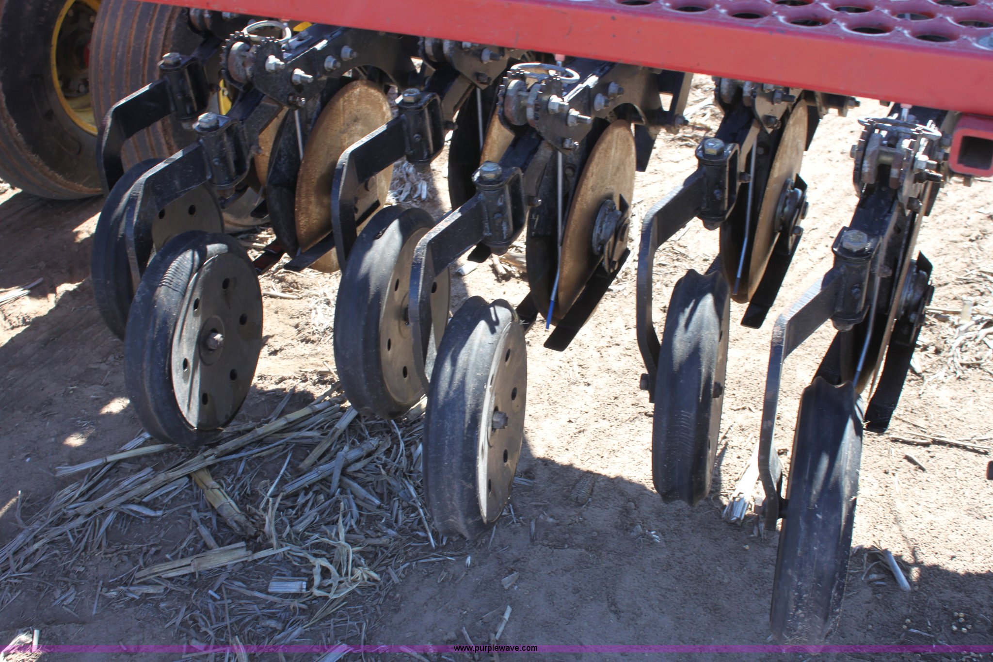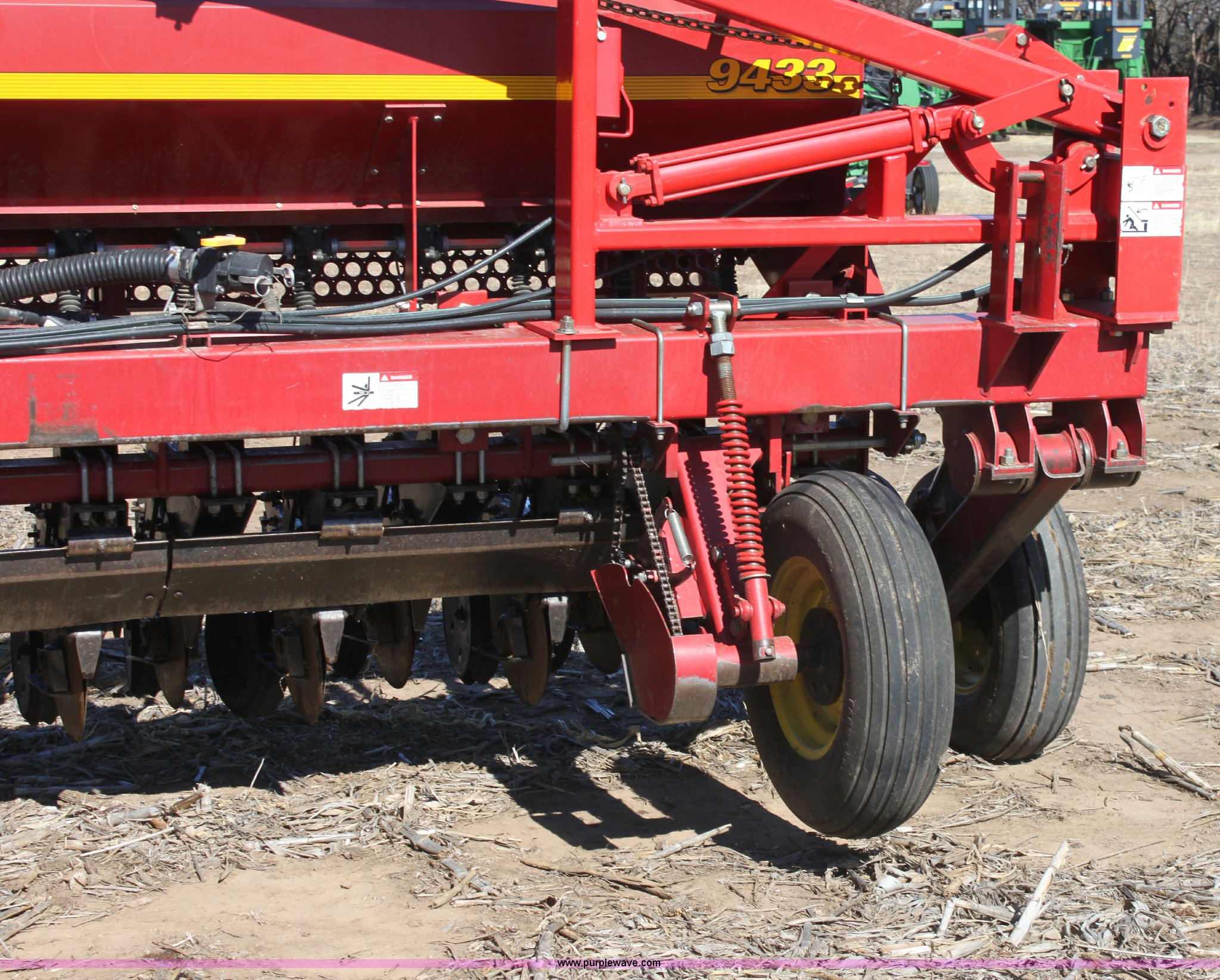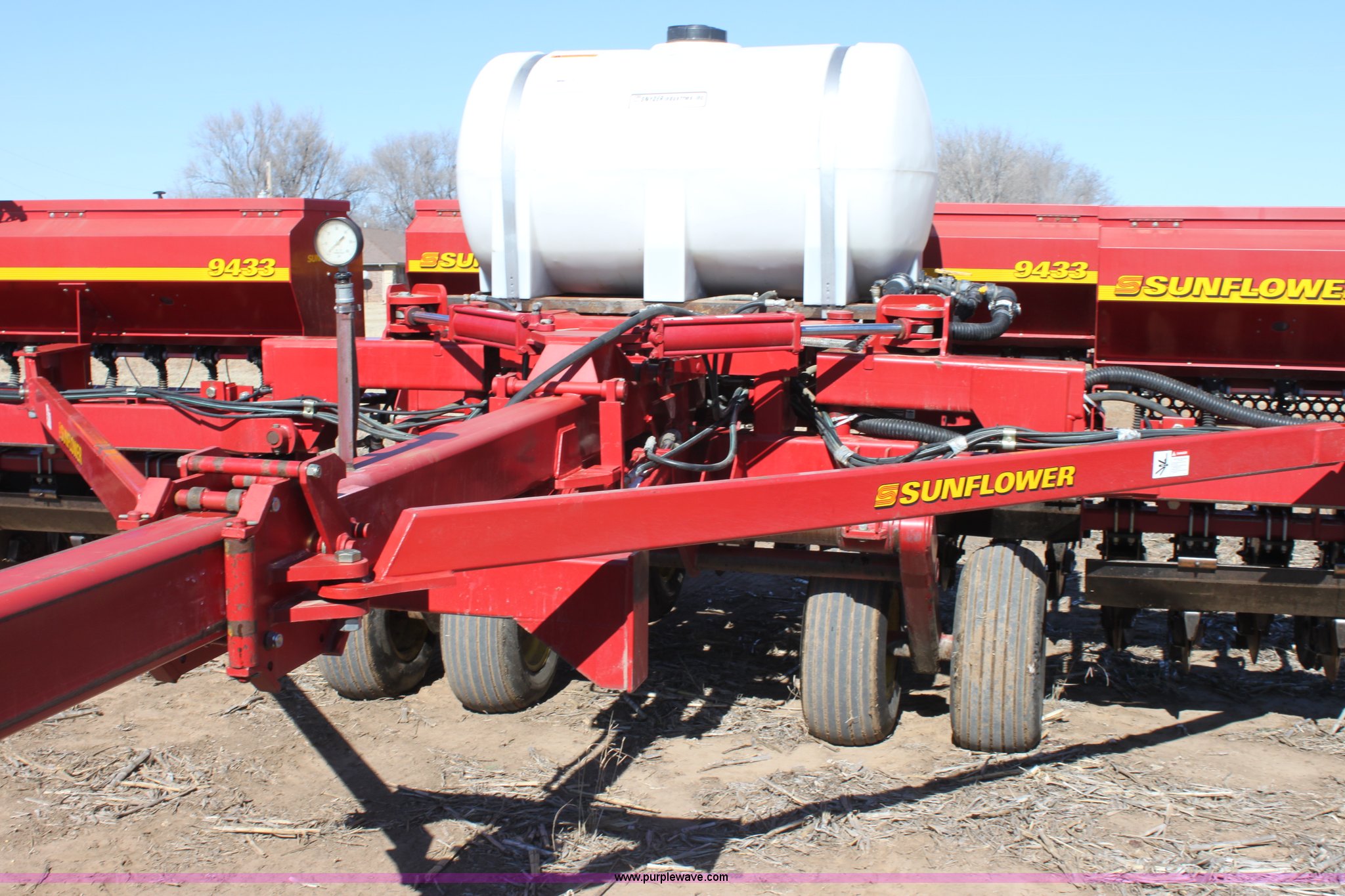 Purple Wave is selling a used Grain Drill or Seeder in Kansas. This item is a 2003 Sunflower 9432 30' folding drill with the following: 12,673 acres on meter, 36 row, 10" spacing, No-till markers, 300 gallon fertilizer tank, Ground drive, 14" blades, Replaced last year, 14" press wheels, Replaced one season ago, Double disk openers, 9.35L-15SL, Recently replaced closing wheels, Serial 9433B20020009