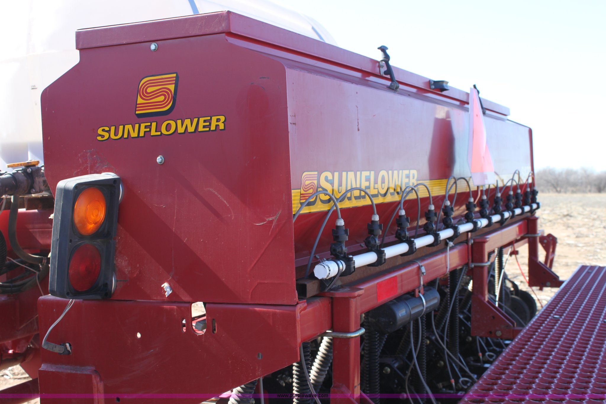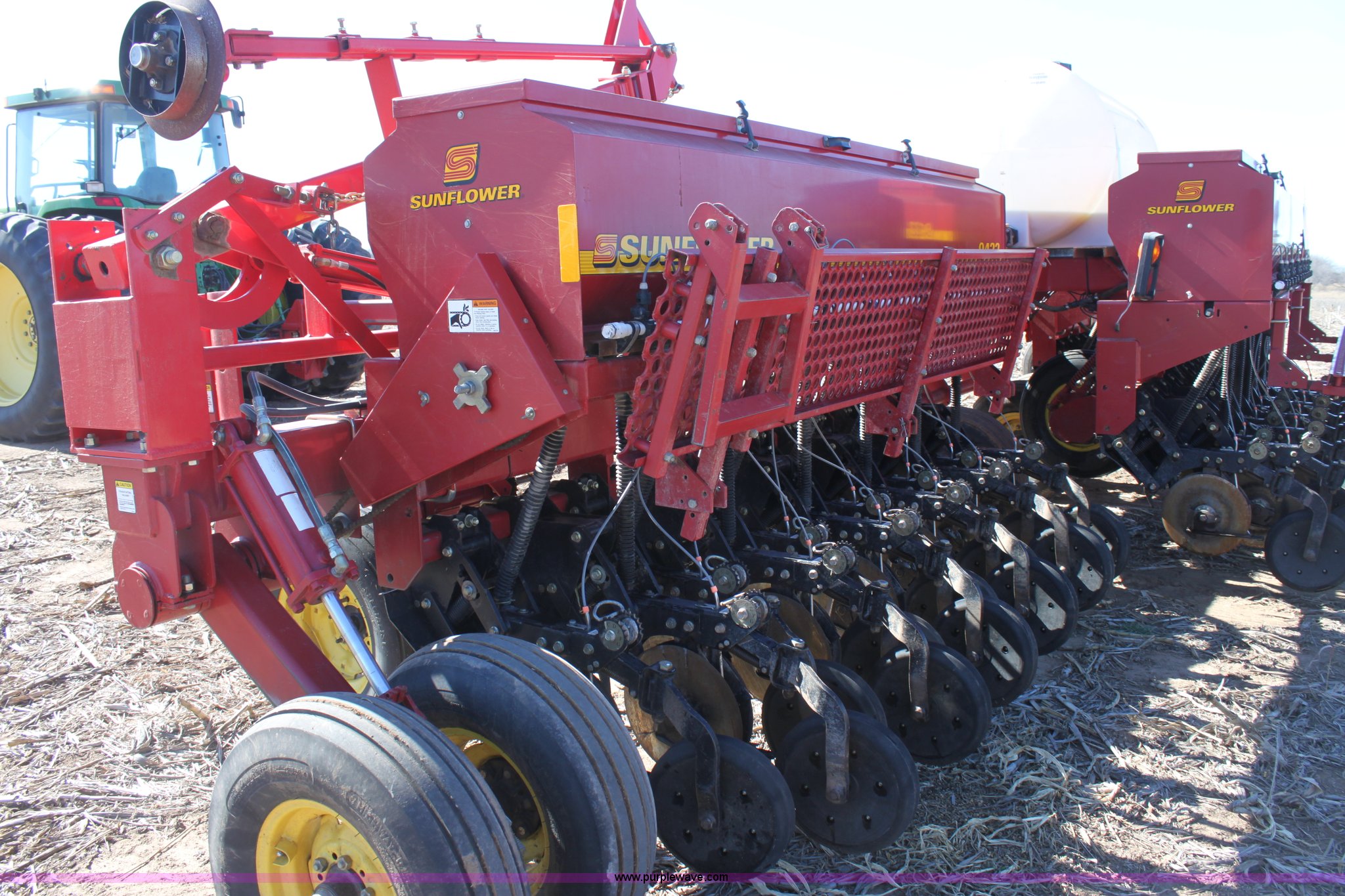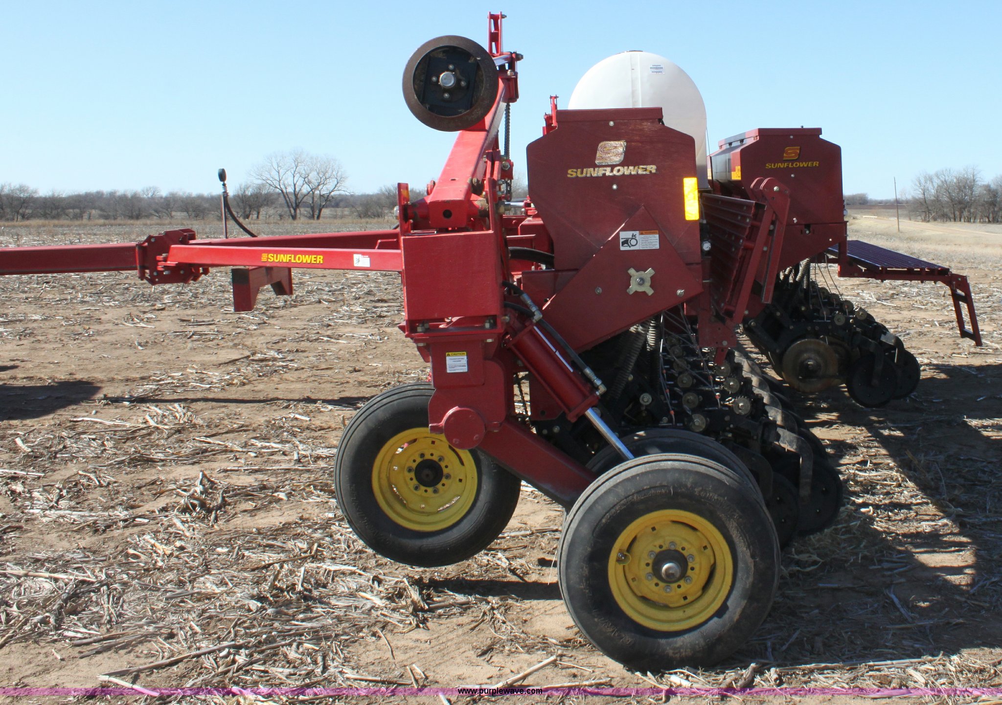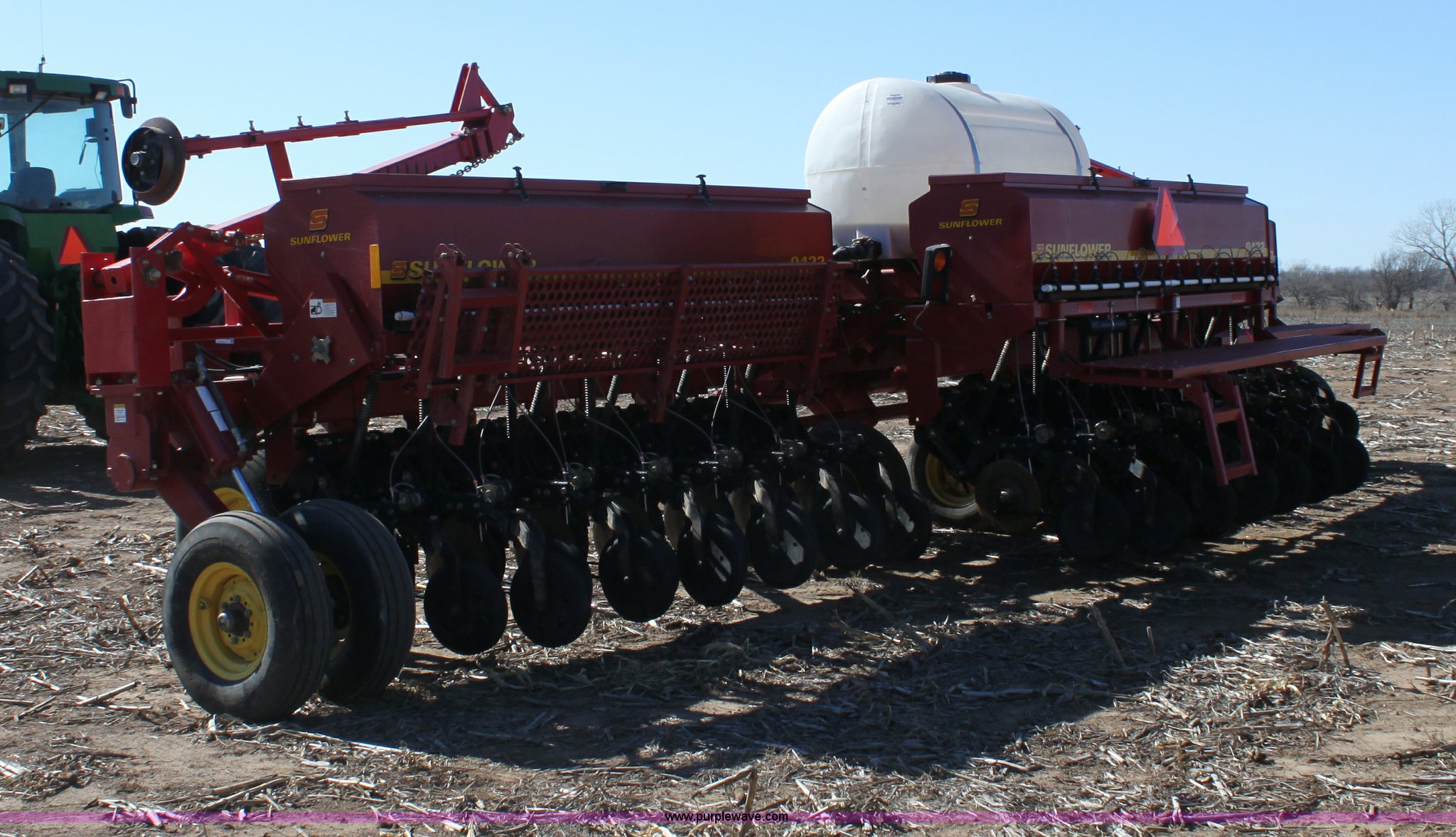 2003 Sunflower 9432 30' folding drill. 12,673 acres on meter, 36 row 10" spacing, No-till markers, 300 gallon fertilizer tank, Ground drive, 14" blades Replaced last year, 14" press wheels Replaced one season ago, Double disk openers, 9.35L-15SL, Recently replaced closing wheels, Serial 9433B20020009. Bid for Blue program asset. Shipping quotes available. S.L. Cornelsen Farms. Oxford, KS 67119