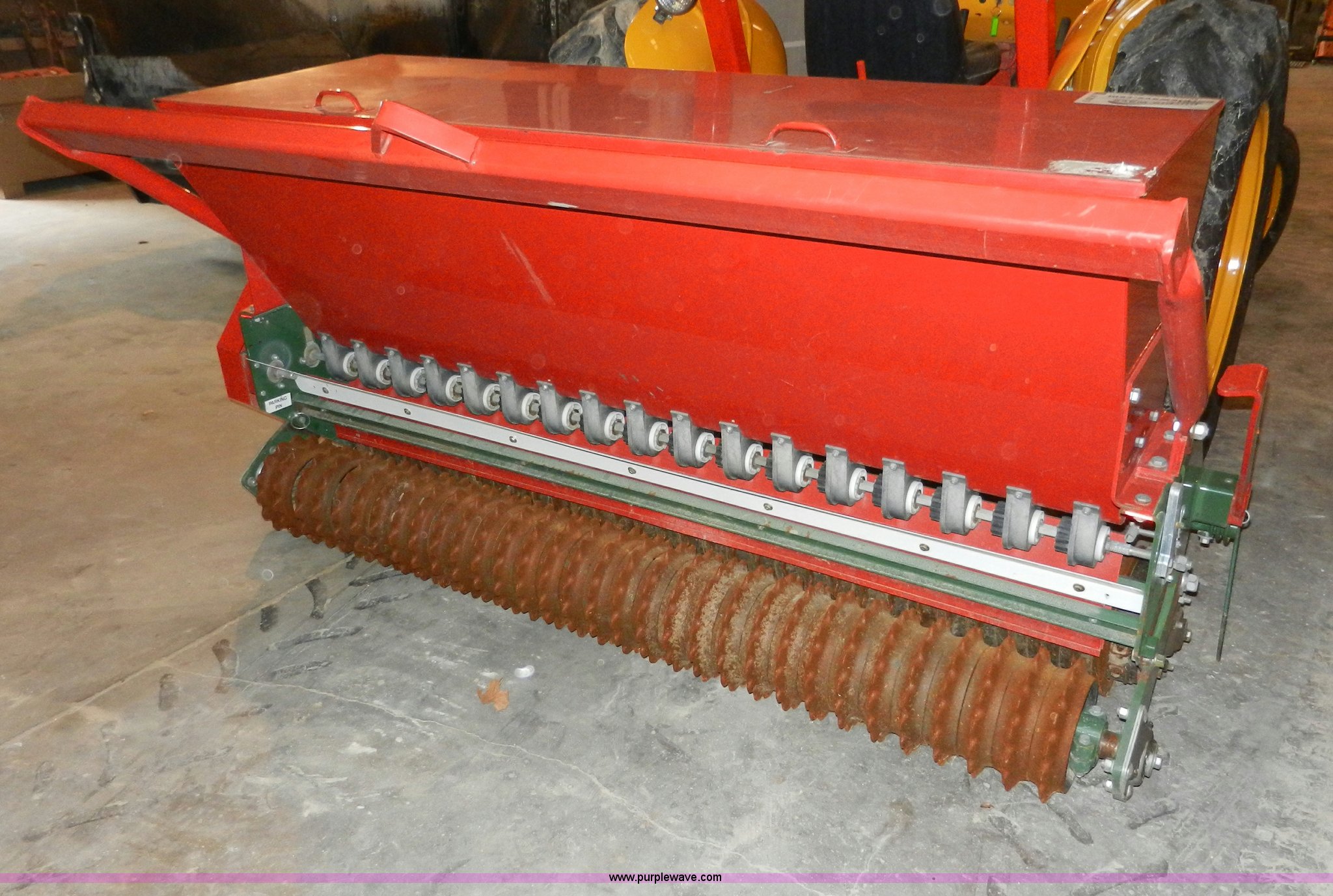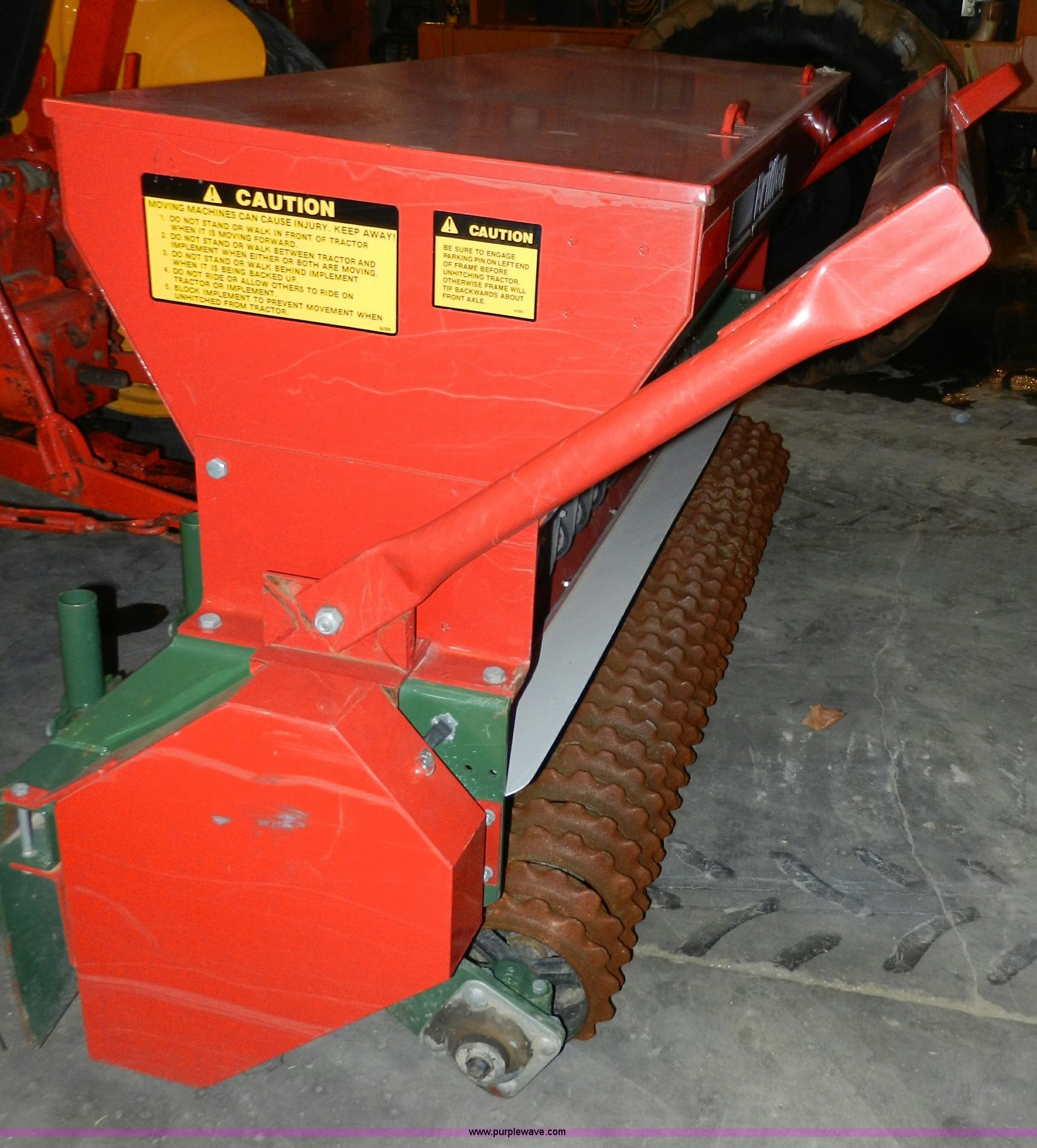 Purple Wave is selling a used Grain Drill or Seeder in Kansas. This item is a Brillion Turfmaker junior seeder with the following: Model SLP-205, 72"W, (2) tines sections in front, Three point, 4" slot spacing, Front and rear rollers, 11 hopper capacity, Serial 188814