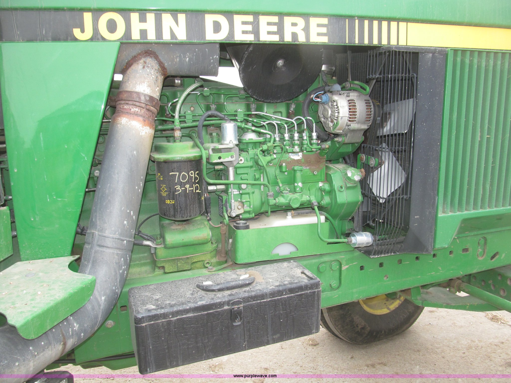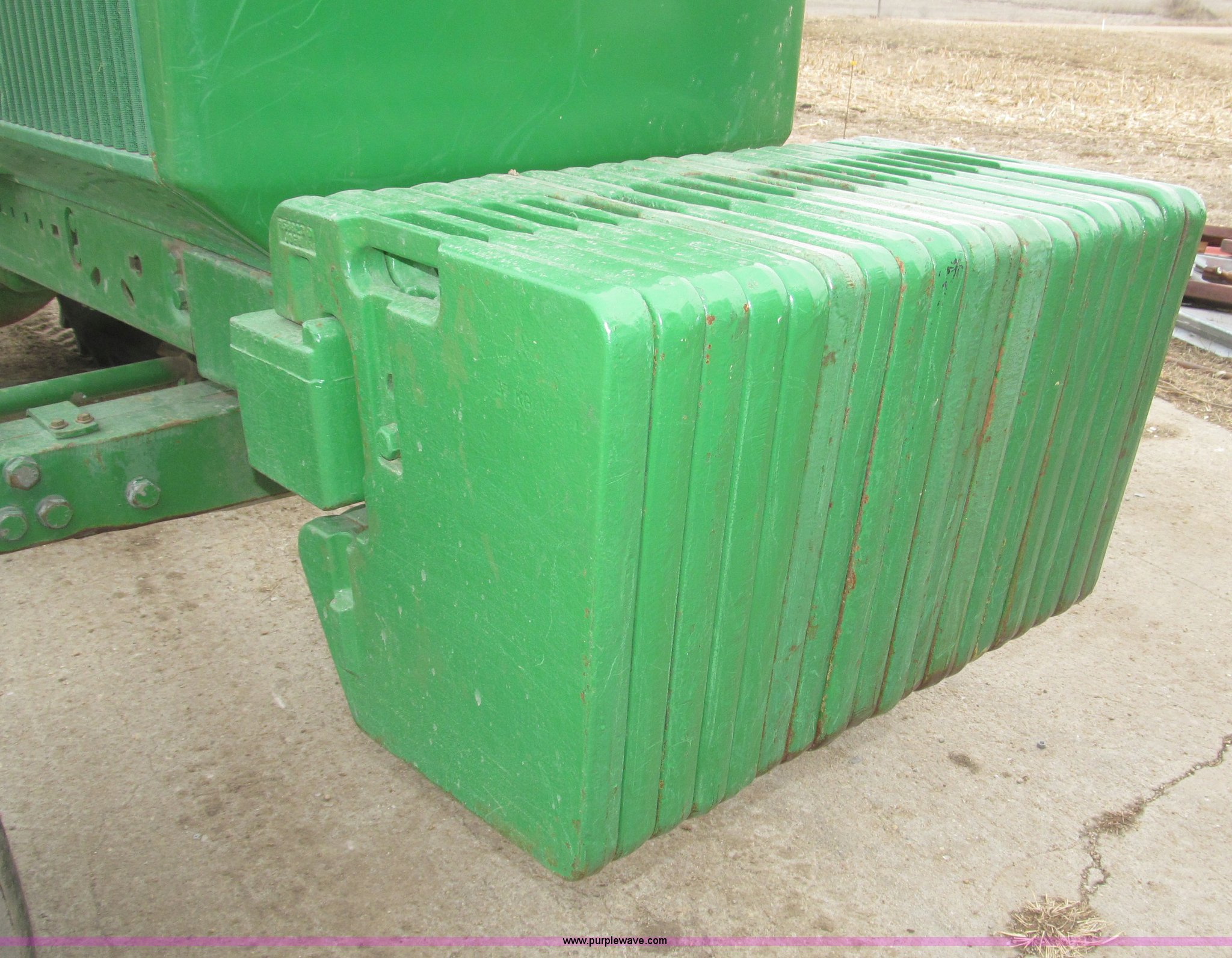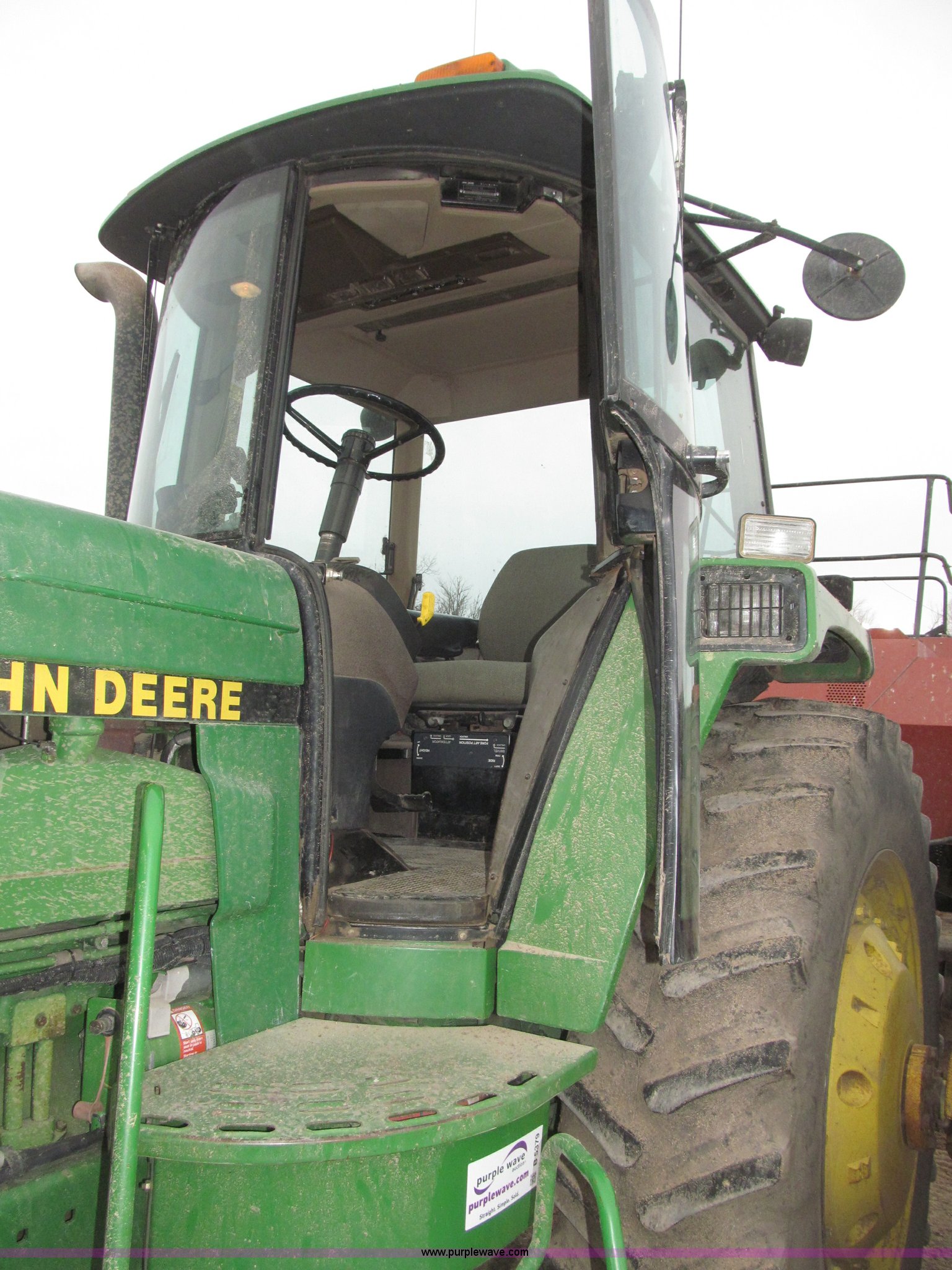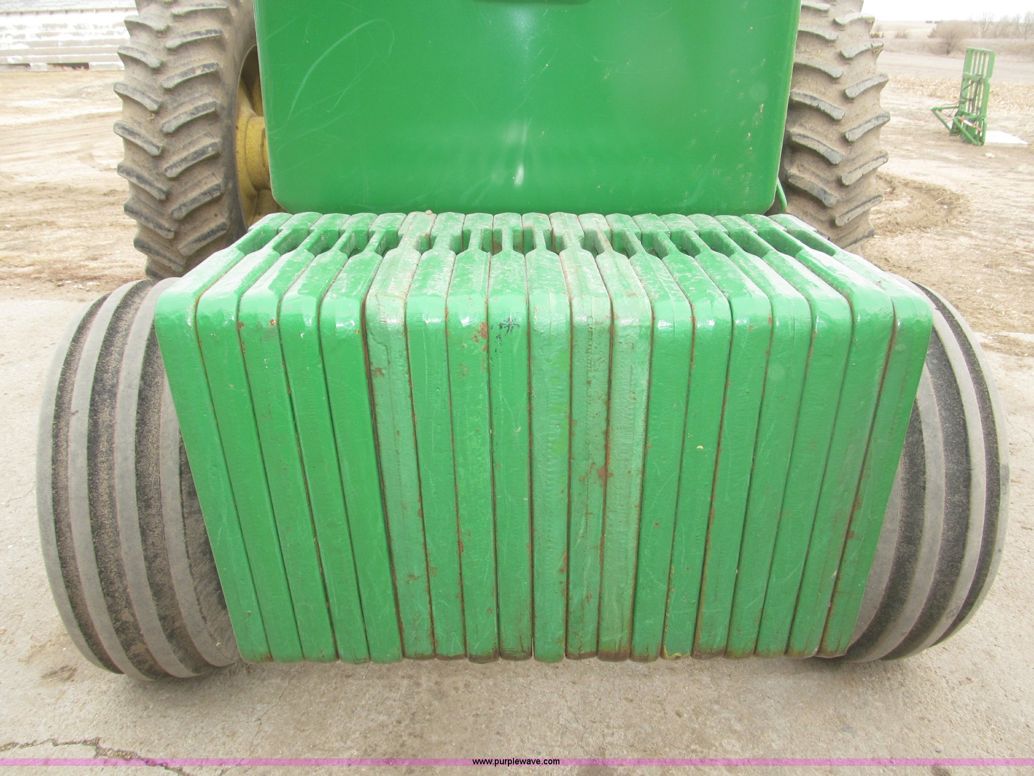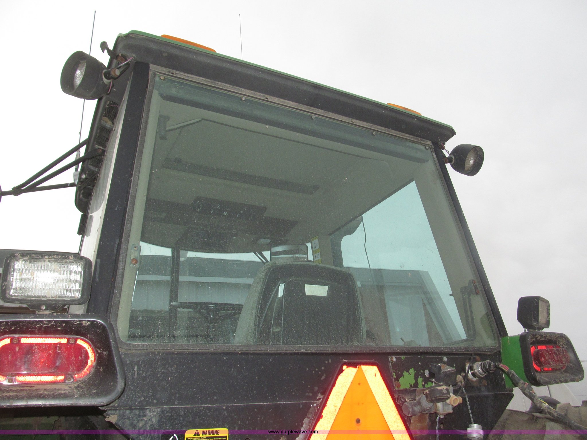 Purple Wave is selling a used Tractor in Nebraska. This item is a 1992 John Deere 4760 tractor with the following: John Deere 7.6L turbo diesel, 175 HP, Partial powershift transmission, 16F-6R gears, Locking differential, AC and heat, Tilt, AM/FM, Front and rear work lights, Electro hydraulic three point draft sensing, Side mounted toolbox, Three point, Three point quick attach, Draw Bar, Auxiliary outlet, 540/1000 PTO, (7) rear hydraulic remotes, (19) suitcase weights, Block heater, Ether aid, 102 gallon fuel tank, Front side vertical exhaust, 118.5" wheelbase, Firestone 14L-16.1 front tires, Firestone 18.4R42 dual rear tires, 18,703 lbs. base operating weight, Maintenance history available upon request, Serial RW4760P001280
