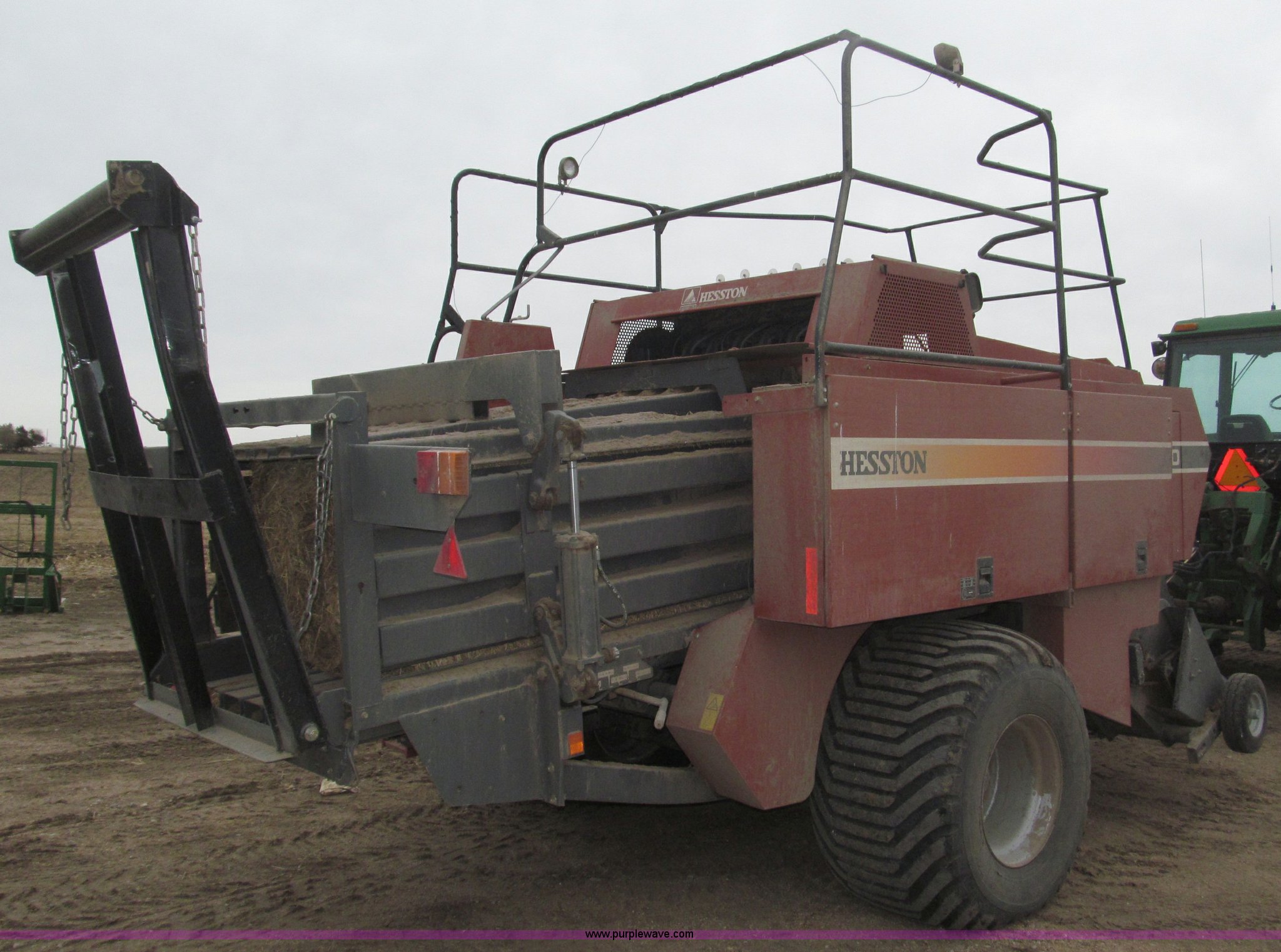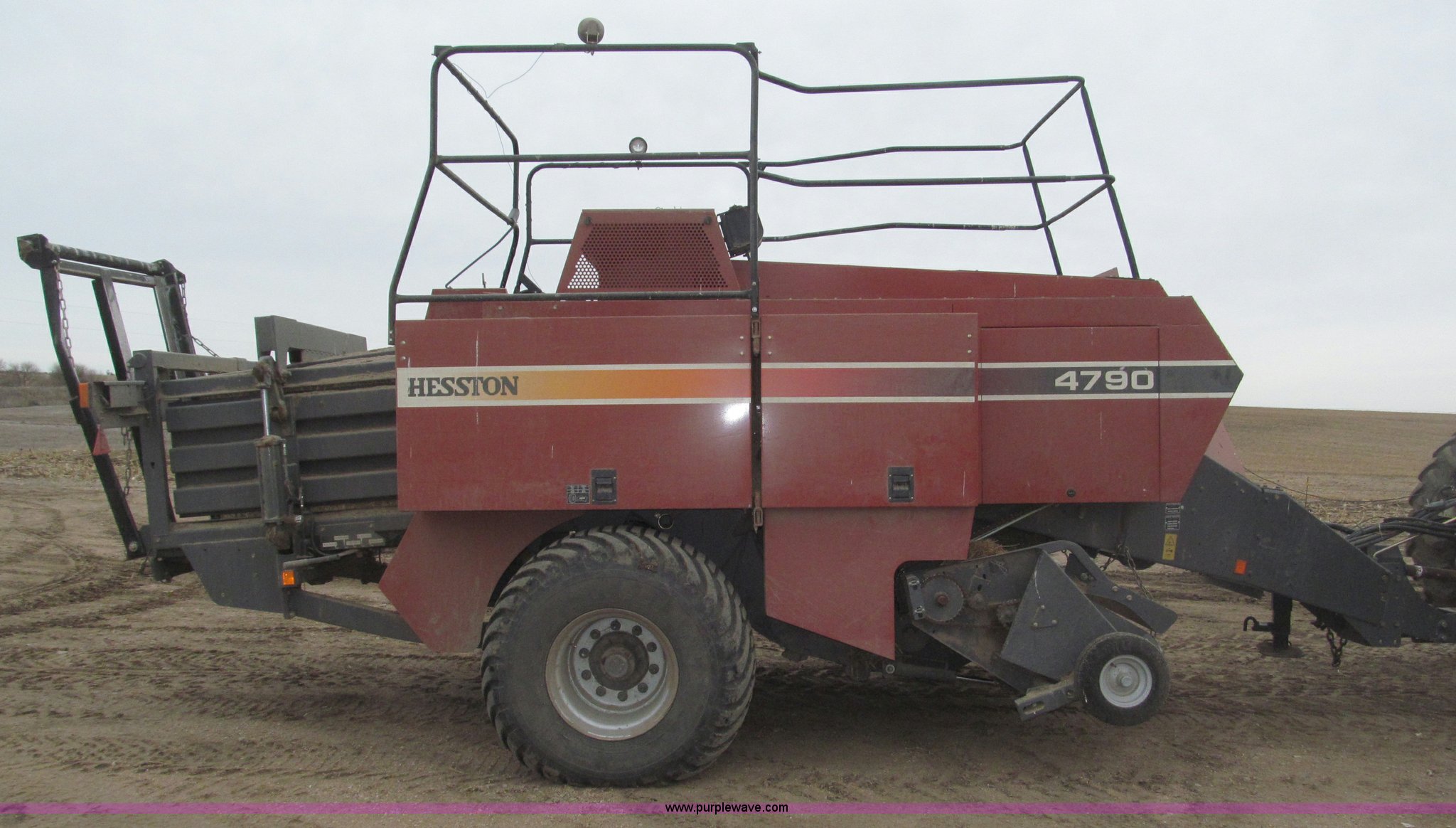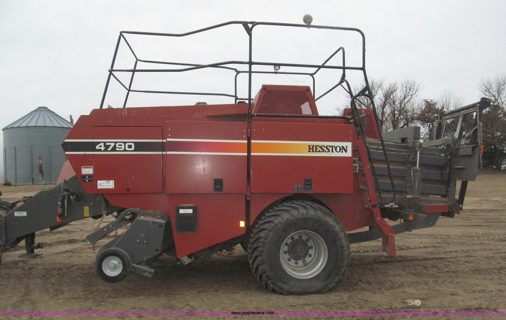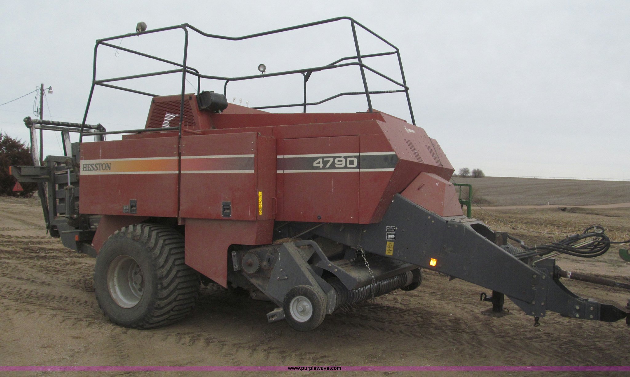 Purple Wave is selling a used Square Baler in Nebraska. This item is a 2007 Hesston 4790 large square baler with the following: 196 actual hours on meter, 3' x 4' bale capacity, 8,066 number of bales on counter, Baler moisture tester, Operation manual, 2009 GTA color monitor, Self greasing Lincoln quick lube system, Fly wheel brake, Safety chain, Adjustable jack, Side mount manual box, 4.80/4.00-8NHS tires, 700/50-22.5 flotation tires, Operators manual, Assorted parts and twine included, Always stored inside, Serial 1187CBHS47101