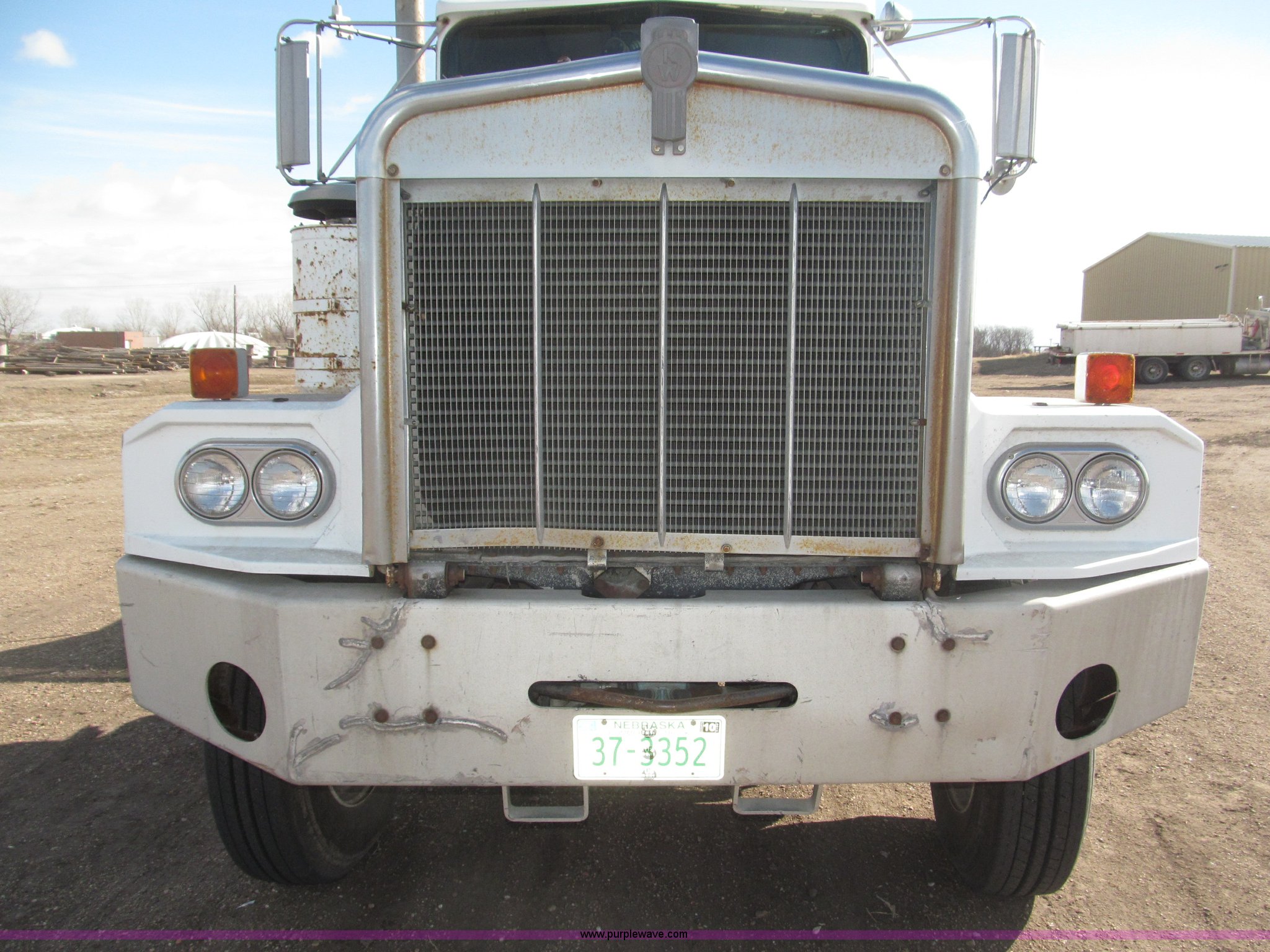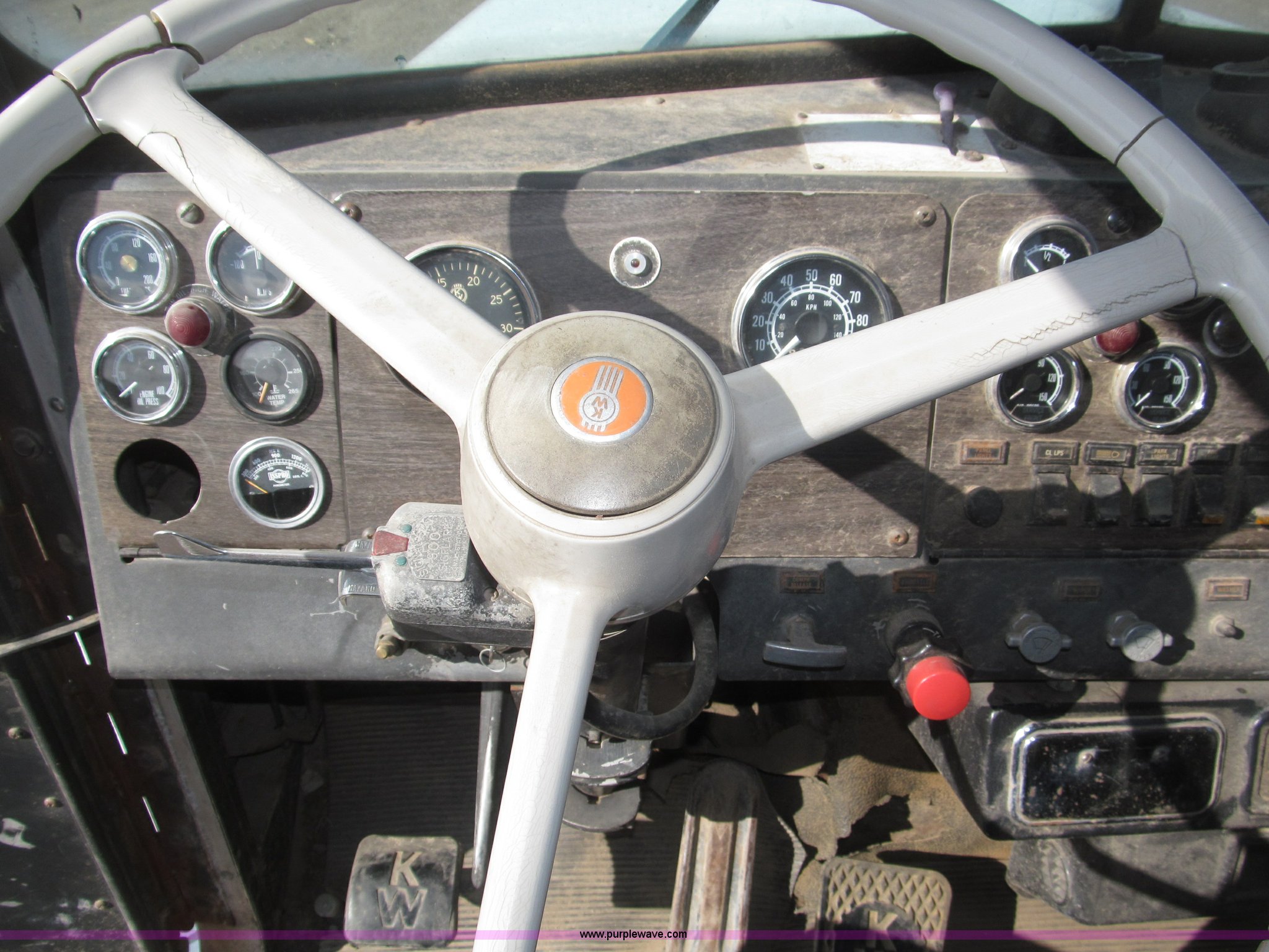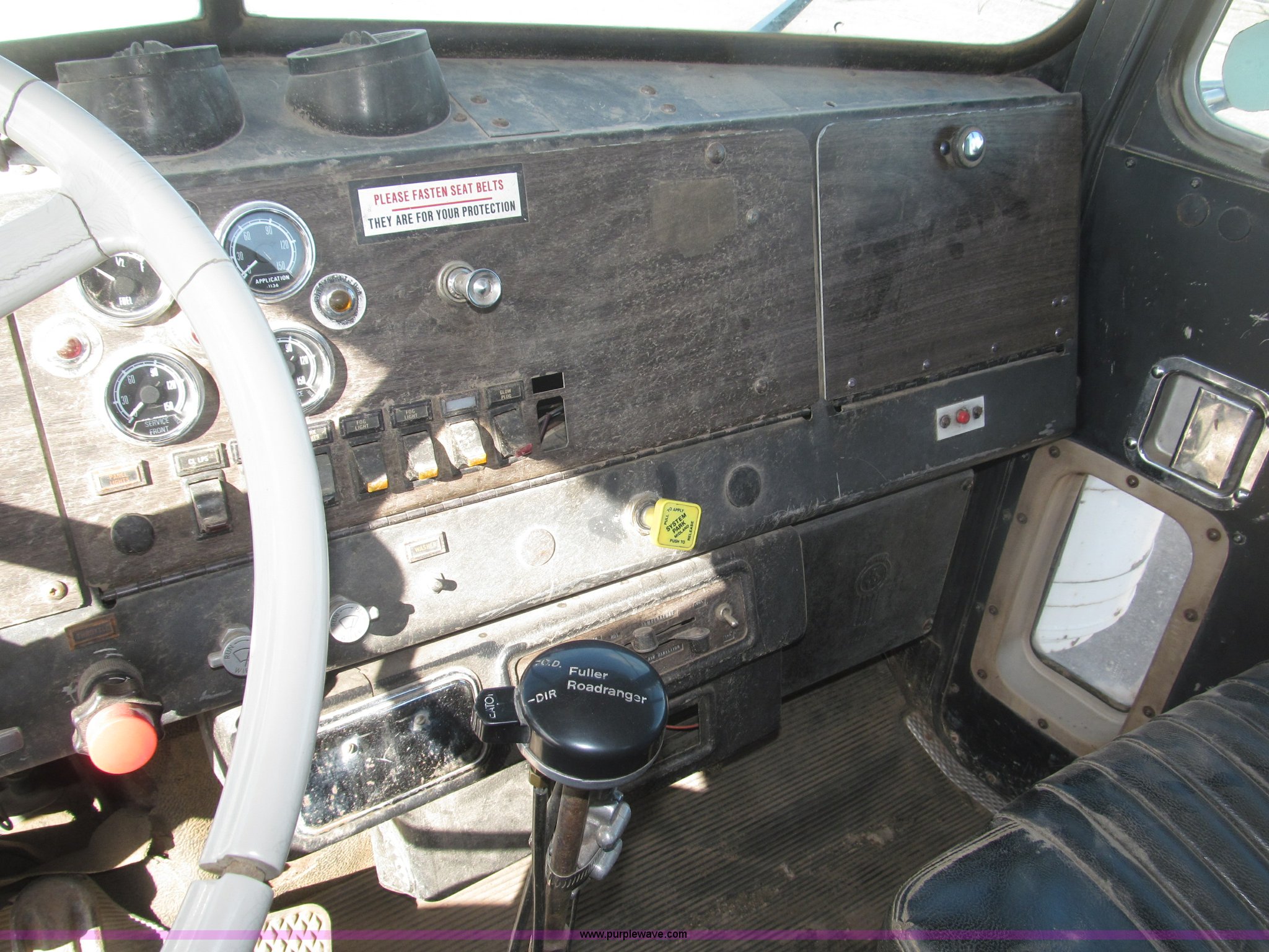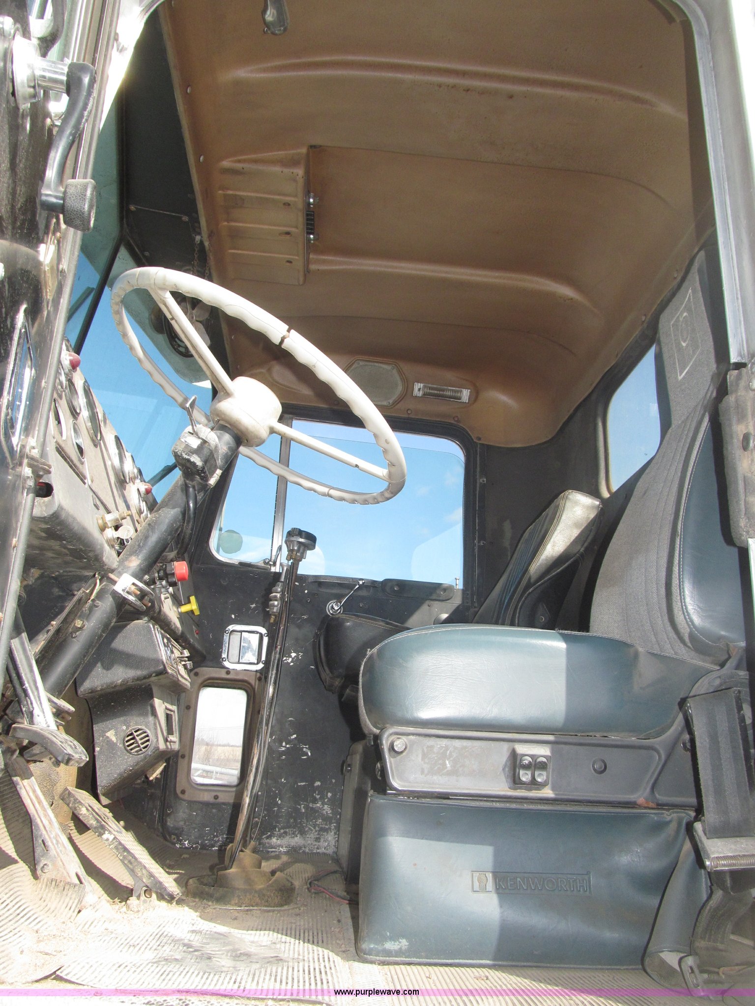 Purple Wave is selling a used Flat Bed Truck in Nebraska. This item is a 1976 Kenworth C500 tandem axle flatbed truck with the following: 663,118 miles on odometer, Cummins NTC290 turbo diesel engine, Eaton Fuller Road Ranger 13 speed manual transmission, Model RTO95Y3, Heat, Am, Air suspension seat, Heated mirror, Passenger daylight door, 11 gauge instrument panel, Ceiling mounted fan, Missing guard, 17'10"L x 93.5"W flatbed, 54.5" bed height, 25"H headache rack, (8) stake pockets per side, Driver's side steps to bed, Exterior visor, 45"L x 27"D x 14"H under bed toolbox, 75 gallon fuel tank, Receiver hitch, Single rear exhaust, Air brakes, 4:44 gear ratio, 50HD rear axle, 242" wheel base, Generals 11R24.5 front tires, Mixed brand rear tires, GVWR 50,860 lbs, 16,280 lbs chassis weight, Interior/exterior cosmetic damage, Front bumper dented and welded, Windshield cracked and chipped, Passenger window stuck open