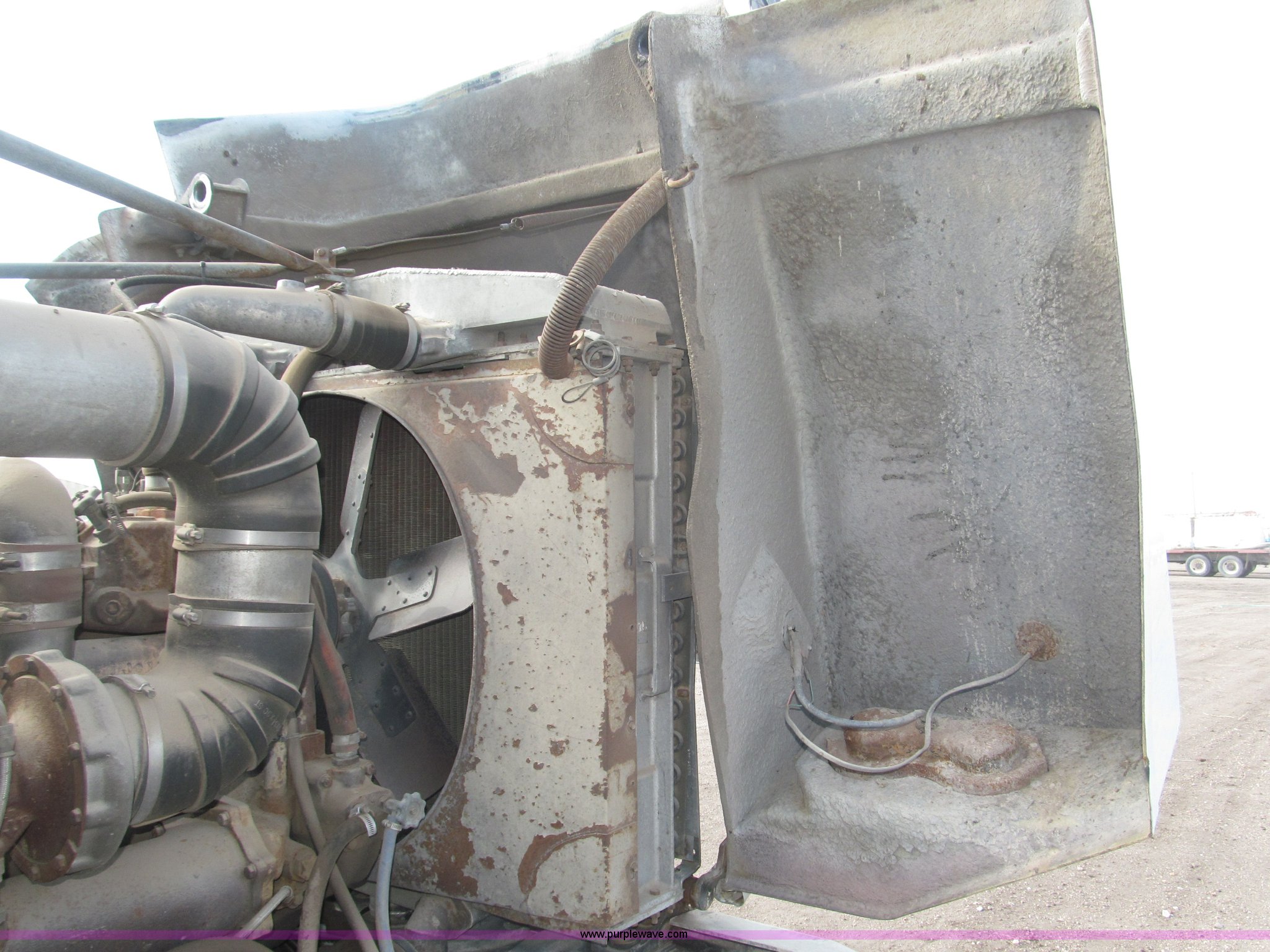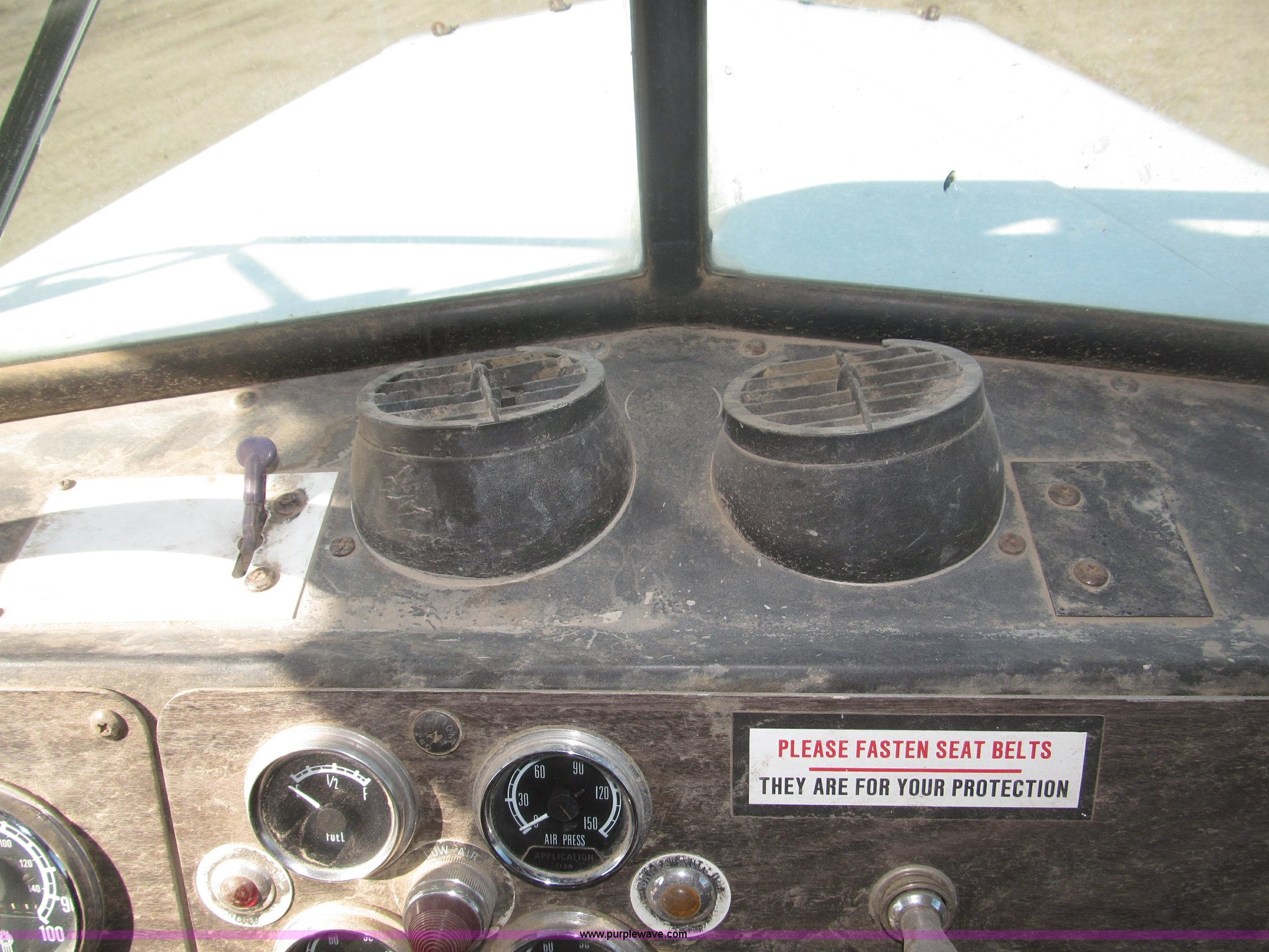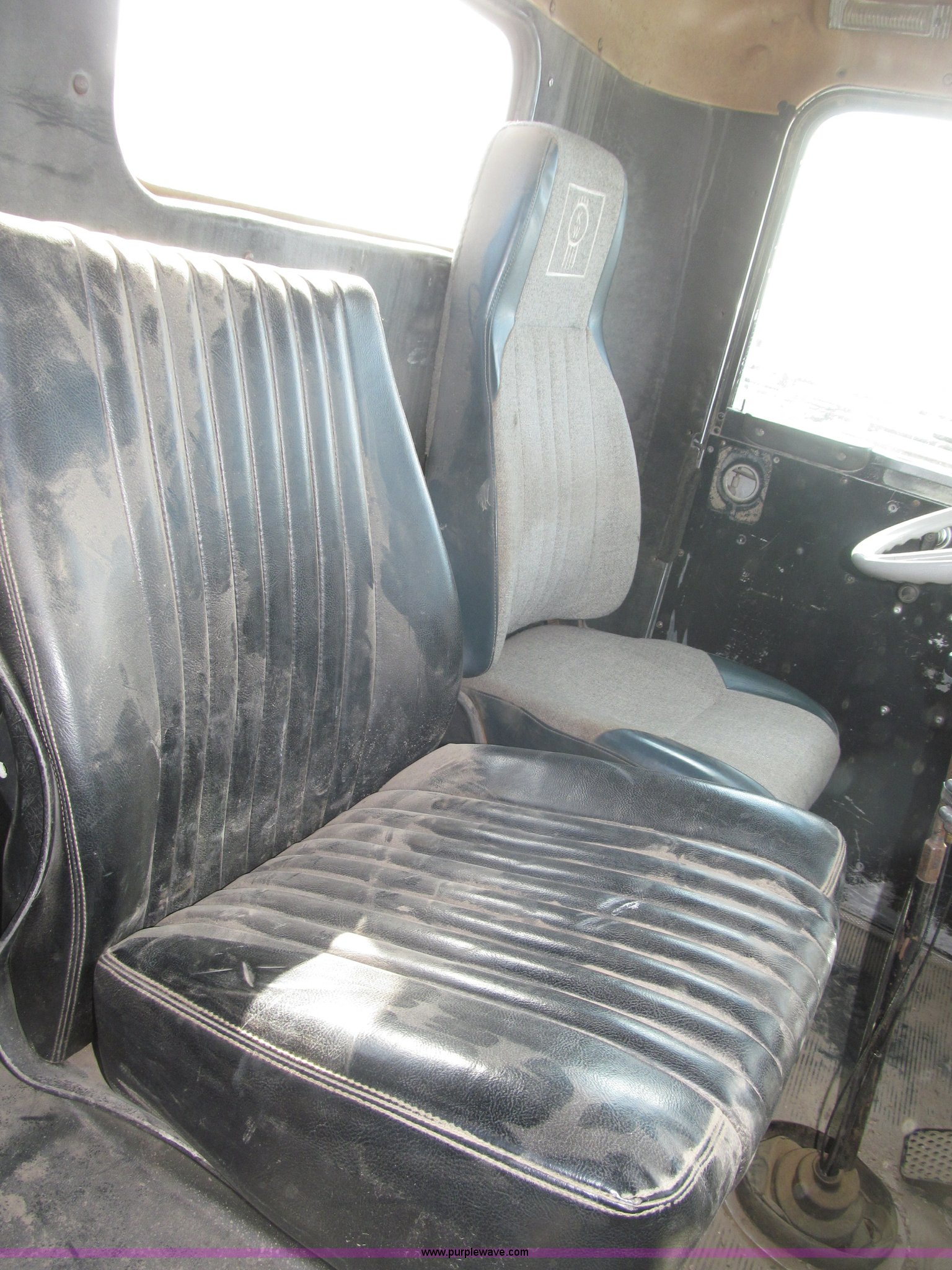 Purple Wave is selling a used Flat Bed Truck in Nebraska. This item is a 1976 Kenworth C500 tandem axle flatbed truck with the following: 663,118 miles on odometer, Cummins NTC290 turbo diesel engine, Eaton Fuller Road Ranger 13 speed manual transmission, Model RTO95Y3, Heat, Am, Air suspension seat, Heated mirror, Passenger daylight door, 11 gauge instrument panel, Ceiling mounted fan, Missing guard, 17'10"L x 93.5"W flatbed, 54.5" bed height, 25"H headache rack, (8) stake pockets per side, Driver's side steps to bed, Exterior visor, 45"L x 27"D x 14"H under bed toolbox, 75 gallon fuel tank, Receiver hitch, Single rear exhaust, Air brakes, 4:44 gear ratio, 50HD rear axle, 242" wheel base, Generals 11R24.5 front tires, Mixed brand rear tires, GVWR 50,860 lbs, 16,280 lbs chassis weight, Interior/exterior cosmetic damage, Front bumper dented and welded, Windshield cracked and chipped, Passenger window stuck open