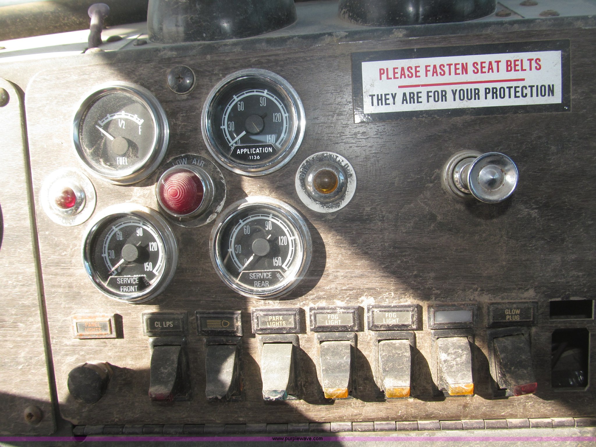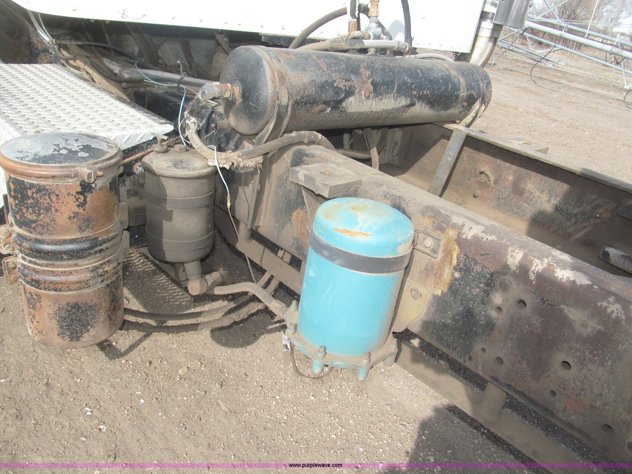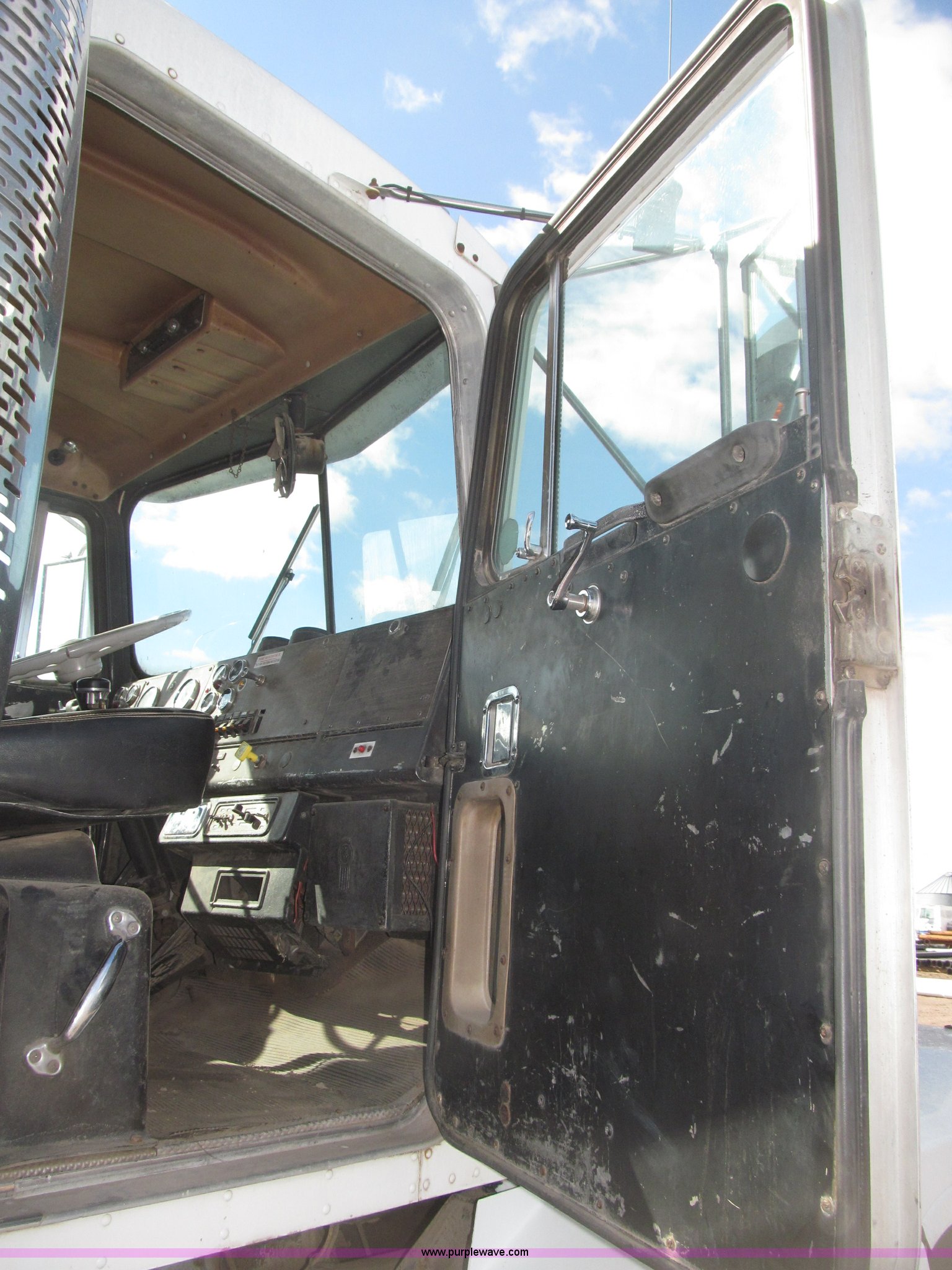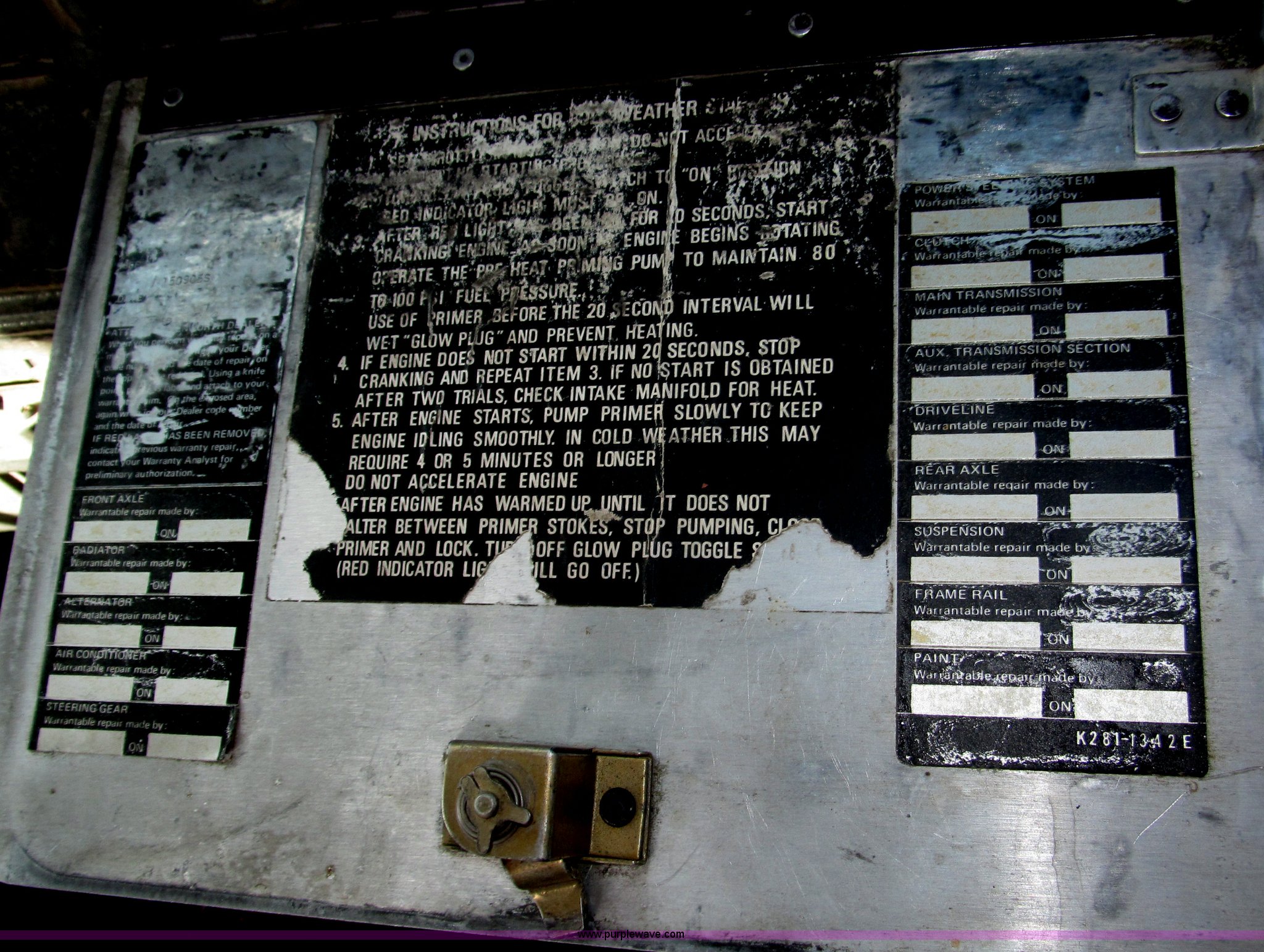 Purple Wave is selling a used Flat Bed Truck in Nebraska. This item is a 1976 Kenworth C500 tandem axle flatbed truck with the following: 663,118 miles on odometer, Cummins NTC290 turbo diesel engine, Eaton Fuller Road Ranger 13 speed manual transmission, Model RTO95Y3, Heat, Am, Air suspension seat, Heated mirror, Passenger daylight door, 11 gauge instrument panel, Ceiling mounted fan, Missing guard, 17'10"L x 93.5"W flatbed, 54.5" bed height, 25"H headache rack, (8) stake pockets per side, Driver's side steps to bed, Exterior visor, 45"L x 27"D x 14"H under bed toolbox, 75 gallon fuel tank, Receiver hitch, Single rear exhaust, Air brakes, 4:44 gear ratio, 50HD rear axle, 242" wheel base, Generals 11R24.5 front tires, Mixed brand rear tires, GVWR 50,860 lbs, 16,280 lbs chassis weight, Interior/exterior cosmetic damage, Front bumper dented and welded, Windshield cracked and chipped, Passenger window stuck open