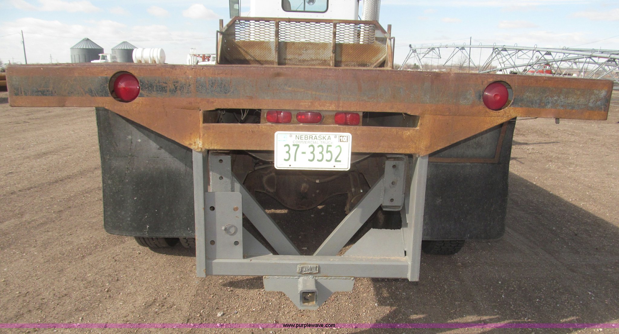 1976 Kenworth C500 tandem axle flatbed truck. 663,118 miles on odometer, Cummins NTC290 turbo diesel engine, Eaton Fuller Road Ranger 13 speed manual transmission Model RTO95Y3, Heat, Am, Air suspension seat, Heated mirror, Passenger daylight door, 11 gauge instrument panel, Ceiling mounted fan Missing guard, 17'10"L x 93.5"W flatbed 54.5" bed height, 25"H headache rack, (8) stake pockets per side, Driver's side steps to bed, Exterior visor, 45"L x 27"D x 14"H under bed toolbox, 75 gallon fuel tank, Receiver hitch, Single rear exhaust, Air brakes, 4:44 gear ratio, 50HD rear axle, 242" wheel base, Generals 11R24.5 front tires, Mixed brand rear tires, GVWR 50,860 lbs, 16,280 lbs chassis weight, Interior/exterior cosmetic damage, Front bumper dented and welded, Windshield cracked and chipped, Passenger window stuck open. 150905S. View equipment video. Shipping quotes available. Holdrege Well Service. 2011 4th. Avenue. Holdrege, NE 68949