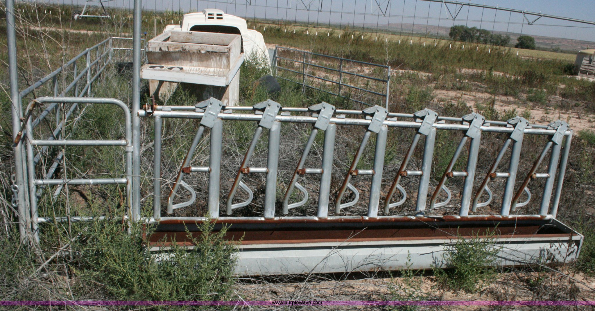 - Eight hole stanchion fence with feed trough