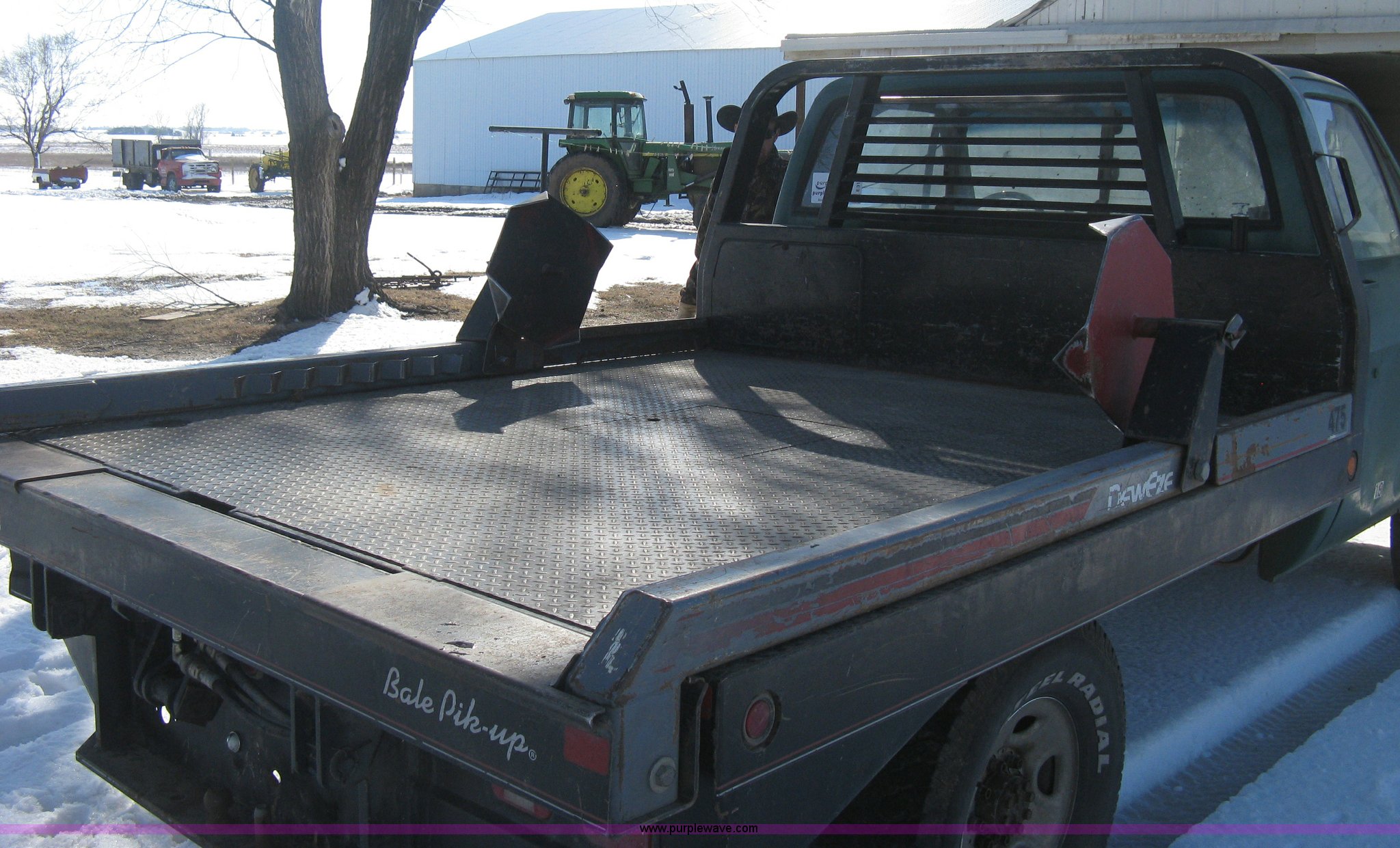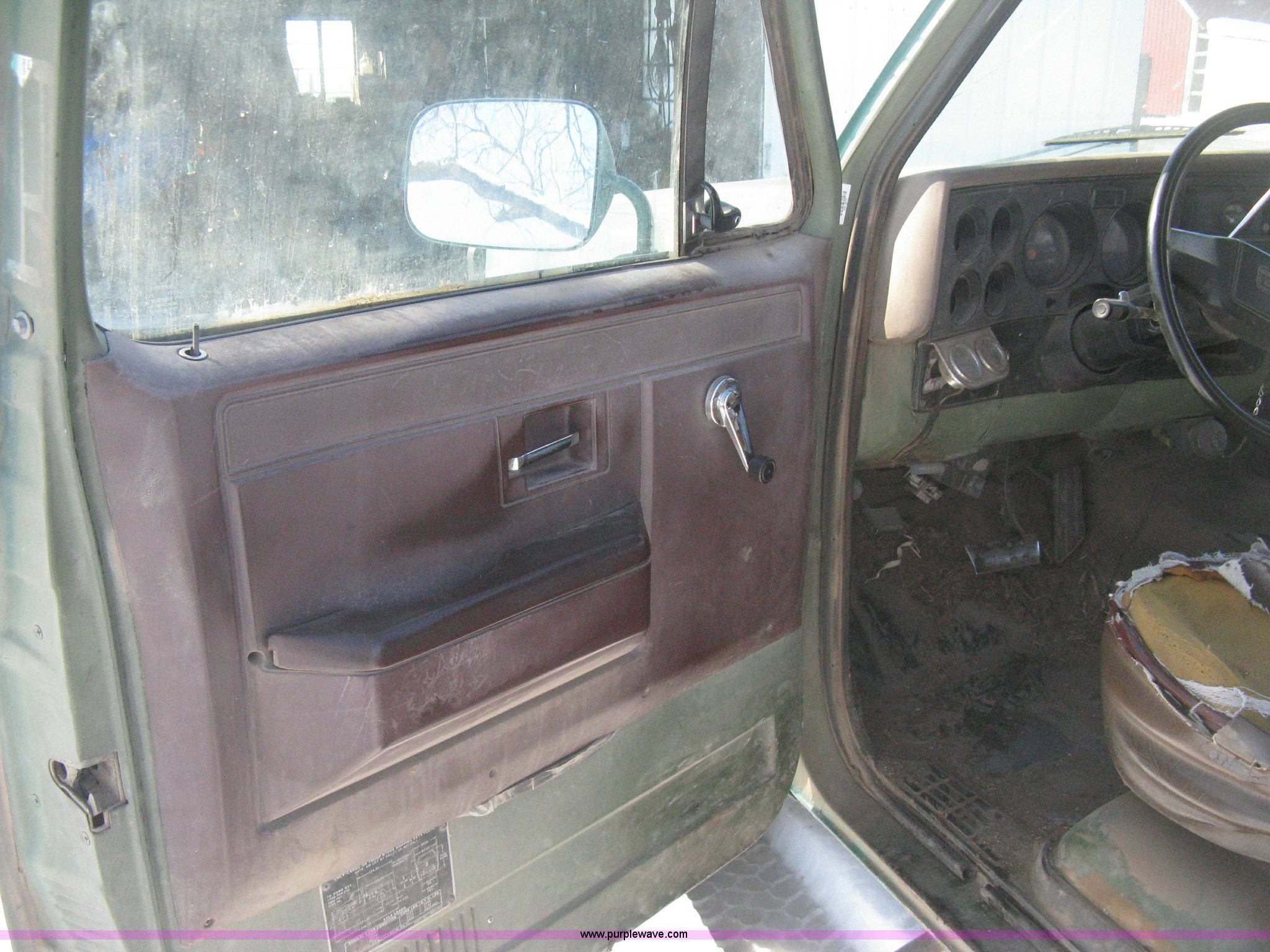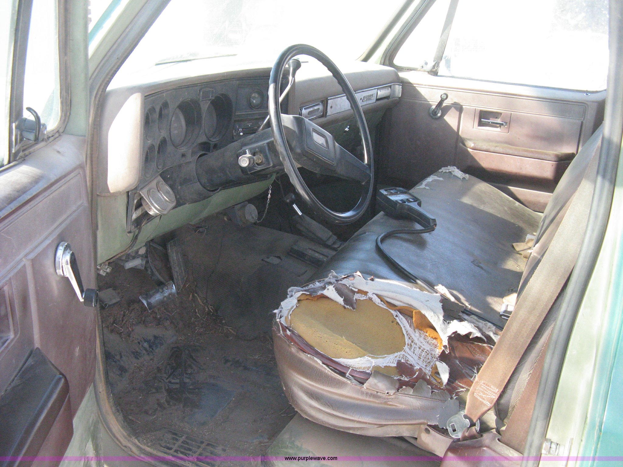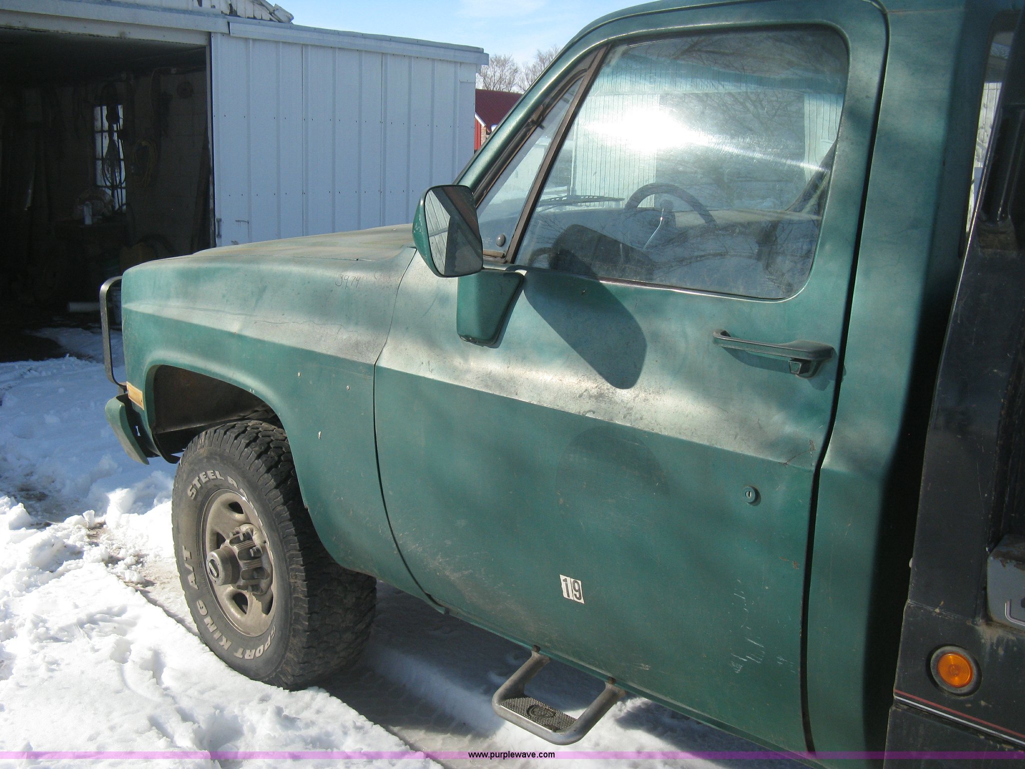 Purple Wave is selling a used Passenger Vehicle in Kansas. This item is a 1985 Chevrolet flatbed pickup truck with the following: 72,463 miles on odometer, 6.2L V8 diesel engine, Automatic transmission, Four wheel drive, Heat, AM/FM/CD, Inoperable, Manual windows and locks, Vinyl interior, DewEze 475 bale bed, 8.8'L x 7'W, Electric over hydraulic, Diamond plate floor, Headache rack, Under mount toolbox, Recessed gooseneck ball, DewEze in-cab hand control, LT28575R16 tires, GVWR 8,800 lbs, Interior cosmetic damage, Cracked windshield, Cracked transmission case, Power steering cylinder leaks
