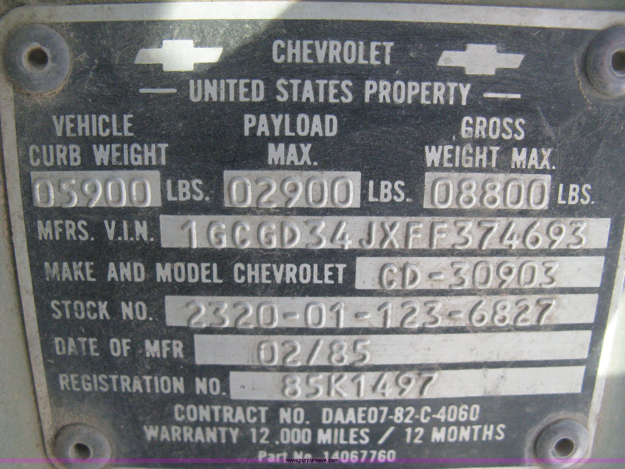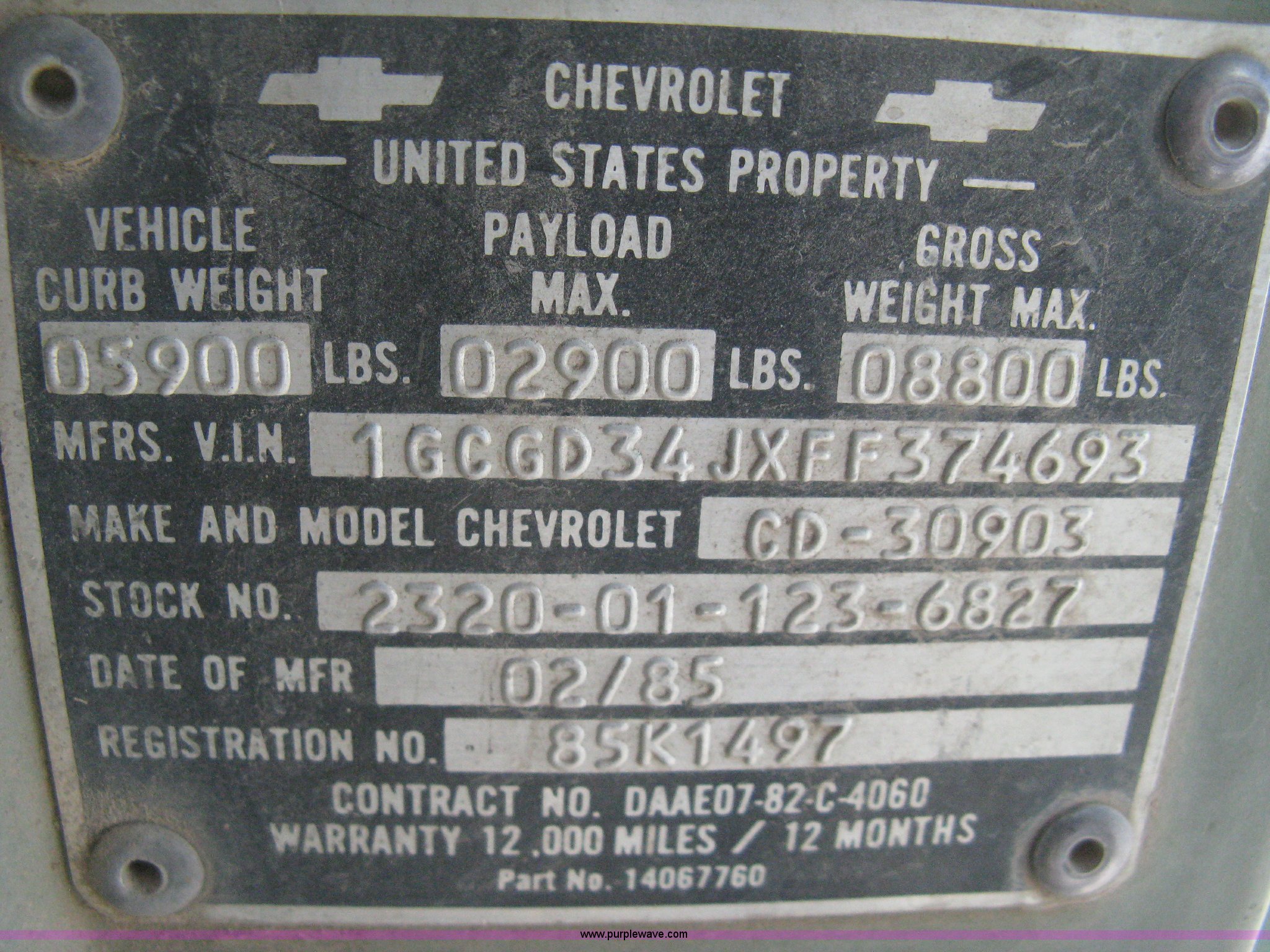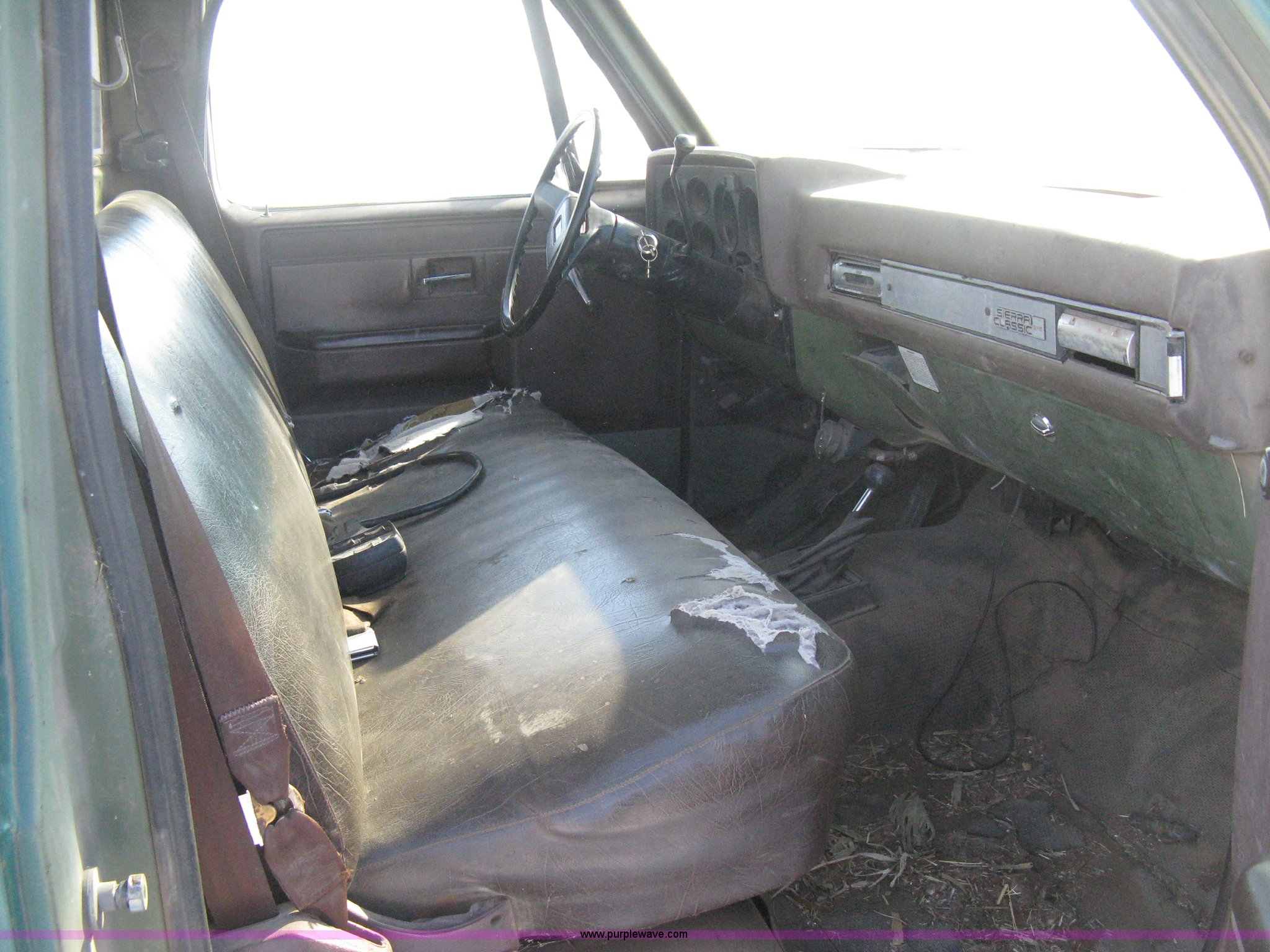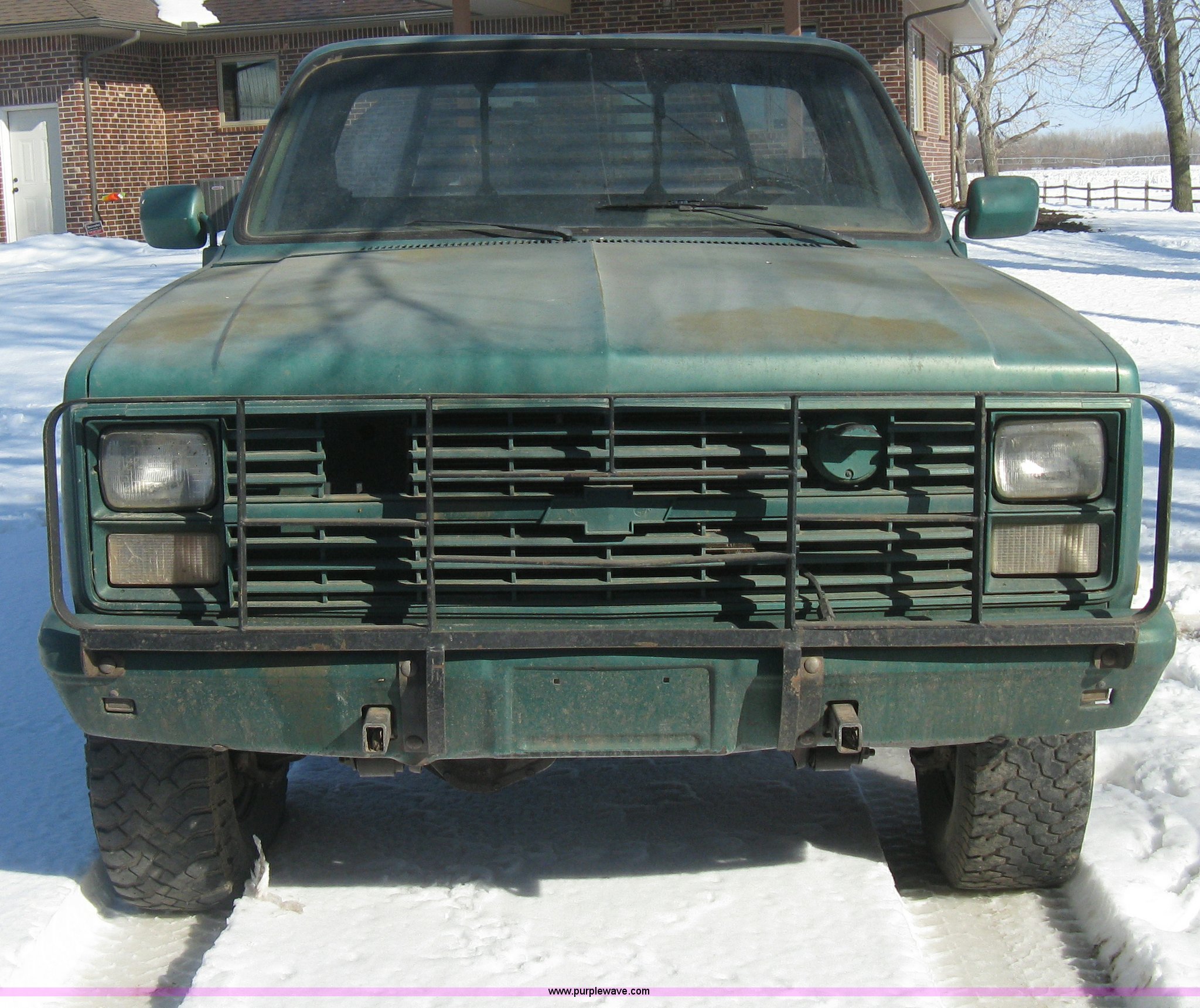 Purple Wave is selling a used Passenger Vehicle in Kansas. This item is a 1985 Chevrolet flatbed pickup truck with the following: 72,463 miles on odometer, 6.2L V8 diesel engine, Automatic transmission, Four wheel drive, Heat, AM/FM/CD, Inoperable, Manual windows and locks, Vinyl interior, DewEze 475 bale bed, 8.8'L x 7'W, Electric over hydraulic, Diamond plate floor, Headache rack, Under mount toolbox, Recessed gooseneck ball, DewEze in-cab hand control, LT28575R16 tires, GVWR 8,800 lbs, Interior cosmetic damage, Cracked windshield, Cracked transmission case, Power steering cylinder leaks