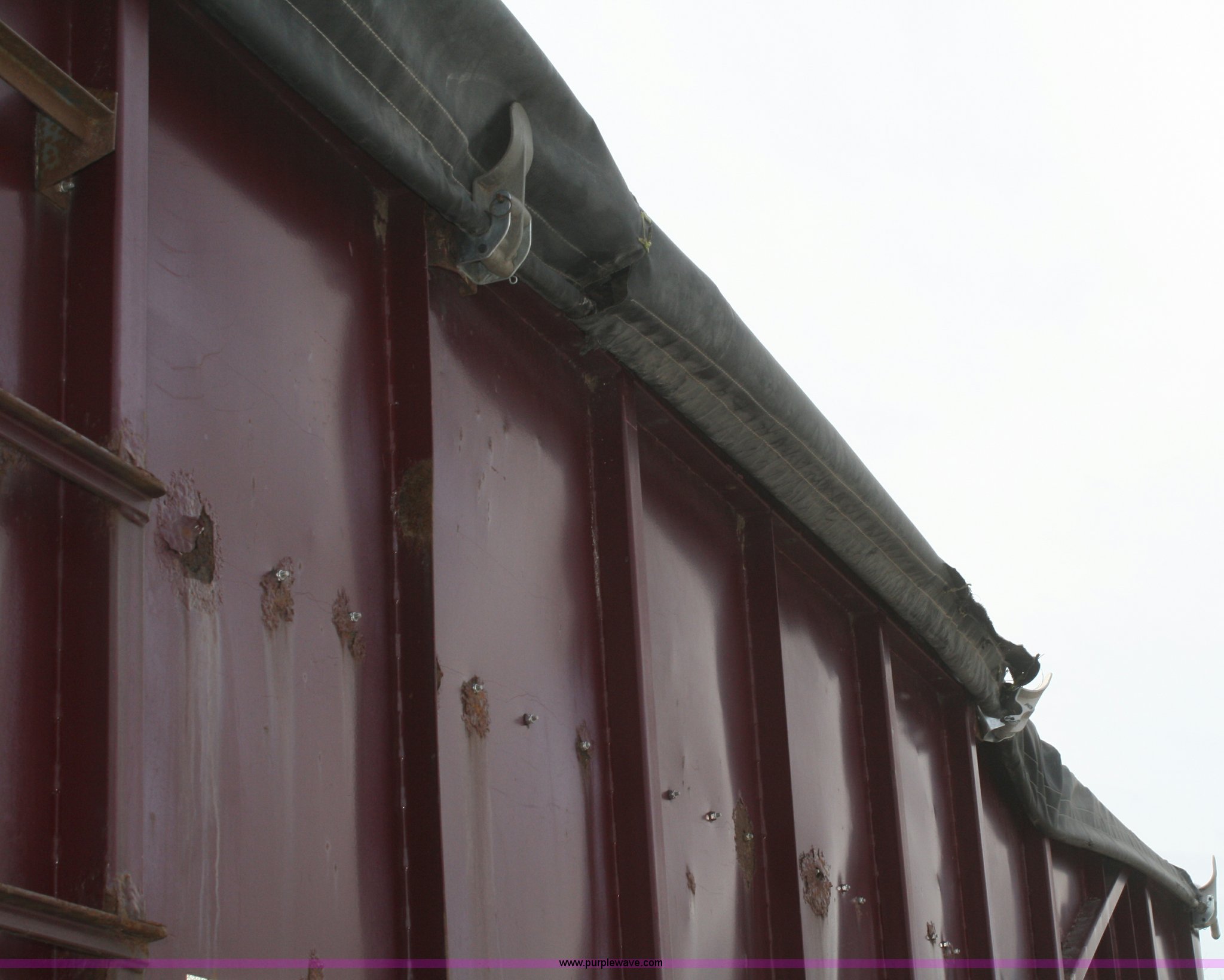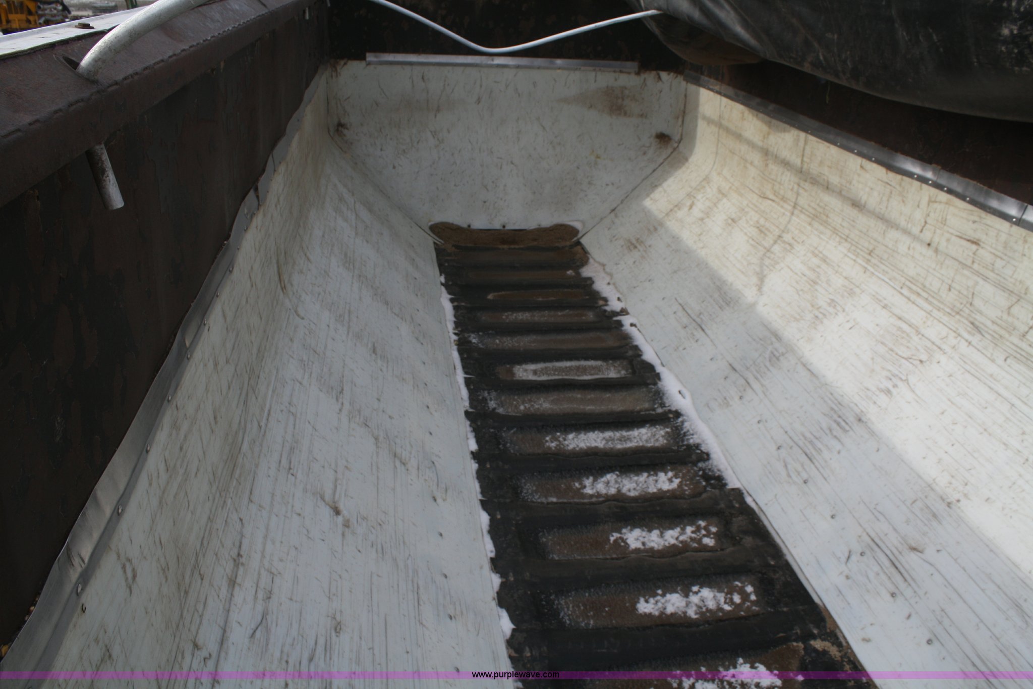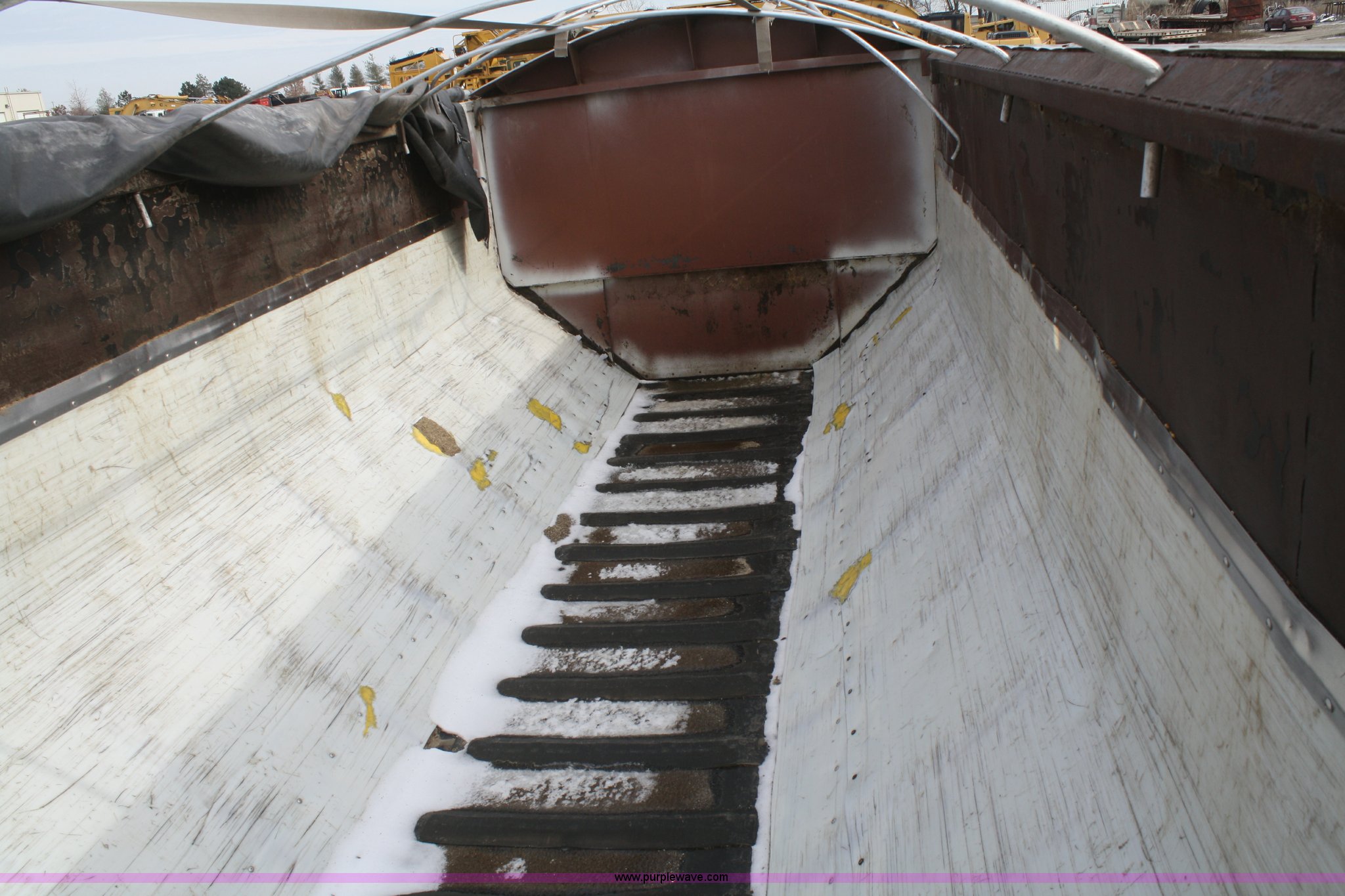 Purple Wave is selling a used Grain or Commodity Trailer in Kansas. This item is a 2002 Trinity spread axle self unloading trailer with the following: 42'L, 41"W belt, Poly bed liner, Stainless steel fenders, Air suspension, Air brakes, Aluminum wheels, 11R24.5 tires, GVWR 65,000 lbs, Rust, Tarp bow is bent, Tarp is torn